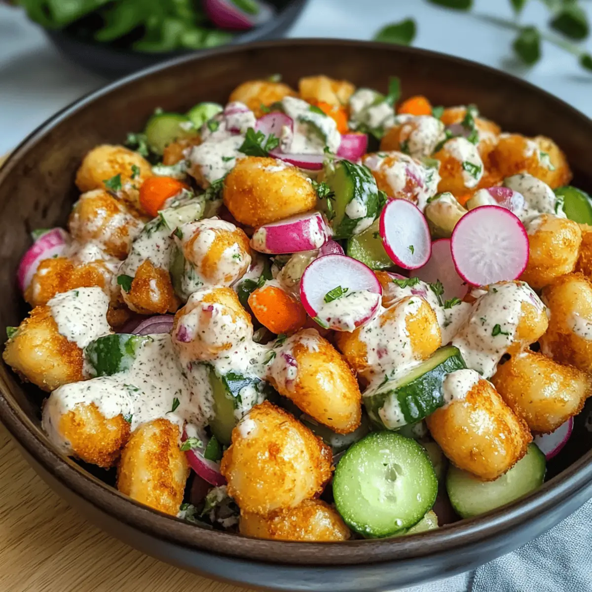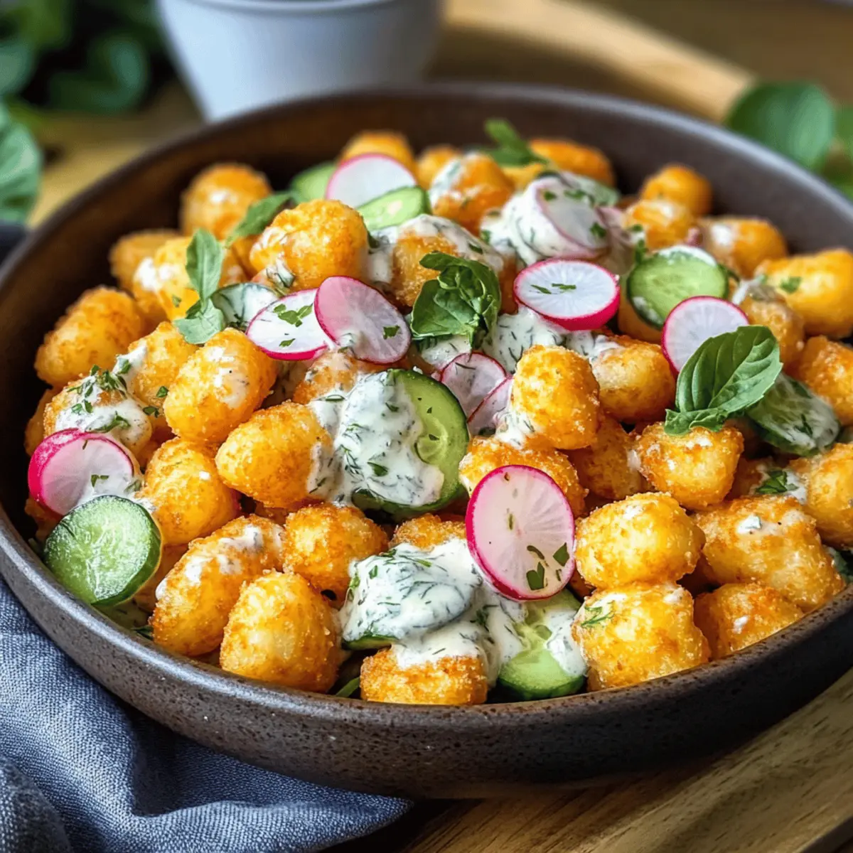 Als ich letztens vom Markt nach Hause kam, begegnete mir die Farbexplosion der frischen Sommergemüse, die nur darauf warteten, in ein neues Gericht verwandelt zu werden. Doch das wahre Highlight war die kreative Idee für meinen knusprigen Gnocchi-Salat für jede Gelegenheit. Diese unkomplizierte Rezeptur kombiniert die knackige Textur von goldbraun gebratenen Gnocchi mit einer Vielfalt bunter Gemüse und einer leichten, cremigen Dressing, die jeden Bissen zu einem Erlebnis macht. Egal, ob als schnelles Abendessen oder als erfrischende Beilage zu Grillpartys – dieser Salat punktet nicht nur in der Zubereitung, sondern auch durch seine Vielseitigkeit. Bereit, das Frischegefühl der Saison auf den Tisch zu bringen? Lass uns gemeinsam diesen köstlichen Gnocchi-Salat zubereiten! Warum ist dieser Gnocchi-Salat so besonders? Vielseitigkeit: Mit leicht austauschbaren Zutaten passt dieser Salat perfekt zu jeder Gelegenheit – vom Picknick bis zum festlichen Abendessen. Einfachheit: Die Schritt-für-Schritt-Anleitung ist leicht nachvollziehbar, ideal für Hobbyköche und Küchenneulinge. Cremige Frische: Das Dressing aus Joghurt und Mayo sorgt für eine unglaublich erfrischende Note, die die Gnocchi und frischen Gemüse wunderbar ergänzt. Knusprige Textur: Die gebratenen Gnocchi sind außen knusprig und innen zart, was jedem Bissen das gewisse Etwas verleiht. Gesund & Nahrhaft: Mit ausgewogenen 378 kcal pro Portion ist dieser Salat nicht nur lecker, sondern auch nahrhaft – ideal für leichte Mahlzeiten. Genuss für alle: Dieser Gnocchi-Salat kommt immer gut an und wird selbst die Anhänger von Fast Food überzeugen. Wenn du auf der Suche nach weiteren Rezepten bist, probiere doch auch unseren leckeren Gnocchi-Auflauf oder die frischen Sommerrollen! Knuspriger Gnocchi-Salat Zutaten Für die Gnocchi Gnocchi – die Basis des Salats, achte auf frische, gekühlte Gnocchi für die beste Textur. Öl – sorgt dafür, dass die Gnocchi knusprig werden; verwende ein neutrales Öl wie Sonnenblumenöl. Paprika (edelsüß) – fügt Geschmack und Farbe hinzu; gerne auch die scharfe Variante ausprobieren! Salz – hebt die Aromen hervor; nach Geschmack anpassen. Für das Gemüse Gurke – bringt Frische und Knackigkeit; kann durch Kirschtomaten oder Paprika ersetzt werden. Rote Zwiebel – sorgt für eine angenehme Schärfe; auch Frühlingszwiebeln sind eine mildere Option. Radieschen – für extra Crunch; lassen sich gut durch Zuckererbsen ersetzen. Für das Dressing Joghurt – die Basis für das Dressing, sorgt für cremige Frische; griechischer Joghurt macht es noch dicker. Mayonnaise – verleiht den nötigen Reichtum; kann durch vegane Mayo ersetzt werden. Dill – fürs aromatische Dressing; Alternativen sind Petersilie oder Schnittlauch. Zitronensaft – bringt Frische in das Dressing; Essig kann ebenfalls verwendet werden. Senf – fügt eine angenehme Schärfe hinzu; kann für ein mildes Dressing weggelassen werden. Honig – sorgt für eine süße Balance im Dressing; Agavendicksaft ist eine vegane Option. Viel Spaß beim Zubereiten deines knusprigen Gnocchi-Salats für jede Gelegenheit! Schritt-für-Schritt-Anleitung für Knuspriger Gnocchi-Salat für jede Gelegenheit Step 1: Vorheizen Heize den Airfryer auf 195°C oder den Ofen auf 200°C vor. Dies gewährleistet, dass deine Gnocchi beim Braten die perfekte knusprige Textur erhalten. Bereite währenddessen alle benötigten Küchengeräte vor, wie z. B. eine Schüssel für die Gnocchi und ein Backblech für den Ofen, falls du diese Methode wählst. Step 2: Gnocchi vorbereiten In einer großen Schüssel die Gnocchi mit etwas neutralem Öl, Salz und edelsüßem Paprika vermischen. Stelle sicher, dass die Gnocchi gleichmäßig mit der Mischung bedeckt sind, um die bestmögliche Knusprigkeit zu erzielen. Dies ist entscheidend für deinen knusprigen Gnocchi-Salat für jede Gelegenheit. Step 3: Gnocchi garen Lege die gewürzten Gnocchi auf das Backblech oder in den Korb des Airfryers. Lasse sie 20 Minuten im Airfryer garen oder 40 Minuten im Ofen backen, wobei du sie alle 10 Minuten wendest. Die Gnocchi sollten goldbraun und knusprig sein, wenn sie fertig sind. Step 4: Dressing zubereiten Während die Gnocchi kochen, kannst du das Dressing vorbereiten. Vermische in einer Schüssel Joghurt, Mayonnaise, Zitronensaft, Senf, Honig, frischen Dill und eine Prise Salz. Mische alles gut, bis eine cremige Masse entsteht, die das Gemüse perfekt umhüllt. Step 5: Gemüse schneiden Schneide die Gurke in kleine Würfel, die rote Zwiebel in dünne Ringe und die Radieschen in feine Scheiben. Diese frischen Zutaten bringen nicht nur Geschmack, sondern auch eine schöne Farbvielfalt in deinen Salat. Achte darauf, alles gleichmäßig und frisch zuzubereiten. Step 6: Gemüse ins Dressing geben Füge die vorbereiteten Gemüsewürfel und Radieschen in die Schüssel mit dem Dressing. Vermenge alles, bis das Gemüse gleichmäßig mit der cremigen Kombination beschichtet ist. Diese Mischung sorgt für ein erfrischendes und knackiges Element in deinem Gnocchi-Salat. Step 7: Gnocchi hinzufügen Sobald die Gnocchi fertig und knusprig sind, nimm sie aus dem Airfryer oder Ofen. Lass sie kurz abkühlen und gib sie dann direkt in die Schüssel mit dem Dressing und dem Gemüse. Vermische alles sorgfältig, sodass jeder Bissen von der herrlichen Textur und den frischen Aromen profitiert. Was passt zu Knuspriger Gnocchi-Salat für jede Gelegenheit? Ein köstlicher Gnocchi-Salat erweckt den Appetit und lässt sich wunderbar mit einer Vielzahl von Beilagen kombinieren. Gegrilltes Hähnchen: Die zarte Textur und der würzige Geschmack des Hähnchens ergänzen den salzigen Gnocchi perfekt und machen das Gericht herzhaft. Frisches Baguette: Knuspriges Baguette ist ideal, um das cremige Dressing aufzunehmen und verleiht jedem Bissen eine angenehme Struktur. Eine Scheibe dazu und du hast ein perfektes Dinner! Leichtes Weißwein: Ein kühler Sauvignon Blanc passt hervorragend zu den f