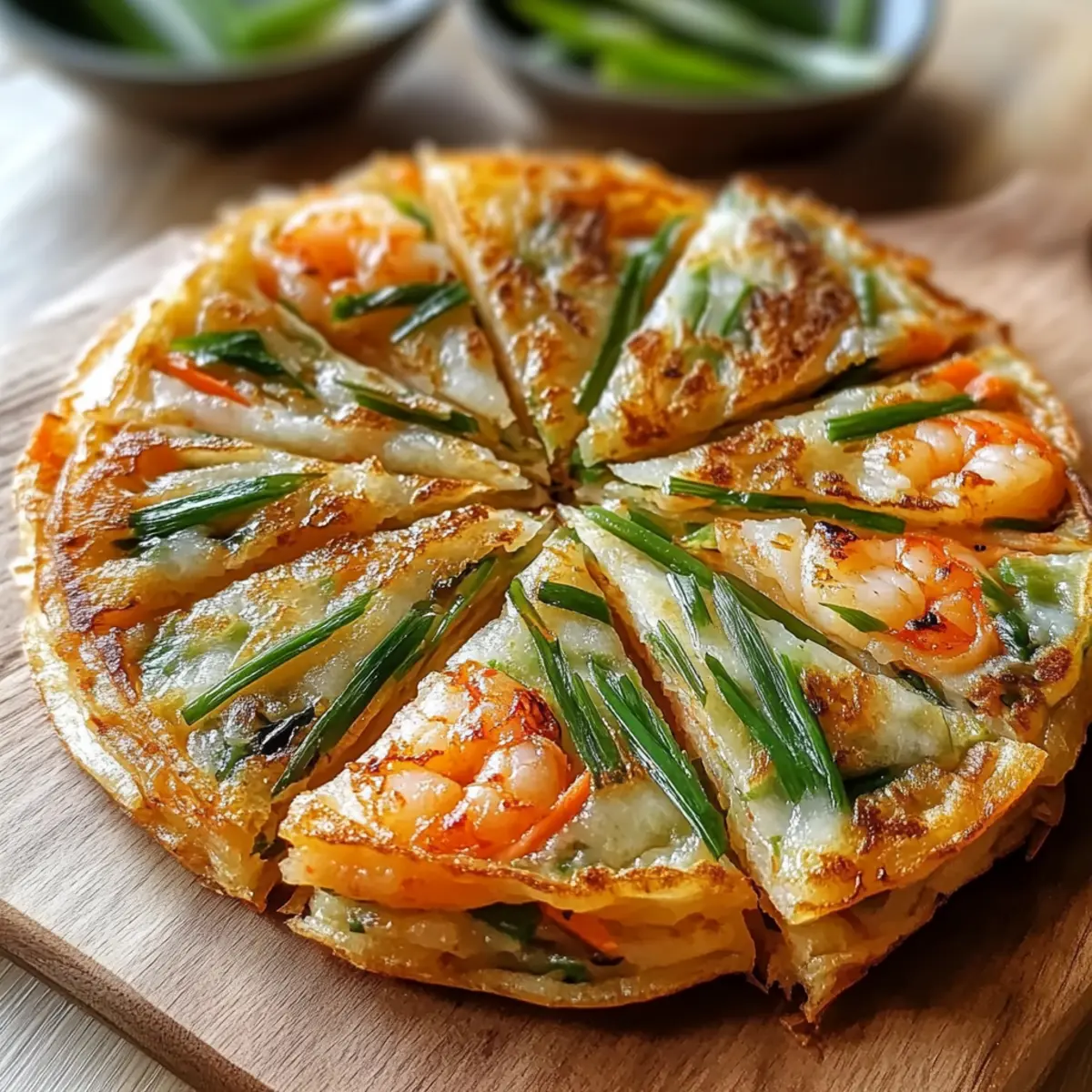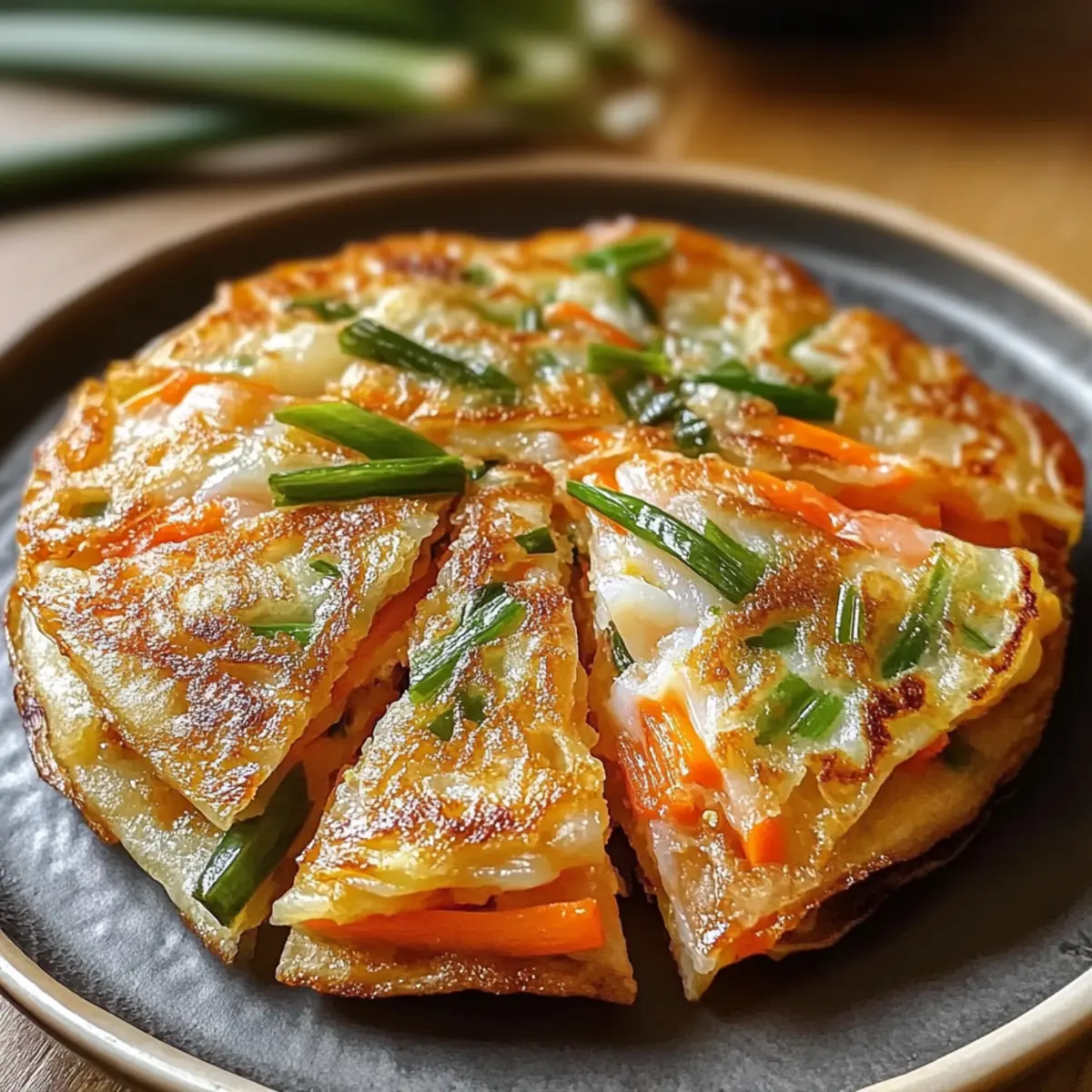 Während ich in der Küche stehe und die Pfanne erhitze, entfaltet sich ein verlockendes Aroma – die perfekte Bühne für meinen knusprigen Reispapier-Pfannkuchen. Dieses schnelle und anpassbare Rezept ist nicht nur eine wunderbare Möglichkeit, frische Zutaten wie knackige Karotten und zarte Scallions zu verwenden, es bringt auch Farbe und Freude auf den Tisch. Ideal für hektische Wochentage oder um Gäste zu beeindrucken, bieten diese Pfannkuchen eine köstliche Grundlage, die je nach Vorliebe mit Garnelen, Tofu oder einer Vielzahl von Gemüsesorten gefüllt werden kann. Und das Beste daran? Sie sind glutenfrei und in kürzester Zeit zubereitet! Lassen Sie uns gemeinsam in die Welt dieser köstlichen Pfannkuchen eintauchen – was denken Sie, welche Füllung wäre Ihr persönlicher Favorit? Warum sind Reispapier-Pfannkuchen so beliebt? Einzigartig und anpassbar: Mit ihrem knusprigen Äußeren und dem zarten Inneren sind Reispapier-Pfannkuchen ein wahres Geschmackserlebnis. Schnelle Zubereitung: Sie sind perfekt für eine schnelle Mahlzeit, die in weniger als 30 Minuten zubereitet werden kann. Vielfältige Füllungen: Ob mit Garnelen, Tofu oder frischem Gemüse – die Möglichkeiten sind unbegrenzt! Gesund und glutenfrei: Diese Pfannkuchen sind nicht nur lecker, sondern auch eine gesunde Wahl, die glutenfrei ist, wenn Sie glutenfreie Sojasauce verwenden. Beeindrucken Sie Ihre Gäste: Servieren Sie sie mit einem köstlichen Dip und machen Sie jedes Nachtessen zu einem besonderen Ereignis. Entdecken Sie auch unser Rezept für Knusprige Mandelplaetzchen Rezept oder unseren Knusprigen Caesar Salat für weitere inspirierende Ideen! Knuspriger Reispapier-Pfannkuchen Zutaten • Die leckeren Füllungen warten nur darauf, entdeckt zu werden! Für den Pfannkuchen Reispapier – bildet die knusprige äußere Schicht; wähle Bogen, die flexibel, aber nicht zu weich sind. Ei – fungiert als Bindemittel für die Füllung und sorgt für zusätzlichen Eiweißgehalt; vegan? Ersetze es mit Leinsamenmehl und Wasser! Gemüse (Karotten) – sorgt für Süße und Knackigkeit; um Farbvielfalt zu erzielen, kannst du auch Paprika oder Zucchini verwenden. Frische Scallions – verleihen Frische und einen milden Zwiebelgeschmack; chives oder Schalotten sind tolle Alternativen. Garnelen – bieten eine herzhafte Proteinquelle; verwenden Sie festen Tofu als pflanzliche Variante, die die Aromen gut aufnimmt. Für das Braten Pflanzenöl – sorgt beim Braten für die knusprige Textur; für mehr Geschmack kannst du auch Sesamöl nutzen. Würzung und Garnitur Sojasauce – bringt umami in die Füllung; bei glutenfreier Ernährung bitte mit glutenfreier Sojasauce arbeiten. Chilisauce/Sriracha – fügt einen würzigen Kick hinzu; die Menge kannst du nach persönlichem Geschmack anpassen. Frische Kräuter (Koriander oder Minze) – verstärken die Frische; auch Basilikum kann eine aufregende Variante sein. Geröstete Sesamsamen – für eine nussige Note und als köstliche Garnitur. Step-by-Step Instructions für Knuspriger Reispapier-Pfannkuchen Step 1: Pfanne vorbereiten Erhitze eine antihaftbeschichtete 25-Zentimeter-Pfanne bei mittlerer Hitze und gib etwa 1–2 Esslöffel Pflanzenöl hinzu. Warte, bis das Öl leicht schimmert, was bedeutet, dass es heiß genug ist, um die Pfannkuchen knusprig zu machen. Achte darauf, dass die Temperatur nicht zu hoch ist, um ein Anbrennen zu vermeiden. Step 2: Füllung zubereiten In einer Schüssel das Ei mit einem Schneebesen gut aufschlagen, bis es schaumig ist. Füge dann die gehackten Scallions, die geraspelten Karotten und die vorgemerkten Garnelen oder den Tofu hinzu. Rühre alles gut durch, sodass die Zutaten gleichmäßig verteilt sind und die Mischung gut bindet. Step 3: Reispapier vorbereiten Nimm ein Reispapierblatt und tauche es kurz in eine Schüssel mit lauwarmem Wasser, sodass es leicht feucht und biegsam wird. Achte darauf, dass es nicht zu lange bleibt, um ein Zerreißen zu vermeiden. Lege das Reispapier vorsichtig auf eine flache Arbeitsfläche, um die Füllung gleichmäßig darauf verteilen zu können. Step 4: Füllung auftragen Verteile die vorbereitete Eimischung großzügig auf dem Reispapier, sodass sie gleichmäßig bedeckt ist. Träufle etwas Sojasauce und Chili-Sauce nach Geschmack darüber. Die Kombination sorgt für zusätzlichen Geschmack und bei den Knusprigen Reispapier-Pfannkuchen wird die Füllung dadurch perfekt abgerundet. Step 5: Einen zweiten Reispapierblatt hinzufügen Lege vorsichtig ein weiteres Reispapierblatt auf die Füllung und drücke es sanft mit einem Spachtel oder deinen Händen an. Dies hilft, die Füllung zu fixieren und sorgt dafür, dass die beiden Blätter gut miteinander verbunden sind. Step 6: Pfannkuchen braten Lasse die Pfannkuchen für etwa 3–4 Minuten braten, bis die Unterseite goldbraun und knusprig ist. Achte darauf, dass die Hitze gleichmäßig bleibt, um eine optimale Bräunung zu erzielen. Vermeide es, die Pfannkuchen zu früh zu wenden, um ein Zusammenfallen zu verhindern. Step 7: Wenden und fertig braten Benutze einen breiten Spachtel, um den Pfannkuchen vorsichtig umzudrehen. Brate die zweite Seite für weitere 2 Minuten, bis sie ebenfalls goldbraun und knusprig ist. Ein gut gegarter Knuspriger Reispapier-Pfannkuchen sollte knusprig, aber nicht verbrannt sein. Step 8: Servieren und garnieren Nimm den Pfannkuchen aus der Pfanne und lasse ihn kurz auf einem Küchentuch abtropfen. Entscheide dich dafür, die Pfannkuchen in Viertel zu schneiden und mit frischen Kräutern sowie gerösteten Sesamsamen zu garnieren. Sofort servieren, während sie noch warm und knusprig sind. Lagerungstipps für Knuspriger Reispapier-Pfannkuchen Airtight Container: Bewahre übrig gebliebene Pfannkuchen in einem luftdichten Behälter im Kühlschrank für bis zu 3 Tage auf, um ihre Knusprigkeit zu erhalten. Zuhause Vorbereiten: Du kannst die Füllung bis zu 24 Stunden im Voraus zubereiten und in einem luftdichten Behälter im Kühlschra