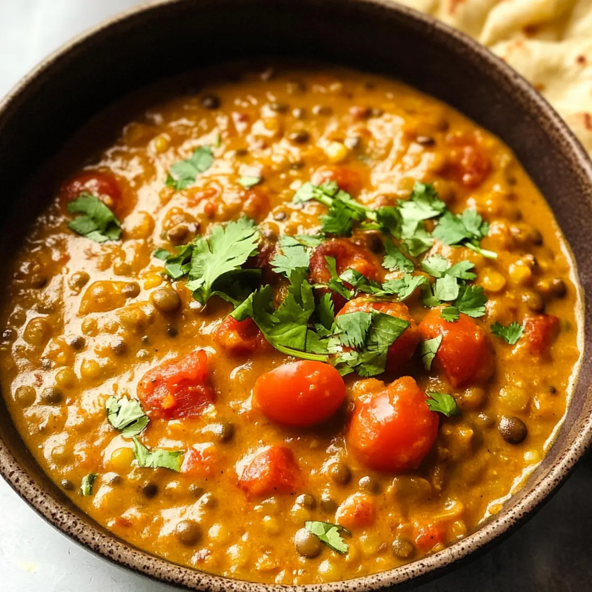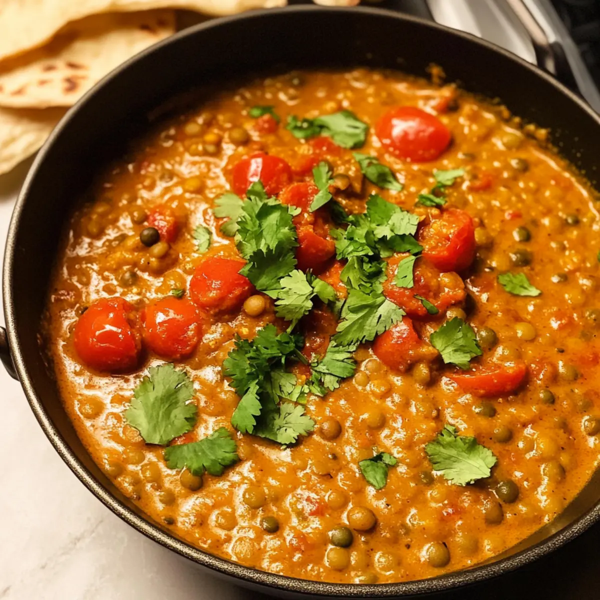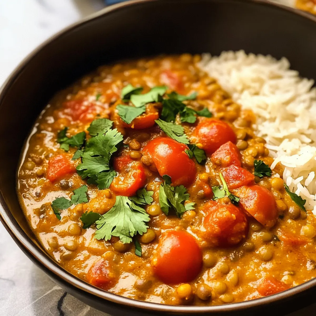 Der Duft von Gewürzen, der über die Küche schwebt, ist ein sofortiger Reiseanlass in die Aromen Indiens. Heute lade ich euch ein, zusammen ein köstliches Kokosnuss-Linsen-Curry zuzubereiten, das selbst an den hektischsten Abenden ein Lächeln auf die Lippen zaubert. Diese vegane und glutenfreie Köstlichkeit ist nicht nur schnell und einfach zuzubereiten, sondern verwöhnt auch mit einer cremigen Textur und herzhaften Geschmäckern, die das Herz erobern. Mit weniger als einer Stunde für die Zubereitung ist sie perfekt für fleischlose Montagabende und die Reste eignen sich großartig für ein schnelles Mittagessen am nächsten Tag. Seid ihr bereit, eure Sinne auf eine genussvolle Reise zu schicken? Warum ist dieses Rezept einzigartig? Einfachheit: Mit nur wenigen Grundzutaten und unkomplizierten Schritten gelingt das Kokosnuss-Linsen-Curry mühelos. Vielseitigkeit: Ihr könnt das Grundrezept nach Belieben anpassen, sei es mit Gemüse, Gewürzen oder verschiedenen Linsensorten. Wohlschmeckend: Die Mischung aus cremiger Kokosmilch und aromatischen Gewürzen sorgt für ein Geschmackserlebnis, welches an die besten indischen Küchen erinnert. Nährstoffreich: Es bietet nicht nur einen hohen Gehalt an Proteinen, sondern auch gesunde Fette und Ballaststoffe. Zeitersparnis: In weniger als einer halben Stunde servierbereit – ideal für stressige Wochentage! Probiert es zusammen mit Basmati-Reis oder Naan-Brot für ein rundum gelungenes Gericht! Kokosnuss-Linsen-Curry Zutaten • Für die Basis Kokosöl – sorgt für eine reichhaltige Textur und einen Hauch von Kokosgeschmack. Kann durch Pflanzenöl ersetzt werden, wenn ein neutraler Geschmack gewünscht ist. Kreuzkümmelsamen – fügt warme, erdige Untertöne hinzu. Gemahlener Kreuzkümmel kann in gleichen Mengen verwendet werden. Koriandersamen – bieten zitrusartige Noten. Gemahlener Koriander ist eine geeignete Alternative. Knoblauch (10-12 Zehen, gehackt) – verstärkt die Geschmacksvielfalt. Die Menge kann je nach Vorliebe angepasst werden. Zerdrückte Tomaten (28 oz Dose) – Serviert als Basis für das Curry, bringt Säure und Süße mit. Frische Tomaten können genutzt werden, müssen aber richtig eingekocht werden. Ingwer (2 Esslöffel, gehackt) – verleiht eine frische, würzige Note. Gemahlener Ingwer kann als Ersatz dienen. Kurkuma (1 Esslöffel) – sorgt für eine warme Farbe und erdigen Geschmack. Kurkuma-Pulver kann als Ersatz verwendet werden. Meersalz (2 Teelöffel) – entscheidend zur Geschmacksverbesserung. Kann durch koscheres Salz ersetzt werden. Braune Linsen (1 Tasse, getrocknet) – liefert Protein und Textur. Dose Linsen kann verwendet werden (Wasser weglassen) für Bequemlichkeit. Cayennepfeffer (1-2 Teelöffel, optional) – bringt Würze ins Spiel. Die Menge kann je nach Vorliebe angepasst werden. Wasser (2 Tassen) – dient zum Kochen der Linsen. Gemüsebrühe kann für mehr Geschmack verwendet werden. Kokosmilch (15 oz Dose) – sorgt für Cremigkeit und intensiven Kokosgeschmack. Kann durch Mandeldrink für eine leichtere Option ersetzt werden. Kirschtomaten (einige Handvoll) – fügt Frische und Geschmacksexplosionen hinzu. Stattdessen können auch normale Tomaten gewürfelt werden. Gehackter Koriander (1 Tasse) – bringt helle, kräuterige Noten und Garnierung. Kann weggelassen oder durch Petersilie ersetzt werden, wenn nötig. Euer perfektes Kokosnuss-Linsen-Curry wartet auf euch! Schritt-für-Schritt-Anleitung für Kokosnuss-Linsen-Curry Step 1: Erhitze das Kokosöl Erhitze 1 Esslöffel Kokosöl in einer großen Pfanne bei mittlerer bis hoher Hitze. Achte darauf, dass das Öl schmilzt und leicht glänzt. Dies dauert etwa 1-2 Minuten. Das Kokosöl wird die Basis für unser köstliches Kokosnuss-Linsen-Curry bilden, also sorge dafür, dass es gut erhitzt ist, bevor du mit den Gewürzen fortfährst. Step 2: Röstet die Gewürze Füge die Kreuzkümmel- und Koriandersamen hinzu und röste sie für etwa 45 Sekunden, bis sie duften und knistern. Rühre die Gewürze gelegentlich um, damit sie gleichmäßig rösten und ihr volles Aroma entfalten können. Wenn sie anfangen zu springen, weißt du, dass es Zeit ist, den nächsten Schritt zu machen. Step 3: Knoblauch anbraten Gib den gehackten Knoblauch in die Pfanne und brate ihn etwa 2 Minuten lang an, bis er goldbraun und aromatisch ist. Rühre ständig um, damit der Knoblauch nicht anbrennt. Diese goldene Farbe verleiht deinem Kokosnuss-Linsen-Curry eine tiefe Geschmacksbasis und wird die Gewürze perfekt ergänzen. Step 4: Füge die Tomaten und Gewürze hinzu Jetzt ist es an der Zeit, die zerdrückten Tomaten, den gehackten Ingwer, das Kurkuma und das Meersalz hinzuzufügen. Rühre alles gut um und koche die Mischung bei mittlerer Hitze für 5 Minuten, während du gelegentlich umrührst. Diese Zutaten werden eine herrliche, geschmackvolle Basis für das Curry schaffen, die die Sinne anregt. Step 5: Linsen und Wasser dazugeben Füge die braunen Linsen, Cayennepfeffer (falls verwendet) und die 2 Tassen Wasser hinzu. Bring die Mischung zum Kochen und achte darauf, dass es blubbert. Dies geschieht schnell, in etwa 3-5 Minuten, und bereitet die Linsen darauf vor, weich zu werden und die Aromen des Kokosnuss-Linsen-Currys aufzunehmen. Step 6: Simmern lassen Reduziere die Hitze auf niedrig, decke die Pfanne ab und lasse das Curry 35-40 Minuten sanft köcheln, bis die Linsen weich sind. Rühre gelegentlich um und füge bei Bedarf mehr Wasser hinzu, um ein Anbrennen zu vermeiden. Diese Geduld wird mit einem herzhaften und sättigenden Gericht belohnt. Step 7: Kokosmilch und Kirschtomaten einrühren Wenn die Linsen weich sind, rühre die Kokosmilch und die Kirschtomaten unter und lasse das Curry nur kurz köcheln, um die frischen Aromen zu kombinieren. Dies dauert etwa 5 Minuten. Die Cremigkeit der Kokosmilch wird das Gericht vervollständigen und einen einladenden, köstlichen Glanz verleihen. Step 8: Mit Koriander garnieren Nehme die Pfanne vom Herd und mische 