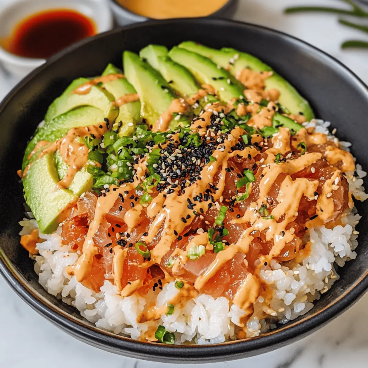 Zum Schluss kannst du etwas Sriracha Sauce über die Schüssel träufeln, um zusätzlichen Schwung zu geben. Serviere die Konservierter Thunfisch Sushi-Schüssel sofort, während der Reis warm und knusprig bleibt. Genieße diesen schnellen und geschmackvollen Genuss als perfektes Abendessen für jeden Tag!