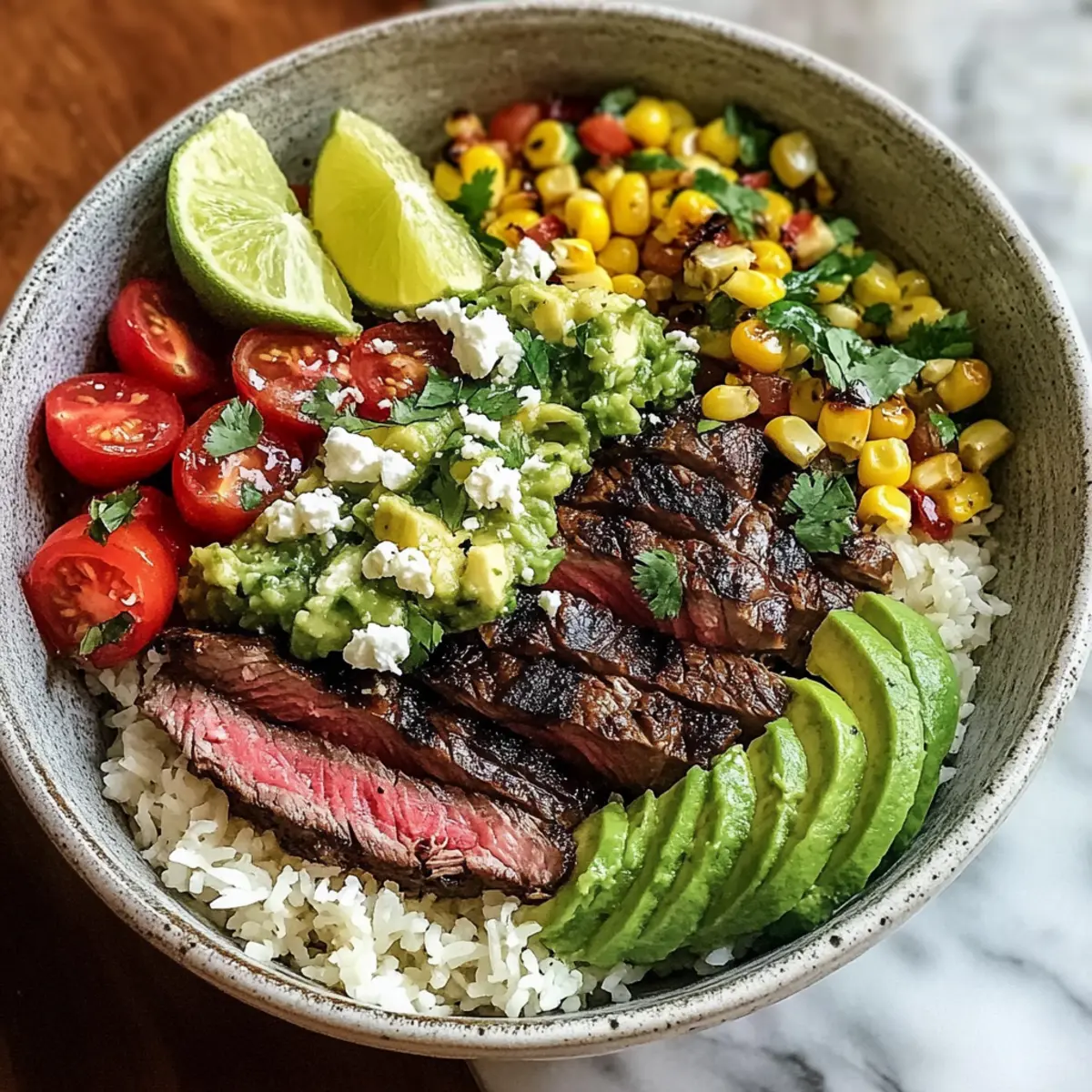 Schnell, frisch und voller Lebensfreude – das sind die Koriander Limetten Steak Schalen, die ich heute mit euch teilen möchte! An hektischen Wochentagen, wenn die Uhr zu tickt und der Hunger laut wird, sind diese Schalen der perfekte Genuss. Mit saftigem, mariniertem Steak, erfrischendem Limettensaft und bunten frischen Zutaten verwandeln sie ein einfaches Abendessen in ein festliches Erlebnis. Und das Beste ist, dass ihr sie nach Lust und Laune anpassen könnt – perfekt für die ganze Familie, selbst die wählerischsten Esser. Bereit, die Geschmacksnerven zu kitzeln? Lasst uns gemeinsam in die Welt der Koriander Limetten Steak Schalen eintauchen und ein schnelles, aber unvergessliches Abendessen kreieren! Warum werden Sie diese Schalen lieben? Vielseitigkeit: Diese Koriander Limetten Steak Schalen sind vollkommen anpassbar und bieten Platz für Ihre liebsten Zutaten. Ob eine extra Portion Gemüse oder der Verzicht auf Bohnen – Ihrer Kreativität sind keine Grenzen gesetzt! Schnelligkeit: In nur 30 Minuten können Sie ein köstliches Abendessen zaubern, das perfekt für hektische Wochentage ist. Wenn Sie mehr Zeit haben, lassen Sie das Steak einfach über Nacht mariniert für intensiveren Geschmack. Frische Aromen: Die Kombination aus zesty Limette und frischen Kräutern verleiht jedem Bissen eine erfrischende Note, die hungrige Mägen mit Leichtigkeit zufriedenstellt. Familienfreundlich: Auch die wählerischsten Esser finden in diesen Schalen etwas, das ihnen schmeckt! Passen Sie die Zutaten nach Belieben an, um sicherzustellen, dass jeder am Tisch glücklich ist. Gesunde Wahl: Diese Schalen beinhalten eine ausgewogene Mischung aus Proteinen, Ballaststoffen und gesunden Fetten, die sowohl nahrhaft als auch sättigend ist. Genießen Sie Ihre Mahlzeit und fühlen Sie sich gut dabei! Tauchen Sie ein in die Welt der Koriander Limetten Steak Schalen – eine köstliche und unkomplizierte Art, den Alltag zu bereichern! Koriander Limetten Steak Schalen Zutaten • Für die Marinade: Flank Steak – Hauptproteinquelle; für besten Geschmack mindestens 30 Minuten marinieren. Frischer Limettensaft – sorgt für die nötige Säure; immer frisch verwenden, wenn möglich. Olivenöl – verleiht Reichhaltigkeit; kann auch durch Avocadoöl ersetzt werden. Frischer Koriander – für das Kräuteraroma; optional jedoch köstlich in der Marinade und als Garnitur. Knoblauch – das aromatische Element für die Marinade; fein gehackt sorgt er für optimalen Geschmack. Gemahlener Kreuzkümmel – gibt dem Gericht Wärme; durch Koriander ersetzbar für einen milderen Geschmack. Chilipulver – sorgt für milde Schärfe; gerne mit geräuchertem Paprika für zusätzlichen Geschmack aufpeppen. Salz & schwarzer Pfeffer – unverzichtbare Würze; nach Geschmack anpassen. • Für die Schalen: Gekochter Reis (weiß oder braun) – dient als Grundlage; kann auch durch Blumenkohlreis für eine kohlenhydratarme Variante ersetzt werden. Schwarze Bohnen – fügen Protein und Ballaststoffe hinzu; vorher abspülen, um den Natriumgehalt zu reduzieren. Mais – sorgt für Süße und Crunch; frisch, gefroren oder aus der Dose möglich. Kirschtomaten – frisch und saftig; alternativ sind gewürfelte normale Tomaten auch eine gute Wahl. Avocado – für eine cremige Textur; kann durch Guacamole ersetzt werden, wenn gewünscht. Rote Zwiebel – bringt eine scharfe Note; grünen Zwiebeln für einen milderen Geschmack auch möglich. Feta-Käse (optional) – fügt eine würzige und cremige Note hinzu; für eine milchfreie Variante einfach weglassen. Extra Koriander – als Garnitur; steigert die optische Anziehungskraft und den Geschmack. Limettenviertel – zum Servieren; sorgt für frische Säure beim Essen. Diese köstlichen Koriander Limetten Steak Schalen sind eine perfekte Wahl für ein schnelles und schmackhaftes Abendessen! Schritt-für-Schritt-Anleitung für Koriander Limetten Steak Schalen Step 1: Steak marinieren In einer Schüssel den frischen Limettensaft, Olivenöl, Koriander, gehackten Knoblauch, gemahlenen Kreuzkümmel, Chilipulver, Salz und schwarzen Pfeffer gut vermengen. Das Flank Steak in die Marinade geben und sicherstellen, dass es gleichmäßig bedeckt ist. Die Schüssel abdecken und das Steak mindestens 30 Minuten im Kühlschrank marinieren – optimal sind 2 bis 4 Stunden für intensiveren Geschmack. Step 2: Reis und Bohnen vorbereiten Während das Steak mariniert, den Reis gemäß den Anweisungen auf der Verpackung kochen. In einem kleinen Topf die schwarzen Bohnen erhitzen, bis sie warm sind; nach Belieben würzen. Wenn frischer Mais verwendet wird, diesen kurz abkochen oder anbraten; gefrorenen Mais nach Packungsanweisung erhitzen, um optimale Frische und Geschmack zu gewährleisten. Step 3: Steak grillen Den Grill oder eine Grillpfanne auf mittelhohe Temperatur vorheizen. Das Steak aus der Marinade nehmen und die Marinade entsorgen. Das Steak 4-5 Minuten pro Seite grillen, bis es mittlerer Gargrad erreicht oder nach Wunsch gegart ist. Nach dem Grillen 5 bis 10 Minuten ruhen lassen, damit die Säfte verteilt werden und das Steak zart bleibt. Step 4: Schalen zusammenstellen Die Schalen anrichten, indem man den gekochten Reis gleichmäßig auf Schüsseln verteilt. Anschließend die schwarzen Bohnen, den warmen Mais, die Kirschtomaten, die gewürfelte Avocado und die rote Zwiebel darauf platzieren. Das in Scheiben geschnittene Steak auf die Gemüsemischung setzen, nach Belieben Feta-Käse hinzufügen und die fertige Koriander Limetten Steak Schalen mit frischem Koriander und Limettenvierteln garnieren. Variationen & Alternativen zu Koriander Limetten Steak Schalen Ihr Abendessen, Ihre Regeln! Lassen Sie sich von diesen Ideen inspirieren, um Ihre Koriander Limetten Steak Schalen nach Lust und Laune anzupassen. Proteinwechsel: Tauschen Sie das Flank Steak gegen grilliertes Hähnchen oder Garnelen für eine andere Geschmacksrichtung. Genießen Sie die Abwechslung auf Ihrem Teller! Vegan genießen: