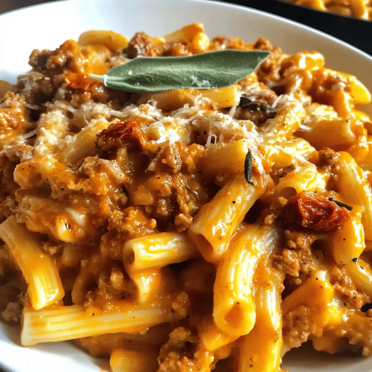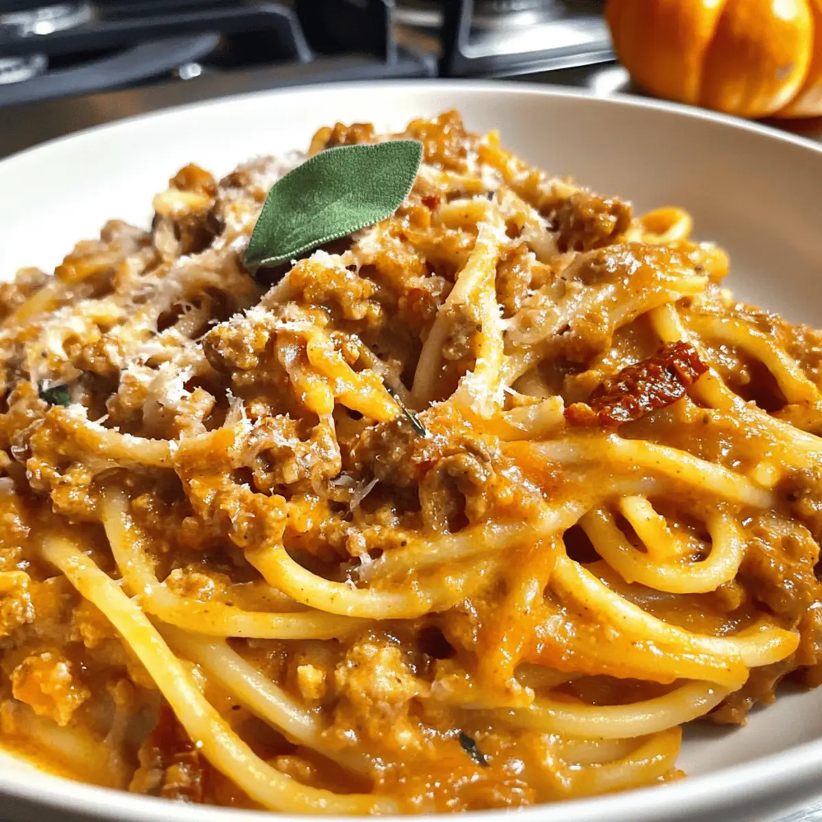 Als ich neulich in meinem gemütlichen Küchenbereich saß, wurde ich von dem verlockenden Aroma des Herbstes überkommen—es war die perfekte Zeit für eine warme, einladende Mahlzeit. Ich stellte mir vor, wie eine cremige Kürbis Bolognese darauf wartet, auf dem Tisch zu landen: eine köstliche Variante der klassischen Bolognese, die nicht nur gesund ist, sondern auch alle Trostgeschmäcker vereint. Diese Kürbis Bolognese ist ideal für die kühlen Abende im Herbst, vereint die Süße von Kürbis und sonnengetrockneten Tomaten und bringt gleichzeitig eine nahrhafte Portion Gemüse auf den Teller. Außerdem lässt sich das Rezept schnell zubereiten und ist perfekt für Vegetarier, die eine herzhafte Mahlzeit suchen. Bist du bereit, den Herbst mit dieser fantastischen Mischung aus Aromen und Texturen zu feiern? Warum ist Kürbis Bolognese so besonders? Einzigartiger Geschmack: Die Kombination von süßem Kürbis und herzhaften tomatigen Aromen sorgt für ein Geschmackserlebnis, das einfach in den Herbst passt. Gesunde Zutaten machen dieses Gericht nicht nur lecker, sondern auch nahrhaft, ideal für jeden, der auf Protein und Vitamine achtet. Routinierte Einfachheit: Die Zubereitung ist kinderleicht und erfordert keine besonderen Kochkünste – perfekt für eine schnelle, aber befriedigende Mahlzeit. Vielseitig: Ob mit Fleisch oder als vegetarische Variante mit Linsen, diese Bolognese passt sich deinen Vorlieben an. Zusammen mit einem frischen Salat oder knusprigem Brot wird es zum Höhepunkt jedes Essens! Kürbis Bolognese Zutaten Für das Öl und die Aromen Olivenöl – Unverzichtbar für das Anbraten; verwende weniger für eine gesündere Option. Sonnengetrocknete Tomaten – Fügen Süße und Umami hinzu; können durch frische Tomaten ersetzt werden. Knoblauch – Sorgt für aromatische Tiefe; frisch ist am besten, aber Knoblauchpulver funktioniert auch. Salbeiblätter – Bringen erdige Noten; können durch Thymian oder Oregano ersetzt werden, wenn sie nicht verfügbar sind. Für die Sauce Kürbispüree – Das Hauptdarsteller für Cremigkeit und Nährstoffe; Dosenkürbis ist eine großartige Wahl für das ganze Jahr. Hühnerbrühe (oder Gemüsebrühe) – Basis für die Sauce; verwende natriumarme Brühe für gesündere Gerichte. Getrocknetes Basilikum – Verstärkt den italienischen Geschmack; frisches Basilikum kann einen frischeren Geschmack bringen. Gemahlener Zimt – Sorgt für Wärme und Komplexität; kann weggelassen oder reduziert werden, um die Süße zu minimieren. Gemahlenes Fleisch (Rind/Türkei) oder Linsen – Für Eiweiß; gemahlenes Truthahn ist leichter, Linsen machen es vegetarisch. Zwiebel – Unverzichtbar für die Geschmacksbasis; gelbe oder weiße Zwiebeln sind bevorzugt. Karotten – Fügen Süße und Textur hinzu; können durch Paprika oder Zucchini ersetzt werden. Sellerie – Sorgt für Knackigkeit und geschmackliche Tiefe. Trockener Weißwein – Zum Ablöschen und Geschmacksverstärken; für eine alkoholfreie Version weglassen. Zerkleinerte Tomaten – Basis für die Sauce; wähle eine Sorten ohne zugesetzten Salz für mehr Gesundheit. Milch – Macht die Sauce cremig; Vollmilch für mehr Fülle oder pflanzliche Alternativen verwenden. Schwarzer Pfeffer – Zum Würzen; nach Geschmack anpassen. Für die Pasta und das Topping Pasta – Jede Art eignet sich; Kichererbsenpasta erhöht die Nährstoffe. Parmesankäse – Zum Garnieren; kann durch Nährhefe für eine milchfreie Option ersetzt werden. Diese Kürbis Bolognese ist nicht nur eine wohltuende Umarmung für die Sinne, sondern bietet auch eine nahrhafte Abwechslung zu traditionellen Rezepten. Viel Spaß beim Kochen! Step-by-Step Instructions für Kürbis Bolognese Step 1: Aromen anbraten Erhitze einen mittleren Topf bei mittlerer bis niedriger Hitze und gib einen Schuss Olivenöl hinein. Füge die sonnengetrockneten Tomaten, den gehackten Knoblauch und die Salbeiblätter hinzu und brate alles für etwa 1 Minute an, bis die Aromen duften und der Knoblauch leicht goldbraun wird. Step 2: Kürbis und Brühe hinzufügen Rühre das Kürbispüree, die Hühner- oder Gemüsebrühe, das getrocknete Basilikum und den gemahlenen Zimt unter die angebratenen Zutaten. Lass die Mischung für etwa 15 Minuten bei niedriger Hitze köcheln, bis sie leicht eindickt und die Aromen gut miteinander verbunden sind. Step 3: Fleisch anbraten Während die Kürbis Bolognese köchelt, erhitze in einem großen Topf etwas Olivenöl bei mittlerer Hitze und füge das gemahlene Fleisch (oder die Linsen) hinzu. Brate es ca. 5-7 Minuten an, bis es durchgegart und bräunlich ist. Lass überschüssige Flüssigkeit abtropfen und stelle das Fleisch beiseite. Step 4: Gemüse anbraten Gib etwas mehr Olivenöl in denselben großen Topf und füge die gewürfelte Zwiebel, die Karotten und den Sellerie hinzu. Sauté alles ca. 8-10 Minuten lang, bis das Gemüse weich ist und die Zwiebel glasig wird. Diese Mischung verleiht der Kürbis Bolognese bedeutenden Geschmack. Step 5: Fleisch und Wein hinzufügen Füge das gebratene Fleisch zurück in den Topf mit dem Gemüse und gieße den trockenen Weißwein dazu. Lasse alles 2 Minuten kochen, um den Wein zu reduzieren und die Aromen zu integrieren, während die Flüssigkeit verdampft und die Mischung leicht karamellisiert. Step 6: Sauce kombinieren Incorporiere die zerkleinerten Tomaten und die Kürbismischung aus dem Mixer in den großen Topf. Rühre alles gründlich um, sodass die Komponenten gleichmäßig verteilt sind, und bringe die Sauce zum Köcheln, damit sie gut durchzieht. Step 7: Cremigkeit hinzufügen Rühre die Milch in die Sauce ein und würze sie mit neuem schwarzen Pfeffer nach Geschmack. Lass die Kürbis Bolognese schließlich 30 bis 60 Minuten bei niedriger Hitze köcheln, bis sie eindickt und eine cremige Konsistenz erreicht. Step 8: Pasta kochen und servieren Setze derweil einen Topf mit Wasser auf, koche die Pasta gemäß den Anweisungen auf der Verpackung al dente und lasse sie 