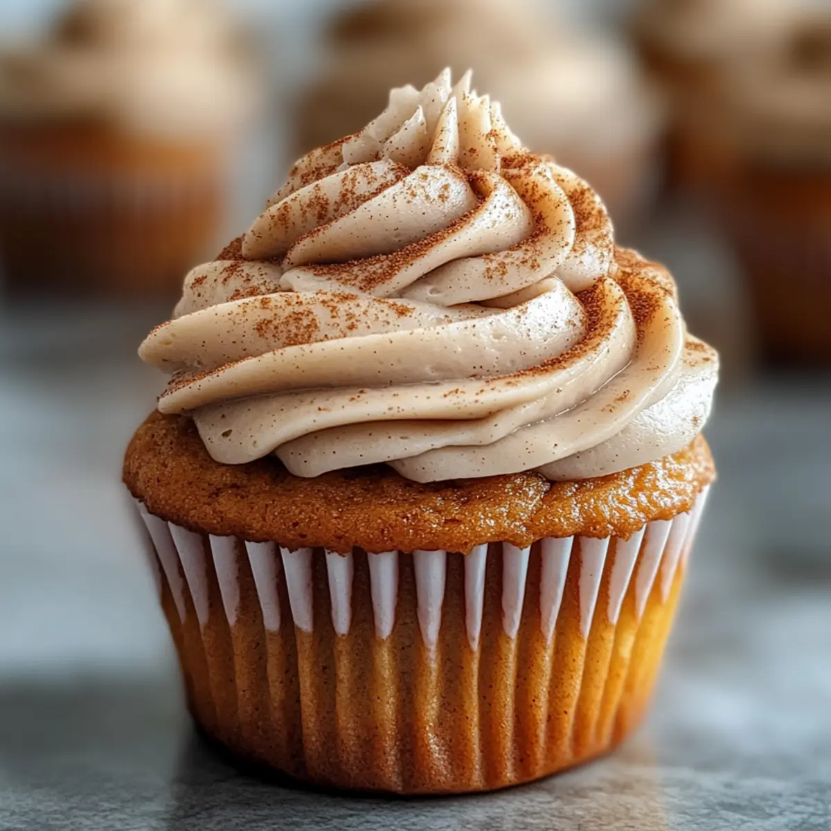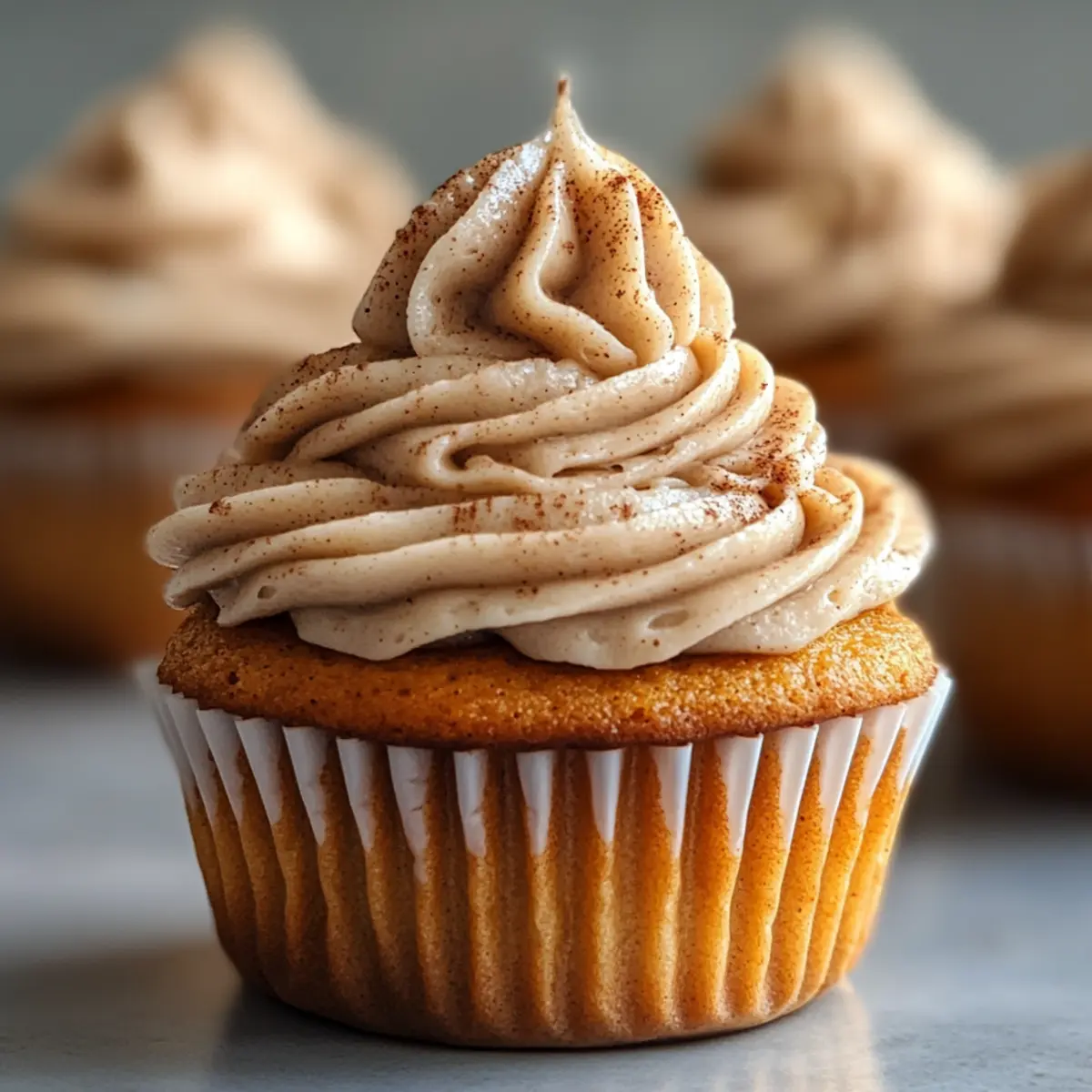 Kürbis Chai Cupcakes mit braunem Zucker Frosting vereinen herzhafte Süße und wärmende Gewürze – das perfekte herbstliche Dessert.