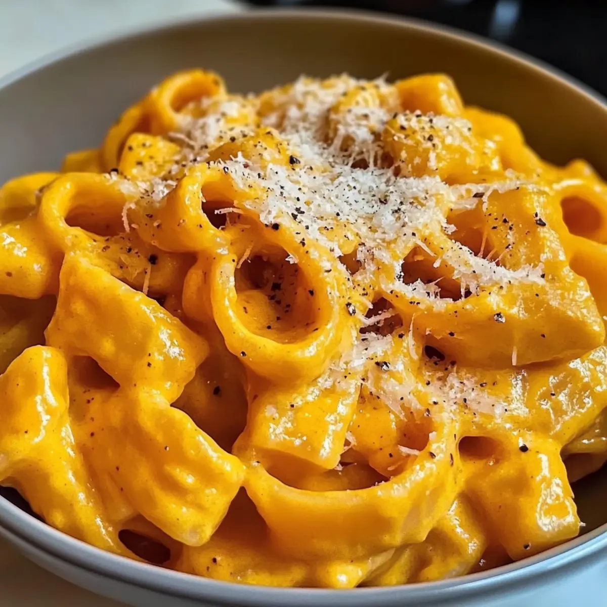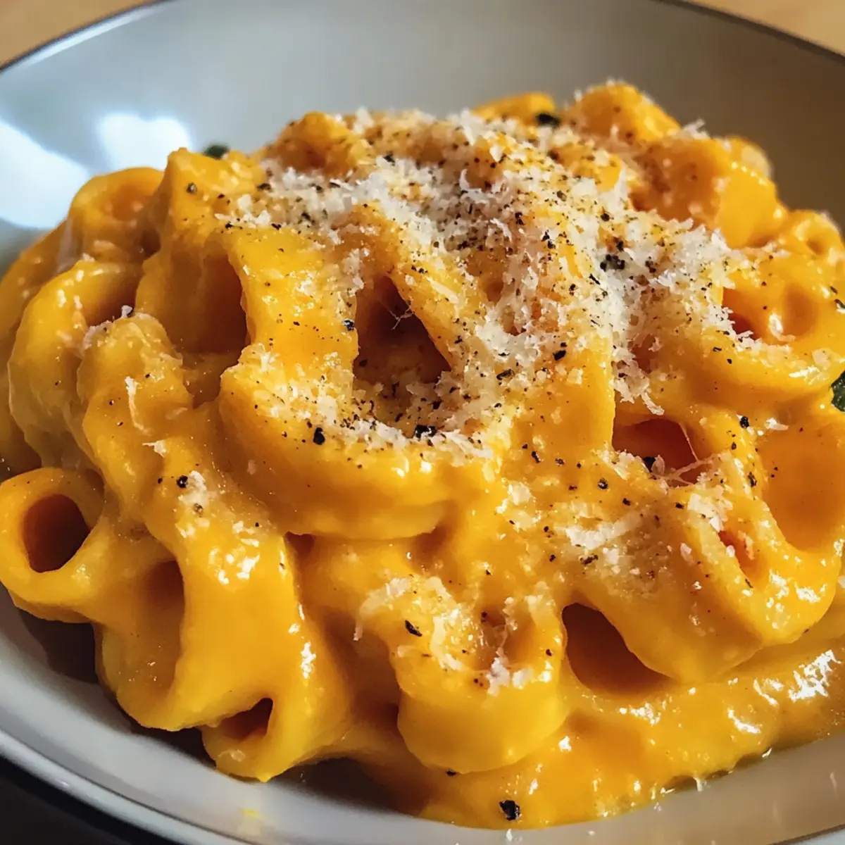 Der Herbst hat uns mit seiner bunten Pracht verzaubert, und während ich durch die Märkte schlendere, kommt mir eine Inspiration für ein Gericht, das einfach nur traumhaft ist: Kürbis Pasta mit Parmesan. Diese einfache und gesunde Rezeptur nutzt den Hokkaido-Kürbis, um eine cremige Sauce zu kreieren, die nicht nur köstlich, sondern auch schnell zubereitet ist. Der große Vorteil? Du kannst mit ein paar frischen Zutaten eine behagliche Mahlzeit zaubern, die in der kalten Jahreszeit besonders gut ankommt. Stell dir vor, wie die seidige Konsistenz der Sauce deine Pasta umhüllt und dir ein warmes, wohltuendes Gefühl gibt. Bist du neugierig, wie du dieses herbstliche Geschmackserlebnis nach Hause bringen kannst? Lass uns gleich mit der Zubereitung beginnen! Warum ist Kürbis Pasta so beliebt? Cremig und lecker: Die Kombination aus Hokkaido-Kürbis und Parmesan ergibt eine unwiderstehliche, samtige Sauce, die jeden Bissen zu einem Genuss macht. Schnelle Zubereitung: In nur wenigen Schritten hast du dieses herzhafte Gericht auf dem Tisch, ideal für hektische Wochenabende! Gesunde Wahl: Mit frischen Zutaten und ohne Sahne ist es nicht nur lecker, sondern auch nährstoffreich. Vielfältig kombinierbar: Ob mit gerösteten Nüssen oder frischem Salat, du hast die Freiheit, deine persönliche Note hinzuzufügen. Und wenn du etwas anderes ausprobieren möchtest, schau dir auch unsere Cremige Gnocchi Mit Spinat Und Parmesan an! Kürbis Pasta mit Parmesan Zutaten Entdecke die perfekten Zutaten für deine köstliche Kürbis Pasta mit Parmesan! Für die Sauce Hokkaido-Kürbis – Die Hauptzutat, die eine cremige Textur bietet. Substitution: Butternut oder Muskat-Kürbis für ähnliche Ergebnisse möglich. Zwiebeln – Verleiht der Sauce Süße und Tiefe. Keine Substitution nötig. Knoblauch – Bringt eine würzige Note. Frischer Knoblauch ist für den besten Geschmack empfehlenswert. Olivenöl – Zum Sautieren; sorgt für eine geschmackvolle Basis. Extra natives Olivenöl ist ideal. Gemüsebrühe – Verdünnt die Sauce und verstärkt den Geschmack. Hausgemachte oder natriumarme Brühe sorgt für bessere Kontrolle über den Geschmack. Parmesan – Liefert Cremigkeit und herzhaften Tiefgang. Substitution: Pecorino oder Grana Padano für einen stärkeren Geschmack. Muskatnuss – Ein Hauch davon wärmt das Gericht und verstärkt das Aroma. Frisch gerieben ist am besten. Pfeffer und Salz – Essentielle Gewürze, um die Aromen auszubalancieren. Nach Geschmack anpassen. Schritt-für-Schritt-Anleitung für Kürbis Pasta mit Parmesan Schritt 1: Zwiebeln und Knoblauch anbraten Erhitze in einer großen Pfanne bei mittlerer Hitze 2 Esslöffel Olivenöl. Füge die fein gehackten Zwiebeln und den gehackten Knoblauch hinzu und brate sie 3–5 Minuten lang, bis sie weich und goldbraun sind. Achte darauf, dass sie nicht verbrennen, damit der süße Geschmack erhalten bleibt. Schritt 2: Kürbis und Brühe hinzufügen Gib den gewürfelten Hokkaido-Kürbis in die Pfanne und rühre gut um. Gieße 250 ml Gemüsebrühe dazu und bringe die Mischung zum Kochen. Reduziere die Hitze und lasse alles 10–15 Minuten köcheln, bis der Kürbis zart ist und leicht mit einer Gabel zerdrückt werden kann. Schritt 3: Mischung pürieren Nehme die Pfanne vom Herd und lasse die Mischung etwas abkühlen. Übertrage die Kürbis-Mischung in einen Mixer oder benutze einen Stabmixer, um die Zutaten zu einer glatten, cremigen Konsistenz zu pürieren. Stelle sicher, dass die Mischung vollständig homogen ist, um eine samtige Sauce für die Kürbis Pasta mit Parmesan zu erhalten. Schritt 4: Sauce vollenden Gib die pürierte Kürbismischung wieder in die Pfanne und erhitze sie bei niedriger Temperatur. Rühre 100 g frisch geriebenen Parmesan und eine Prise Muskatnuss unter, bis der Käse geschmolzen ist und die Sauce cremig wird. Schmecke die Sauce mit Salz und frisch gemahlenem Pfeffer ab und passe die Gewürze nach deinem Geschmack an. Schritt 5: Pasta kochen und kombinieren Koche in einem großen Topf 250 g deiner Wahl an Pasta nach Packungsanweisung al dente. Gieße die Pasta ab und lasse etwas Kochwasser zurück. Mische die heiße Pasta unter die Kürbis Sauce und füge bei Bedarf einen Schuss Kochwasser hinzu, um die Konsistenz zu verbessern. Garniere die Kürbis Pasta mit Parmesan nach Belieben mit zusätzlichem Käse und frisch gemahlenem Pfeffer. Was passt zu Kürbis Pasta mit Parmesan? Der Herbst ist die perfekte Zeit, um ein herzerwärmendes Gericht zu genießen, das deine Geschmacksknospen erfreut und deine Küche mit herrlichem Aroma erfüllt. Frischer grüner Salat: Ein leichter, knackiger Salat mit einer zarten Vinaigrette bringt Kontrast und Frische zu der cremigen Pasta. Er sorgt für eine ausgewogene Mahlzeit, die nicht belastet. Knuspriges Baguette: Dieses klassische Begleitbrot eignet sich hervorragend, um die köstliche Sauce aufzusaugen. Der warme, weiche Kern und die knusprige Kruste schaffen ein perfektes Zusammenspiel der Texturen. Geröstete Nüsse: Ein paar geröstete Walnüsse oder Mandeln obenauf bringen einen nussigen Crunch, der sich wunderbar mit der samtigen Sauce verbindet und für zusätzliche Aromen sorgt. Würziger Weißwein: Ein frischer, trockener Weißwein, wie ein Sauvignon Blanc oder ein Pinot Grigio, ergänzt die Aromen der Kürbis Pasta perfekt und rundet das Geschmackserlebnis ab. Pekannuss-Karamell-Dessert: Beende das Essen mit einer kleinen Portion Pekannuss-Karamell-Dessert. Der süße, knusprige Genuss harmoniert wunderbar mit der herzhaften Pasta. Kürbis-Muffins: Lass die Herbstgeschmäcker weiterleben und serviere dazu saftige Kürbis-Muffins. Sie bieten eine zusätzliche süße Note und sind der ideale Auftakt oder Abschluss einer herbstlichen Mahlzeit. Kürbis Pasta mit Parmesan: Varianten entdecken Lass deiner Kreativität freien Lauf und entdecke köstliche Variationen für dein Kürbis Pasta Gericht! Vegan: Ersetze Parmesan durch Hefeflocken für einen käseähnlichen Geschmack und