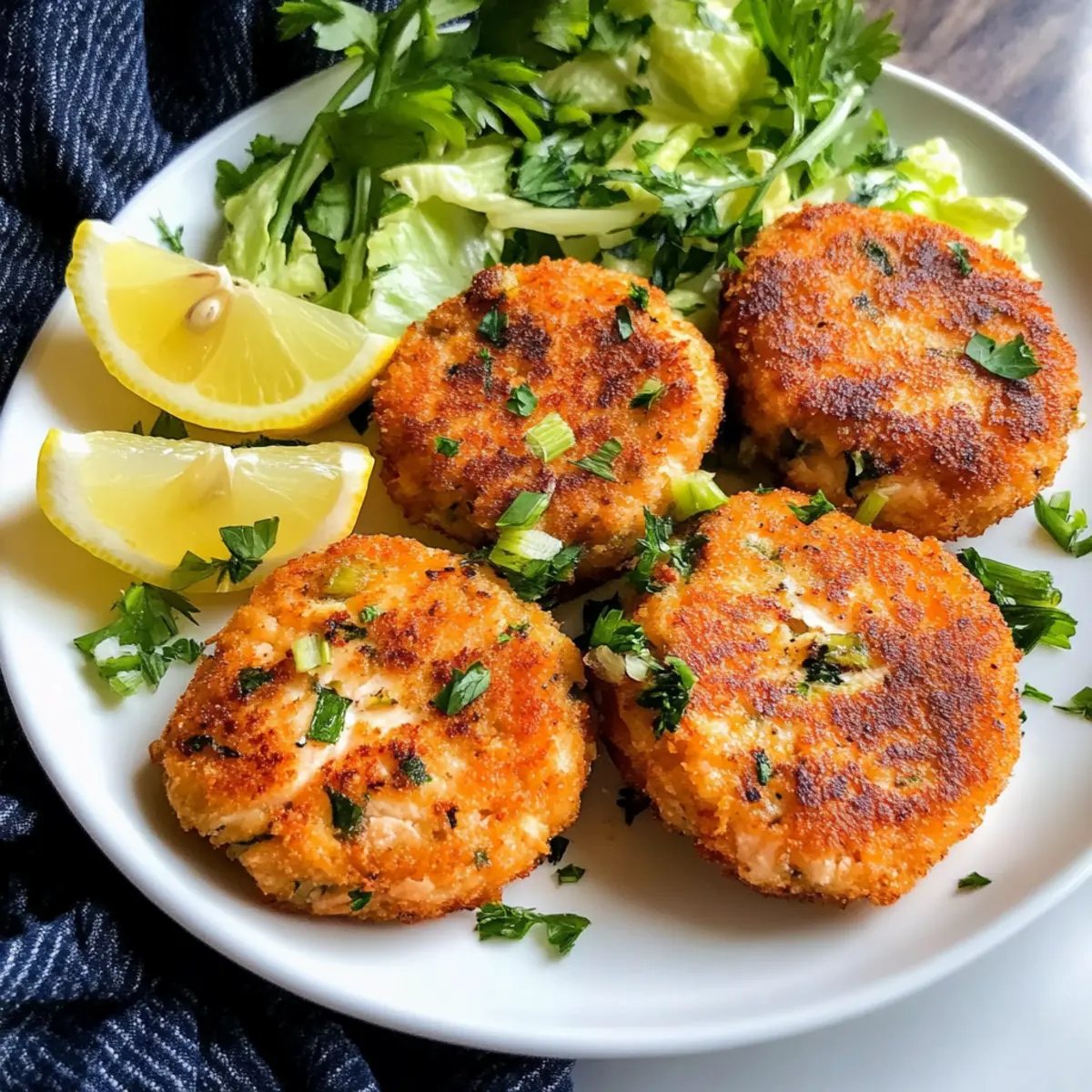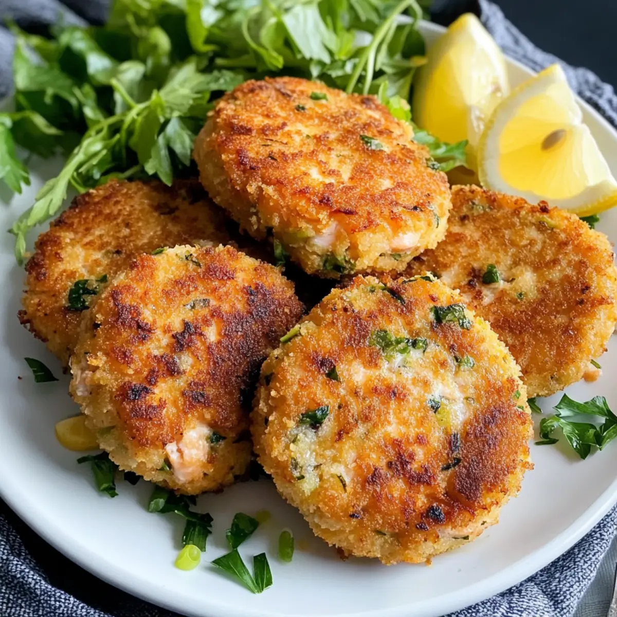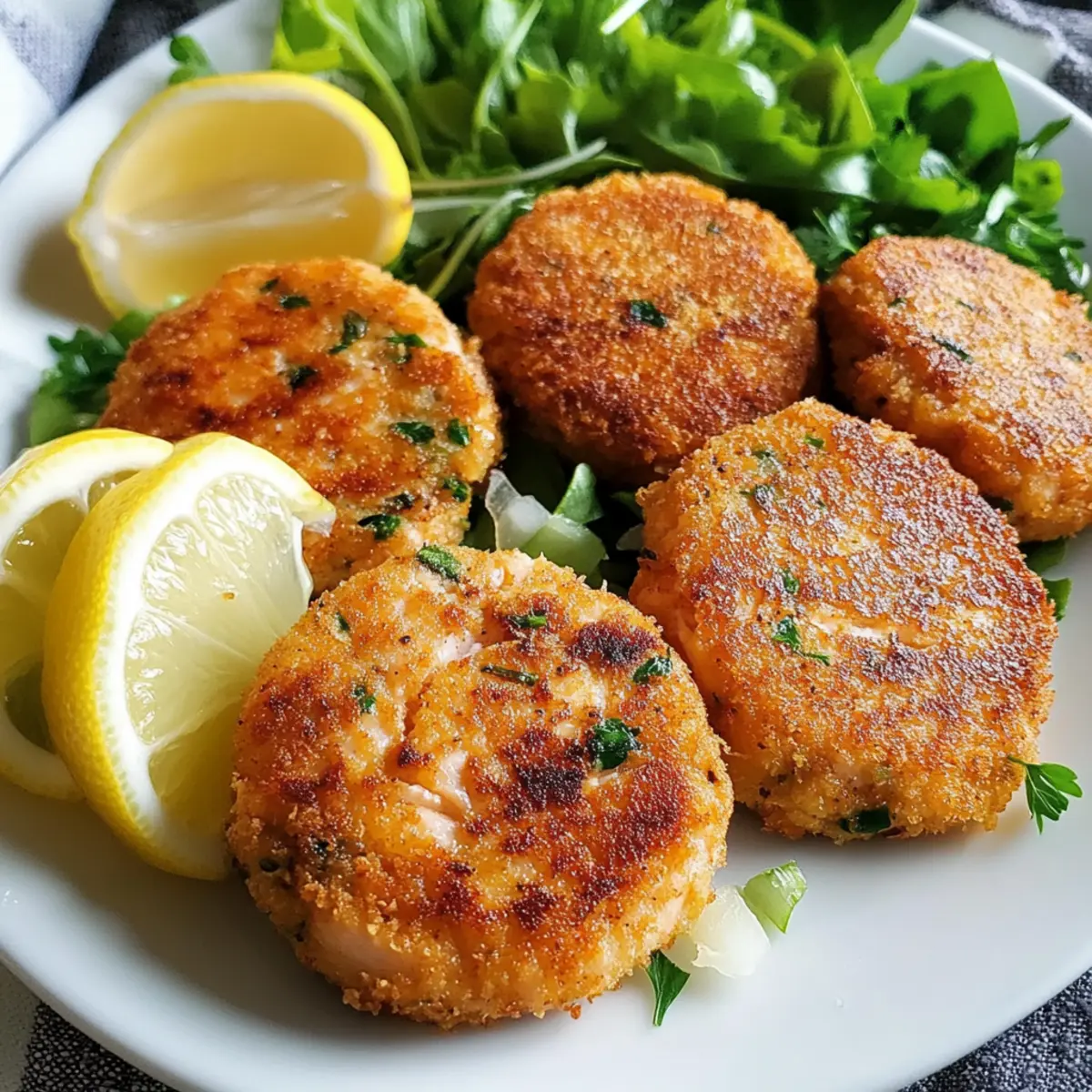 Es gibt Momente, in denen sich der Duft von frisch gebratenem Fisch wie eine Umarmung anfühlt, und genau das wird dir mit diesen Lachsfrikadellen mit Zitrone geboten! Sie sind außen knusprig und innen zart, perfekt für ein schnelles und köstliches Abendessen, das in weniger als 30 Minuten auf dem Tisch steht. Diese herzhaften Frikadellen sind nicht nur blitzschnell zuzubereiten, sondern auch äußerst anpassungsfähig – ein ideales Komfortessen für jede Gelegenheit. Mit der spritzigen Frische der Zitrone und aromatischen Kräutern machen sie nicht nur deinen Gaumen glücklich, sondern sind auch eine großartige Option für Meal Prep. Hast du schon einmal daran gedacht, wie einfach es sein kann, ein echtes Geschmackerlebnis zu kreieren? Lass uns gemeinsam eintauchen! Warum wirst du diese Lachsfrikadellen lieben? Einfachheit: Die Zubereitung ist unkompliziert und erfordert nur grundlegende Kochfähigkeiten, sodass du schnell in der Küche durchstarten kannst. Vielseitigkeit: Variiere die Kräuter oder füge Gemüse hinzu, um das Rezept an deine Vorlieben anzupassen. Probiere doch mal, die Frikadellen mit frischem Dill oder sogar etwas Zucchini zu bereichern! Schnell: In weniger als 30 Minuten hast du ein köstliches Abendessen auf dem Tisch, ideal für hektische Wochentage. Ernährungsfreundlich: Diese Frikadellen sind eine gesunde Alternative zu Fast Food. Ergänz sie mit einem frischen Salat oder Kartoffeln für eine vollwertige Mahlzeit! Aromatischer Genuss: Die Kombination aus Zitrone und frischen Kräutern sorgt für eine geschmackliche Explosion, die jedem Gericht einen besonderen Kick verleiht. Entdecke auch unsere Cremige Gnocchi mit Spinat und Parmesan für ein weiteres Geschmackserlebnis oder kreiere einen erfrischenden Begleiter mit unserem Erfrischenden Minz Zitronen Eistee. Zutaten für Lachsfrikadellen mit Zitrone • Für die Frikadellen: Hautloser Lachs – Er sorgt für den Hauptgeschmack; wild gefangener Lachs hat die beste Qualität. Panko-Brösel – Sorgen für die knusprige Textur; normale Semmelbrösel sind als Ersatz möglich. Frische Petersilie – Gibt einen herben Frischekick, der den Lachs wunderbar ergänzt. Frühlingszwiebeln – Für einen milden Zwiebelgeschmack; kannst auch Schnittlauch verwenden. Knoblauchzehe – Verstärkt die herzhaften Aromen; Knoblauchpulver ist ebenfalls eine Option. Mayonnaise – Sorgt für Feuchtigkeit und Intensität; griechischer Joghurt ist eine leichtere Alternative. Zitronenschale und -spalten – Entscheidend für die spritzige Geschmacksnote; Limetten verleihen einen etwas anderen Zitrusgeschmack. Dijon-Senf – Fügt eine subtile Würze hinzu; klassischer Senf kann verwendet werden, wenn Dijon nicht verfügbar ist. Old Bay Gewürz – Ein Klassiker für Meeresfrüchte, lässt sich durch Paprika und Cayenne ersetzen. Eigelb – Wirkt als Bindemittel; ein Flachseigelb ist eine vegane Alternative. Salz und Pfeffer – Essenziell zum Würzen; nach Belieben anpassen. Olivenöl – Zum Braten verwendet, sorgt für eine goldene Kruste; Avocadoöl ist ebenfalls eine gute Option. • Für die Beilage: Frischer Salat – Eine knackige Beilage, die die Frikadellen perfekt ergänzt. Röstkartoffeln – Ein weiterer leckerer Klassiker, der einfach zuzubereiten und sättigend ist. Tartarsauce oder Knoblauchelai – Sorgt für eine cremige Ergänzung. Diese Lachsfrikadellen mit Zitrone sind nicht nur einfach zuzubereiten, sondern auch ein Hochgenuss, den deine Familie lieben wird! Schritt-für-Schritt-Anleitung für Lachsfrikadellen mit Zitrone Step 1: Lachs vorbereiten Zunächst den hautlosen Lachs grob hacken und in eine große Schüssel geben. Füge die Panko-Brösel, die gehackte Petersilie, die geschnittenen Frühlingszwiebeln, die gepresste Knoblauchzehe, die Mayonnaise, die Zitronenschale, den Dijon-Senf, das Old Bay Gewürz, das Eigelb, sowie Salz und Pfeffer hinzu. Alles gut vermengen, bis eine homogene Masse entsteht – dies sollte etwa 5 Minuten dauern. Step 2: Patties formen Nun aus der Lachsmasse 8 gleich große Patties formen. Dabei ist es hilfreich, die Hände leicht anzufeuchten, damit die Masse nicht kleben bleibt. Die Patties in die verbleibenden Panko-Brösel drücken, sodass sie rundherum gut bedeckt sind. Dadurch erhalten die Lachsfrikadellen mit Zitrone eine besonders knusprige Oberfläche beim Braten. Step 3: Öl erhitzen Erhitze in einer großen Pfanne bei mittelhoher Temperatur etwa 2 Esslöffel Olivenöl. Lass das Öl heiß werden, bis es leicht zu schimmern beginnt. Dies sollte in etwa 2 Minuten geschehen. Achte darauf, nicht zu hohe Temperaturen zu wählen, damit die Patties gleichmäßig garen, ohne zu verbrennen. Step 4: Patties braten Lege vorsichtig 4 der panierten Patties in die heiße Pfanne. Brate sie für etwa 2-3 Minuten auf jeder Seite an, bis sie goldbraun und knusprig sind. Achte darauf, sie nicht zu dicht zusammenzulegen, damit sie gleichmäßig braten können. Wiederhole dies mit den restlichen Patties, während du bei Bedarf weiteres Öl hinzufügst. Step 5: Abtropfen lassen und servieren Sobald die Lachsfrikadellen mit Zitrone schön gebräunt sind, nimm sie aus der Pfanne und lass sie auf Küchenpapier abtropfen. Dies hilft dabei, überschüssiges Öl zu entfernen und sorgt für eine knackige Textur. Serviere die Patties warm, garniert mit frischen Zitronenspalten für einen extra Frischekick. Lagerungstipps für Lachsfrikadellen mit Zitrone • Raumtemperatur: Lachsfrikadellen sollten nicht länger als 2 Stunden bei Raumtemperatur stehen bleiben, um die Frische zu bewahren. • Kühlschrank: Bewahre Reste in einem luftdichten Behälter bis zu 3 Tage im Kühlschrank auf. So bleiben die Frikadellen frisch und schmackhaft. • Gefrierfach: Ungekochte Lachsfrikadellen mit Zitrone können einzeln eingefroren werden. Friere sie zunächst auf einem Backblech ein, bevor du sie in einen Gefrierbeutel umpackst. So bleiben sie bis zu 3 Monate haltbar. • Aufwärmen: Zum Aufwärmen die Patties b