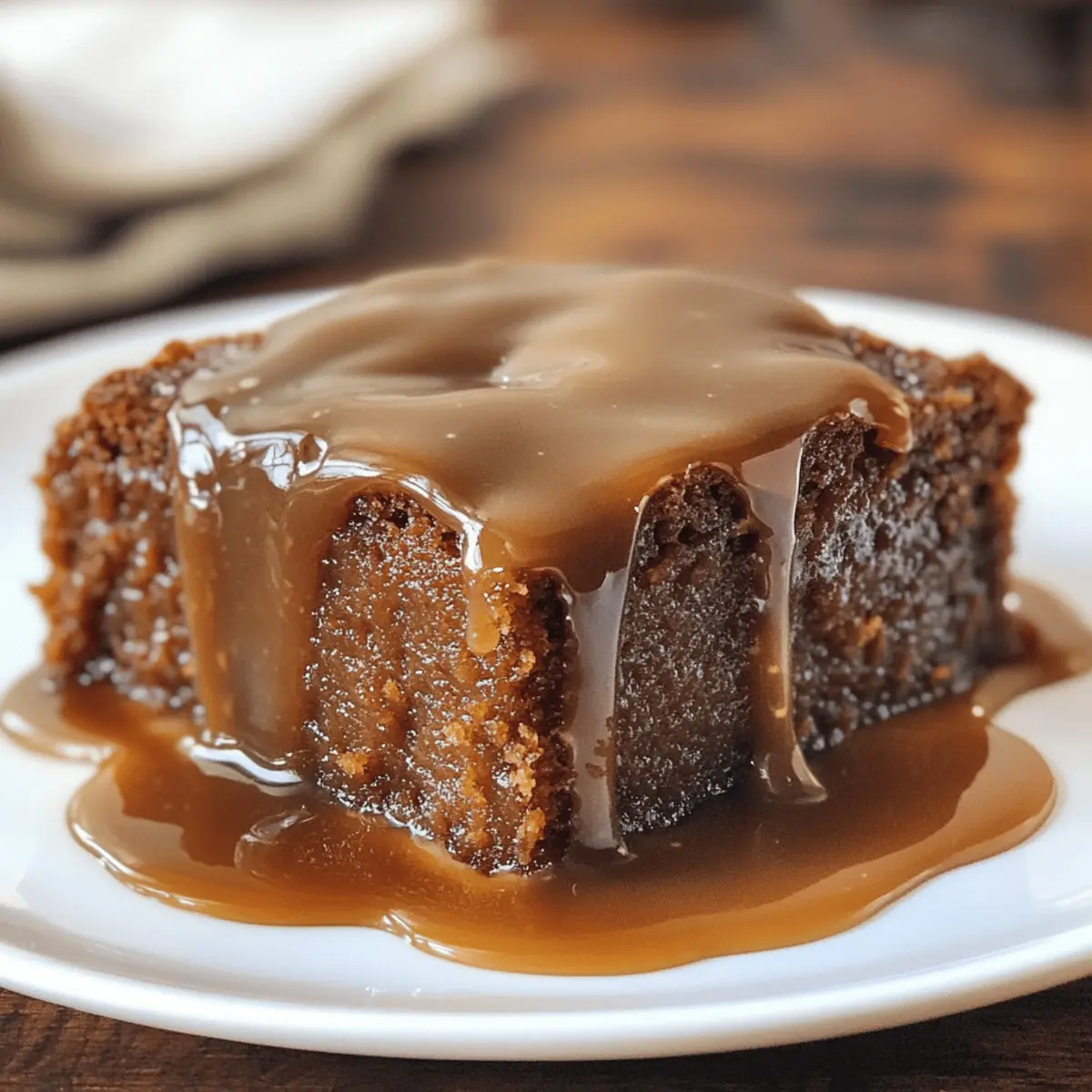 Lebkuchenpuddingkuchen mit köstlicher Toffeesoße