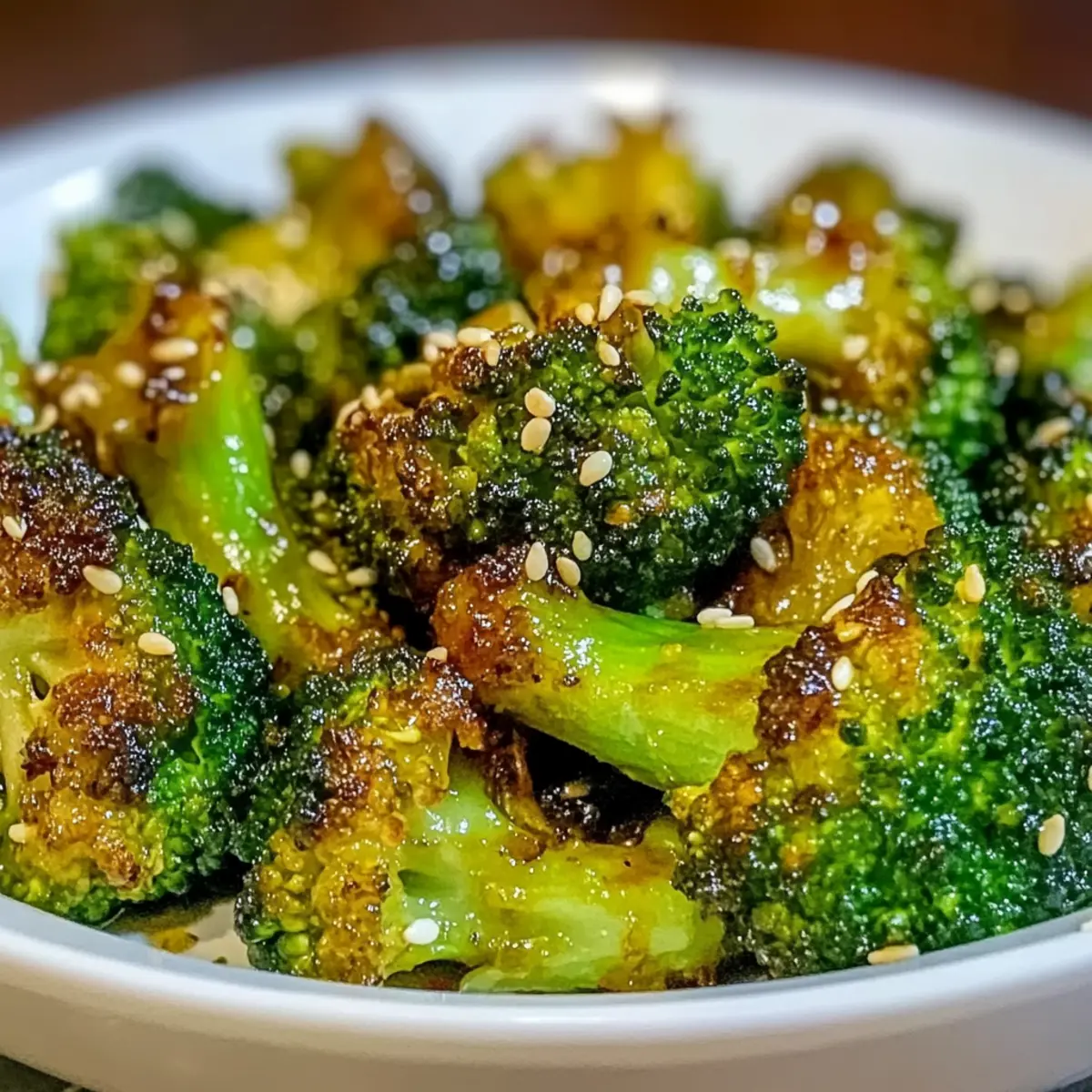 Stell dir vor, du genießt die warmen Strahlen der Sonne auf deiner Haut, während du den köstlichen Duft von frisch geröstetem Gemüse einatmest. Genau das erlebst du mit meinem Rezept für leckere Honig-Senf-geröstete Brokkoli! Diese einfache und gesunde Beilage bringt nicht nur Farbe auf deinen Tisch, sondern sorgt auch für eine harmonische Kombination aus süßen und pikanten Aromen, die selbst das einfachste Abendessen aufwertet. Mit einer Zubereitungszeit von nur wenigen Minuten und einem vollen Geschmack ist diese charmante Kreation der perfekte Weg, um deinen Gemüsekonsum spielerisch zu steigern. Bist du bereit, Brokkoli neu zu entdecken und deine Gäste zu begeistern? Warum wirst du dieses Rezept lieben? Einfachheit: Die Zubereitung ist kinderleicht und benötigt nur grundlegende Kochkenntnisse. In nur 20 Minuten zauberst du eine köstliche Beilage auf den Tisch. Gesunde Auswahl: Mit frischem Brokkoli und einer süßlichen Honig-Senf-Glasur ist dieses Gericht nicht nur schmackhaft, sondern auch nährstoffreich. Vielseitigkeit: Du kannst diese gerösteten Brokkoli mit verschiedenen Hauptgerichten kombinieren oder als Teil eines vegetarischen Buffets verwenden. Probiere es mal mit Zitronenbutterlachs Mit Kartoffeln für einen perfekten Dinner-Abend! Crowd-Pleaser: Dank des unverwechselbaren Geschmacks und der knackigen Textur wird dein Brokkoli selbst die kritischsten Esser begeistern! Experimentierfreude: Verleihe deinem Rezept mit weiteren Gemüsesorten wie Paprika oder Spargel eine persönliche Note. Lass deiner Kreativität freien Lauf und überrasche deine Gäste! Leckere Honig-Senf-geröstete Brokkoli Zutaten Hinweis: Diese leckere Honig-Senf-geröstete Brokkoli-Beilage wird dich und deine Gäste begeistern! Für den Brokkoli Frische Brokkoliröschen – Sie bilden die Basis dieses gesunden Gerichts; gleichmäßige Stücke sorgen für ein perfektes Röstergebnis. Olivenöl – Sorgt für eine geschmeidige Textur; bei Bedarf kann es durch Avocadoöl ersetzt werden. Für die Glasur Honig – Verleiht dem Gericht seine natürliche Süße; für eine vegane Option kann auch Ahornsirup verwendet werden. Dijon-Senf – Fügt eine würzige Note hinzu; gelber Senf ist ein geeigneter Ersatz, falls Dijon nicht verfügbar ist. Knoblauchpulver – Intensiviert den herzhaften Geschmack; frischer, gehackter Knoblauch kann für mehr Intensität genutzt werden. Salz und Pfeffer – Unerlässlich für die geschmackliche Balance; nach Belieben anpassen. Dekoration Sesamsamen – Optional für zusätzlichen Crunch und Geschmack; sie verleihen dem Gericht eine ansprechende Note. Schritt-für-Schritt-Anleitung für Leckere Honig-Senf-geröstete Brokkoli Step 1: Ofen vorheizen Heize deinen Ofen auf 220 °C (425 °F) vor. Diese hohe Temperatur sorgt dafür, dass die Röschen schön knusprig werden. Ein vorgeheizter Ofen ist entscheidend, um den perfekten Rösteffekt zu erzielen, der deinem Gericht eine köstliche Textur verleiht. Step 2: Brokkoli vorbereiten Wasche die frischen Brokkoliröschen gründlich und tupfe sie mit einem Küchentuch trocken. Achte darauf, dass alle Stücke gleich groß sind, damit sie gleichmäßig garen. So erzielst du die idealen knusprigen Ränder und zarten Herzen in deinem leckeren Honig-Senf-gerösteten Brokkoli. Step 3: Glasur zubereiten In einer großen Schüssel mische Olivenöl, Honig, Dijon-Senf, Knoblauchpulver, Salz und Pfeffer. Verquirle die Zutaten sorgfältig mit einem Schneebesen, bis eine homogene, glänzende Glasur entsteht. Diese Mischung wird deinem Brokkoli den süßen und würzigen Geschmack verleihen, der das Gericht besonders macht. Step 4: Brokkoli mit Glasur mischen Gib die vorbereiteten Brokkoliröschen in die Schüssel mit der Glasur und rühre sie vorsichtig um, bis sie gleichmäßig bedeckt sind. Stelle sicher, dass jede Röschen mit der köstlichen Honig-Senf-Glasur in Kontakt kommt. So bekommst du den vollen Geschmack im ganzen Gericht. Step 5: Brokkoli auf das Backblech legen Lege ein Backblech mit Backpapier aus und verteile die glasierte Brokkoli gleichmäßig in einer einzigen Schicht darauf. Verwende genügend Platz zwischen den Röschen, damit sie beim Rösten nicht dampfen und schön knusprig werden können. So gelingt dir der perfekte Leckere Honig-Senf-geröstete Brokkoli. Step 6: Brokkoli rösten Schiebe das Backblech in den vorgeheizten Ofen und lasse die Brokkoli-Röschen etwa 15 bis 20 Minuten rösten. Überprüfe den Garzustand nach 15 Minuten; die Röschen sollten zart und an den Rändern leicht goldbraun sein. Achte darauf, sie nicht zu lange zu garen, um eine optimale Textur zu gewährleisten. Step 7: Servieren und garnieren Nehme den Brokkoli aus dem Ofen und lasse ihn kurz abkühlen. Optional kannst du frisch geröstete Brokkoli-Röschen mit Sesamsamen bestreuen, um zusätzliche Knusprigkeit und einen tollen Look zu erzielen. Serviere deinen leckeren Honig-Senf-gerösteten Brokkoli sofort und genieße den köstlichen Geschmack! Aufbewahrungstipps für Leckere Honig-Senf-geröstete Brokkoli Zimmertemperatur:: Serviere die frisch gerösteten Brokkoli am besten sofort, um die optimale Knusprigkeit zu genießen. Bei Zimmertemperatur nicht länger als 1 Stunde stehen lassen. Kühlschrank:: Platziere die restlichen Brokkoliröschen in einem luftdichten Behälter. Im Kühlschrank sind sie bis zu 3 Tage haltbar. Achte darauf, sie gut abzudecken, um Austrocknung zu vermeiden. Einfrieren:: Wenn du mehr Brokkoli zubereitet hast, kannst du ihn auch einfrieren. Lege die abgekühlten Röschen in einen gefriergeeigneten Behälter; sie halten sich bis zu 2 Monate. Vor dem Servieren, auftauen und erneut im Ofen aufwärmen. Erwärmen:: Um die besten Röstresultate zu erzielen, erwärme die Brokkoli-Röschen im Ofen bei 180 °C (350 °F) für etwa 10–15 Minuten, bis sie wieder knusprig sind. Variationen & Alternativen für Leckere Honig-Senf-geröstete Brokkoli Entdecke, wie du dieses köstliche Rezept nach deinem Geschmack anpassen k