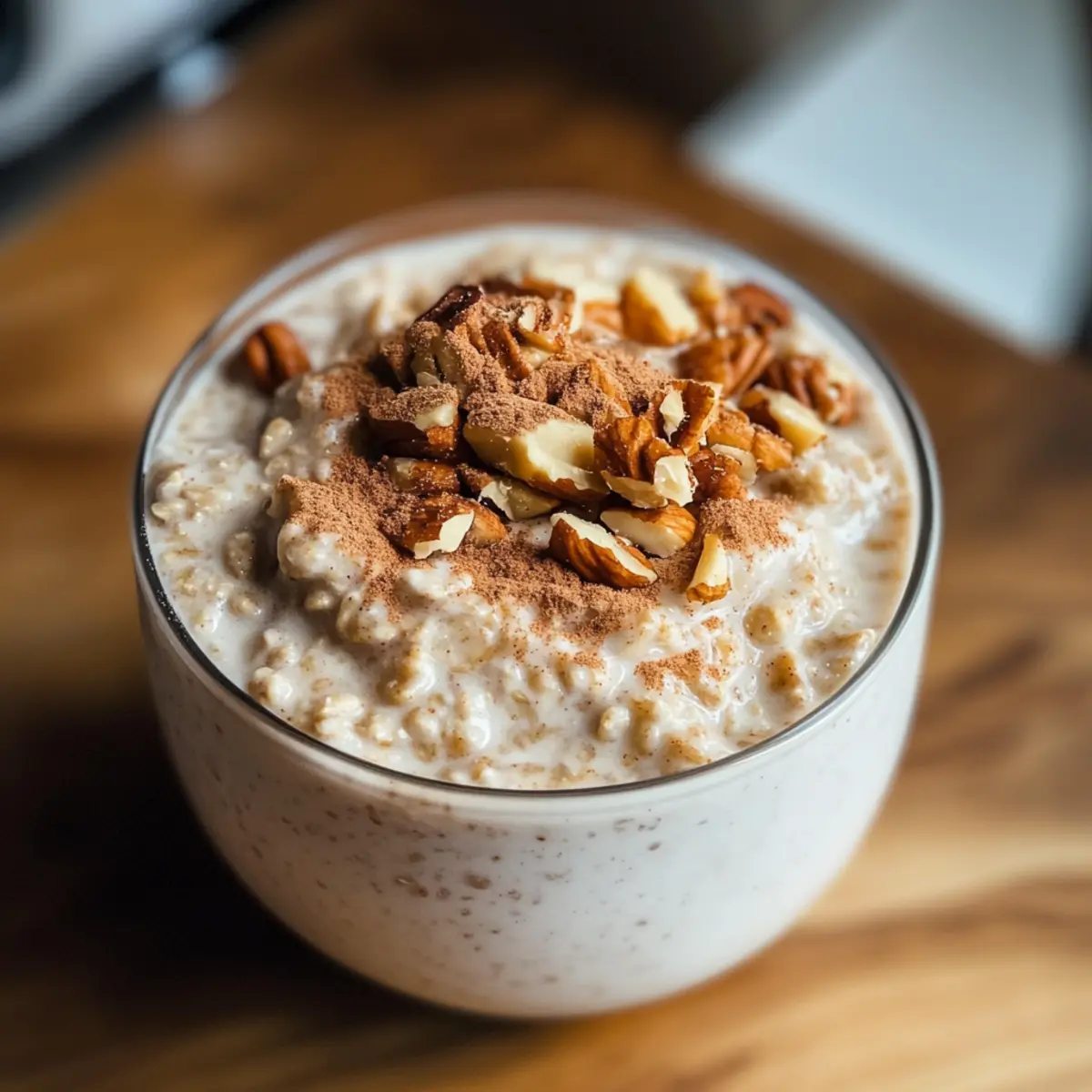 Eine Tasse dampfender Kaffee und der verführerische Duft von Zimt in der Luft – das klingt nach einem perfekten Morgen, oder? Mit meinen leckeren Zimtschnecken Übernacht Haferflocken wird dieser Traum Wirklichkeit, selbst wenn die Zeit für ein ausgiebiges Frühstück fehlt. Diese cremige Kreation kombiniert den unwiderstehlichen Geschmack von frisch gebackenen Zimtschnecken mit nahrhaften Zutaten, die deinen Tag nicht nur lecker, sondern auch gesund starten lassen. Ideal für geschäftige Wochentage oder entspannte Wochenenden: Du kannst sie am Vorabend zubereiten und am nächsten Morgen einfach genießen. Bist du bereit, dich von der Idee eines schnellen und köstlichen Frühstücks begeistern zu lassen? Lass uns gemeinsam in die Welt dieser leckeren Overnight Oats eintauchen! Warum wirst du dieses Rezept lieben? Einfachheit: Mit nur wenigen Zutaten und einfachen Schritten ist das Rezept für leckere Zimtschnecken Übernacht Haferflocken perfekt für alle, die gerne schnell ein gesundes Frühstück zubereiten möchten. Genuss ohne Reue: Jeder Löffel erinnert an frisch gebackene Zimtschnecken – aber ohne das schlechte Gewissen! Vielseitigkeit: Ob mit Joghurt, Nüssen oder frischem Obst, du kannst die Zutaten nach Belieben anpassen. Zeitersparnis: Bereite mehrere Portionen vor und genieße bis zu 5 Tage lang ein unkompliziertes Frühstück. Nährstoffreich: Mit Ballaststoffen und Proteinen ausgestattet, halten die Haferflocken dich bis zum Mittagessen satt. Entdecke auch, wie du diese köstliche Kreation umsetzen kannst mit meinen weiteren Rezeptideen. Zutaten für leckere Zimtschnecken Übernacht Haferflocken • Für die Basis • Haferflocken – Hauptbestandteil für die Textur und Ballaststoffe; verwende grobe oder schnelle Haferflocken. • Milch – Sorgt für Cremigkeit; ersetze sie durch Mandel-, Hafer- oder Kokosmilch für eine milchfreie Option. • Griechischer Joghurt – Macht die Mischung cremiger und fügt Protein hinzu; kann durch pflanzlichen Joghurt ersetzt werden, um es vegan zu machen. • Ahornsirup oder Honig – Liefert natürliche Süße; nach Geschmack anpassen, verwende Agavensirup als vegane Alternative. • Zimt – Schlüsselgewürz für den typischen Geschmack; frisch gemahlener Zimt wird für das beste Aroma empfohlen. • Vanilleextrakt – Verstärkt die Süße und die Geschmacksfülle; reiner Vanilleextrakt ist vorzuziehen. • Muskatnuss (optional) – Bietet eine warme Gewürznote, die den Zimt ergänzt; kann weggelassen werden, wenn nicht gewünscht. • Für die Toppings (optional) • Gehackte Nüsse – Fügt einen nussigen Crunch hinzu; Walnüsse oder Mandeln sind besonders lecker. • Getrocknete Früchte – Sorgt für zusätzliche Süße und Textur; Rosinen oder Cranberries funktionieren gut. • Zusätzlicher Joghurt – Erhöht die Cremigkeit und macht das Gericht noch sättigender. Solche leckeren Zimtschnecken Übernacht Haferflocken sind nicht nur köstlich, sondern auch einfach zuzubereiten – perfekt für dein nächstes Frühstück! Schritt-für-Schritt-Anleitung für leckere Zimtschnecken Übernacht Haferflocken Step 1: Trockenbestandteile vermengen In einer mittelgroßen Schüssel die Haferflocken, den Zimt und die Muskatnuss (falls verwendet) vermengen. Diese Mischung sorgt für die Basis der leckeren Zimtschnecken Übernacht Haferflocken und bringt den unverwechselbaren Zimtgeschmack in dein Frühstück. Verwende einen Löffel, um sicherzustellen, dass die Zutaten gut verteilt sind. Step 2: Feuchte Zutaten mischen In einer separaten Schüssel die Milch, den griechischen Joghurt, den Ahornsirup (oder Honig) und den Vanilleextrakt gut verrühren, bis alles gleichmäßig vermischt ist. Die cremige Konsistenz wird deinem Rezept die nötige Frische und Süße verleihen. Achte darauf, dass keine Klumpen entstehen, bevor du die nächste Schritt machst. Step 3: Trocken- und Feuchtzutaten kombinieren Jetzt die feuchte Mischung über die trockenen Zutaten gießen und gut umrühren, bis alles gut kombiniert ist. Achte darauf, dass die Haferflocken gleichmäßig mit der Flüssigkeit bedeckt sind, damit sie im Kühlschrank perfekt quellen können. Diese Mischung bringt die klassischen Aromen von Zimtschnecken in die leckeren Zimtschnecken Übernacht Haferflocken. Step 4: Portionieren und kühlen Die fertige Mischung gleichmäßig auf Gläser oder Behälter verteilen, die gut verschließbar sind. Mit einem Deckel oder Frischhaltefolie abdecken und mindestens 4 Stunden, besser über Nacht, im Kühlschrank ruhen lassen. So können die Haferflocken die Flüssigkeit absorbieren und die ideale Konsistenz erreichen. Step 5: Servieren und anpassen Vor dem Servieren die Overnights Oats gut umrühren und gegebenenfalls einen Schluck Milch hinzufügen, um die Mischung auf die gewünschte Konsistenz zu bringen. Nach Belieben mit gehackten Nüssen, getrockneten Früchten oder zusätzlichem Joghurt garnieren, um deinen leckeren Zimtschnecken Übernacht Haferflocken individuelle Akzente zu verleihen. Leckere Zimtschnecken Übernacht Haferflocken Varianten Lass deiner Kreativität freien Lauf und passe dieses Rezept nach deinem Geschmack an – die Möglichkeiten sind grenzenlos! Vegan: Tausche griechischen Joghurt gegen pflanzlichen Joghurt aus, um eine vegane Variante zwischen deinen köstlichen Zimtschnecken zu genießen. Jeder Bissen bleibt reichhaltig und cremig, und du musst keine Kompromisse eingehen! Obstboost: Füge frische Bananenscheiben oder gewürfelte Äpfel hinzu, um den Haferflocken eine fruchtige Note zu verleihen. Diese Ergänzungen erhöhen die Süße und sorgen für eine extra Portion Vitamine – ideal für den perfekten Start in den Tag. Zimt-Gewürz-Kick: Experimentiere mit weiteren Gewürzen wie Kardamom oder Ingwer für eine aromatische Überraschung. Eine Prise Ingwer verleiht dem Ganzen eine warme Würze, die an gemütliche Herbsttage erinnert. Proteinreiche Version: Ersetze einen Teil der Haferflocken durch Chia-Samen für zu