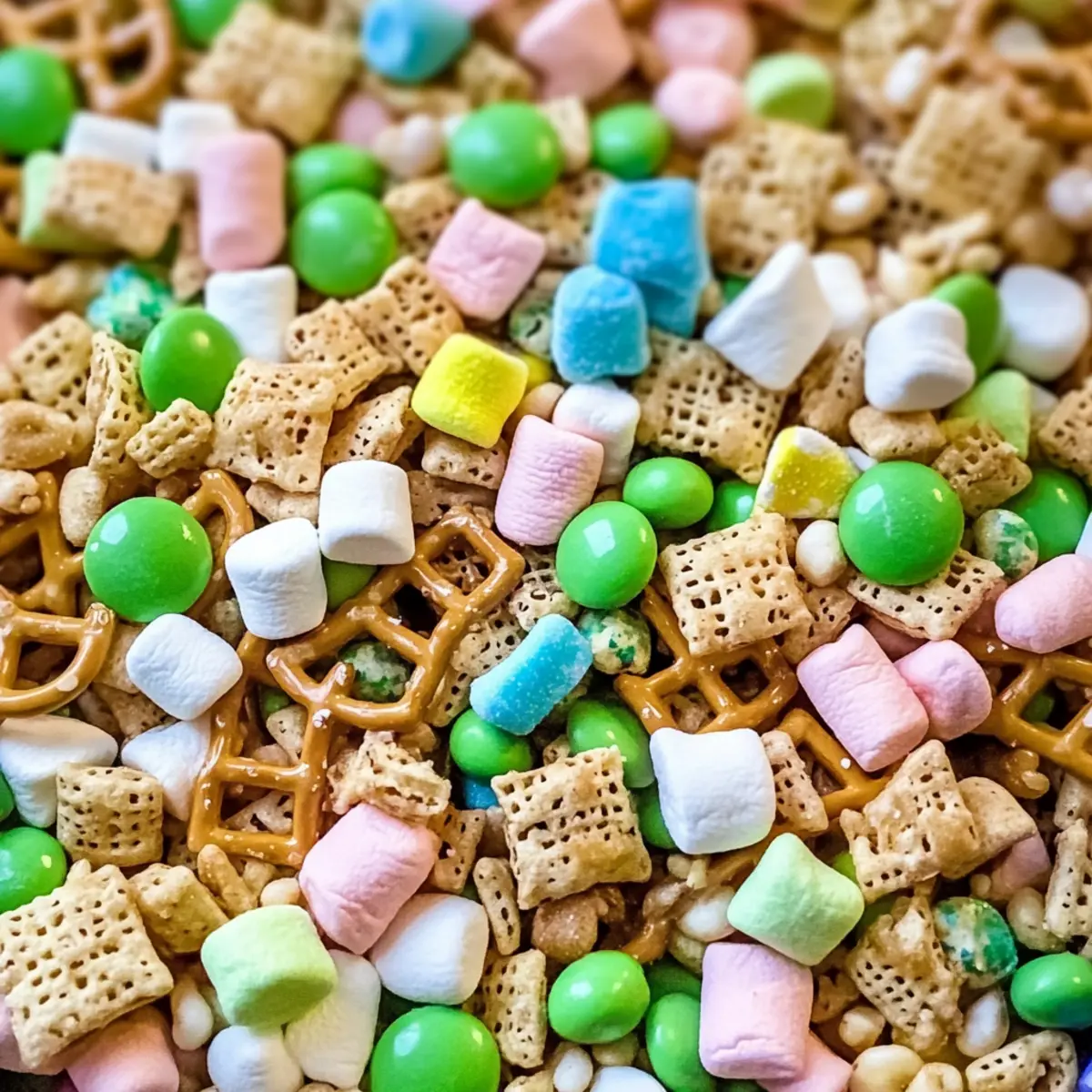 „Hast du schon mal etwas so Farbenfrohes und Leckeres gemacht, dass es selbst das grünste St. Patrick’s Day Fest in den Schatten stellt?“ Mit diesem Leprechaun Köder wirst du zur wahren Küchenzauberin oder zum Küchenzauberer! Diese schnelle und anpassbare Snackmischung vereint die knackigen Texturen von Chex und Brezeln mit der süßen Magie von Lucky Charms und M&M’s. Egal, ob du eine Feier planst oder einfach nur Lust auf etwas Farbenfrohes hast, dieser Mix bringt sofort gute Laune. Und das Beste daran? Er ist nicht nur ein Hit für Kinder, sondern begeistert auch die Erwachsenen! Bist du bereit, deinem nächsten Fest das gewisse Etwas zu verleihen? Lass uns gemeinsam in die Zubereitung eintauchen! Warum wirst du diesen Leprechaun Köder lieben? Leicht zuzubereiten: Mit nur wenigen Schritten und einfachen Zutaten zauberst du im Handumdrehen diesen bunten Snack. Vielfältig anpassbar: Du kannst die Süßigkeiten nach deinem Geschmack variieren! Ob mit anderen Schokoladen oder Nüssen, deiner Kreativität sind keine Grenzen gesetzt. Perfekte Mischung: Die Kombination aus süß und salzig sorgt für ein harmonisches Geschmackserlebnis, das perfekt zu jeder Feier passt. Blickfang: Die leuchtenden Farben des Leprechaun Köders bringen festliche Stimmung auf jede Tafel. Schnelle Zubereitung: Ideal, wenn du in letzter Minute eine Leckerei zaubern möchtest! Bereite die trockenen Zutaten voraus, um noch schneller fertig zu sein. Beliebtes Highlight: Dieser Snack macht nicht nur Kindern Spaß, sondern wird auch von Erwachsenen geliebt – ein wahrer Crowd-Pleaser für jede Party! Leprechaun Köder Zutaten • Hier sind die Zutaten, die du für deinen köstlichen Leprechaun Köder benötigst: Für die Mischung Chex Cereal – der knusprige Grundbaustein, am besten mit Rice oder Corn Chex für optimalen Crunch. Brezel-Stäbchen – fügen eine salzige Komponente und tolle Textur hinzu; jeder feste Brezelnform ist ein willkommener Ersatz. Lucky Charms Cereal – das Hauptzutat für Süße und visuelle Anziehungskraft; verwende die Originalversion für den besten Geschmack. Grüne M&M’s – bringen süßen Geschmack und festliche Farbe; mische gerne auch andere Farben für mehr Vielfalt. Lucky Charms Marshmallows – verstärken die Süße und fügen eine zähe Textur hinzu; Mini-Marshmallows sind eine tolle Alternative. Weiße Schokolade-Almond Bark – der Überzug, der alles vereint und Süße hinzufügt; Schokoladenstückchen sind auch eine Option. Weitere Zutaten für Variationen Nüsse – füge gehackte Nüsse hinzu, um zusätzliches Knusper und Proteine zu bekommen. Getrocknete Früchte – mische getrocknete Cranberries oder Aprikosen für einen fruchtigen Kontrast. Kokosnussflocken – verleihe dem Snack einen tropischen Touch mit ungesüßten Kokosflocken. Granola – ersetze die Chex durch dein Lieblingsgranola für eine herzhaftere Textur. Mit diesem bunten Leprechaun Köder bereitest du nicht nur einen leckeren Snack zu, sondern zauberst auch ein farbenfrohes Highlight für deine Gäste! Schritt-für-Schritt-Anleitung für Bunter Leprechaun Köder Schritt 1: Schokolade schmelzen Lege die weiße Schokolade-Almond Bark in eine mikrowellengeeignete Schüssel. Erhitze sie für 1 Minute bei mittlerer Hitze. Rühre anschließend um und erwärme sie in 20-Sekunden-Intervallen weiter, bis die Schokolade ganz glatt und luftig ist (insgesamt etwa 2-3 Minuten). Schritt 2: Trockene Zutaten kombinieren Nimm eine große Rührschüssel und gib darin die Chex-Cerealien, die Brezel-Stäbchen, das Lucky Charms-Cereal und die Hälfte der grünen M&M’s hinzu. Mit einem Spatel leicht umrühren, bis alles gut vermischt ist und die Farben fröhlich zusammenkommen. Schritt 3: Mischung überziehen Gieße die geschmolzene Schokolade über die trockene Mischung in der Rührschüssel. Rühre sanft, bis alle Zutaten gleichmäßig mit der Schokolade überzogen sind und eine harmonische, festliche Farbe entsteht. Achte darauf, dass alles gut eingehüllt ist. Schritt 4: Verbreiten und festigen Übertrage die Mischung auf ein mit Backpapier ausgelegtes Backblech. Breite sie in einer gleichmäßigen Schicht aus, damit alles gut trocknen kann. Streue die verbleibenden M&M’s und die Lucky Charms-Marshmallows gleichmäßig darüber und sorge so für eine farbenfrohe Dekoration. Schritt 5: Vollständig abkühlen lassen Lass die Mischung bei Raumtemperatur etwa 1 Stunde stehen, bis die Schokolade vollständig ausgehärtet ist. Du erkennst, dass sie bereit ist, wenn die Oberfläche fest und glänzend ist – perfekt für die nächsten Schritte! Schritt 6: In Stücke brechen Sobald die Mischung gut abgekühlt ist, nimm sie vorsichtig vom Backblech. Breche die gehärtete Mischung in mundgerechte Stücke. Die bunten Leckerbissen sind nun bereit, serviert zu werden und das Fest zu bereichern! Was passt gut zu deinem Leprechaun Köder? Mit dieser bunten Mischung aus süßen und salzigen Aromen kannst du ein echtes Festmahl kreieren, das allen schmeckt! Festliche Obstspieße: Obst wie Trauben und Ananas sorgen für eine erfrischende Ergänzung, die den süßen Snack perfekt ausgleicht. Diese farbenfrohen Spieße sind zudem ein echter Blickfang. Mini-Corn Dogs: Diese herzhaften Miniatur-Varianten bringen eine herzhafte Komponente ins Spiel, die den Geschmack des Leprechaun Köders wunderbar ergänzt. Der Kontrast zwischen süß und herzhaft ist einfach unwiderstehlich! Grüner Smoothie: Ein erfrischender grüner Smoothie aus Spinat, Bananen und Joghurt bietet einen gesunden, fruchtigen Ausgleich zu den knusprigen Süßigkeiten. Er bringt zusätzlich eine cremige Textur ins Spiel. Schokoladenfondue: Tauche Früchte oder Marshmallows in geschmolzene Schokolade, um die Süße des Leprechaun Köders zu verstärken und ein zusätzliches Geschmackserlebnis zu kreieren. Ein unterhaltsames Highlight für jede Feier! Salzige Nüsse: Eine Mischung aus gerösteten Nüssen bietet eine knusprige, salzige Komponente, die hervo
