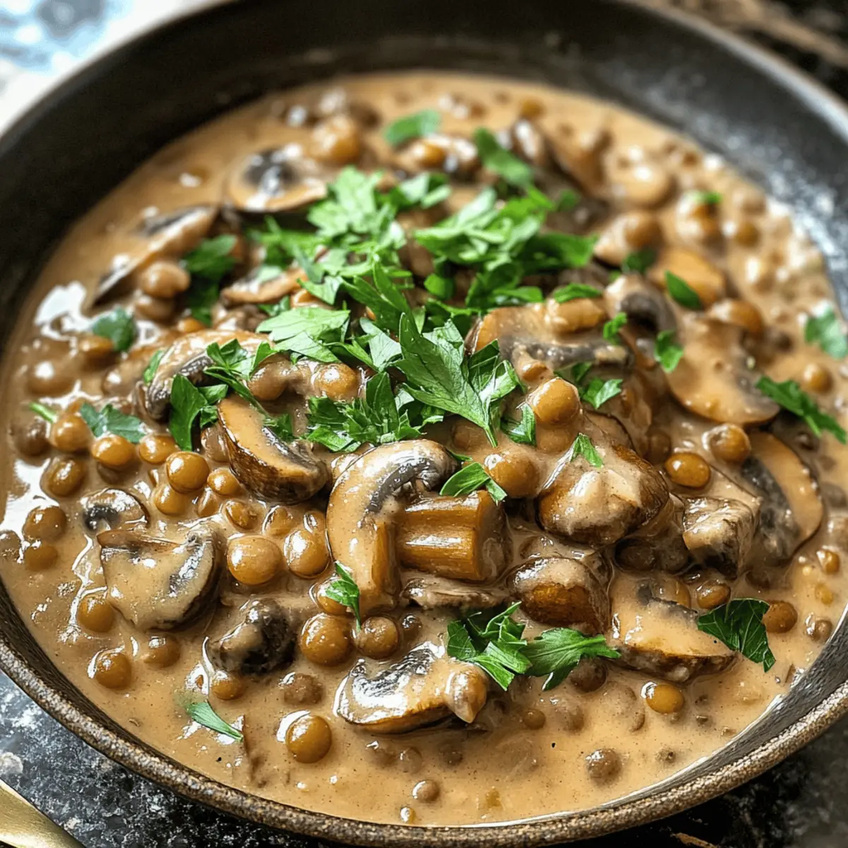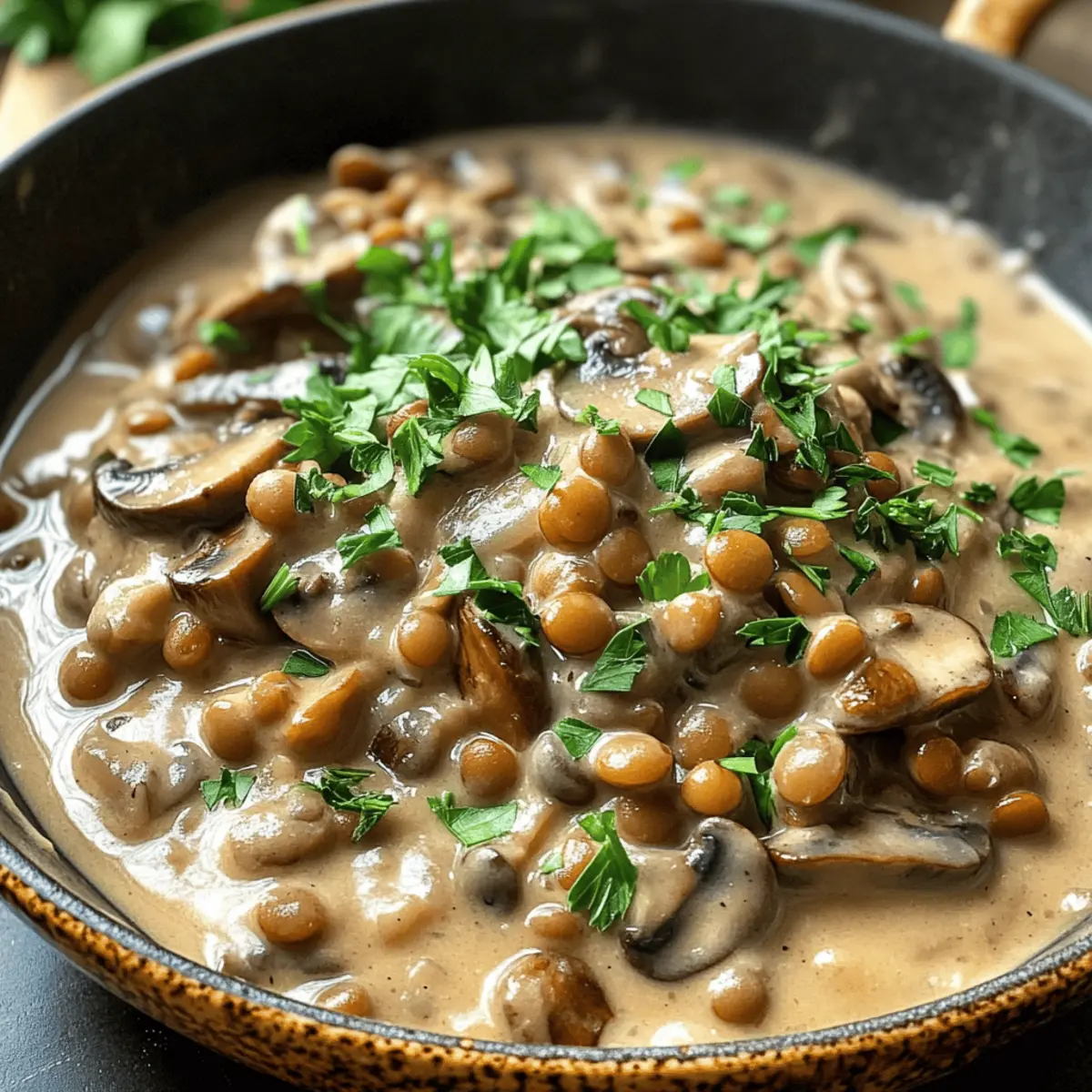 Es war ein kalter Abend, und der Duft von gebratenen Pilzen, der durch meine Küche zog, ließ meine Gedanken sofort zur Gemütlichkeit zurückkehren. Mit meinem Rezept für Linsen Pilz Stroganoff lade ich euch ein, eine köstliche vegetarische Variante des klassischen Stroganoffs zu entdecken. Die Kombination aus herzhaften Linsen und aromatischen Pilzen in einer cremigen Sauce ist nicht nur eine wahre Freude für den Gaumen, sondern auch perfekt für all jene, die eine schnelle, nahrhafte Mahlzeit zubereiten möchten. Diese kreative Speise bietet eine Vielzahl von Anpassungsmöglichkeiten, sodass sie auch tolle glutenfreie Alternativen unterstützt. Wer hat gesagt, dass Fleischgerichte das einzig Wahre sind? Lasst euch überraschen, wie dieses Rezept euren Esstisch bereichern kann! Warum ist dieser Stroganoff so besonders? Einzigartig, dieser Linsen Pilz Stroganoff verbindet den herzhaften Geschmack von Pilzen mit der nahrhaften Power von Linsen in einer cremigen Sauce. Schnell zubereitet, erfordert das Rezept nur einfache Zutaten und wenig Zeit in der Küche. Vielseitig, ihr könnt die Linsen nach Belieben austauschen oder sogar glutenfreie Optionen nutzen. Köstlich, die Kombination von Aromen und Texturen macht ihn zu einem perfekten Gericht für die ganze Familie. Gesund, ideal für alle, die eine nahrhafte, fleischlose Mahlzeit suchen! Schaut euch auch unsere anderen vegetarischen Rezepte an, um weitere Inspiration zu finden. Linsen Pilz Stroganoff Zutaten • Für einen köstlichen Linsen Pilz Stroganoff benötigt ihr folgende Zutaten: Für die Sauce Olivenöl – Ideal zum Anbraten der Zwiebeln, alternativ kann neutrales Öl verwendet werden. Zwiebel – Verleiht dem Gericht Süße und Tiefe; kann bei Bedarf durch Schalotten ersetzt werden. Salz – Betont den Geschmack; die Menge je nach Vorliebe anpassen. Butter – Zum Anbraten der Pilze verwendet; für eine vegane Option einfach pflanzliche Butter verwenden. Pilze – Sorgen für den typischen Umami-Geschmack; verschiedene Sorten wie Champignons oder Shiitake sind möglich. Knoblauch – Gibt der Sauce ein intensives Aroma; frischer Knoblauch ist bevorzugt. Dijon-Senf – Fügt eine angenehme Würze hinzu; kann durch körnigen Senf ersetzt werden. Schwarzer Pfeffer – Für zusätzlichen Geschmack; je nach Schärfevorlieben anpassen. Gemüsebrühe – Dient als Basis für die Sauce und sorgt für zusätzlichen Geschmack; selbstgemacht oder aus dem Handel ist beides möglich. Mehl – Wird zum Andicken der Sauce verwendet; für eine glutenfreie Variante kann es durch Maisstärke ersetzt werden. Wasser oder Brühe – Zum Anrühren der Mehlschwitze; am besten überschüssige Gemüsebrühe verwenden. Gekochte Linsen – Liefert Proteine und Textur; auch Konservierte eignen sich, müssen aber gut abgespült werden. Saure Sahne – Fördert die Cremigkeit der Sauce; für eine vegane Version kann sie durch Cashew-Creme ersetzt werden. Frische Petersilie – Dient als Garnitur und bringt Farbe ins Gericht. Optionale Beilagen Pürierte Kartoffeln, Reis oder Pasta – Perfekt als Grundlage für den Stroganoff; bieten eine schöne Sättigung. Schritt-für-Schritt-Anleitung für Linsen Pilz Stroganoff Step 1: Zwiebeln anbraten Erhitze das Olivenöl in einer tiefen Pfanne bei mittlerer Hitze. Gib die fein gehackten Zwiebeln und eine Prise Salz hinzu und brate sie für etwa 5–6 Minuten, bis sie goldbraun und weich sind. Rühre gelegentlich um, damit sie gleichmäßig garen und nicht ansetzen. Step 2: Pilze braten In einer separaten Pfanne die Butter bei mittlerer Hitze schmelzen. Füge die in Scheiben geschnittenen Pilze hinzu und streue eine Prise Salz darüber. Brate die Pilze etwa 5–6 Minuten lang, bis sie schön gebräunt und zart sind, dabei gelegentlich umrühren, um ein Ankleben zu verhindern. Step 3: Zutaten kombinieren und würzen Gib die gebratenen Pilze in die Pfanne mit den Zwiebeln. Rühre den gehackten Knoblauch, Dijon-Senf und schwarzen Pfeffer ein und lasse alles für etwa 1–2 Minuten anrösten, bis der Knoblauch aromatisch duftet. Gieße die Gemüsebrühe dazu und lasse die Mischung 5 Minuten sanft köcheln. Step 4: Mehlschwitze vorbereiten Mische in einer kleinen Schüssel das Mehl mit etwas Wasser oder Gemüsebrühe, bis eine glatte Paste entsteht. Achte darauf, keine Klümpchen zu bilden, damit die Sauce gleichmäßig dick wird. Diese Mischung wird später verwendet, um den Linsen Pilz Stroganoff zu binden. Step 5: Sauce andicken Füge die gekochten Linsen zur Gemüsebrühe-Mischung hinzu. Rühre langsam die vorbereitete Mehlschwitze ein und rühre dabei kontinuierlich um, damit sich die Sauce gut bindet. Lasse die Mischung für etwa 2–3 Minuten köcheln, bis sie die gewünschte Dicke erreicht hat. Step 6: Saure Sahne hinzufügen Reduziere die Hitze und mische die saure Sahne unter den Linsen Pilz Stroganoff. Rühre gut um, bis alles gut kombiniert ist und die Sauce cremig wird. Schmecke die Sauce ab und passe die Gewürze nach Bedarf an, um den perfekten Geschmack zu erzielen. Step 7: Servieren Garnieren den Linsen Pilz Stroganoff mit frisch gehackter Petersilie, um Farbe und Frische hinzuzufügen. Serviere das Gericht heiß über pürierten Kartoffeln, Reis oder Nudeln. Dieses köstliche Gericht ist perfekt für einen herzhaften Abend und wird garantiert jeden begeistern. Vorbereitung für Linsen Pilz Stroganoff: Zeit sparen leicht gemacht! Das Linsen Pilz Stroganoff ist ideal für die Vorbereitung, um dir an hektischen Tagen Zeit zu sparen! Du kannst die Zwiebeln und Pilze bis zu 3 Tage im Voraus anbraten und im Kühlschrank aufbewahren; diese Schritte sind entscheidend, um den intensiven Geschmack zu gewährleisten. Auch die gekochten Linsen können vorbereitet und in einem luftdichten Behälter gelagert werden. Wenn du bereit bist zu genießen, erhitze einfach die vorgefertigten Zutaten in der Pfanne, füge die restlichen Komponenten hinzu, wie die Sauce und die saure Sahne, und lass alles zusammen für c