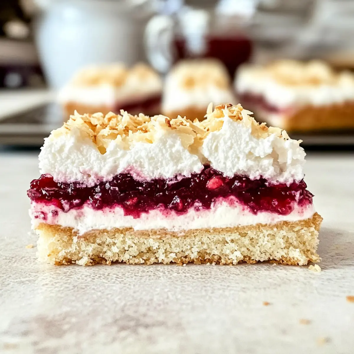 Wie oft ertappe ich mich dabei, ein Stückchen beißenden köstlichen Nostalgie zu kreieren, während ich in der Küche stehe? Genau so entsteht die Classic Louise Kuchen, ein fester Bestandteil der neuseeländischen Backtradition. Diese verführerische Leckerei begeistert mit einem buttrigen Shortbread-Boden, der von einer fruchtigen Himbeermarmelade und einem luftigen kokosnussigen Schweizer Meringue gekrönt wird. Besonders toll daran ist, dass sie einfach zuzubereiten ist und sowohl im Alltag als auch bei besonderen Anlässen wunderbar ankommt. Egal, ob Sie sie bei einer Teestunde oder einer festlichen Zusammenkunft servieren, diese Louise Kuchen wird sicherlich die Herzen Ihrer Gäste erobern. Welche Variationen des Rezepts könnten Ihr nächstes Backabenteuer noch spannender machen? Warum ist Louise Kuchen so besonders? Einzigartig: Louise Kuchen vereint die besten Elemente traditioneller Desserts zu einer unwiderstehlichen Leckerei, die einfach zuzubereiten ist. Vielseitig: Verpassen Sie nicht die Gelegenheit, mit verschiedenen Marmeladen oder Aromen wie Zitrone zu experimentieren. Nostalgisch: Jedes Stück ist eine Hommage an die neuseeländische Backkunst – ideal für Kaffeekränzchen oder festliche Anlässe. Textur: Der buttrige Boden, die süße Himbeerschicht und das fluffige Kokos-Meringue schaffen eine köstliche Kombination. Schnell und einfach: Perfekt für Hobbyköche – in kürzester Zeit genießen Sie ein fantastisches Ergebnis. Einladend: Ihre Gäste werden begeistert sein, und Sie werden häufig nach dem Rezept gefragt werden! Wenn Sie auf der Suche nach weiteren leckeren Rezepten sind, entdecken Sie auch die Erdbeer Kasekuchen Proteinballchen oder die Erdbeer Kaesekuchen Proteinbaellchen. Louise Kuchen Zutaten Für den Boden Butter – sorgt für Reichhaltigkeit und Feuchtigkeit; verwenden Sie ungesalzene Butter für eine bessere Kontrolle über den Salzgehalt. Zucker (Caster/Zucker) – süßt den Boden; Caster-Zucker löst sich effizienter auf, während normaler Zucker auch für die Meringue verwendet werden kann. Eier (2 Eigelbe) – sorgt für Zartheit im Boden; verwenden Sie frische Eier für die besten Ergebnisse. Allzweckmehl – verleiht dem Kuchen Stabilität; alternativ kann ein glutenfreies Mehl verwendet werden. Für die Himbeerschicht Himbeermarmelade – fügt die perfekte Süße und Säure hinzu; hausgemachte Marmelade wird empfohlen für intensiveren Geschmack. Für die Kokos-Meringue Eiklar (5) – sorgt für die luftige Konsistenz der Meringue; achten Sie darauf, dass keine Fettrückstände in der Schüssel sind. Zucker – süßt die Meringue; verwenden Sie feinen Zucker für die beste Textur. Kokosraspel – verleiht der Meringue Geschmack und Textur; verwenden Sie geraspelte Kokosnüsse für ein groberes Mundgefühl. Diese Zutaten sind die Grundbausteine für Ihre köstliche Louise Kuchen und garantieren ein Ergebnis, das sowohl Ihre Sinne als auch die Ihrer Gäste erfreuen wird! Schritt-für-Schritt-Anleitung für Louise Kuchen Step 1: Boden vorbereiten Heizen Sie den Ofen auf 180 °C vor. In einer Rührschüssel die ungesalzene Butter und den Zucker cremig schlagen, bis die Masse hell und schaumig ist. Fügen Sie die zwei Eigelbe hinzu und vermengen Sie alles gründlich. Danach das Allzweckmehl langsam unterrühren, bis eine homogene Masse entsteht. Den Teig gleichmäßig in eine mit Backpapier ausgelegte 23 cm x 23 cm Backform drücken. Step 2: Himbeerschicht hinzufügen Verteilen Sie die Himbeermarmelade gleichmäßig über den vorbereiteten Shortbreadboden. Stellen Sie sicher, dass die Marmelade bis zu den Rändern reicht, um ein schönes Geschmacksprofil zu erzielen. Diese süße, fruchtige Schicht wird wunderbar mit der Kokos-Meringue harmonieren, die Sie gleich zubereiten. Step 3: Meringue zubereiten Bereiten Sie ein Wasserbad vor, indem Sie einen Topf mit leicht simmerndem Wasser füllen. In einer hitzebeständigen Schüssel das Eiweiß und den Zucker kombinieren und über das warmhafte Wasserbad stellen. Whisk die Mischung sanft, bis der Zucker vollständig aufgelöst ist (ca. 5 Minuten). Achten Sie darauf, dass die Schüssel nicht mit Wasser in Berührung kommt. Step 4: Meringue schlagen Entfernen Sie die Schüssel vom Wasserbad und schlagen Sie die Eiweiß-Zucker-Mischung mit einem elektrischen Handmixer, bis sich steife Spitzen bilden (ca. 5-7 Minuten). Die Meringue sollte glänzend und stabil sein. Falten Sie die Kokosraspel vorsichtig unter, damit die Fluffigkeit erhalten bleibt. Step 5: Meringue auftragen und backen Löffeln Sie die Kokos-Meringue gleichmäßig über die Himbeerschicht und verteilen Sie sie mit einem Teigschaber. Stellen Sie sicher, dass die Meringue bis zu den Rändern reicht. Backen Sie die Louise Kuchen im vorgeheizten Ofen für etwa 30 Minuten, bis die Meringue leicht goldbraun wird und fest aussieht. Step 6: Abkühlen und Servieren Lassen Sie die Louise Kuchen in der Form abkühlen, um die Schichten nicht zu beschädigen. Schneiden Sie die gekühlte Kuchen in schöne quadratische Stücke und servieren Sie sie. Diese Kombination aus buttrigem Boden, fruchtiger Marmelade und luftiger Kokos-Meringue wird Ihre Gäste begeistern! Louise Kuchen Variationen und Anpassungen Lassen Sie Ihrer Kreativität freien Lauf und entdecken Sie, wie Sie dieses Rezept ganz nach Ihrem Geschmack anpassen können! Fruchtige Vielfalt: Ersetzen Sie die Himbeermarmelade durch Erdbeeren oder Aprikosen für eine fruchtige Abwechslung. Jede Marmelade bringt ihren eigenen Zauber ins Spiel. Nussig: Fügen Sie gemahlene Mandeln oder Walnüsse zur Meringue hinzu, um eine knusprige Textur und zusätzlichen Geschmack zu erhalten. Die Kombination von Nüssen und Meringue ist unwiderstehlich! Zitronige Frische: Mischen Sie etwas Zitronenschale in den Shortbread-Boden für ein erfrischendes Geschmacksprofil, das die Süße der Marmelade perfekt ausgleicht. Glutenfrei: Verwenden Sie glutenfreies Mehl, um eine perfekte glutenfreie Option zu krei