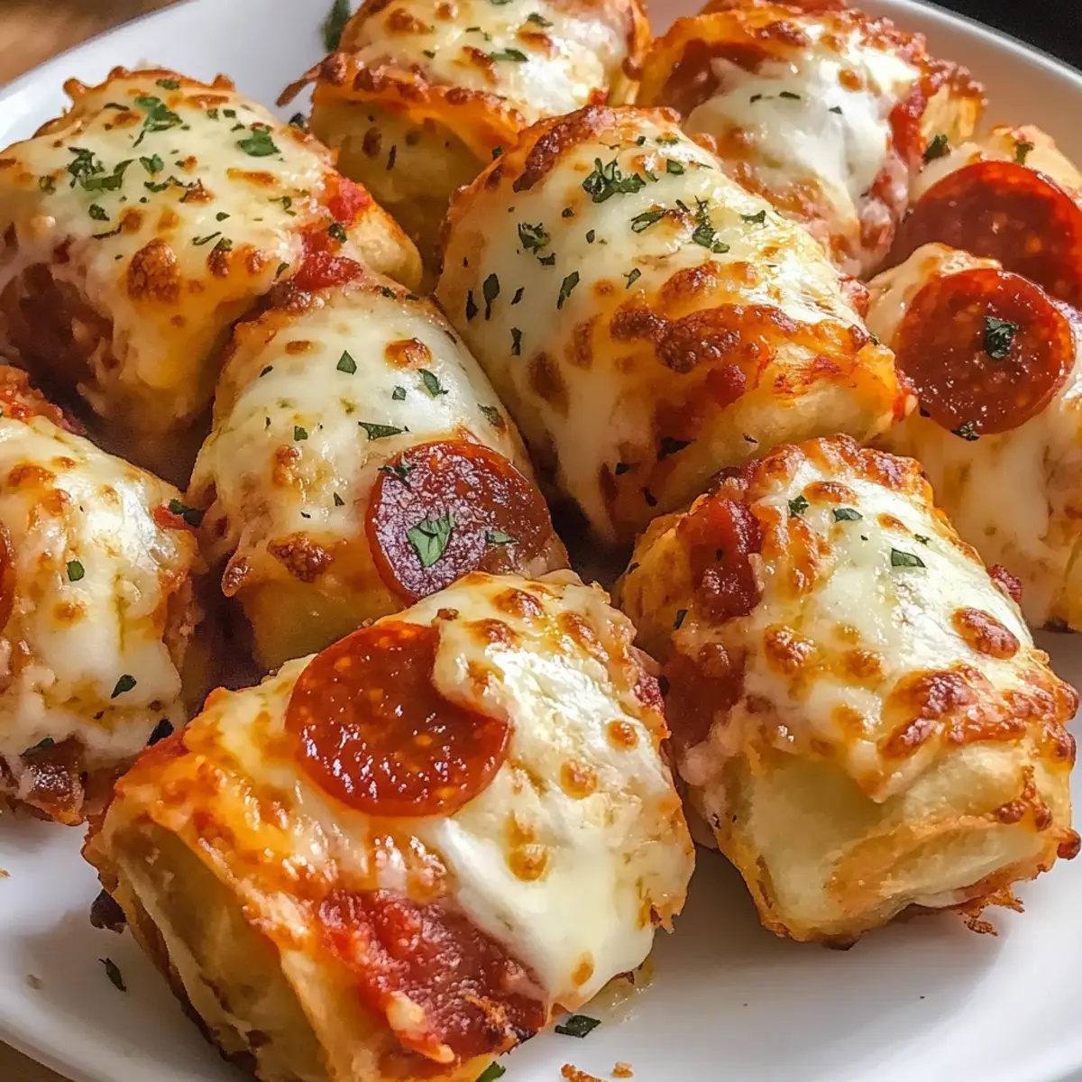 Beim ersten Biss in diese goldbraunen Luftfritteuse Pizza-Rollen komme ich sofort ins Schwelgen – der knusprige Teig umhüllt geschmolzene Mozzarella und würzigen Pepperoni, abgerundet mit italienischen Kräutern. Dieses Rezept ist nicht nur ein absolutes Muss für jede Snack-Situation, sondern begeistert auch mit seiner Einfachheit und Anpassungsfähigkeit. Egal, ob ich sie für einen geselligen Filmabend zubereite oder einfach nur für mich selbst nasche, sie sind der Inbegriff von Komfortessen. Und das Beste daran? In nur wenigen Minuten aus der Luftfritteuse serviert, sind sie immer ein Hit – perfekt für spontane Gäste oder den kleinen Hunger zwischendurch. Welche leckere Füllung wirst du ausprobieren? Warum solltest du diese Pizza-Rollen lieben? Einfachheit: Das Rezept ist unkompliziert und erfordert lediglich grundlegende Backfähigkeiten. Perfekt für Küche-Neulinge oder Profis! Vielseitigkeit: Du kannst mit verschiedenen Füllungen experimentieren – von würziger Wurst bis hin zu frischem Gemüse. Schneller Genuss: In nur 10 Minuten sind diese Snacks knusprig und bereit zum Servieren. Ideal für hektische Tage! Familienfreundlich: Diese Pizza-Rollen sind bei Groß und Klein beliebt, weshalb sie sich perfekt für Partys oder Spieleabende eignen. Lass die ganze Familie mithelfen und kreativ werden! Leckere Dips: Kombiniere sie mit einer Vielzahl von Dips wie Marinara-Sauce oder würzigem Aioli für ein geschmackvolles Erlebnis. Zutaten für Luftfritteuse Pizza-Rollen • Diese Zutaten machen deine Luftfritteuse Pizza-Rollen unwiderstehlich lecker! Für den Teig • Pizza-Teig – Die Basis; entweder selbstgemacht oder aus dem Supermarkt für mehr Komfort. Für die Füllung • Geriebener Mozzarella-Käse – sorgt für eine köstliche, schmelzende Füllung; pflanzlicher Käse ist eine tolle, milchfreie Alternative. • Pepperoni-Scheiben – bringt einen herzhaften Geschmack; kann durch zerbröselte Wurst oder Gemüse ersetzt werden. • Italienische Kräuter – intensiviert den Geschmack; frische Kräuter sind eine weitere gute Option. • Prise Salz – hebt den Geschmack der Zutaten hervor. Zum Braten • Olivenöl-Spray – verhindert das Ankleben und hilft, die Rollen schön braun zu färben. Für den Dip • Marinara-Sauce – der klassische Dip; du kannst auch Ranch, Knoblauchbutter oder würzige Aioli probieren. Mit diesen Zutaten zauberst du schnell und unkompliziert köstliche Luftfritteuse Pizza-Rollen, die perfekt zu jeder Gelegenheit passen! Schritt-für-Schritt-Anleitung für Luftfritteuse Pizza-Rollen Step 1: Pizza-Teig ruhen lassen Lass den Pizza-Teig bei Zimmertemperatur für etwa 20 Minuten ruhen. Dies ermöglicht, dass der Teig elastisch wird und sich leichter verarbeiten lässt. Währenddessen kannst du die Füllungen vorbereiten, damit alles bereit ist, wenn der Teig fertig ist. Step 2: Teig ausrollen und schneiden Bestäube eine Arbeitsfläche leicht mit Mehl und rolle den Teig gleichmäßig auf eine Dicke von etwa 0,5 cm aus. Schneide den ausgerollten Teig dann in 3 cm x 3 cm große Quadrate. Achte darauf, dass die Kanten sauber und gleichmäßig sind, um die Füllung später einzuschließen. Step 3: Füllung hinzufügen Lege einen Esslöffel geriebenen Mozzarella und einige Scheiben Pepperoni auf die Mitte jedes Teigstücks. Streue ein wenig italienische Kräuter und eine Prise Salz darüber. Diese Mischung sorgt für einen köstlichen Geschmack in deinen Luftfritteuse Pizza-Rollen und macht sie unwiderstehlich. Step 4: Rollen formen Falte die Teigstücke über die Füllung und drücke die Ränder gut zusammen, um die Rollen zu versiegeln. Du kannst die Ränder leicht anfeuchten, um sicherzustellen, dass sie beim Garen nicht aufgehen. Achte darauf, dass die Füllung vollständig eingekapselt ist, um ein Auslaufen zu vermeiden. Step 5: Luftfritteuse vorheizen Heize die Luftfritteuse auf 190 °C vor und lasse sie dafür etwa 5 Minuten laufen. Das Vorheizen ist wichtig, damit die Luftfritteuse Pizza-Rollen gleichmäßig garen und eine perfekte knusprige Textur erhalten. Step 6: Rollen anordnen Spray die Frittierkorb leicht mit Olivenöl, um ein Ankleben zu verhindern. Lege die vorbereiteten Pizza-Rollen in einer einzigen Schicht in den Korb, wobei ein kleiner Abstand zwischen den Rollen bleibt. Dies stellt sicher, dass die Luft zirkulieren kann und die Rollen gleichmäßig knusprig werden. Step 7: Kochen Gar die Pizza-Rollen bei 190 °C für 8 bis 10 Minuten. Schüttle den Korb etwa zur Halbzeit, damit sie von allen Seiten gleichmäßig knusprig und goldbraun werden. Beobachte die Rollen, bis sie schön gebräunt sind – das ist ein Zeichen dafür, dass sie fertig sind. Step 8: Abkühlen und servieren Lass die Luftfritteuse Pizza-Rollen für einige Minuten abkühlen, bevor du sie servierst. Dies hilft, dass sich die Füllung setzt und dass du dich nicht verbrennst. Genieße sie warm mit einer leckeren Marinara-Sauce zum Eintauchen. Expertentipps für Luftfritteuse Pizza-Rollen Teig richtig behandeln: Achte darauf, den Teig nach dem Ruhen gut auszurollen, um gleichmäßige Quadrate zu gewährleisten. Das sorgt für perfekte Füllungen und verhindert Undichtigkeiten. Füllungen variieren: Experimentiere mit verschiedenen Füllungen, wie Gemüse oder würzigem Hähnchen. Überlege auch, verschiedene Käsesorten zu verwenden, um den Geschmack deiner Luftfritteuse Pizza-Rollen zu optimieren. Richtiges Vorheizen: Vergiss nicht, die Luftfritteuse vor dem Garen auf 190 °C vorzuheizen. Dies hilft dabei, die Pizza-Rollen gleichmäßig knusprig und golden zu machen. Abstand halten: Achte darauf, die Pizza-Rollen im Airfryer mit etwas Platz zueinander anzuordnen. Dies ermöglicht eine bessere Luftzirkulation und gleichmäßiges Bräunen. Korrekte Lagerung: Solltest du Reste haben, bewahre sie in einem luftdichten Behälter im Kühlschrank auf. Zum Aufwärmen sind die Luftfritteuse Pizza-Rollen ideal – so bleiben sie knusprig! Lagerungstipps für Luftfritteu