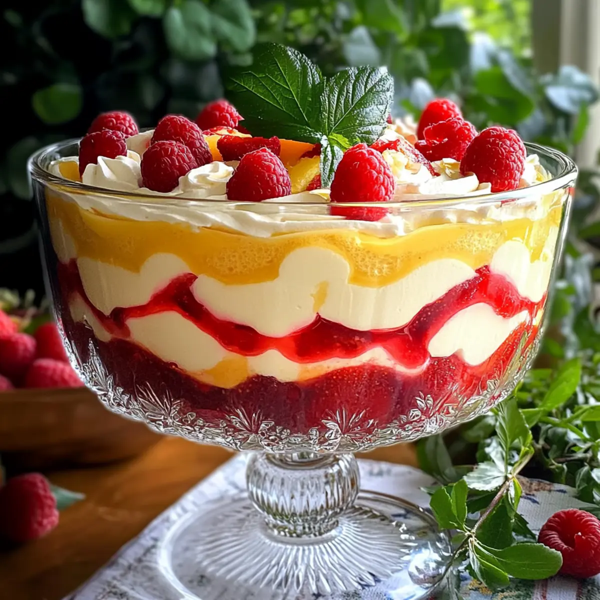 • Frische Beeren: Himbeeren oder Erdbeeren bringen einen frischen, fruchtigen Kontrast und harmonieren wunderbar mit dem süßen Trifle.