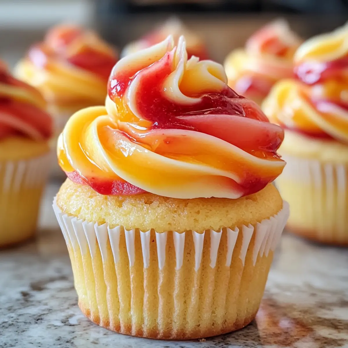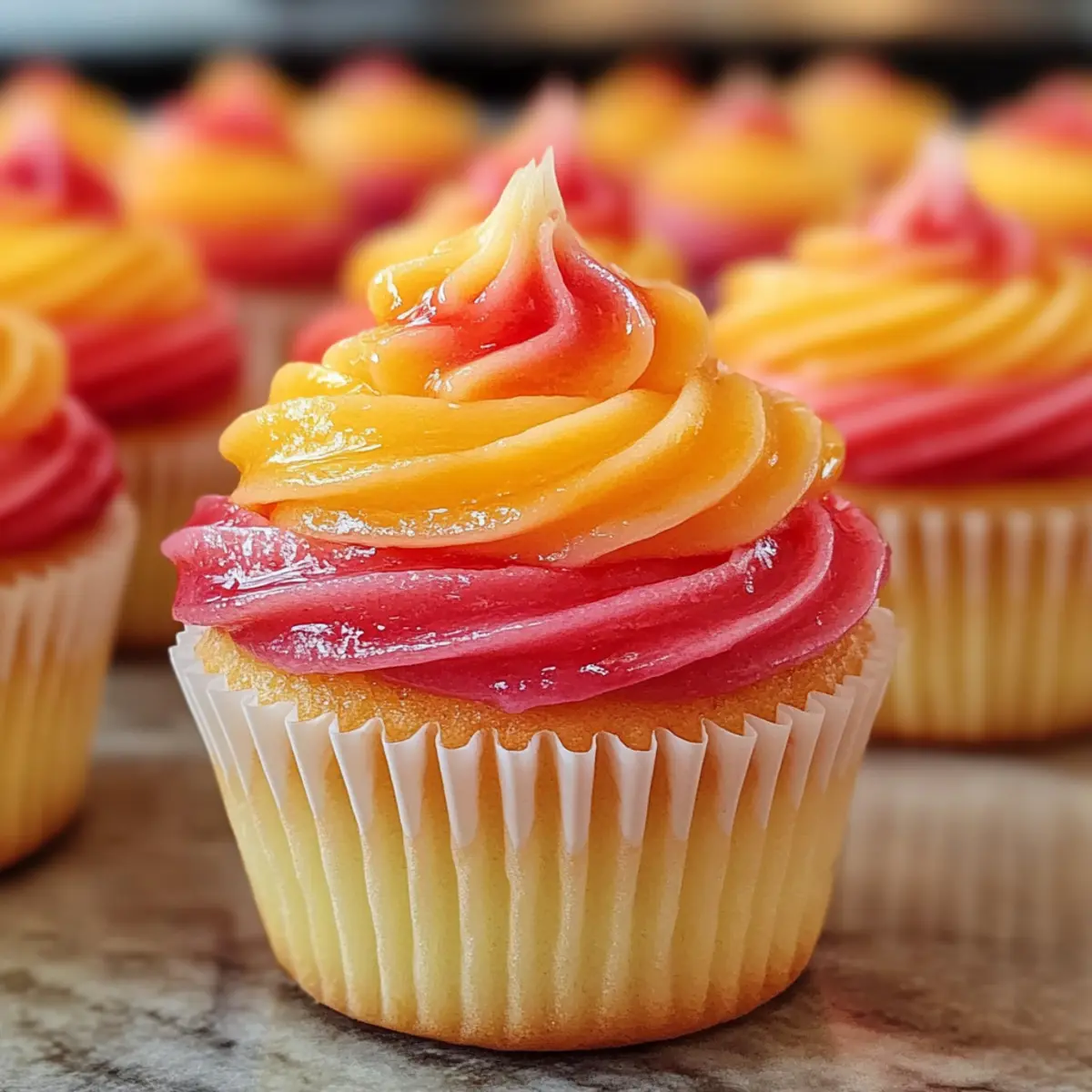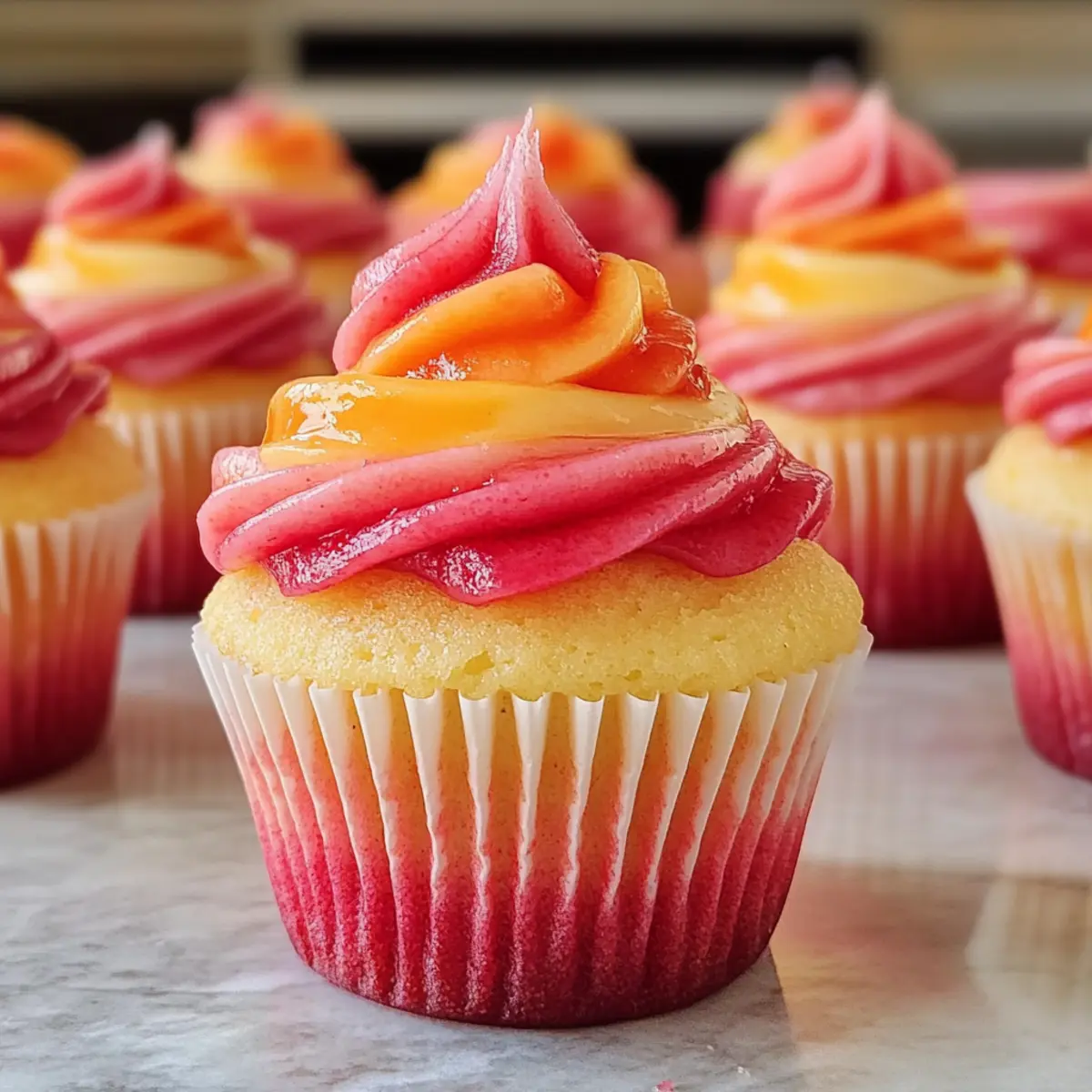 Hätte ich gewusst, dass diese Mango Erdbeer Sonnenuntergang Cupcakes so verführerisch sind, hätte ich sie viel früher ausprobiert! Die Kombination aus saftigem Mangopüree und fruchtiger Erdbeermarmelade lässt den Sommer auf jedem Teller erblühen. Diese Cupcakes sind nicht nur ein Genuss für den Gaumen, sondern auch ein echter Blickfang auf jeder Feier. Sie sind ideal für stressige Wochentage, wenn Sie etwas Schnelles und Leckeres zaubern möchten, oder für gesellige Anlässe, bei denen alle um das Dessert wetteifern. Die Zubereitung ist kinderleicht und sie versprechen, jeden kleinen und großen Naschkatzen zu begeistern. Neugierig, wie Sie diese tropischen Leckerbissen ganz einfach selbst machen können? Warum lieben alle diese Cupcakes? Tropischer Genuss: Diese Mango Erdbeer Sonnenuntergang Cupcakes sind ein wahrer Geschmackstraum, der den Sommer auf Ihren Tisch bringt. Einfach zuzubereiten: Mit nur wenigen Zutaten und klaren Anweisungen können auch Anfänger in der Küche diese Leckerbissen meistern. Visuell beeindruckend: Der wunderschöne Sonnenuntergangseffekt der Glasur verzaubert nicht nur geschmacklich, sondern ist auch ein Hingucker auf jedem Tisch. Für Kinder geeignet: Diese Cupcakes sind perfekt für Kindergeburtstagsfeiern oder als festliches Dessert, das kleine und große Naschkatzen gleichermaßen begeistert. Vielseitig genießbar: Ob für ein Picknick, eine Gartenparty oder einfach nur als leckere Belohnung nach einem langen Tag, diese Cupcakes sind immer eine gute Wahl. Entdecken Sie auch unsere anderen köstlichen Rezepte, wie die Erdbeer Cheesecake Ohne oder die Erdbeer Kasekuchen Proteinballchen, um noch mehr fruchtige Möglichkeiten zu genießen! Zutaten für Mango Erdbeer Sonnenuntergang Cupcakes • Für den Teig: Allzweckmehl – sorgt für die Struktur der Cupcakes und kann durch eine glutenfreie Mehlmischung ersetzt werden. Backpulver – sorgt für eine lockere und luftige Textur. Salz – hebt den Geschmack hervor und balanciert die Süße aus. Keine Alternativen nötig. Ungesalzene Butter – verleiht Reichhaltigkeit und Zartheit; sollte Zimmertemperatur haben, um leicht cremig zu werden. Zucker – süßt die Cupcakes und trägt zur Textur bei; keine Alternativen nötig. Eier – binden die Zutaten und fügen Feuchtigkeit hinzu; Eier sollten Zimmertemperatur haben für beste Ergebnisse. Vanilleextrakt – verstärkt den Geschmack; kann für eine andere Geschmacksrichtung durch Mandelextrakt ersetzt werden. Milch – sorgt für Feuchtigkeit im Teig; alternative Optionen sind Mandelmilch oder Kokosmilch für eine milchfreie Version. Mangopüree – bringt tropischen Geschmack und Feuchtigkeit; kann durch Pfirsich- oder Aprikosenpüree ersetzt werden, wenn Mango nicht verfügbar ist. Erdbeermarmelade – füllt das Zentrum für eine überraschende Geschmacksexplosion; verwenden Sie beliebige Beerenmarmelade, wenn gewünscht. • Für das Frosting: Ungesalzene Butter – sorgt für eine cremige Konsistenz. Achten Sie darauf, dass sie weich ist, um die beste Textur zu erzielen. Puderzucker – süßt das Frosting und sorgt für die richtige Konsistenz; das Verfahren ist wichtig, um eine fluffige Masse zu erhalten. Vanilleextrakt – verbessert den Geschmack des Frostings; kann weggelassen werden, wenn gewünscht. Schlagsahne – sorgt für Cremigkeit und erleichtert das Spritzen des Frostings auf die Cupcakes. Diese Mango Erdbeer Sonnenuntergang Cupcakes sind nicht nur einfach zuzubereiten, sie bringen auch die tropischen Aromen in Ihr Zuhause! Schritt-für-Schritt-Anleitung für Mango Erdbeer Sonnenuntergang Cupcakes Step 1: Ofen vorheizen Heizen Sie den Ofen auf 175°C (350°F) vor und bereiten Sie Ihre Muffinbleche mit bunten Cupcake-Förmchen vor. Dies sorgt dafür, dass die Mango Erdbeer Sonnenuntergang Cupcakes gleichmäßig backen und beim Herausnehmen einfach aus den Förmchen gleiten. Step 2: Trockene Zutaten vermischen In einer mittelgroßen Schüssel vermengen Sie das Allzweckmehl, Backpulver und Salz. Mischen Sie die Zutaten gründlich mit einem Schneebesen, sodass keine Klumpen entstehen, und stellen Sie die Schüssel beiseite, während Sie die feuchten Zutaten zubereiten. Step 3: Butter und Zuckercreme Nehmen Sie eine große Schüssel und geben Sie die weichgemachte ungesalzene Butter und den Zucker hinein. Schlagen Sie die Mischung mit einem Handmixer für etwa 3-5 Minuten, bis sie hell und luftig ist. So entsteht die Basis für die köstlichen Mango Erdbeer Sonnenuntergang Cupcakes und sorgt für eine angenehme Süße. Step 4: Eier und Aromen hinzufügen Fügen Sie nun die Eier sowie den Vanilleextrakt zur Butter-Zucker-Mischung hinzu. Mischen Sie alles gut durch, bis die Säure des Eies vollständig eingearbeitet ist. Danach gießen Sie die Milch und das Mangopüree dazu, um die Mischung geschmeidig zu machen. Step 5: Trockene und feuchte Zutaten kombinieren Geben Sie die zuvor vermischten trockenen Zutaten nach und nach zu der feuchten Mischung. Rühren Sie vorsichtig um, bis alles gerade so kombiniert ist, um zu verhindern, dass der Teig übermix wird; das Ergebnis sind fluffige Mango Erdbeer Sonnenuntergang Cupcakes. Step 6: Muffinbleche füllen und backen Füllen Sie die vorbereiteten Cupcake-Förmchen die Hälfte voll, um Platz für das Aufgehen zu lassen. Backen Sie die Cupcakes 18-20 Minuten lang, bis ein Zahnstocher in der Mitte sauber herauskommt. Lassen Sie die Cupcakes anschließend auf einem Drahtgitter abkühlen. Step 7: Füllen der Cupcakes Sobald die Cupcakes abgekühlt sind, nehmen Sie einen kleinen Tortenausstecher oder ein Messer und entfernen Sie vorsichtig die Mitte jedes Cupcakes. Füllen Sie die Vertiefung mit Erdbeermarmelade, um eine geschmackliche Überraschung zu bieten. Step 8: Frosting zubereiten Für das Frosting schlagen Sie zuerst die weichgemachte Butter in einer großen Schüssel bis sie cremig ist. Fügen Sie dann den Puderzucker, Vanilleextrakt und die Schlagsahne hinzu. Mischen Sie alles, bis das Fr