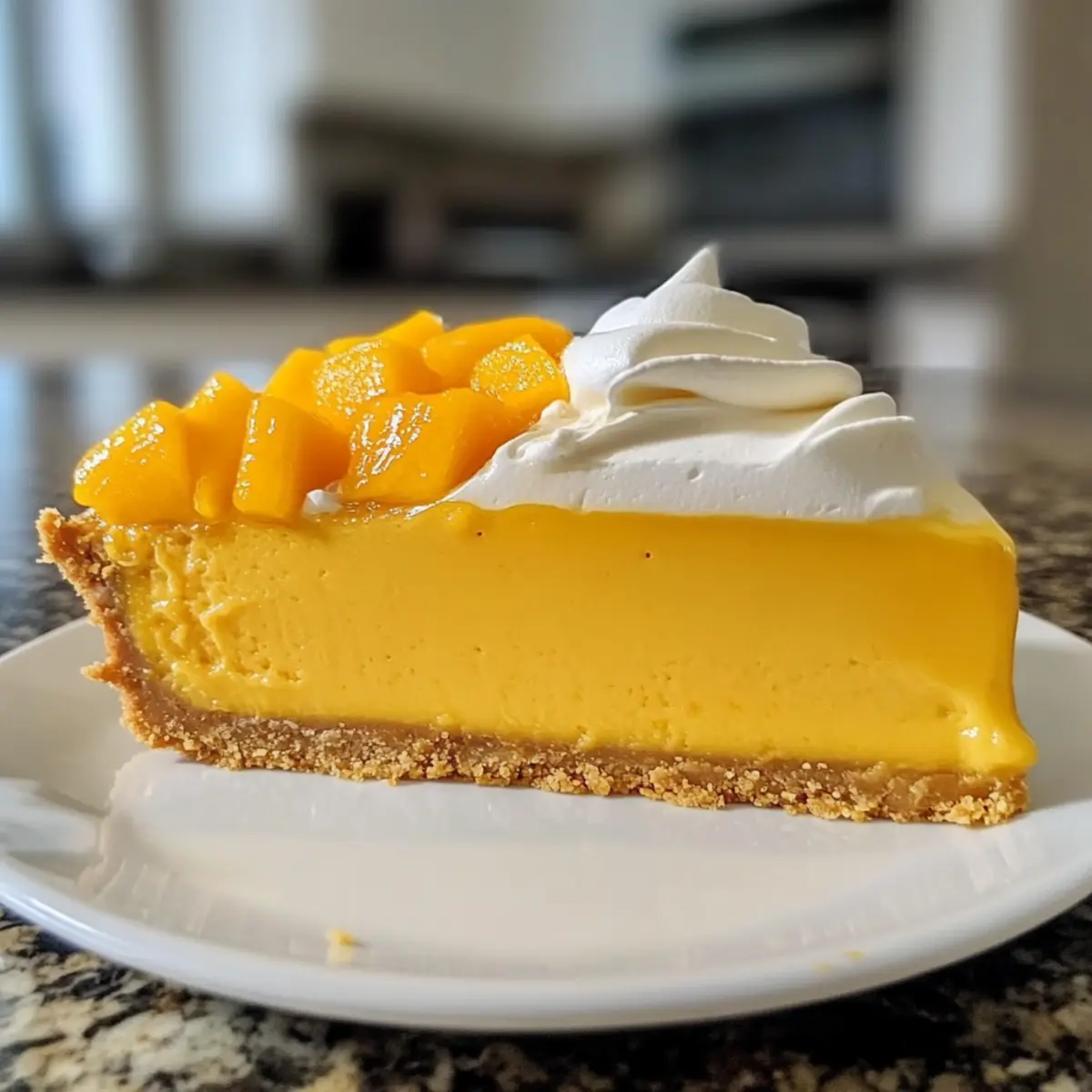 Als ich neulich nach einer kühlenden Leckerei suchte, fiel mir die Idee für einen köstlichen Mango-Käsekuchen ein, der einfach nicht gebacken werden muss. Dieses Rezept für einen No-Bake Mango-Käsekuchen ist perfekt für alle, die vielbeschäftigt sind, aber dennoch ein cremiges Dessert zaubern möchten, das sowohl einfach als auch schmackhaft ist. In nur 20 Minuten Vorbereitungszeit und mit einer Handvoll frischer Zutaten ist dieser vegetarische Käsekuchen ein echter Publikumsliebling – ideal für Feiern oder als süßer Genuss nach dem Dinner. Wer wäre da nicht neugierig, wie sich die fruchtige Frische der Mango mit der samtigen Creme vereint? Entdecke mit mir dieses himmlische Rezept, das deine Küche zum Strahlen bringt! Warum sollte ich diesen Mango-Käsekuchen probieren? Einfachheit, das Rezept erfordert keine Backfähigkeiten und ist schnell zubereitet. Köstlicher Geschmack, die Kombination aus frischer Mango und cremigem Käse sorgt für ein geschmackliches Erlebnis. Für jedes Event, ob Geburtstag oder einfach nur als süßer Abschluss nach dem Abendessen, dieser Käsekuchen wowt jede Menge Gäste. Vielseitig, experimentiere mit verschiedenen Obstpürees oder kreiere deine eigene Geschmacksrichtung. Zeitersparnis, mit nur 20 Minuten Vorbereitung und anschließendem Kühlen bleibt dir mehr Zeit für die wichtigen Dinge im Leben. Du kannst auch etwas über die Lagerung von Käsekuchen lesen, um zu wissen, wie du Reste am besten aufbewahrst! Mango-Käsekuchen Zutaten • Dieser Mango-Käsekuchen ist einfach und benötigt nur wenige frische Zutaten. Hier die Übersicht der benötigten Zutaten: Für den Boden • Graham-Cracker-Brösel – sorgen für eine süße und knusprige Kruste; glutenfreie Varianten sind ebenfalls lecker. • Geschmolzene Butter – bindet die Kruste und verleiht ihr einen reichhaltigen Geschmack; kann durch Kokosöl für eine milchfreie Option ersetzt werden. Für die Füllung • Frischkäse – macht die Füllung cremig; griechischer Joghurt kann für eine leichtere Variante verwendet werden. • Puderzucker – süßt den Käsekuchen und macht die Textur cremig; keine Substitutionen empfohlen für beste Ergebnisse. • Mango-Püree – sorgt für den charakteristischen Mango-Geschmack; gefrorene Mango eignet sich hervorragend, wenn sie aufgetaut und püriert wurde. • Vanilleextrakt – hebt den Gesamtgeschmack hervor; keine Substitutionen empfohlen. • Schlagsahne – wird geschlagen, um steife Spitzen zu bilden und trägt zur luftigen Textur des Käsekuchens bei; keine Ersatzstoffe empfohlen. Tipps: Vergiss nicht, die frische Mango am Ende für die Garnierung zu verwenden! Schritt-für-Schritt-Anleitung für den Mango-Käsekuchen Schritt 1: Krustenbasis zubereiten Vermische die Graham-Cracker-Brösel mit der geschmolzenen Butter in einer Schüssel, bis die Mischung die Konsistenz von feuchtem Sand hat. Drücke diese Mischung gleichmäßig in den Boden einer Springform (23 cm) und forme eine feste Kruste. Stelle die Form für etwa 10 Minuten in den Kühlschrank, damit die Kruste fest wird. Schritt 2: Füllung vorbereiten Schlage in einer großen Schüssel den Raumtemperatur-Frischkäse mit dem Puderzucker, bis die Mischung glatt und cremig ist. Gib dann das Mango-Püree und den Vanilleextrakt hinzu und mische alles gut durch, bis sich die Zutaten vollständig verbunden haben. Achte darauf, dass die Füllung eine gleichmäßige, samtige Textur erreicht. Schritt 3: Sahne schlagen Schlage die Schlagsahne in einer separaten, kalten Schüssel mit einem Handmixer, bis steife Spitzen entstehen. Dies dauert etwa 3-5 Minuten. Sei vorsichtig, dass du die Sahne nicht übermixst, da sie sonst butterig wird. Die geschlagene Sahne wird dem Mango-Käsekuchen eine luftige Konsistenz verleihen. Schritt 4: Mischung kombinieren Integriere die geschlagene Sahne vorsichtig in die Mango-Füllung, indem du einen Spatel verwendest und in sanften Faltbewegungen arbeitest. Achte darauf, die Luftigkeit der Sahne zu bewahren, damit der Käsekuchen schön leicht bleibt. Der Mango-Käsekuchen wird nun eine cremige, luftigere Textur annehmen. Schritt 5: Füllung einfüllen Gieße die Mango-Füllung gleichmäßig über die vorbereitete Kruste in der Springform. Verwende einen Spatel, um die Oberfläche glatt zu streichen, und mache sie hierbei ansprechend. Stelle sicher, dass die Füllung gut verteilt ist, um einen gleichmäßigen Schnitt zu gewährleisten, wenn der Käsekuchen später serviert wird. Schritt 6: Kühlen Bedecke die Springform mit Frischhaltefolie und stelle sie in den Kühlschrank. Lasse den Mango-Käsekuchen mindestens 4 Stunden lang, besser über Nacht, kühlen, damit er fest wird. Dies ist ein entscheidender Schritt für die perfekte Konsistenz und den vollen Geschmack des Desserts. Schritt 7: Garnierung und Servieren Nachdem der Käsekuchen fest geworden ist, kannst du ihn aus dem Kühlschrank nehmen. Garniere ihn mit frischen Mangoscheiben, um eine attraktive Präsentation zu erzielen. Schneide den Käsekuchen in Tortenstücke und serviere ihn kalt für einen erfrischenden Genuss, der deine Gäste begeistern wird. Tipps zur Vorbereitung des Mango-Käsekuchens Dieser Mango-Käsekuchen ist ideal für die Vorbereitung, denn viele Komponenten können bis zu 24 Stunden im Voraus zubereitet werden, was dir wertvolle Zeit spart. Du kannst die Kruste aus Graham-Cracker-Brösel und geschmolzener Butter einfach vorbereiten und im Kühlschrank fest werden lassen. Auch die Füllung aus Frischkäse, Mango-Püree und Schlagsahne kann am Vortag zubereitet werden; bewahre sie in einem luftdichten Behälter im Kühlschrank auf, um die Qualität zu erhalten. Achte darauf, die Schlagsahne erst kurz vor dem Servieren in die Füllung zu falten, um ihre fluffige Konsistenz zu bewahren. Sobald du bereit bist, die köstliche Leckerei zu servieren, gieße die Füllung über die Kruste, lasse sie für mindestens vier Stunden kühlen und garniere sie vor dem Servieren mit frische