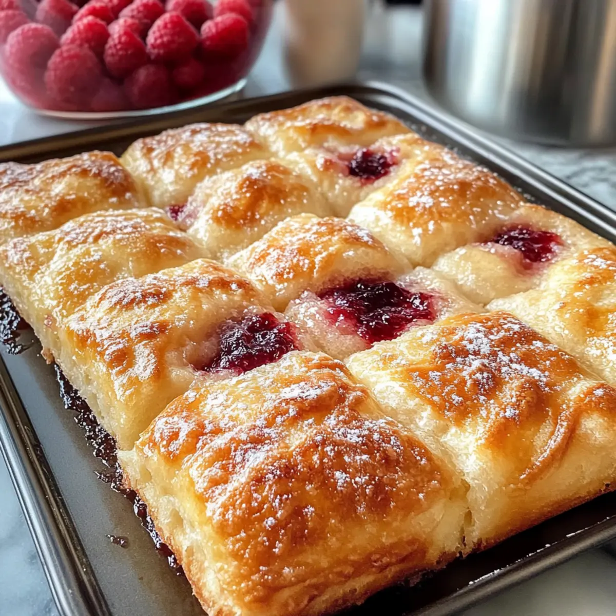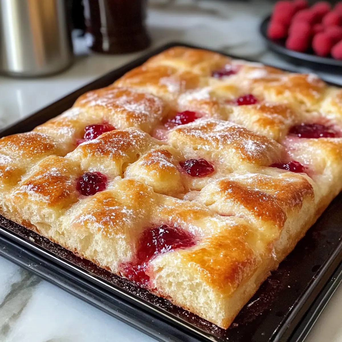 Sich auf einen gemütlichen Sonntagmorgen vorzubereiten, ist für viele von uns pure Freude. Wenn dann der Duft von frisch gebackenem Brot durch die Küche zieht, wird das Warten sofort belohnt. Diese Marmeladenkrapfenfocaccia vereint die luftige Textur traditioneller Focaccia mit der süßen Köstlichkeit gefüllter Krapfen und bringt das Beste aus beiden Welten zusammen. Jedes Stück dieser besonderen Leckerei ist weich und leicht, durchzogen von warmen, fruchtigen Marmeladenflecken, die euren Frühstückstisch zum Strahlen bringen. Und das Beste daran? Der Herstellungsprozess ist unkompliziert und sorgt dafür, dass ihr auch ohne große Vorkenntnisse ein tolles Ergebnis erzielt. Perfekt für ein schnelles Frühstück oder einen entspannten Brunch mit Freunden! Welche Marmelade wäre eure Favorit für diese köstliche Kombination? Warum wirst du diese Focaccia lieben? Einfachheit: Die Zubereitung dieser Marmeladenkrapfenfocaccia ist ein Kinderspiel und erfordert keine speziellen Backfähigkeiten. Vielfalt: Ihr könnt eure Lieblingsmarmelade verwenden oder sogar mit verschiedenen Fruchtfüllungen experimentieren. Aromatischer Genuss: Der süße Duft frisch gebackenen Brotes und der fruchtige Geschmack machen jede Biss zu einem Erlebnis. Perfekte Textur: Die Kombination aus luftiger Focaccia und zarter Marmelade sorgt für ein himmlisches Geschmackserlebnis. Optimal für jeden Anlass: Ob zum Frühstück, Brunch oder als süßer Snack – diese Focaccia wird alle begeistern und euch von Fast Food abbringen! Marmeladenkrapfenfocaccia Zutaten • Für den Teig Warmwasser (1 3/4 Tassen) – Aktiviert die Hefe. Verwende Wasser zwischen 40°C-46°C für eine optimale Hefenaktivierung. Zucker (2 Teelöffel) – Hilft, die Hefe zu aktivieren und fügt Süße hinzu. Bei Bedarf kann ein Süßungsmittel ersetzt werden. Aktive Trockenhefe (1 Päckchen) – Fermentiert den Teig und sorgt für Aufstieg und Textur. Achte darauf, dass die Hefe frisch ist; abgelaufene Hefe funktioniert nicht. Brotmehl (2 Tassen) – Gibt eine zähe Struktur. Kann durch Allzweckmehl für eine weichere Textur ersetzt werden. Allzweckmehl (2 Tassen) – Fügt Weichheit hinzu. Kann vollständig durch Brotmehl ersetzt werden, wenn gewünscht. Salz (2 Teelöffel) – Verstärkt den Geschmack und stärkt die Teigstruktur. Für einen ausgewogenen Geschmack unerlässlich. Olivenöl (6 Esslöffel, geteilt) – Hält den Teig feucht und hilft beim Kneten. Verwende hochwertiges Olivenöl für einen besseren Geschmack. • Für die Füllung Himbeermarmelade (1 Glas) – Sorgt für die süße Füllung. Andere Fruchtmarmeladen können zur Abwechslung verwendet werden. • Für die Glasur Puderzucker (2 Tassen) – Wird für die Glasur verwendet und fügt Süße hinzu. Milch kann nach Bedarf angepasst werden, um die gewünschte Glasurdicke zu erreichen. Vollmilch (2-4 Esslöffel) – Verdünnt die Glasur zu einer streichfähigen Konsistenz. Schritt-für-Schritt-Anleitung für Marmeladenkrapfenfocaccia Schritt 1: Hefemischung vorbereiten Vermische in einer Schüssel das warme Wasser mit dem Zucker und rühre gut um. Gib die aktive Trockenhefe hinzu und lasse die Mischung etwa 5 Minuten ruhen, bis sie bl bubbles bilden; dies zeigt, dass die Hefe aktiviert ist und bereit zur Verwendung ist. Schritt 2: Teig zubereiten In einer Küchenmaschine vermengst du nun die Hefemischung mit dem Brotmehl, dem Allzweckmehl und dem Salz. Mische alles, bis ein klebriger Teig entsteht. Verwende einen Knethaken und lasse die Maschine etwa 5 Minuten arbeiten, um den Teig gut zu vermischen. Schritt 3: Erste Gehzeit Fette eine große Schüssel mit 1 Esslöffel Olivenöl ein, lege den Teig hinein und wende ihn, damit er von allen Seiten mit Öl bedeckt ist. Decke die Schüssel mit einem feuchten Küchentuch ab und lasse den Teig an einem warmen Ort für etwa 1 Stunde ruhen, bis er sich verdoppelt hat. Schritt 4: Backform vorbereiten Fette eine 9×13 Zoll große Backform gründlich mit Olivenöl ein, um ein Anhaften beim Backen zu vermeiden. Dadurch erhält die Marmeladenkrapfenfocaccia eine schöne goldene Kruste und bleibt saftig im Inneren. Schritt 5: Teig formen Nimm den gegangenen Teig aus der Schüssel und lege ihn in die vorbereitete Backform. Falten und drücken, um ihn gleichmäßig zu verteilen, und lasse ihn für weitere 1 Stunde zugedeckt ruhen, damit er erneut aufgeht und schön fluffig wird. Schritt 6: Vorbereitungen für das Backen Heize den Ofen auf 220 °C vor. Mit den Fingerspitzen drücke tiefe Vertiefungen in den aufgegangenen Teig, um Platz für die Marmelade zu schaffen. Diese Dellen sorgen dafür, dass die Füllung gut verteilt wird und nicht ausläuft. Schritt 7: Füllung hinzufügen Verteile die Himbeermarmelade gleichmäßig in die entstandenen Vertiefungen. Achte darauf, dass Du nicht zu viel Marmelade verwendest, um ein Durchweichen zu vermeiden. Backe die Marmeladenkrapfenfocaccia für 18-22 Minuten, bis sie goldbraun und durchgebacken ist. Schritt 8: Löcher nachfüllen Nach dem Backen nimm die Focaccia aus dem Ofen und stelle sie kurz ab. Poke noch einmal die Löcher nach und fülle sie mit zusätzlicher Himbeermarmelade, um einen noch intensiveren Geschmack zu erzielen. Schritt 9: Glasur herstellen Vermische den Puderzucker mit 2-4 Esslöffeln Vollmilch, bis eine dicke, aber streichfähige Glasur entsteht. Lasse die Marmeladenkrapfenfocaccia nach dem Füllen etwas abkühlen und bestreiche sie dann großzügig mit der Glasur. Schritt 10: Servieren Schneide die Focaccia in Quadrate und serviere sie warm für das beste Geschmackserlebnis. Diese Marmeladenkrapfenfocaccia ist ideal für ein gemütliches Frühstück oder einen besonderen Brunch mit Freunden! Lagerungstipps für Marmeladenkrapfenfocaccia Zimmertemperatur: Du kannst die übrig gebliebene Marmeladenkrapfenfocaccia bei Zimmertemperatur in einem luftdichten Behälter bis zu 2 Tage aufbewahren, um ihre Frische zu bewahren. Kühlschrank: Im Kühlschrank aufbewahren verlängert