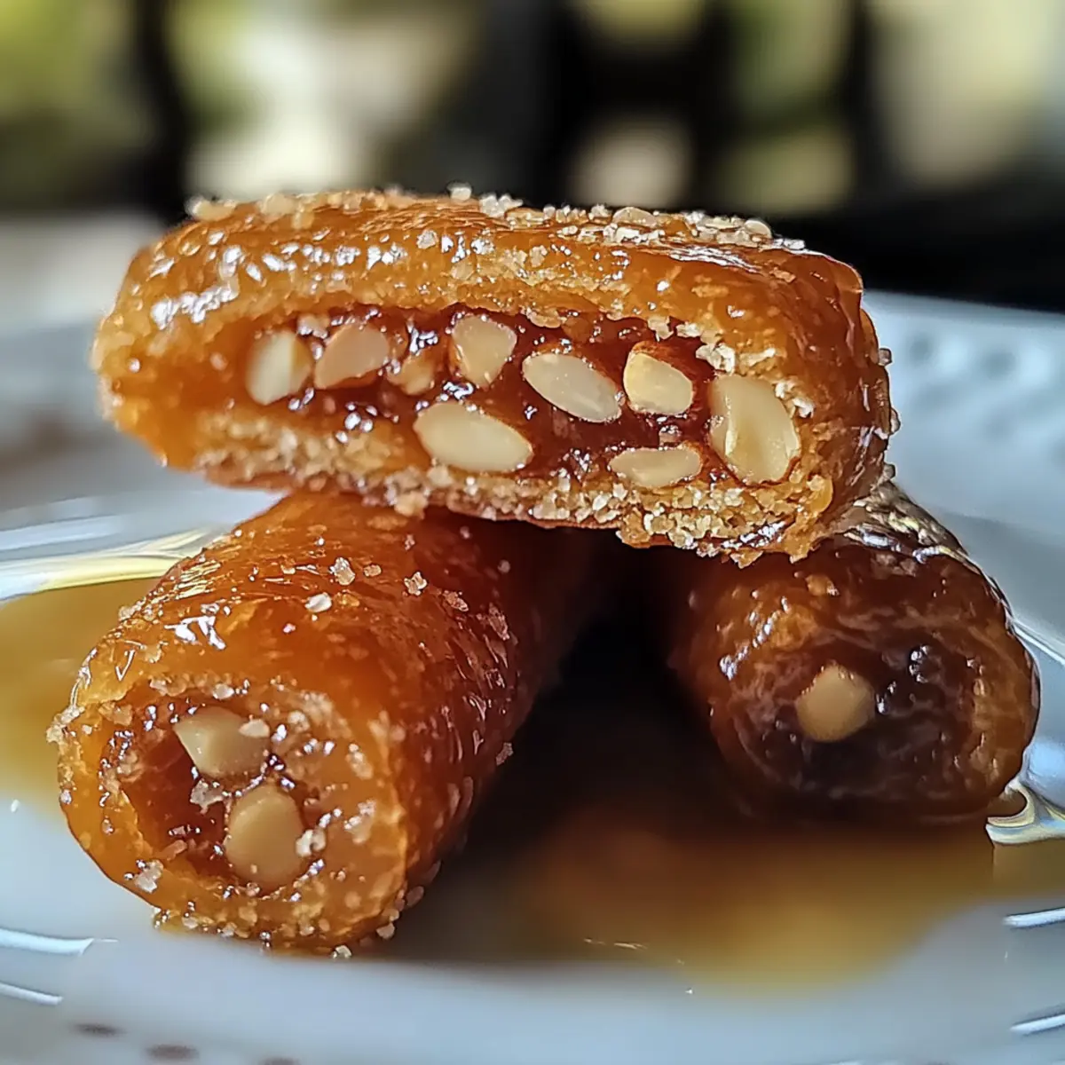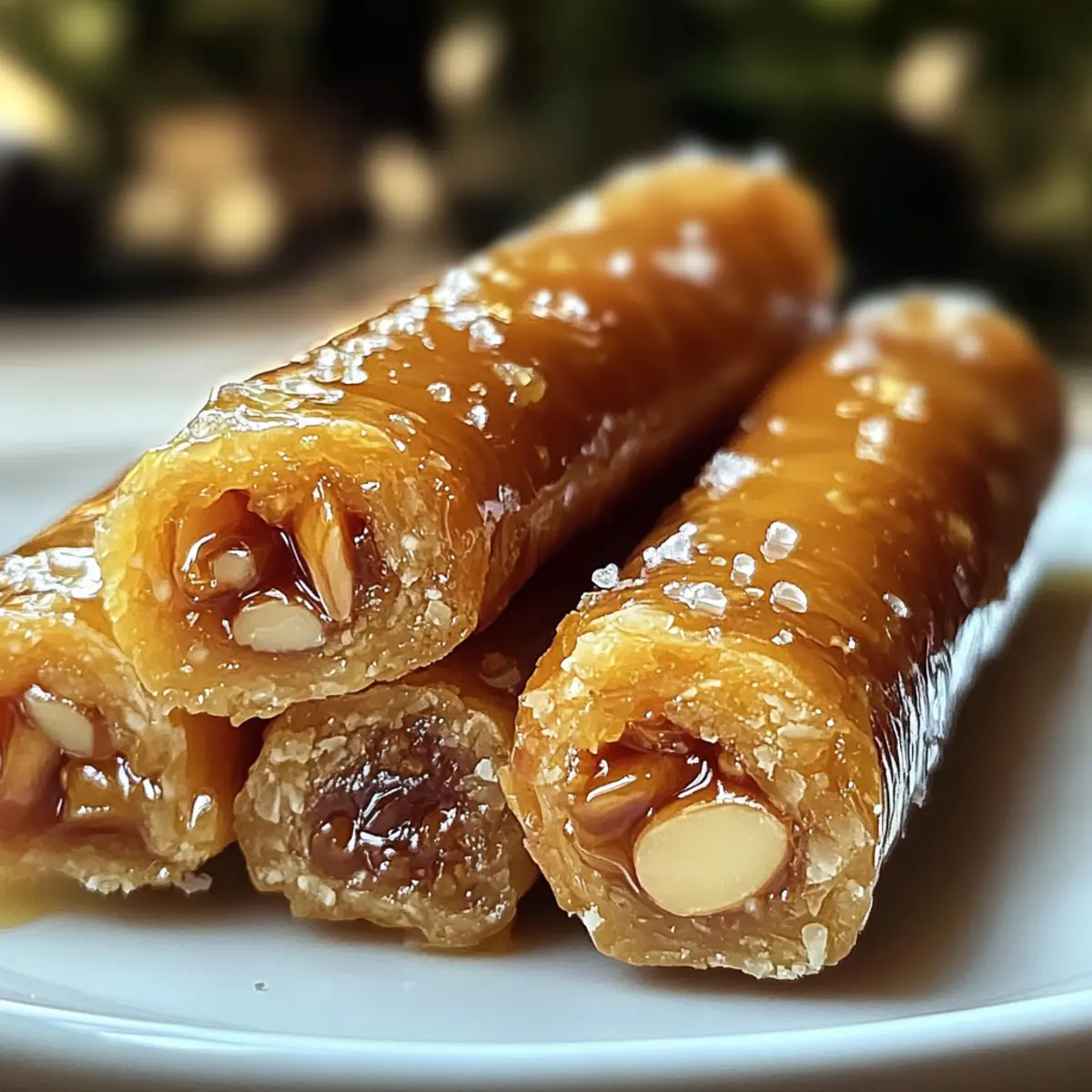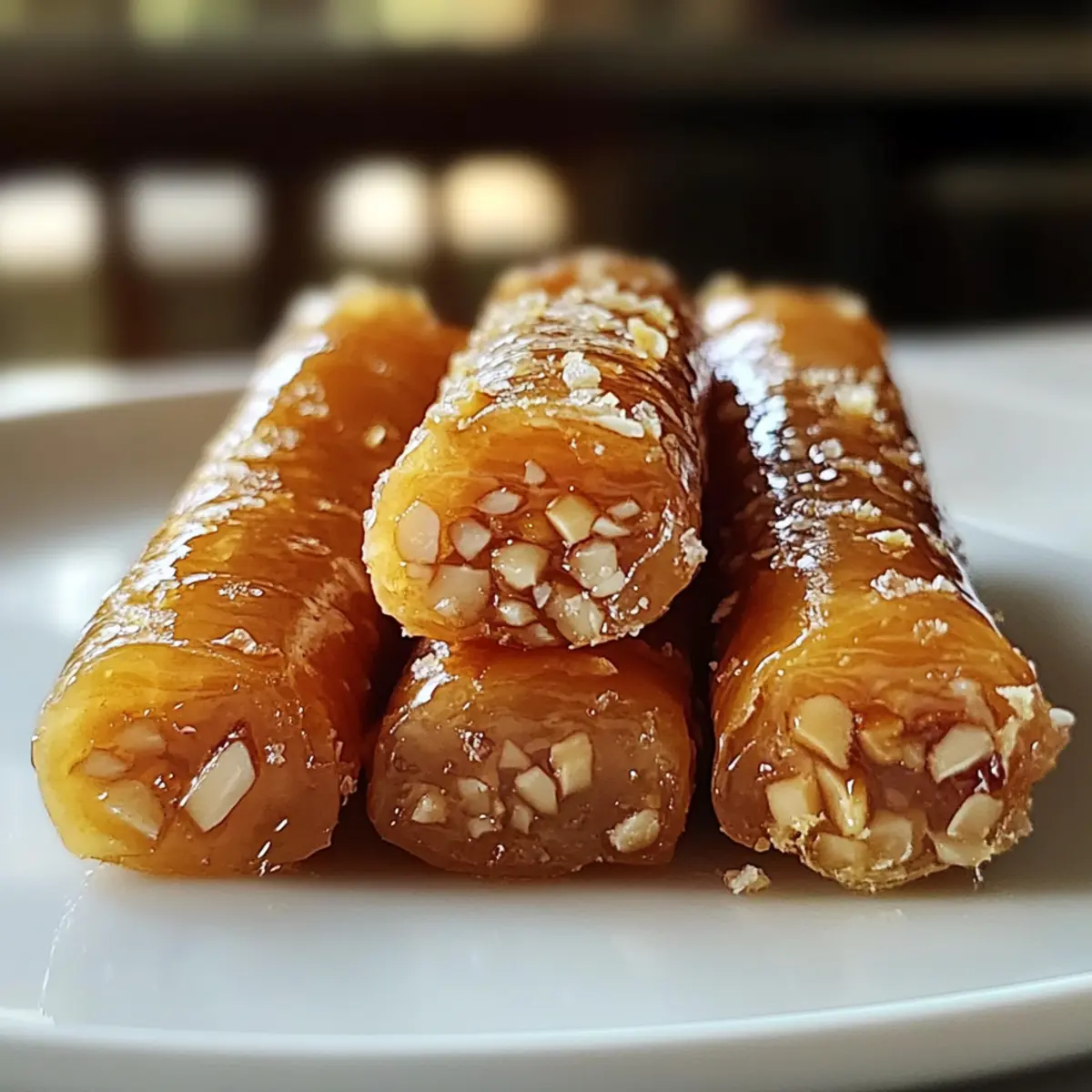 In einer kleinen, charmanten Teestube in Marrakesch wurde ich kürzlich von einem verführerischen Duft greifbar gemacht: Die marokkanischen Honig-Mandel-Zigarren! Diese zarten, knusprigen Teigrollen sind nicht nur ein Fest für die Sinne, sondern auch unglaublich einfach zuzubereiten. Gefüllt mit einer süßen Mandelcreme und umhüllt von einem aromatischen Honigsirup, sind diese traditionellen Süßigkeiten der Inbegriff von Genuss. Perfekt für ein gemütliches Beisammensein oder als elegante Nachspeise, machen sie wirklich jeden Anlass zu etwas Besonderem. Seid ihr bereit, euren Liebsten mit einer süßen Reise in den Orient zu überraschen? Warum wirst du diese Zigarren lieben? Einfachheit, die begeistert: Die Zubereitung der marokkanischen Honig-Mandel-Zigarren ist kinderleicht und erfordert keine außergewöhnlichen Backkünste – perfekt für alle, die frische selbstgemachte Leckereien lieben. Reiche, süße Aromen: Die Kombination aus Mandeln, Honig und zarten Gewürzen schafft einen unfassbar köstlichen Geschmack, der an die Straßen von Marrakesch erinnert. Vielseitige Genussoptionen: Ob zum Tee, bei festlichen Anlässen oder als süßer Snack zur Entspannung, diese Zigarren passen einfach zu jedem Anlass. Perfekte Textur: Außen knusprig und innen zart – der Kontrast ist einfach unwiderstehlich. Ein Muss für Genießer: Lass dich von diesem traditionellen Rezept inspirieren und bring ein Stück marokkanischer Kultur direkt in deine Küche, um deine Freunde zu begeistern! Marokkanische Honig-Mandel-Zigarren Zutaten • Um sicherzustellen, dass eure marokkanischen Honig-Mandel-Zigarren perfekt gelingen, sind hier die Zutaten, die ihr benötigt! Für den Teig Allzweckmehl – sorgt für die Struktur des Gebäcks; für eine feinere Textur kannst du auch eine Mischung aus Kuchen- und Allzweckmehl verwenden. Ungesalzene Butter – verleiht dem Teig Reichtum und Geschmack; stelle sicher, dass sie auf Zimmertemperatur weich ist. Salz – hebt die Gesamtnote des Geschmacks; wichtig, um die Süße auszubalancieren. Backpulver – sorgt für eine luftige Konsistenz im Teig. Zucker – süßt den Teig und trägt zur Bräunung bei. Großes Ei – fungiert als Bindemittel und bringt Reichhaltigkeit; verwende es bei Zimmertemperatur. Vanilleextrakt – sorgt für ein aromatisches Profil; kann für eine Variation durch Mandelextrakt ersetzt werden. Kaltes Wasser – hilft, den Teig zusammenzubringen, falls er zu trocken ist. Für die Füllung Blanchiertes Mandelmehl – sorgt für den Hauptgeschmack; vermeiden solltest du gemahlene Mandeln, da sie körnig sein können. Puderzucker – süßt die Füllung und trägt zu ihrer glatten Textur bei. Eiweiß – bindet die Füllung und sorgt für eine einheitliche Paste. Orangenblütenwasser – verleiht ein blumiges Aroma; kann durch Rosenwasser oder zusätzliches Vanille ersetzt werden. Gemahlener Zimt – bringt Wärme in die Füllung. Für den Sirup Honig – sorgt für die süße Glasur; wähle eine milde, blumige Sorte für das beste Ergebnis. Zitronensaft – bringt Frische in die Glasur und balanciert die Süße des Honigs aus. Wasser – wird zur Verdünnung des Sirups verwendet, um die richtige Konsistenz zu erreichen. Mit diesen Zutaten bist du bestens gerüstet, um die köstlichen marokkanischen Honig-Mandel-Zigarren zu zaubern! Schritt-für-Schritt-Anleitung für marokkanische Honig-Mandel-Zigarren Schritt 1: Teig vorbereiten Heize den Ofen auf 175°C vor. In einer großen Schüssel vermischt du das Allzweckmehl, Salz und das Backpulver. In einer separaten Schüssel rührst du die weiche Butter mit dem Zucker, bis sie hell und fluffig ist. Füge das Ei und den Vanilleextrakt hinzu und mische alles gut. Gib nun die trockenen Zutaten nach und nach dazu und vermische sie, bis ein weicher Teig entsteht. Solltest du einen trockenen Teig haben, füge etwas kaltes Wasser hinzu. Schritt 2: Füllung herstellen In einer anderen Schüssel kombinierst du das blanchierte Mandelmehl, Puderzucker, Eiweiß, Orangenblütenwasser und den gemahlenen Zimt. Rühre die Mischung, bis eine dicke Paste entsteht. Achte darauf, dass die Füllung homogen und gut verbunden ist, um die marokkanischen Honig-Mandel-Zigarren perfekt zu füllen. Stelle die Füllung zur Seite, während du den Teig ausrollst. Schritt 3: Teig ausrollen Bestäube deine Arbeitsfläche leicht mit Mehl und rolle den Teig auf eine Dicke von etwa 3 mm aus. Schneide den Teig in gleichmäßige Rechtecke, die groß genug sind, um die Füllung einzurollen. Platziere einen Klecks der Mandelmischung an einem Ende jedes Rechtecks. Rolle den Teig straff über die Füllung und drücke die Ränder zusammen, um sicherzustellen, dass sie beim Backen gut verschlossen bleiben. Schritt 4: Backen Lege die geformten Zigarren auf ein mit Backpapier ausgelegtes Backblech. Achte darauf, dass sie genügend Platz haben, um während des Backens gleichmäßig zu wachsen. Backe die Zigarren für etwa 15-20 Minuten, bis sie leicht goldbraun und knusprig sind. Halte ein Auge auf die Farbe, da sie sonst zu dunkel werden könnten. Schritt 5: Glasur zubereiten Während die Zigarren im Ofen backen, kannst du die Glasur vorbereiten. Erhitze in einem kleinen Topf den Honig, das Wasser und den Zitronensaft bei niedriger Hitze, bis alles gut vermischt ist. Lass die Glasur leicht köcheln, damit sie eine sirupartige Konsistenz erreicht. Schritt 6: Zigarren glasieren Sobald die marokkanischen Honig-Mandel-Zigarren goldbraun und leicht knusprig sind, nimm sie aus dem Ofen und lasse sie einige Minuten abkühlen. Tauche die warmen Zigarren in die heiße Glasur und lasse sie für ein paar Minuten darin, damit sie die süße, klebrige Schicht aufnehmen. Danach lege sie auf ein Gitter, um den überflüssigen Sirup abtropfen zu lassen. Vorbereitung der marokkanischen Honig-Mandel-Zigarren für die schnelle Küche Die marokkanischen Honig-Mandel-Zigarren sind ideal für die Vorbereitung im Voraus! Du kannst den Teig und die Füllung 