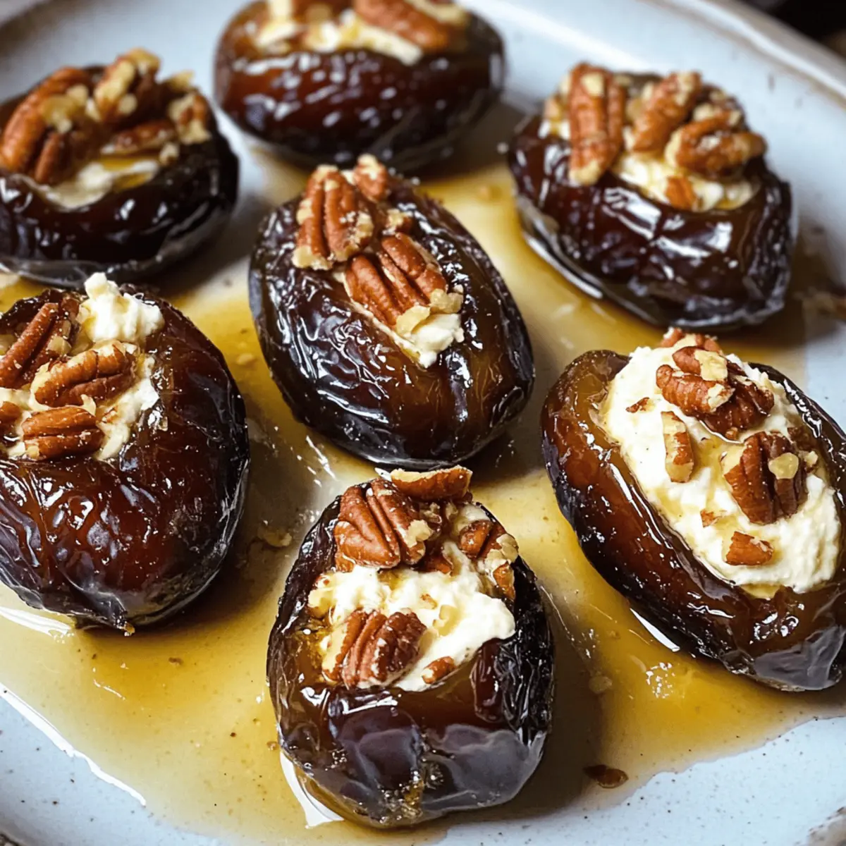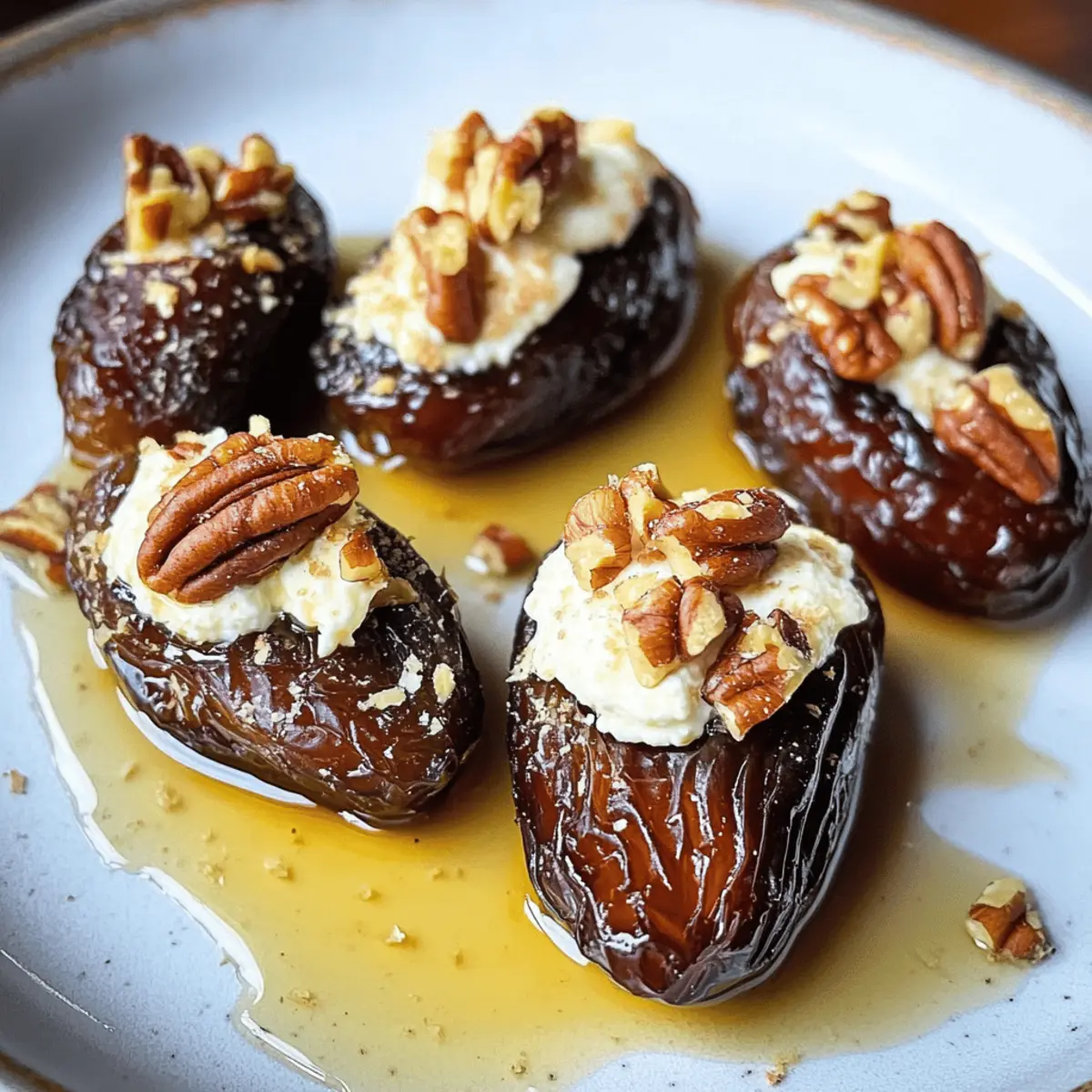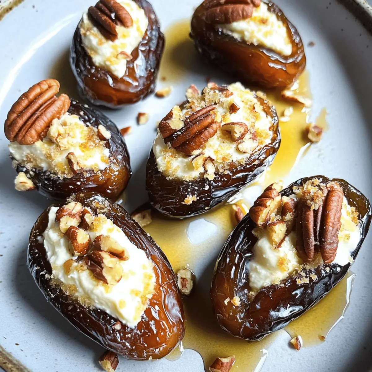 Wenn ich an süße Genüsse denke, fällt mir oft ein ganz bestimmtes Vergnügen ein: die Kombination von cremigem Mascarpone und süßen Medjool-Datteln. In diesem Rezept für Mascarpone gefüllte Datteln mit Ahornsirup-Glasur vereine ich die verführerische Reichhaltigkeit dieser Produkte zu einem gesunden Dessert, das ganz ohne schlechtes Gewissen genossen werden kann. Innerhalb von nur 10 Minuten zauberst du einen köstlichen Snack, der nicht nur glutenfrei und paleo-freundlich ist, sondern auch mit seiner natürlichen Süße aus Datteln und dem feinen Aroma von Ahornsirup begeistert. Dieses Rezept ist die perfekte Alternative zu klassischem Pecankuchen und bringt den Genuss, den wir alle suchen, ganz ohne die Kalorienfalle. Bist du bereit, diese köstlichen kleinen Häppchen für dich und deine Lieben auszuprobieren? Warum sind diese Datteln so besonders? Einzigartig und gesund: Diese Mascarpone gefüllten Datteln sind eine kreative und gesunde Alternative zu Pecankuchen, die den süßen Zahn ohne schlechtes Gewissen befriedigt. Einfach zuzubereiten: Mit nur wenigen Schritten und in weniger als 10 Minuten hast du ein köstliches Dessert, das deine Gäste beeindruckt. Vielseitig einsetzbar: Ob als raffinierte Vorspeise bei einem Dinner oder als gesunder Snack unterwegs – diese Datteln passen immer perfekt! Natürliche Süße: Die Kombination aus Datteln und Ahornsirup gibt dir den süßen Genuss, den du suchst, ohne zu übertreiben. Schau dir auch unsere Gesunde Dessert-Rezepte an, um mehr leckere Ideen zu entdecken! Für jeden Anlass: Diese Datteln sind die perfekte Wahl für Feiern oder einfach zum Selbergenießen – du wirst sie lieben! Zutaten für Mascarpone gefüllte Datteln mit Ahornsirup-Glasur • Entdecke, wie einfach es ist, mit diesen köstlichen Zutaten ein gesundes Dessert zuzubereiten! Für die Datteln Medjool-Datteln – Süß und reich an Ballaststoffen; achte darauf, dass sie entsteint sind, um das Füllen zu erleichtern. Chopped Pecans – Sorgt für einen knusprigen Biss und nussigen Geschmack; Walnüsse können alternativ verwendet werden. Für die Füllung Mascarpone-Käse – Verleiht eine cremige Textur; für eine kalorienärmere Option kann auch Frischkäse verwendet werden. Für das Topping Ahornsirup (Grad A Dunkel Amber) – Süßt das Gericht auf natürliche Weise; Honig kann als Alternative genutzt werden. Diese Mascarpone gefüllten Datteln mit Ahornsirup-Glasur sind nicht nur schnell zubereitet, sondern auch eine geschmackvolle Wahl für dein nächstes Dessert! Schritt-für-Schritt-Anleitung für Mascarpone gefüllte Datteln mit Ahornsirup-Glasur Step 1: Ofen vorheizen Heize den Ofen auf die höchste Stufe vor und stelle den Grill ein. Platziere den Ofenrost in der obersten Position, um eine gleichmäßige Hitzeverteilung zu gewährleisten und die Datteln optimal zu garen. Diese Vorbereitung sorgt dafür, dass die Mascarpone gefüllten Datteln mit Ahornsirup-Glasur später schön karamellisieren. Step 2: Datteln vorbereiten Halbiere jede entsteinte Medjool-Dattel der Länge nach, um eine Öffnung für die Füllung zu schaffen. Achte darauf, nicht ganz durchzuschneiden, sodass die Datteln ihre Form behalten. Diese Vorbereitung ist wichtig, um die cremige Mascarpone-Käsefüllung gleichmäßig in die Datteln zu bringen. Step 3: Datteln füllen Fülle jede Dattel großzügig mit frisch gerührtem Mascarpone-Käse. Verwende einen kleinen Löffel oder eine Spritztüte, um das Füllen zu erleichtern. Nach dem Füllen, streue die fein gehackten Pekannüsse über jede gefüllte Dattel, um ihr einen zusätzlichen Crunch und ein nussiges Aroma zu verleihen, das diese Mascarpone gefüllten Datteln mit Ahornsirup-Glasur besonders macht. Step 4: Datteln arrangieren Lege die gefüllten Datteln auf ein mit Backpapier ausgelegtes Backblech. Achte darauf, dass sie genügend Abstand haben, damit die Luft zirkulieren kann. Jetzt ist es an der Zeit, die Datteln gleichmäßig mit dem Ahornsirup zu beträufeln, um eine köstliche Glasur zu kreieren, die beim Grillen eine süße Karamellisierung erzeugt. Step 5: Datteln grillen Schiebe das Backblech mit den gefüllten Datteln unter den Grill und lasse sie etwa 3 Minuten garen. Behalte die Datteln während des Grillens im Auge, da sie schnell von goldbraun zu verbrannt wechseln können. Die Oberseite sollte leicht golden sein und die Datteln eine köstliche und verführerische Aromen entfalten. Step 6: Abkühlen und servieren Nehme die Datteln vorsichtig aus dem Ofen und lasse sie für einige Minuten abkühlen. Diese Mascarpone gefüllten Datteln mit Ahornsirup-Glasur können warm oder bei Zimmertemperatur genossen werden. Serviere sie auf einem schönen Teller und genieße dieses gesunde Dessert, das deine Gäste begeistern wird! Vorbereiten von Mascarpone gefüllten Datteln mit Ahornsirup-Glasur Diese Mascarpone gefüllten Datteln mit Ahornsirup-Glasur sind perfekt für beschäftigte Köche, die Zeit sparen möchten! Du kannst die Datteln bis zu 24 Stunden im Voraus füllen und im Kühlschrank aufbewahren. Stelle sicher, dass sie in einem luftdichten Behälter gelagert werden, um ihre Frische zu bewahren. Die Datteln können auch bis zu 3 Tage nach dem Füllen genossen werden, ohne an Qualität zu verlieren. Wenn du bereit bist zu servieren, heize den Grill vor und folge einfach den letzten Schritten des Rezepts: Drizzle mit Ahornsirup und grille die Datteln für etwa 3 Minuten. So erhältst du ein köstliches Dessert mit minimalem Aufwand und maximalem Genuss! Variationen von Mascarpone gefüllten Datteln Erlaube dir, dieses Rezept ganz nach deinem Geschmack anzupassen und zu verfeinern! Glutenfrei: Verwende Nüsse wie Mandeln oder Haselnüsse als Topping, um ein besonders nussiges Aroma zu erzielen. Paleo-freundlich: Ersetze den Mascarpone-Käse durch Kokoscreme für eine vegane und paleo-konforme Variante. Diese Option sorgt für eine cremige Konsistenz und einen exotischen Geschmack. Extra süß: Füge einen Hauch vo