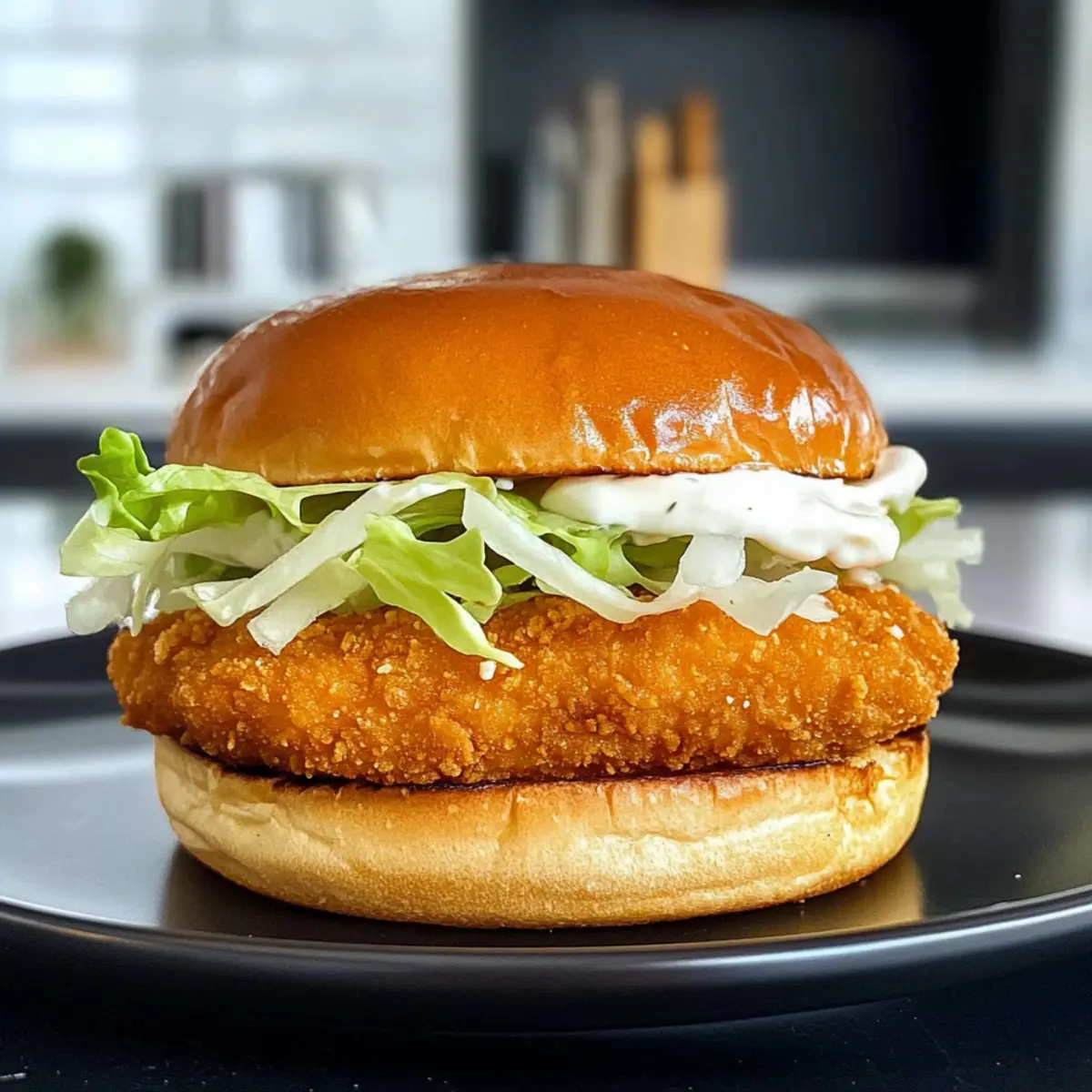 Als ich das erste Mal diesen gesunden McChicken-Sandwich zubereitete, war ich überrascht, wie einfach es war, eine fast magische Transformation zu vollziehen. Wer hätte gedacht, dass man den typischen Fast-Food-Burger in eine köstliche, nahrhafte Mahlzeit verwandeln könnte? Mit dem saftigen Hühnchenpatty und dem knusprigen, goldbraunen Äußeren bietet dieser McChicken-Sandwich nicht nur den gewohnten Comfort-Food-Geschmack, sondern auch eine gesunde Portion Protein – alles unter 400 Kalorien! Ob für ein schnelles Abendessen oder einen geselligen Mittagstisch, dieses Rezept ist perfekt für all jene, die Freude am Kochen haben und gleichzeitig auf ihre Gesundheit achten möchten. Neugierig, wie Sie Ihren eigenen, guilt-free McChicken zubereiten können? Lass uns gleich loslegen! Warum ist dieser McChicken-Sandwich einzigartig? Frische Zutaten: In diesem gesunden McChicken-Sandwich kommen nur die besten Zutaten zum Einsatz, die jeden Bissen noch besser machen. Einfachheit: Das Rezept ist unkompliziert und eignet sich auch für Kochanfänger – jeder kann diesen Burger zu Hause zaubern! Vielseitigkeit: Sie können die Füllungen ganz nach Ihrem Geschmack anpassen oder mit glutenfreien Alternativen experimentieren. Ideal für alle, die neue Geschmackserlebnisse suchen! Gesunde Option: Bei nur 396 Kalorien pro Sandwich haben Sie ein leichtes und gleichzeitig proteinreiches Gericht, das satt macht und trotzdem gut schmeckt. Gemütlicher Genuss: Perfekt für gesellige Zusammenkünfte oder ein schnelles Abendessen, ist dieser Burger ein echter Crowd-Pleaser! Probieren Sie zudem verschiedene Beilagen aus, um das Gericht zu vervollständigen, wie zum Beispiel einen frischen Salat oder gebackene Süßkartoffelpommes. McChicken-Sandwich Zutaten Hinweis: Hier sind die besten Zutaten für Ihren perfekten McChicken-Sandwich. Für das Patty: Gemahlenes Hühnchen – Hauptquelle für Protein; verwenden Sie das magerere Brustfleisch für weniger Fett. Salz – Verbessert den Geschmack; unverzichtbar zum Würzen des Hühnerfleischs. Pfeffer – Fügt einen Hauch von Würze hinzu; kann nach Geschmack angepasst werden. Zwiebelpulver – Steigert die Geschmacksvielfalt; kann durch frische Zwiebel ersetzt werden. Knoblauchpulver – Sorgt für ein aromatisches Aroma; frischer Knoblauch ist ein guter Ersatz. Für die Kruste: Olivenöl-Spray – Dient als Beschichtung und hilft, das Patty knusprig zu machen; Avocadoöl-Spray ist eine tolle Alternative. Cornflakes – Sorgt für eine knusprige Kruste; Panko-Brösel sind ebenfalls geeignet. Paprika – Verleiht Farbe und leichtes Raucharoma; optional, je nach Geschmack. Für den Belag: Leichte Mayonnaise – Fügt Cremigkeit hinzu; griechischer Joghurt ist eine gesündere Option. Brioche-Brötchen – Die Basis des Sandwiches, für ein besseres Geschmackserlebnis leicht geröstet; Vollkornbrötchen sind eine gesunde Wahl. Geriebener Kopfsalat – Bringt Frische und Knusprigkeit; ersetzen Sie ihn durch Spinat für einen anderen Geschmack. Dieses gesunde McChicken-Sandwich wird Ihnen nicht nur schmecken, sondern auch Ihre Ansprüche an gesunde Ernährung erfüllen! Schritt-für-Schritt-Anleitung für den gesunden McChicken-Sandwich Step 1: Ofen vorheizen Heizen Sie Ihren Ofen auf 200 °C Umluft (230 °C Ober-/Unterhitze) vor. Diese Temperatur sorgt dafür, dass die Patties schön knusprig werden. Während der Ofen aufheizt, bereiten Sie die anderen Zutaten vor, damit alles reibungslos weitergeht. Step 2: Hühnchen würzen Vermengen Sie das gemahlene Hühnchen in einer großen Schüssel mit Salz, Pfeffer, Zwiebelpulver und Knoblauchpulver. Mischen Sie alles gut durch, bis die Gewürze gleichmäßig verteilt sind. Diese Mischung sorgt für den herzhaften Geschmack in Ihrem gesunden McChicken-Sandwich, der Nachahmungen wert ist. Step 3: Patties formen Befeuchten Sie Ihre Hände leicht, um zu verhindern, dass die Hühnermasse kleben bleibt, und formen Sie aus der Mischung drei gleich große Bälle (ca. 150 g each). Diese kleinen Bälle werden später zu Patties geformt, also sorgen Sie dafür, dass sie gleichmäßig sind, um eine gleichmäßige Garung zu gewährleisten. Step 4: Kruste vorbereiten Zerdrücken Sie die Cornflakes in einer Schüssel und fügen Sie zusätzlich Zwiebelpulver, Knoblauchpulver und Paprika hinzu, um eine aromatische Beschichtung zu erhalten. Der Knusprigkeitsfaktor dieser Mischung ist entscheidend für das Endergebnis Ihres gesunden McChicken-Sandwiches. Step 5: Patties panieren Wälzen Sie die Hühnerbällchen in der Cornflakes-Mischung und formen Sie dabei flache Patties. Achten Sie darauf, dass die Patties gleichmäßig mit der Mischung bedeckt sind. Dieser Schritt sorgt für die knusprige Textur, die charakteristisch für unseren McChicken-Sandwich ist. Step 6: Patties backen Legen Sie die panierten Patties auf ein mit Backpapier belegtes Backblech und sprühen Sie sie leicht mit Olivenöl ein. Backen Sie die Patties für 12 bis 15 Minuten im vorgeheizten Ofen, bis sie goldbraun sind und eine Innentemperatur von mindestens 74 °C erreicht haben. Step 7: Brötchen rösten Während die Patties backen, rösten Sie die Innenseiten der Brioche-Brötchen in einer heißen Pfanne, bis sie goldbraun sind. Dies verbessert den Geschmack und die Textur Ihres gesunden McChicken-Sandwiches erheblich. Achten Sie darauf, die Brötchen nicht zu lange zu lassen, um ein Anbrennen zu vermeiden. Step 8: Sandwich zusammenstellen Verteilen Sie die leichte Mayonnaise großzügig auf beiden Brötchenhälften. Legen Sie dann ein gebackenes Patty auf die untere Hälfte, garnieren Sie es mit geriebenem Kopfsalat und decken Sie das Sandwich mit der oberen Brötchenhälfte ab. Fertig ist Ihr köstlicher, gesunder McChicken-Sandwich! Meal Prep für den gesunden McChicken-Sandwich Der gesunde McChicken-Sandwich ist ideal für die Vorbereitung für stressige Wochenabende! Sie können die Hühnerpatties bis zu 3 Tage im Voraus zubereiten und im Kühlschrank aufbewa