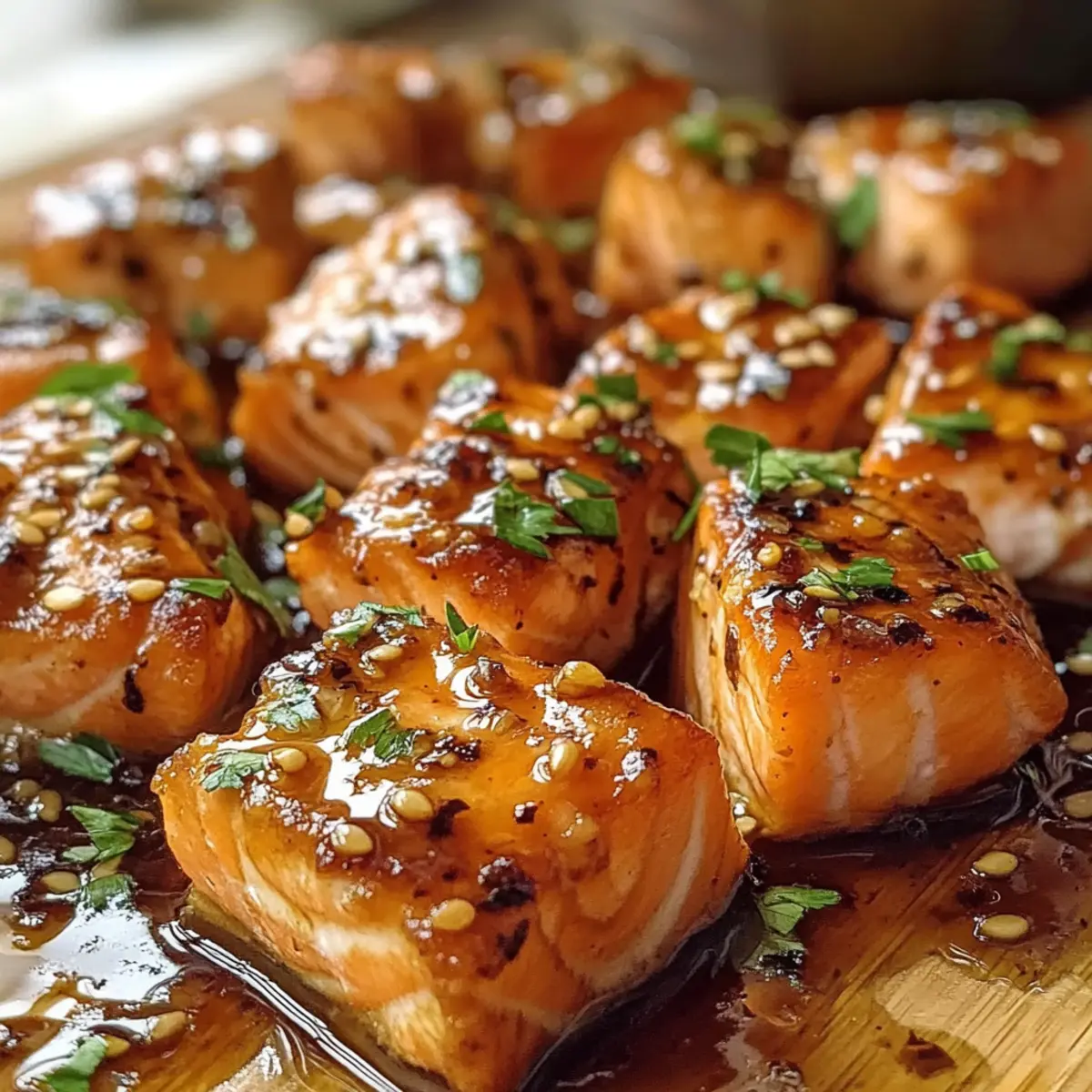 6. Übertragen Sie die Lachsbissen auf einen Servierteller und genießen Sie sie warm, serviert mit frischem Gemüse oder auf einem Bett von Reis.