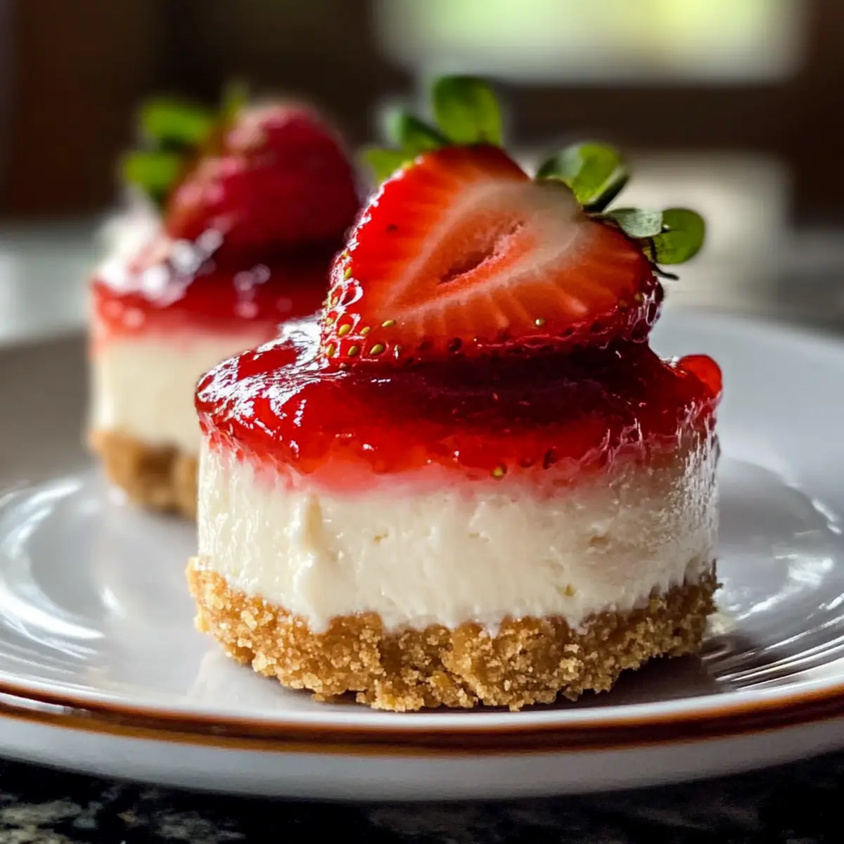 Es war einmal ein bewölkter Februarabend, an dem ich mich in meiner Küche wiederfand, um im letzten Moment etwas Süßes für den bevorstehenden Valentinstag zu kreieren. Inmitten von Schokolade und roten Herzen kam mir die Idee für die Mini Valentinstag Käsekuchen Bissen – diese kleinen, cremigen Köstlichkeiten, die gleichzeitig das perfekte Dessert für Verliebte sind. Mit nur wenigen Zutaten und minimalem Aufwand sind sie nicht nur ein absoluter Publikumsliebling, sondern auch eine großartige Lösung für alle, die ihre Liebsten mit einem unwiderstehlichen süßen Gaumenschmaus überraschen möchten. Und das Beste daran? Diese Bissen sind so vielseitig, dass du sie nach Herzenslust mit verschiedenen Toppings und sogar glutenfreien Böden zaubern kannst! Bist du bereit, deine eigene Mini-Käsekuchen-Revolution zu starten? Warum wirst du diese Mini Käsekuchen lieben? Simplicity, Die Zubereitung ist kinderleicht und benötigt nur grundlegende Backkenntnisse – perfekt für jeden, der frisch gebackene Desserts liebt. Kreativität, Du kannst sie nach Lust und Laune variieren, von glutenfreien Böden bis zu verschiedenen Fruchtbelägen, um deinen persönlichen Touch hinzuzufügen. Süßer Genuss, Jeder Bissen ist eine harmonische Mischung aus cremiger Käsekuchenfüllung und fruchtiger Süße – der wohl beste Weg, um deine Liebe an jemanden zu zeigen. Teile die Freude, Ideal für romantische Abende oder als süßer Snack bei Zusammenkünften. Wenn du auf der Suche nach weiteren köstlichen Rezepten bist, schau dir doch auch unsere Umwickelten Mozzarella Bissen oder die Erdbeer Käsekuchen Proteinbällchen an! Mini Valentinstag Käsekuchen Bissen Zutaten • Perfekt für eine süße Überraschung! Für den Boden Graham Cracker Brösel – sie bilden die köstliche Basis der Käsekuchenbissen. Ersetze sie durch zerbröselte glutenfreie Kekse für eine glutenfreie Variante. Geschmolzene Butter – bindet die Brösel und sorgt für einen stabilen Boden. Für die Füllung Frischkäse – die Hauptzutat für die cremige Füllung, die eine samtige Struktur verleiht; achte darauf, dass er Zimmertemperatur hat, um Klumpen zu vermeiden. Zucker – süßt die Füllung; passe die Menge an, wenn du es weniger süß magst. Eier – geben Stabilität; verwende große Eier für ein einheitliches Ergebnis. Vanilleextrakt – fügt der Füllung Tiefe und Aroma hinzu. Sauerrahm – trägt zur Cremigkeit und zum angenehmen Säuregeschmack bei; nutze Vollfett für die beste Konsistenz. Für die Garnitur Erdbeermarmelade – das süße Topping, das Farbe und Geschmack verleiht; du kannst auch Himbeer- oder Blaubeermarmelade verwenden, um eine Variation zu schaffen. Frische Erdbeeren – als optionale Garnitur heben sie die optische Anziehungskraft und den fruchtigen Geschmack. Die Mini Valentinstag Käsekuchen Bissen sind nicht nur ein Gaumenschmaus, sondern auch eine wunderbare Möglichkeit, Liebe durch selbstgemachte Leckereien zu zeigen! Schritt-für-Schritt-Anleitung für Mini Valentinstag Käsekuchen Bissen Step 1: Ofen vorheizen Heize deinen Ofen auf 160 °C (325 °F) vor, während du die vorbereitenden Schritte machst. Dies sorgt dafür, dass die Mini Valentinstag Käsekuchen Bissen gleichmäßig gebacken werden. Verwende ein Muffinblech und lege es mit Mini-Muffin-Förmchen aus – das erleichtert später das Herausnehmen der kleinen Köstlichkeiten. Step 2: Krustenmix herstellen Mische die Graham Cracker Brösel mit der geschmolzenen Butter in einer Schüssel, bis die Mischung die Konsistenz von nassem Sand hat. Dies ist wichtig, damit die Brösel gut aneinanderhaften. Lass die Mischung kurz ruhen, während du deinen nächsten Schritt vorbereitest, um sicherzustellen, dass sie die richtige Bindung hat. Step 3: Kruste formen Nimm etwa 1 Teelöffel der Bröselmischung und drücke sie fest in jeden Mini-Muffin-Becher. Achte darauf, dass die Kruste gleichmäßig am Boden und an den Seiten verteilt ist, damit die Mini Valentinstag Käsekuchen Bissen stabil bleiben. Backe die Krusten für 5 bis 7 Minuten im vorgeheizten Ofen, bis sie leicht goldbraun sind. Step 4: Käsekuchenfüllung zubereiten Schlage den auf Zimmertemperatur bringenden Frischkäse zusammen mit dem Zucker in einer großen Schüssel glatt und cremig. Füge die Eier einzeln hinzu und vermische sie gut, bevor du das Vanilleextrakt und den Sauerrahm unterrührst. Die Mischung sollte homogen und ohne Klumpen sein, bevor du sie in die vorbereiteten Krusten füllst. Step 5: Füllung verteilen Verteile die Käsekuchenfüllung gleichmäßig auf die vorgebackenen Böden der Mini Valentinstag Käsekuchen Bissen, bis sie fast bis zum Rand gefüllt sind. Die Füllung sollte beim Backen nicht überlaufen. Backe sie für etwa 15 Minuten, bis die Ränder fest sind und die Mitte leicht wabbelt – das ist das Zeichen dafür, dass sie gut gebacken sind. Step 6: Käsekuchen abkühlen Lass die Mini Valentinstag Käsekuchen Bissen vollständig bei Raumtemperatur abkühlen. Dies verhindert, dass sie beim Abkühlen schrumpfen oder Risse bekommen. Anschließend stelle sie für mindestens 2 Stunden in den Kühlschrank, um die perfekte Konsistenz zu erreichen. Step 7: Dekoration und Servieren Vor dem Servieren kröne jeden Käsekuchen-Biss mit einem kleinen Klecks Erdbeermarmelade und einer Scheibe frischer Erdbeere. Dies macht die kleinen Leckereien noch verführerischer und bietet einen schönen Farbkontrast. Genieße die Mini Valentinstag Käsekuchen Bissen kalt für den besten Geschmack und die optimale Textur. Was passt gut zu den Mini Valentinstag Käsekuchen Bissen? Diese kleinen, süßen Käsekuchenbissen sind der perfekte Abschluss eines romantischen Abendessens oder einer Feier zum Valentinstag. Lass dich inspirieren, dein Menü zu vervollständigen! Frische Beeren: Eine bunte Mischung aus Himbeeren, Blaubeeren und Erdbeeren bringt frische Aromen, die die Süße der Käsekuchen harmonisch ergänzen. Kaffee oder Tee: Ein aromatischer, frisch gebr