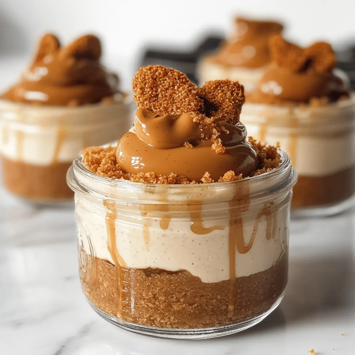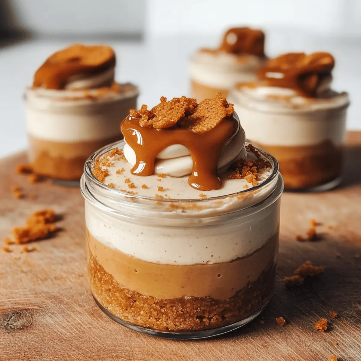 Ein süßer Duft von Karamell und Gewürzen wirkt wie ein Zauber, der mich sofort an meine Lieblingsbäckerei in Brügge erinnert. Diese Mini Veganen Biscoff Käsekuchen sind nicht nur ein köstlicher Genuss, sondern auch der perfekte Weg, um partytaugliche Desserts ohne großen Aufwand zuzubereiten. Mit einem knusprigen, buttrigen Biskuitboden und einer cremigen Füllung sind sie die Antwort auf all jene Momente, in denen man etwas Besonderes möchte, ohne stundenlang in der Küche zu stehen. Diese no-bake Köstlichkeiten sind vegan, machen beim Servieren Eindruck und sind zudem unglaublich einfach zu variieren. Wer kann da schon widerstehen? Lass uns gemeinsam in die Welt dieser kleinen Gaumenfreuden eintauchen – bist du bereit für ein süßes Erlebnis, das die Geschmacksknospen verzaubert? Warum wirst du diese Mini Käsekuchen lieben? Einfachheit pur: Der gesamte Prozess ist kinderleicht und benötigt lediglich einige grundlegende Kochfähigkeiten. Verführerischer Geschmack: Die Kombination aus Biscoff-Creme und veganem Frischkäse erzeugt ein himmlisches Geschmackserlebnis. Partytauglich: Diese Mini Käsekuchen sind der ideale Dessert-Hit für jede Feier – sie sehen nicht nur toll aus, sondern schmecken auch fantastisch! Vielfältig: Ob in Gläsern oder Muffinförmchen, du kannst sie nach Belieben anpassen. Schau dir auch unsere Erdbeer Kasekuchen Proteinballchen für eine fruchtige Variante an! Zeitersparnis: Sie sind im Handumdrehen zubereitet und benötigen keine Backzeit – das macht sie perfekt für spontane Gäste. Mini Vegane Biscoff Käsekuchen Zutaten • Diese köstlichen Käsekuchen sind nicht nur vegan, sondern auch super einfach zuzubereiten! Für den Boden: Biscoff-Kekse – Bilden die knusprige Basis und bringen eine süße Note; sie können durch ähnliche Spekulatius oder Graham-Cracker ersetzt werden. Vegane Margarine – Verbindet die Keksbrösel und sorgt für einen stabilen Boden; achte auf einen streichfähigen Typ, nicht auf Blockmargarine. Für die Füllung: Vegane Frischkäse – Sorgt für Cremigkeit und Reichhaltigkeit; die Marke Violife bietet den besten Geschmack. Glatte Biscoff-Creme – Verstärkt den Biscoff-Geschmack der Füllung; achte darauf, dass die Creme glatt ist für eine cremige Konsistenz. Puderzucker – Fügt Süße hinzu und stabilisiert die Füllung; kann durch andere Zuckeralternativen ersetzt werden. Vegane Schlagsahne – Sorgt für Luftigkeit und Leichtigkeit in der Füllung; empfehlenswerte Marken sind Elmlea plant double oder Oatly. Zusätzliche Schlagsahne (optional) – Ideal zum Garnieren und sorgt für einen zusätzlichen Frischekick. Für die Dekoration: Biscoff-Kekse und Krümel – Servieren als Topping, um Textur und Geschmack zu verleihen; sie sind opcional für eine schöne Optik. Schritt-für-Schritt-Anleitung für Mini Vegane Biscoff Käsekuchen Step 1: Boden vorbereiten Bereite ein Muffinblech mit 8 Muffinförmchen vor oder nutze 8 kleine Gläser. Zerbrich die Biscoff-Kekse in feine Krümel, indem du sie in eine Küchenmaschine gibst oder in einem Gefrierbeutel mit einem Nudelholz bearbeitest. Achte darauf, dass die Krümel fein sind, damit sie gut zusammenhalten. Step 2: Boden mischen Schmelze die vegane Margarine in einem kleinen Topf bei niedriger Temperatur und lasse sie dann leicht abkühlen. Vermische die geschmolzene Margarine gründlich mit den Biscoff-Krümeln, bis sich alles gut verbindet. Diese Mischung bildet die knusprige Basis für deine Mini Veganen Biscoff Käsekuchen. Step 3: Boden festigen Teile die Keks-Margarine-Mischung gleichmäßig auf die Muffinförmchen oder in die Gläser auf. Drücke die Mischung mit einem Löffel oder den Fingern fest, um einen stabilen Boden zu schaffen. Stelle das Muffinblech oder die Gläser für mindestens 30 Minuten in den Kühlschrank, damit der Boden fest wird. Step 4: Füllung vorbereiten In einer großen Schüssel vermischt du den veganen Frischkäse, die Biscoff-Creme und den Puderzucker. Rühre alles mit einem Handmixer auf mittlerer Stufe für etwa 2-3 Minuten, bis die Mischung schön glatt und cremig ist. Diese Füllung wird das Herz deiner Mini Veganen Biscoff Käsekuchen sein. Step 5: Sahne schlagen Füge die vegane Schlagsahne zur Füllungsmischung hinzu. Mit dem Handmixer schlägst du die Mischung auf hoher Stufe für etwa 4-5 Minuten, bis sie dick und stabil genug ist, um ihren Form zu halten. Diese luftige Textur ist wichtig für die Cremigkeit der Käsekuchen. Step 6: Käsekuchen zusammenstellen Verteile die cremige Füllung gleichmäßig auf den gekühlten Böden deiner Muffinförmchen oder Gläser. Glätte die Oberseite mit einem Spatel oder Löffel für eine ansprechende Präsentation. Achte darauf, dass die Füllung bis zur Oberkante geht, um Platz für Dekoration zu lassen. Step 7: Kühlen Lasse die Mini Veganen Biscoff Käsekuchen mindestens 12 Stunden im Kühlschrank ruhen, damit sie gut fest werden. Dies stellt sicher, dass die Füllung die perfekte Konsistenz erreicht. Step 8: Servieren Wenn sie fest sind, kannst du die Muffinförmchen vorsichtig entfernen oder die kleinen Gläser dekorativ anrichten. Garniere die Käsekuchen nach Belieben mit zusätzlicher Schlagsahne, geschmolzener Biscoff-Creme und Biscoff-Krümeln für einen attraktiven und leckeren Abschluss. Was passt zu Mini Veganen Biscoff Käsekuchen? Ein perfektes Dessert wird durch die richtigen Begleiter wirklich rund, und diese Mini Veganen Biscoff Käsekuchen sind da keine Ausnahme. Lass uns die Vielfalt der möglichen Kombinationen erkunden! Frischer Obstsalat: Bunte Früchte bringen eine erfrischende Leichtigkeit mit, die die Cremigkeit des Käsekuchens wunderbar ergänzt. Ihre natürliche Süße harmoniert perfekt mit dem Karamellgeschmack. Kaffee oder Tee: Warm gebrühter Kaffee oder aromatischer Tee sind die idealen Getränke, um diesen köstlichen Käsekuchen zu begleiten. Sie sorgen für einen schönen Kontrast und runden das Geschmackserlebnis ab. Vegane Schlagsahne: E
