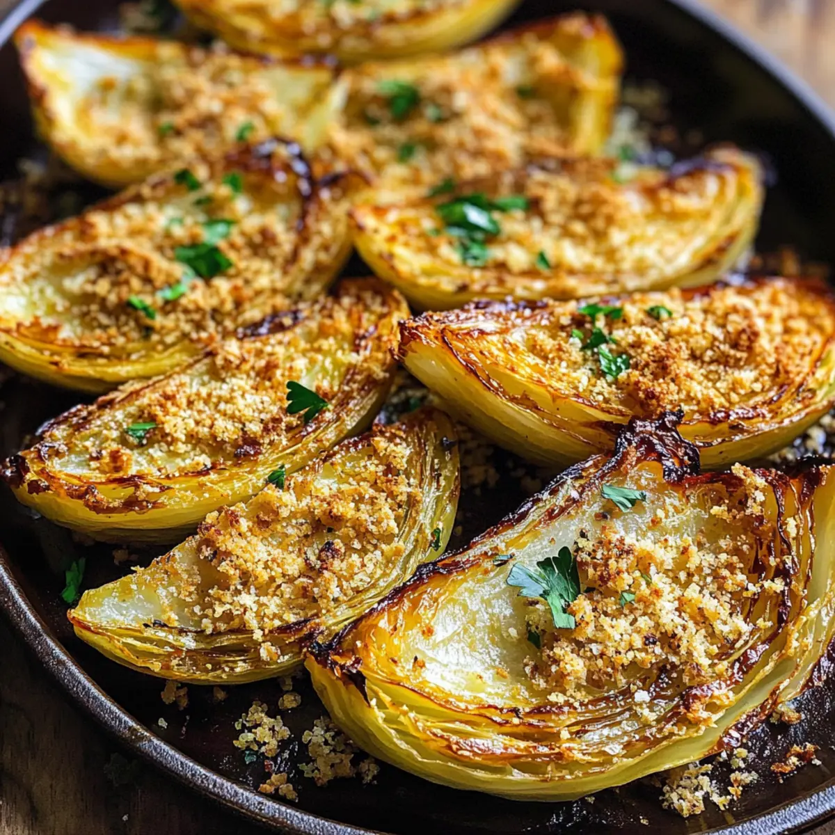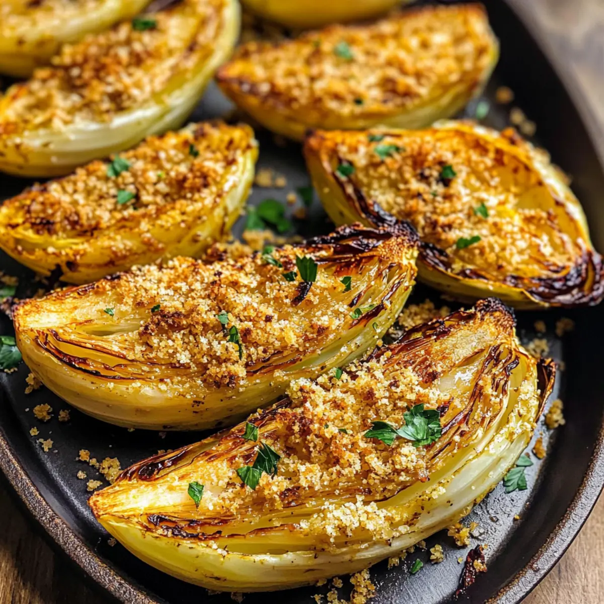 7. Entnimm die Kohlkeile aus dem Ofen und bestreue sie mit gerösteten Semmelbröseln.