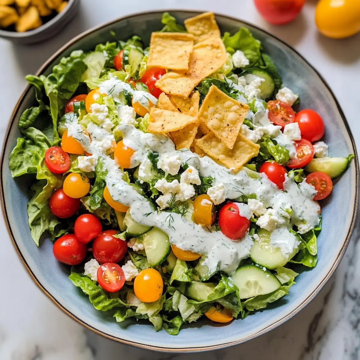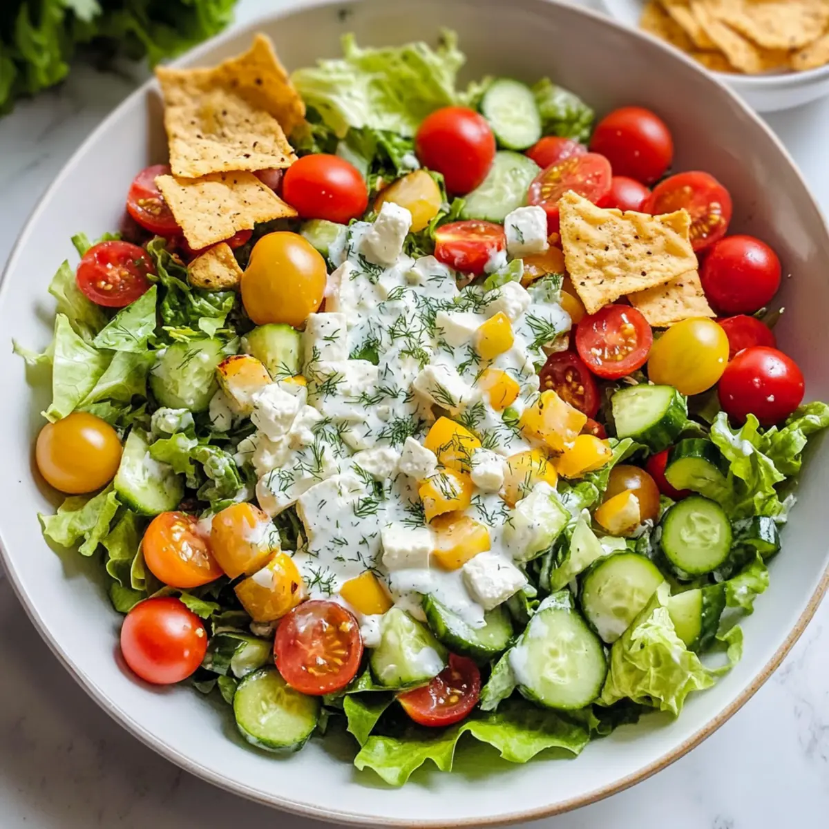 Mittelmeer-Gehackter-Salat mit Cremiger Feta-Dill-Dressing