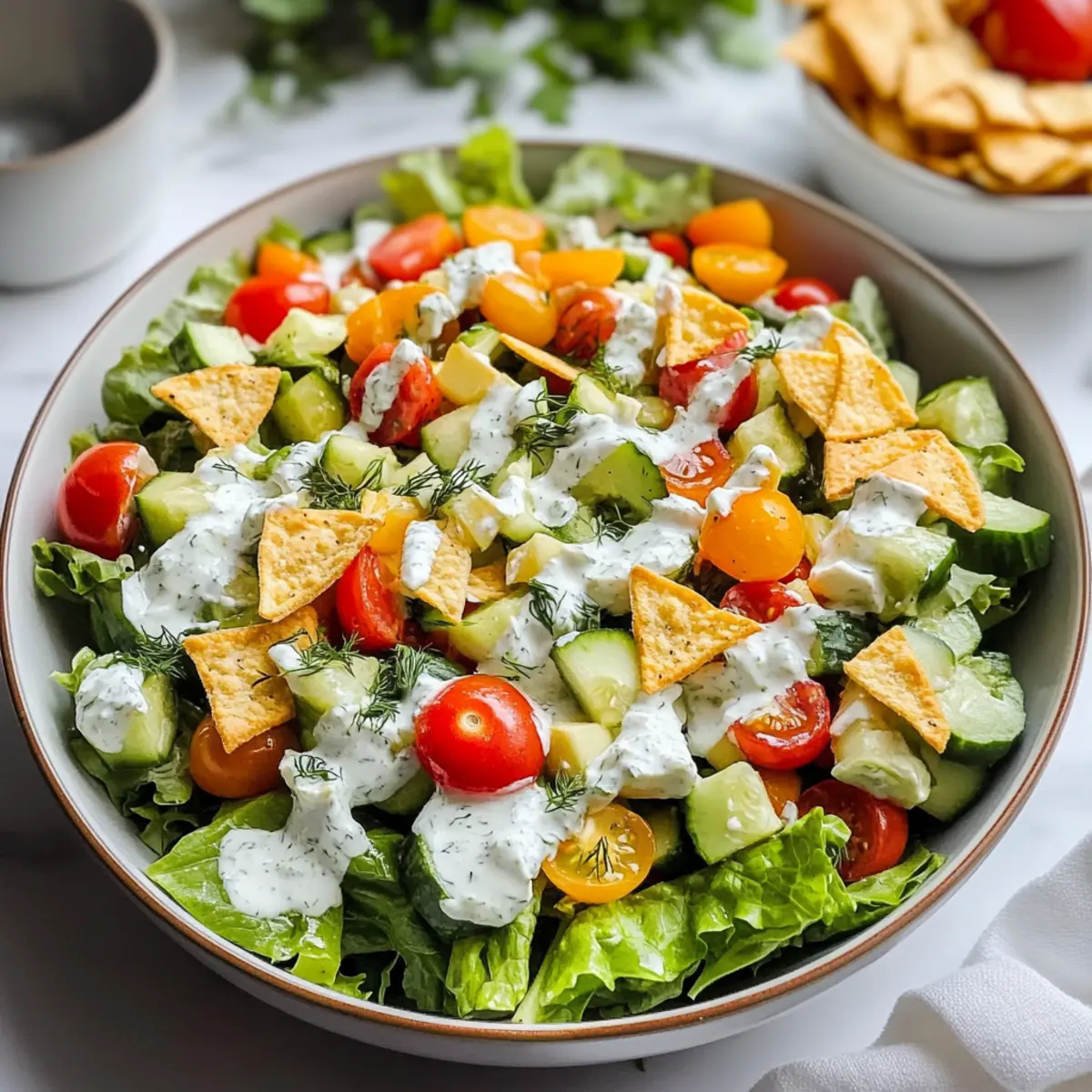 • Knusprige Pita-Brote: Diese sind eine großartige Ergänzung, die den Salat perfekt für das Dippen des cremigen Dressings ergänzt. Servieren Sie diese warm, um den Geschmack zu intensivieren.
