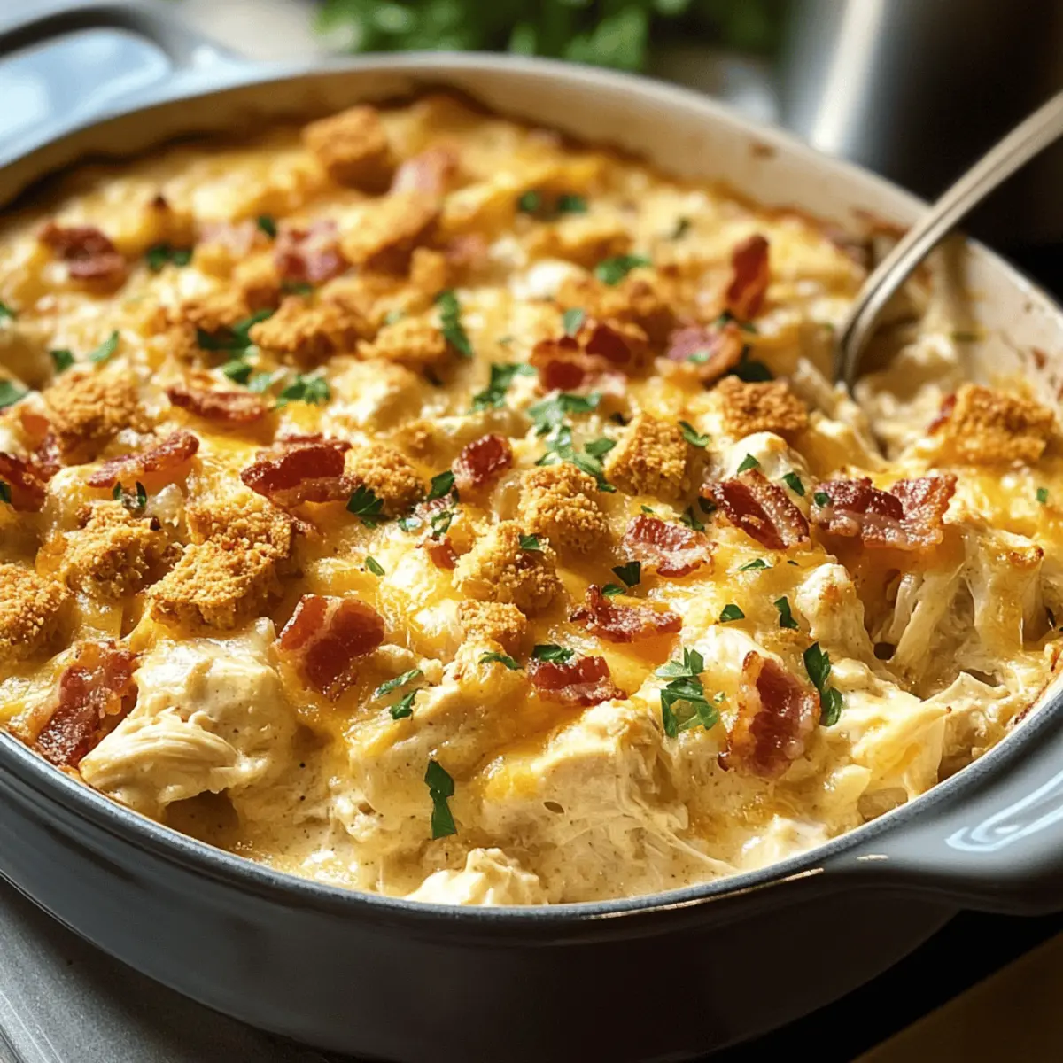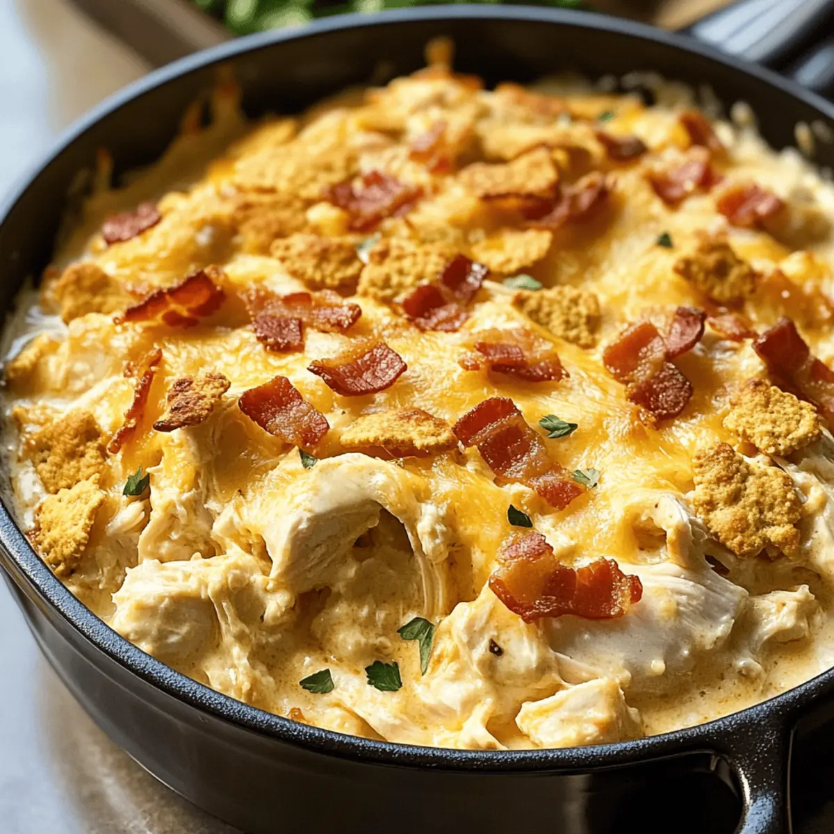 • Hähnchencremesuppe – bildet die cremige Basis; für eine gesündere Option kannst du eine selbstgemachte Mehlschwitze verwenden.