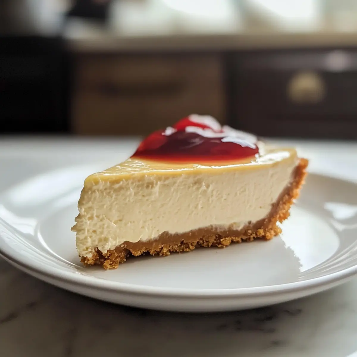 Das Aroma von frisch geschlagener Sahne erfüllt die Küche, während ich mich an die Zubereitung eines No-Bake Käsekuchens mache. Diese einfache und köstliche Dessertvariante bringt das Beste eines klassischen Käsekuchens auf den Tisch, ohne dass ein Ofen nötig ist! Mit nur wenigen Zutaten lässt sich dieser cremige Genuss im Handumdrehen zubereiten. Perfekt für warme Sommertage, wenn der letzte Wunsch darin besteht, sich mit dem Backofen abzugeben. Außerdem ist dieser No-Bake Käsekuchen nicht nur fix gezaubert, sondern auch ein wahrer Publikumsmagnet bei jedem Treffen mit Freunden oder der Familie. Möchtet ihr erfahren, welche köstlichen Toppings eurem Kuchen eine persönliche Note verleihen können? Warum ist dieser No-Bake Käsekuchen besonders? Einfachheit, die begeistert: Der No-Bake Käsekuchen ist unglaublich easy und benötigt keinerlei Backkünste! Schnelle Zubereitung: Mit nur wenigen Zutaten und minimalem Aufwand ist dieser Kuchen in kürzester Zeit servierbereit. Perfekt, wenn unerwarteter Besuch vor der Tür steht! Vielfältige Toppings: Egal ob mit Kirschen, Heidelbeeren oder einer Schokoladensauce – die variierenden Toppings machen jeden Kuchen einzigartig und anpassbar. Cremige Textur: Der samtige Füllung, die im Mund schmilzt, sorgt für ein unvergleichliches Geschmackserlebnis, das jeden begeistern wird. Ideal für jede Gelegenheit: Ob als Dessert beim Familienessen oder als süßer Snack bei einer Feier – dieser No-Bake Käsekuchen ist immer ein Hit! Besonderer Genuss: Wollt ihr mehr über Variationen erfahren? Wenn ja, schaut euch unbedingt unsere Variation Ideen für originelle Käsekuchen-Toppings an. No-Bake Käsekuchen Zutaten Zutaten für den Keksboden Graham Cracker Krümel – bietet Struktur und eine krümelige Textur für den Boden. (Es können auch glutenfreie Kekse verwendet werden.) Ungesalzene Butter (geschmolzen) – dient als Bindemittel für den Keksboden und sorgt dafür, dass er zusammenhält. (Kokosöl kann für eine milchfreie Variante genutzt werden.) Zutaten für die Füllung Frischkäse (weich) – die Hauptzutat für die Füllung, die eine reichhaltige, cremige Textur schafft. (Achte darauf, dass er Zimmertemperatur hat, um Klumpen zu vermeiden.) Zucker – bringt die nötige Süße in die Füllung. (Puderzucker kann für eine noch feinere Mischung verwendet werden.) Vanilleextrakt – intensiviert den Geschmack und das Aroma des Käsekuchens. (Für das beste Ergebnis, verwende reinen Vanilleextrakt.) Schlagsahne (kalt) – wird geschlagen, um der Füllung Leichtigkeit und Volumen zu verleihen. (Kokoscreme kann als milchfreie Alternative verwendet werden.) Optionales Topping Konservierte Früchte (z. B. Kirsch- oder Heidelbeeren) – dienen als Topping, um eine fruchtige Note und ästhetische Anziehung zu verleihen. (Frische Früchte oder Schlagsahne sind ebenfalls köstliche Alternativen.) Dieser No-Bake Käsekuchen ist der ideale Leckerbissen für gesellige Anlässe und lässt sich ganz einfach anpassen! Schritt-für-Schritt-Anleitung für den No-Bake Käsekuchen Step 1: Keksboden zubereiten Vermische in einer kleinen Schüssel die Graham Cracker Krümel mit der geschmolzenen Butter und einem Esslöffel Zucker, bis alles gleichmäßig befeuchtet ist. Drücke die Mischung fest in den Boden einer 20 oder 23 cm großen Glas-Backform. Stelle die Form für mindestens 30 Minuten in den Kühlschrank, damit der Boden fest wird und die perfekte Basis für deinen No-Bake Käsekuchen bildet. Step 2: Käsekuchenfüllung mischen Gib den weichgecremten Frischkäse und den restlichen Zucker in eine große Schüssel. Mit einem Handmixer oder einer Küchenmaschine verrühren, bis die Masse glatt und klumpenfrei ist. Scrape die Seiten der Schüssel ab und vermische erneut, um sicherzustellen, dass alle Zutaten gut integriert sind. Die Basis für deine cremige Füllung ist nun bereit. Step 3: Vanille und Sahne hinzufügen Füge nun den Vanilleextrakt zur Frischkäsemasse hinzu und vermische alles gut. Gieße die kalte Schlagsahne in die Mischung und teile sie in vier Portionen auf. Rühre jede Portion ein, bis die Füllung dick und fluffig ist, jedoch achte darauf, nicht zu übermixen, da dies die Konsistenz des No-Bake Käsekuchens beeinträchtigen kann. Step 4: Füllung im Kühlschrank ruhen lassen Gieße die fertige Käsekuchenfüllung auf den vorher gekühlten Keksboden. Verwende einen Spatel, um die Oberseite glatt zu streichen und eine ansprechende Oberfläche zu erhalten. Decke die Form mit Frischhaltefolie ab und stelle sie für mindestens 2 Stunden, besser über Nacht, in den Kühlschrank, damit der Käsekuchen schön fest wird. Step 5: Dekorieren und servieren Sobald der No-Bake Käsekuchen gut gekühlt ist und die richtige Festigkeit erreicht hat, kannst du ihn in Stücke schneiden. Serviere ihn mit deinem Lieblingsfruchtbelag, wie Kirschen oder Heidelbeeren, oder garniere ihn mit frisch geschlagener Sahne für das perfekte süße Finale. Experten Tipps für den perfekten No-Bake Käsekuchen Weiche Zutaten: Stelle sicher, dass der Frischkäse Zimmertemperatur hat, um Klumpen in der Füllung zu vermeiden und die Cremigkeit zu fördern. Nicht übermixen: Achte darauf, die Sahne nur bis zur gewünschten Konsistenz zu schlagen. Übermixen kann die Füllung dünn machen und verhindern, dass der No-Bake Käsekuchen fest wird. Ideale Ruhezeit: Lass den Kuchen am besten über Nacht im Kühlschrank ruhen. Dies sorgt nicht nur für eine bessere Festigkeit, sondern auch für einen intensiveren Geschmack. Variiere die Toppings: Experimentiere mit verschiedenen Früchten oder Schokoladensaucen, um deinem No-Bake Käsekuchen eine persönliche Note zu verleihen. Aufbewahrung: Lagere Reste gut abgedeckt im Kühlschrank für 3-5 Tage oder friere Stücke ein, um die Frische zu bewahren. Was passt gut zum No-Bake Käsekuchen? Zaubere mit wunderbaren Beilagen die perfekte Ergänzung zu deinem leckeren Dessert und verwandle es in ein festliches Geschmackse