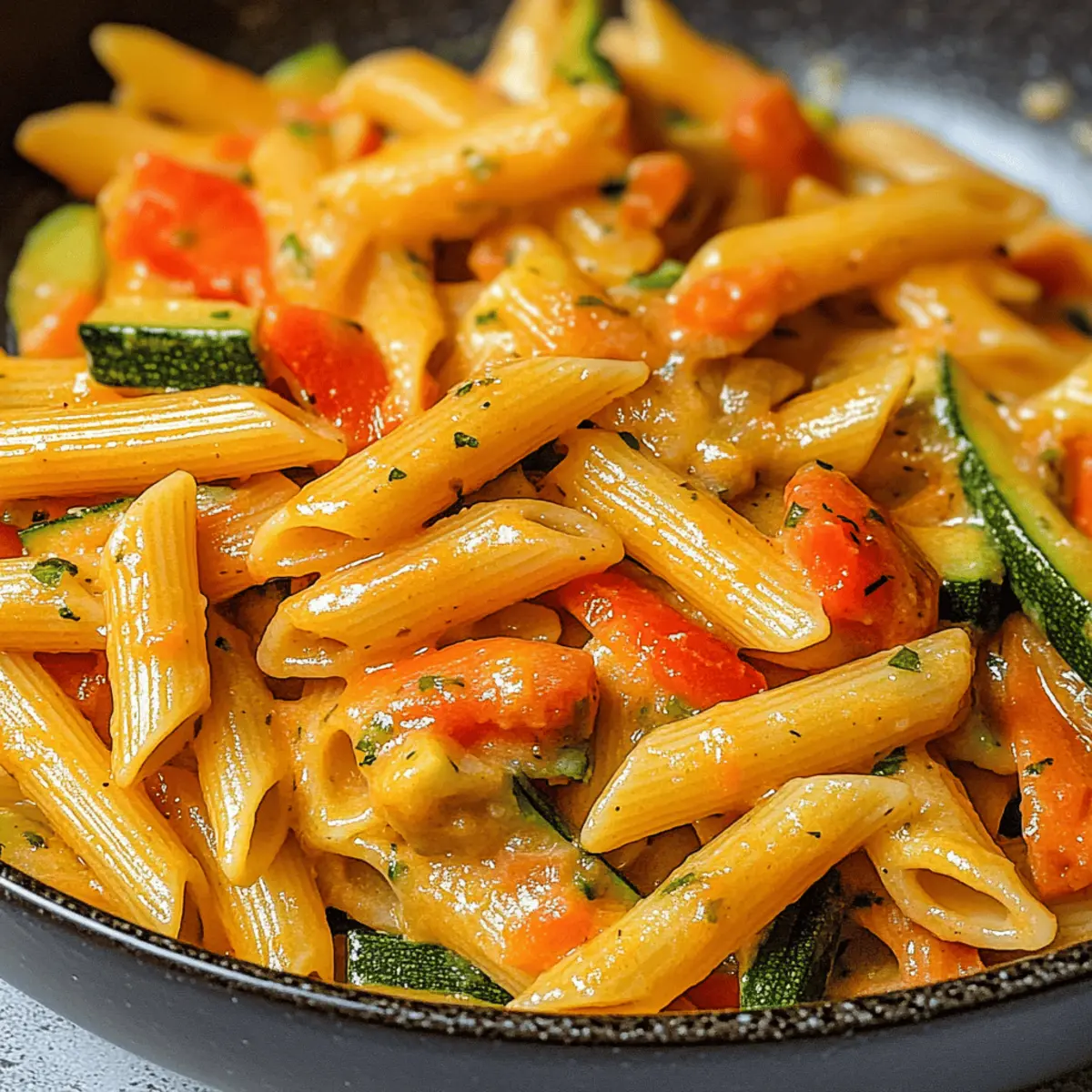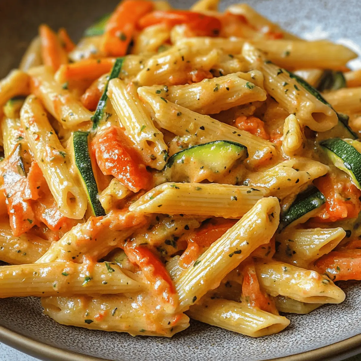 Während ich in meiner Küche stehe, wird mir plötzlich klar, dass das Beste an der Zubereitung von Noodles with vegetables die schier endlosen Möglichkeiten sind! Diese cremige Pasta mit Gemüse ist nicht nur eine schnelle Lösung für hektische Wochentage, sondern auch eine gesunde, vegetarische Mahlzeit, die man ganz nach seinem Geschmack anpassen kann. Mit leuchtenden Farben von frischen Zutaten wie Paprika, Zucchini und Karotten ist sie ein wahres Fest für Augen und Gaumen. In nur 15 Minuten zauberst du ein Gericht, das sowohl sättigend als auch köstlich ist. Egal ob du nach einer gesunden Abwechslung zu Fast Food suchst oder einfach nur Lust auf ein herzhaftes Dinner hast, dieses Rezept wird dich begeistern! Welche Gemüseversion wirst du ausprobieren? Warum wirst du dieses Rezept lieben? Einfachheit: Die Zubereitung ist unkompliziert und benötigt nur grundlegende Kochkenntnisse. In nur 15 Minuten hast du eine köstliche Mahlzeit auf dem Tisch! Vielfältige Optionen: Du kannst Gemüse nach Saison austauschen oder optional Protein wie Hühnchen oder Käse hinzufügen, um dein Gericht zu individualisieren. Gesunde Wahl: Diese cremige Pasta ist nicht nur lecker, sondern auch gesund und perfekt für eine ausgewogene Ernährung. Auge und Gaumen: Die bunten Zutaten machen das Gericht nicht nur schmackhaft, sondern auch ein echter Genuss fürs Auge. Schnell & Sättigend: Ideal für hektische Abende, wenn du eine schnelle, aber trotzdem nahrhafte Mahlzeit benötigst. Probiere doch auch unsere anderen vegetarischen Rezepte für noch mehr Inspiration! Nudeln mit Gemüse Zutaten Für die Pasta • Penne – Die Basis des Gerichts, die für die nötigen Kohlenhydrate sorgt. Ersetze sie durch glutenfreie Nudeln, wenn nötig. • Zucchini – Sorgt für Feuchtigkeit und einen subtilen Geschmack. Kann durch Auberginen oder Brokkoli ersetzt werden. • Karotte – Bringt Süße und Farbe ins Gericht. Alternativen sind gelbe Zucchini oder Erbsen. • Paprika – Liefert Crunch und eine süße Note. Rote oder gelbe Sorten passen gut; kann weggelassen werden, wenn nicht vorhanden. • Leichte Sahne – Verleiht der Sauce Cremigkeit und Reichhaltigkeit. Ersetze sie durch griechischen Joghurt für eine leichtere Variante. Für die Sauce • Tomatenmark – Verstärkt den Geschmack und sorgt für Tiefe. Frische Tomaten oder Marinara-Sauce können auch verwendet werden. • Knoblauch – Für ein aromatisches Geschmackserlebnis. Verwende Knoblauchpulver, wenn frischer nicht verfügbar ist. • Zwiebel – Basisgeschmacksverstärker; bevorzugt gelbe oder weiße Zwiebel. Schalotten sind ebenfalls eine gute Option. • Oregano – Fügt kräutrige Noten hinzu. Trocken italienische Gewürzmischung ist eine mögliche Alternative. • Ölspray – Zum Kochen ohne unnötiges Fett. Verwende Olivenöl für einen reichhaltigeren Geschmack. Mit diesen Zutaten wirst du eine köstliche Variante der Nudeln mit Gemüse zaubern, die nicht nur schnell, sondern auch gesund ist! Step-by-Step Instructions for Nudeln mit Gemüse – Schnell und Lecker Step 1: Nudeln kochen Bringe einen großen Topf mit gesalzenem Wasser zum Kochen und gib die Penne dazu. Koche die Nudeln gemäß der Packungsanweisung, bis sie al dente sind (ca. 8–10 Minuten). Achte darauf, die Nudeln gelegentlich umzurühren, damit sie nicht zusammenkleben. Sobald sie fertig sind, gieße sie ab und stelle sie beiseite. Step 2: Gemüse vorbereiten Während die Nudeln kochen, bereite das Gemüse vor. Würfle die Paprika, hacke den Knoblauch und die Zwiebel fein, reibe die Karotte und schneide die Zucchini in Scheiben. Achte darauf, alle Zutaten gleichmäßig zu schneiden, damit sie gleichmäßig garen. Leg das vorbereitete Gemüse in eine Schüssel für einen schnellen Zugriff bereit. Step 3: Zwiebeln und Knoblauch anbraten Erhitze in einer großen Pfanne bei mittlerer Hitze einen Sprühstoß Ölspray. Gib die gewürfelte Zwiebel und den gehackten Knoblauch dazu und brate sie für etwa 3–4 Minuten an, bis die Zwiebeln glasig sind. Du solltest einen aromatischen Duft wahrnehmen, der sich in der Küche verbreitet. Step 4: Gemüse hinzufügen Füge die gewürfelte Paprika, die geriebene Karotte und die Zucchini in die Pfanne hinzu. Brate das Gemüse etwa 5–7 Minuten lang, bis es zart, aber noch bissfest ist. Rühre während des Garens regelmäßig um, damit die Zutaten nicht anhaften und gleichmäßig weich werden. Step 5: Sauce zubereiten Verringere die Hitze auf niedrig und gieße die leichte Sahne, das Tomatenmark und den Oregano in die Pfanne mit dem Gemüse. Rühre alles gut um, bis die Mischung gleichmäßig und cremig ist. Lass die Sauce einige Minuten köcheln, damit sich die Aromen verbinden und die Sauce leicht eindickt. Step 6: Nudeln einmischen Gib die abgetropften Penne in die Pfanne mit der Gemüsesoße. Mische alles gut durch, sodass die Nudeln gleichmäßig mit der cremigen Sauce umhüllt sind. Lass das Ganze auf niedriger Hitze für 2–3 Minuten erwärmen, bis alles gut durchgezogen ist und die Nudeln heiß servierbereit sind. Expert Tips für Nudeln mit Gemüse Gemüse gleichmäßig schneiden: Achte darauf, die Zutaten in ähnliche Größen zu schneiden. So garen sie gleichmäßig und verhindern eine matschige Konsistenz. Nicht überkochen: Reduziere die Hitze, um das Gemüse bissfest zu halten. Ein Übergaren nimmt die Farbe und den Crunch weg, die dieses Gericht so besonders machen. Kreative Anpassungen: Experimentiere mit saisonalen Gemüsesorten oder füge für mehr Protein gekochtes Hühnchen oder Tofu hinzu, um deine Nudeln mit Gemüse zu individualisieren. Frische Kräuter verwenden: Frische Kräuter wie Basilikum oder Petersilie können kurz vor dem Servieren hinzugefügt werden, um das Gericht noch aromatischer zu machen. Sahne-Alternativen: Wenn du eine leichtere Option suchst, probiere griechischen Joghurt statt leichter Sahne. Der Geschmack bleibt trotzdem cremig und köstlich. Was passt gut zu Nudeln mit Gemüse? Ein pe