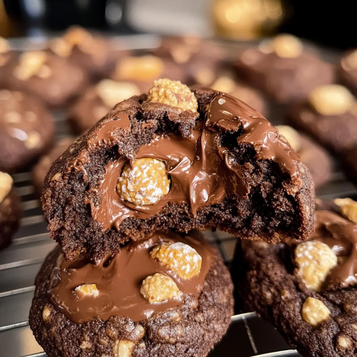 Ein verführerischer Duft von frisch gebackenem Gebäck weht durch die Küche und weckt sofort Erinnerungen an glückliche Kindheitstage. Diese Nutella-Kekse sind nicht nur ein Fest für die Sinne, sondern auch die perfekte süße Belohnung nach einem langen Tag. Mit einem chewy Schokoladenteig, einer geschmolzenen Nutella-Füllung und dem knackigen Crunch von Ferrero Rocher machen sie jeden Bissen zu einem unvergesslichen Genuss. Einfach zuzubereiten und ideal für jeden Anlass, ob festliche Feiertage oder gemütliche Nachmittage mit Freunden – diese Kekse sind ein absoluter Hit. Und das Beste daran? Sie können sie problemlos vorbereiten und verschenken, denn sie bleiben frisch und köstlich! Welche Geheimnisse sich wohl hinter diesem schokoladigen Leckerbissen verbergen? Warum sind diese Kekse unwiderstehlich? Einfachheit: Die Zubereitung dieser Nutella-Kekse ist kinderleicht – selbst Anfänger können sie meisterhaft hinbekommen. Reicher Geschmack: Die Kombination aus herzhafter Schokolade und dem cremigen Nutella-Kern sorgt für eine geschmackliche Explosion. Vielseitigkeit: Ob als Dessert zu einem Kaffee oder als Snack für Kindergeburtstage – diese Kekse passen immer! Perfekte Textur: Jede Kapsel bietet ein aufregendes Zusammenspiel von chewy und crunchy – genau das, was das Herz begehrt. Wenn Ihr mehr Keksideen sucht, probiert doch mal die Schokoladen Karamell Kekse oder die Erdbeer Crunch Kekse. Die Möglichkeiten, eure Backkünste zu erweitern, sind vielfältig! Nutella-Kekse Zutaten Hinweis: Die perfekten Zutaten, um köstliche Nutella-Kekse zu zaubern! Für den Teig • Nutella – sorgt für eine süße, cremige Füllung; stelle sicher, dass sie vorher gut gefroren ist. • Allzweckmehl – gibt den Keksen die nötige Struktur; genaues Messen ist entscheidend für das beste Ergebnis. • Dutch Process Kakao – verleiht dem Teig eine tiefere Geschmacksnote; normaler Kakao kann als Alternative verwendet werden. • Backpulver – ist wichtig für die richtige Konsistenz; lasse es nie weg. • Salz – hebt den Geschmack; auch in süßen Keksen unverzichtbar. • Ungesalzene Butter – sorgt für Feuchtigkeit und Reichhaltigkeit; kann durch Margarine oder vegane Butter ersetzt werden. • Hellbrauner Zucker – sorgt für zusätzliche Feuchtigkeit und karamellige Noten; Granulatzucker kann verwendet werden, aber die Kekse werden weniger chewy. • Kristallzucker – für die Süße; die Verhältnisänderung mit braunem Zucker sorgt für unterschiedliche Geschmacksrichtungen. • Eiergelb – trägt zur Reichhaltigkeit und Feuchtigkeit bei; verwende keine ganzen Eier als Ersatz. • Vanilleextrakt – verleiht zusätzlichen Geschmack; kann auch durch Mandelaroma ersetzt werden. Für die Füllung und den Belag • Ferrero Rocher – sorgt für einen knackigen Crunch und nussigen Geschmack; kann durch Schokoladensplitter (1 Tasse) ersetzt werden. • Gehackte Haselnüsse – für den Belag, die Textur und das Aroma zu verstärken. • Meersalz – für den perfekten Abschluss, sorgt für das gewisse Etwas. Schritt-für-Schritt-Anleitung für Saftige Nutella-Kekse mit Ferrero Rocher Überraschung Step 1: Nutella einfrieren Teile die Nutella in 17 Portionen und forme sie zu kleinen Bällchen. Lege sie auf ein Backblech oder eine flache Platte und stelle sie für etwa 1-2 Stunden ins Gefrierfach, bis sie fest sind. Dies verhindert, dass die Nutella beim Backen ausläuft und sorgt für einen köstlichen Kern in den Keksen. Step 2: Ferrero Rocher vorbereiten Nehme die Ferrero Rocher und hacke sie grob mit einem scharfen Messer. Ziel ist es, die Schokoladen-Nuss-Bonbons in kleinere Stücke zu verwandeln, die später in den Keksteig eingearbeitet werden. Die knusprige Textur wird den saftigen Nutella-Keksen eine zusätzliche Geschmackskomponente verleihen. Step 3: Trockene Zutaten mischen In einer mittelgroßen Schüssel, mische das Allzweckmehl, den Dutch Process Kakao, das Backpulver und das Salz gründlich zusammen. Vergewissere dich, dass keine Klumpen vorhanden sind, damit die Kekse gleichmäßig aufgehen. Diese trockenen Zutaten bilden die Basis für die köstlichen Nutella-Kekse. Step 4: Butter und Zucker cremig schlagen Verwende einen elektrischen Mixer, um die zimmerwarme Butter zusammen mit dem hellbraunen Zucker und dem Kristallzucker in einer großen Schüssel zu schaumiger, heller Masse zu schlagen. Dies sollte etwa 2 Minuten dauern. Die Mischung wird fluffig und sorgt für eine zarte Struktur der Kekse. Step 5: Feuchte Zutaten hinzufügen Füge nun die Eigelbe und den Vanilleextrakt zu der geschlagenen Butter-Zucker-Mischung hinzu. Mische alles gut, bis die Masse cremig und blass ist. Diese Mischung verleiht den Nutella-Keksen Feuchtigkeit und einen wunderbaren Geschmack, der perfekt mit der Schokolade harmoniert. Step 6: Trockene und feuchte Zutaten kombinieren Gib die trockenen Zutaten schrittweise zu den feuchten Zutaten und vermische alles, bis gerade so ein Teig entsteht. Achte darauf, nicht zu lange zu rühren, damit die Kekse schön zart bleiben. Der dunkelbraune Teig wird bald die Basis für die herzhaften Nutella-Kekse bilden. Step 7: Ferrero Rocher unterheben Verwende einen Spatel, um die grob gehackten Ferrero Rocher vorsichtig unter den Teig zu heben. Achte darauf, die Stücke gleichmäßig zu verteilen, damit jeder Keks ein Stück des knusprigen Schokoladens und Nussgeschmacks erhält. Dies wird dem Keks eine köstliche Überraschung geben. Step 8: Kekse formen Mit einem Esslöffel oder einem Eisportionierer nimmst du portionsweise Teig und formst 17 kleine Bällchen. Flatte jedes Bällchen leicht ab, lege ein gefrorenes Nutella-Bällchen darauf und forme den Teig erneut um die Nutella, sodass sie gut eingekapselt ist. Dies sorgt für den perfekten, geschmolzenen Kern. Step 9: Kekse backen Heize deinen Ofen auf 180 °C vor und lege ein Backblech mit Backpapier aus. Backe jeweils 6 Kekse für 10-11 Minuten, bis sie fest und leicht nach oben gewölbt sin