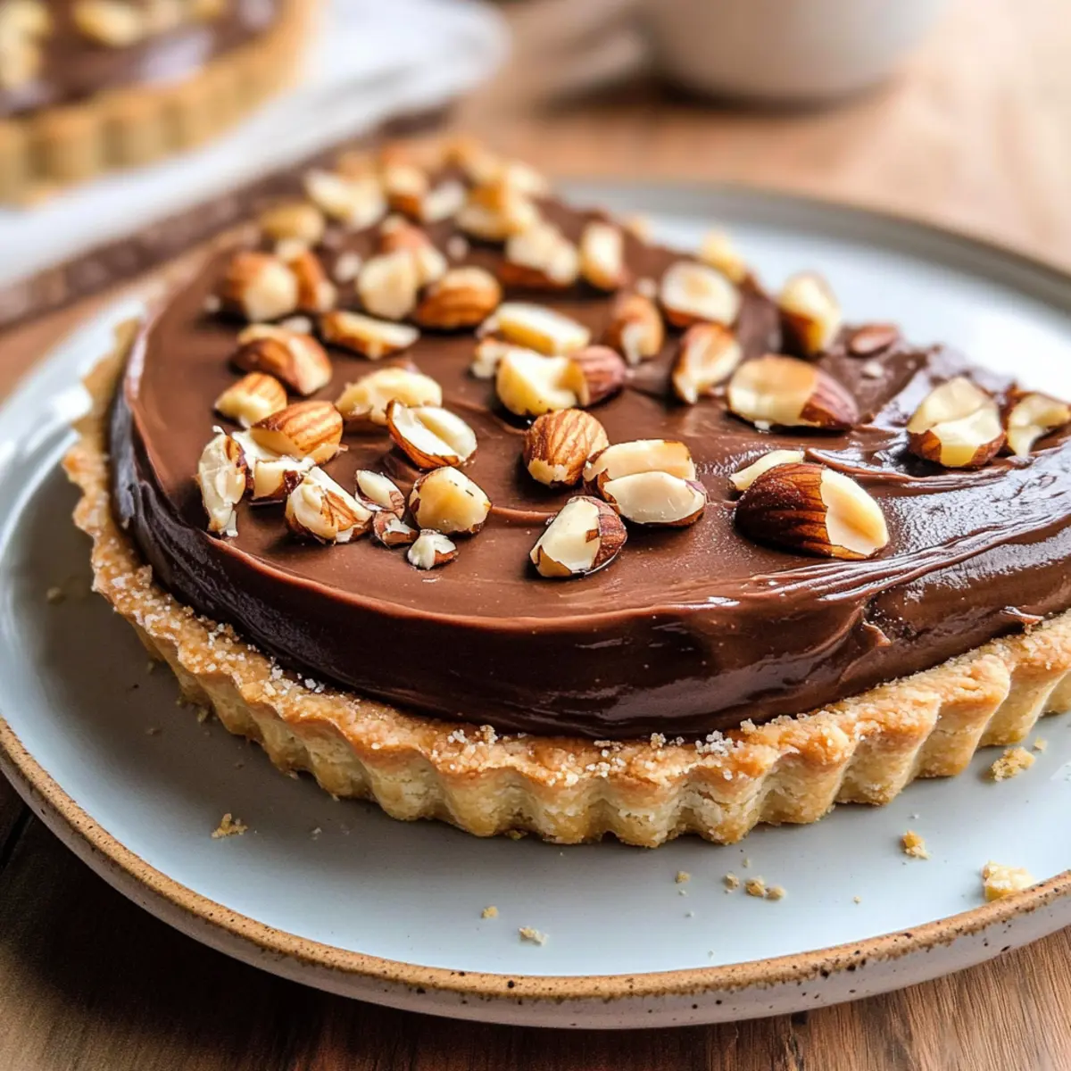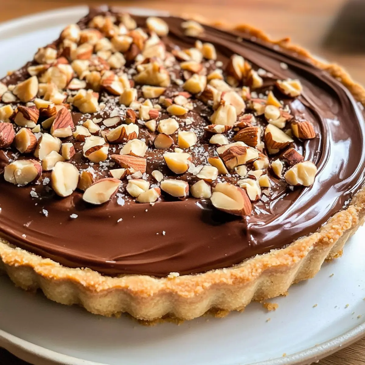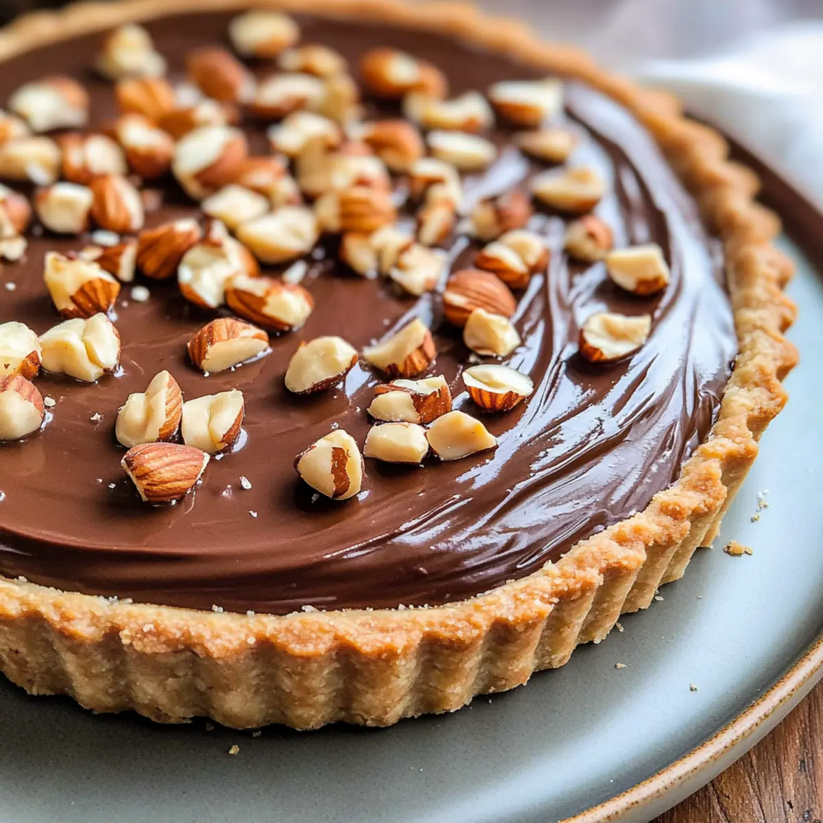 Als ich vor kurzem in meiner Küche stand, um ein neues Dessert zu kreieren, bemerkte ich das verlockende Glas Nutella, das auf dem Regal thronte. Diese entzückende Nutella-Tarte, oder wie ich sie liebevoll nenne: die Schokoladen-Haselnuss-Tarte, ist die perfekte Lösung für alle, die nach einer harmonischen Balance zwischen Leichtigkeit und Geschmack suchen. Mit einer knusprigen Kruste und einer sahnigen Füllung kommt diese Tarte nicht nur geschmacklich, sondern auch optisch beeindruckend daher. Sie ist nicht nur ein echter Hingucker, sondern auch blitzschnell zuzubereiten und eignet sich hervorragend als köstlicher Krönungsabschluss für jedes Essen. Wie wäre es, wenn wir gemeinsam in das Reich der Genüsse eintauchen und diese verführerische Tarte zubereiten? Warum wirst du diese Tarte lieben? Einfachheit: Die Zubereitung dieser Nutella-Tarte ist unkompliziert und erfordert nur einige grundlegende Backfähigkeiten. Verführerischer Geschmack: Die Kombination aus reichhaltiger Schokolade und aromatischen Haselnüssen sorgt für ein unvergleichliches Geschmackserlebnis, das die Sinne verwöhnt. Zeitersparnis: Mit wenigen Zutaten und einem gestrafften Prozess ist dieses Dessert schnell fertiggestellt – perfekt, um unerwartete Gäste zu beeindrucken! Vielseitige Variationen: Du kannst die Füllung nach Belieben anpassen, z.B. mit frischen Beeren oder anderen Aromen, um neue Geschmackserlebnisse zu kreieren. Beeindruckende Präsentation: Die Tarte sieht nicht nur lecker aus, sondern eignet sich auch hervorragend für besondere Anlässe, da sie jeden Tisch aufwertet. Egal, ob du ein Dessert für ein festliches Essen suchst oder einfach nur deine süßen Gelüste stillen möchtest, diese Nutella-Tarte ist die perfekte Wahl! Nutella-Tarte Zutaten • Um sicherzustellen, dass du alles für diese köstliche Nutella-Tarte hast, hier ist eine praktische Übersicht der benötigten Zutaten. Für den Tarteboden Ungesalzene Butter – sorgt für das cremige Mundgefühl; am besten Zimmertemperatur verwenden (18-20°C). Puderzucker – für eine süße, luftige Kruste, die beim Backen leicht und zart wird. Ei – bindet den Teig; verwende nur 25 Gramm geschlagenes Ei anstelle eines ganzen Eis. Koscheres Salz – verbessert den Geschmack; verwendet man Morton’s koscheres Salz für eine feine Note. Allzweckmehl – gibt der Tarte Struktur; notwendig für das Formen beim Backen. Kuchenmehl – sorgt für eine zarte und luftige Kruste; kann im Notfall durch Allzweckmehl ersetzt werden. Für die Nutella-Crème Vollmilch – sorgt für vollen Geschmack und optimale Konsistenz in der Crème. Kristallzucker – reguliert die Süße und Textur; in zwei Portionen hinzufügen. Maisstärke – sorgt dafür, dass die Crème beim Schneiden stabil bleibt. Eigelb – trägt zur Reichhaltigkeit bei und verdickt die Crème; etwa fünf große Eigelbe benötigt. Vanilleextrakt – verleiht der Crème ein köstliches Aroma; reiner Vanilleextrakt ist optimal. Schlagsahne – zum Unterheben in die Crème für Leichtigkeit und für die Ganache; kalt verwenden. Zartbitter-Schokolade – bildet die Grundlage für die Ganache; empfehlenswert ist Ghirardelli 60% für einen ausgewogenen Geschmack. Nutella – der Hauptbestandteil für sowohl die Ganache als auch die Crème; unverzichtbar für den köstlichen Schokoladengeschmack. Für die Garnitur Geröstete Haselnüsse – fügen Geschmack und Textur hinzu; vorher rösten, um das nussige Aroma zu verstärken. Nutze diese Zutaten, um dir eine unvergessliche Nutella-Tarte zu zaubern, die nicht nur deine Geschmacksnerven verwöhnt, sondern auch optisch beeindruckt! Schritt-für-Schritt-Anleitung für die Nutella-Tarte Step 1: Tarteboden vorbereiten Die ungesalzene Butter und den Puderzucker in einer großen Schüssel cremig schlagen, bis die Mischung leicht und luftig ist. Das geschlagene Ei hinzufügen und gut vermengen. Die trockenen Zutaten in zwei Portionen unterrühren, sodass ein gleichmäßiger Teig entsteht. Den Teig auf einer bemehlten Fläche ausrollen, in eine Tarteform legen, mit einer Gabel mehrmals einstechen und für mindestens 60 Minuten in den Gefrierschrank stellen. Step 2: Backen des Tartebodens Den Ofen auf 180 °C vorheizen. Den gefrorenen Tarteboden für 25 Minuten mit Backgewichten backen, danach die Gewichte entfernen und weitere 5-10 Minuten backen, bis der Rand goldbraun ist. Achte darauf, dass der Boden gleichmäßig goldig wird; das sorgt für eine perfekte Basis der Nutella-Tarte. Nach dem Backen vollständig abkühlen lassen. Step 3: Nutella-Pastete herstellen In einem Topf Zucker und Maisstärke vermischen und die Eigelbe unterrühren. Dann die Milch und etwas Zucker erhitzen, bis sie leicht köchelt. Diese Mischung vorsichtig in die Eigelbmischung einrühren, um das Ei nicht zu kochen, und zurück auf den Herd stellen, um die Creme zu verdicken. Unter ständigem Rühren die Creme einkochen, bis sie dickflüssig ist. Step 4: Pastry Cream weiterverarbeiten Die erhitzte Creme durch ein feines Sieb in eine saubere Schüssel gießen, um Klumpen zu entfernen. Dann die Butter und den Vanilleextrakt unterrühren, bis sie geschmolzen und gut vermischt sind. Abdecken und im Kühlschrank abkühlen lassen. Wenn die Creme kalt ist, das Nutella einrühren und die geschlagene Sahne vorsichtig unterheben, bis eine luftige Masse entsteht. Step 5: Nutella-Creme in den Tarteboden füllen Sobald die Nutella-Paste kühl und cremig ist, diese gleichmäßig in den abgekühlten Tarteboden füllen. Achte darauf, die Creme glatt zu verstreichen, um eine ansprechende Oberfläche zu erhalten. Danach die Tarte für mindestens eine Stunde im Kühlschrank kalt stellen, damit sie fest wird und einfach zu schneiden ist. Step 6: Ganache zubereiten Die Sahne in einem kleinen Topf erhitzen, bis sie anfängt zu dampfen, aber noch nicht kocht. Diese über die grob gehackte Zartbitter-Schokolade gießen und einige Minuten ruhen lassen. Danach gründlich umrühren, bis die Schoko