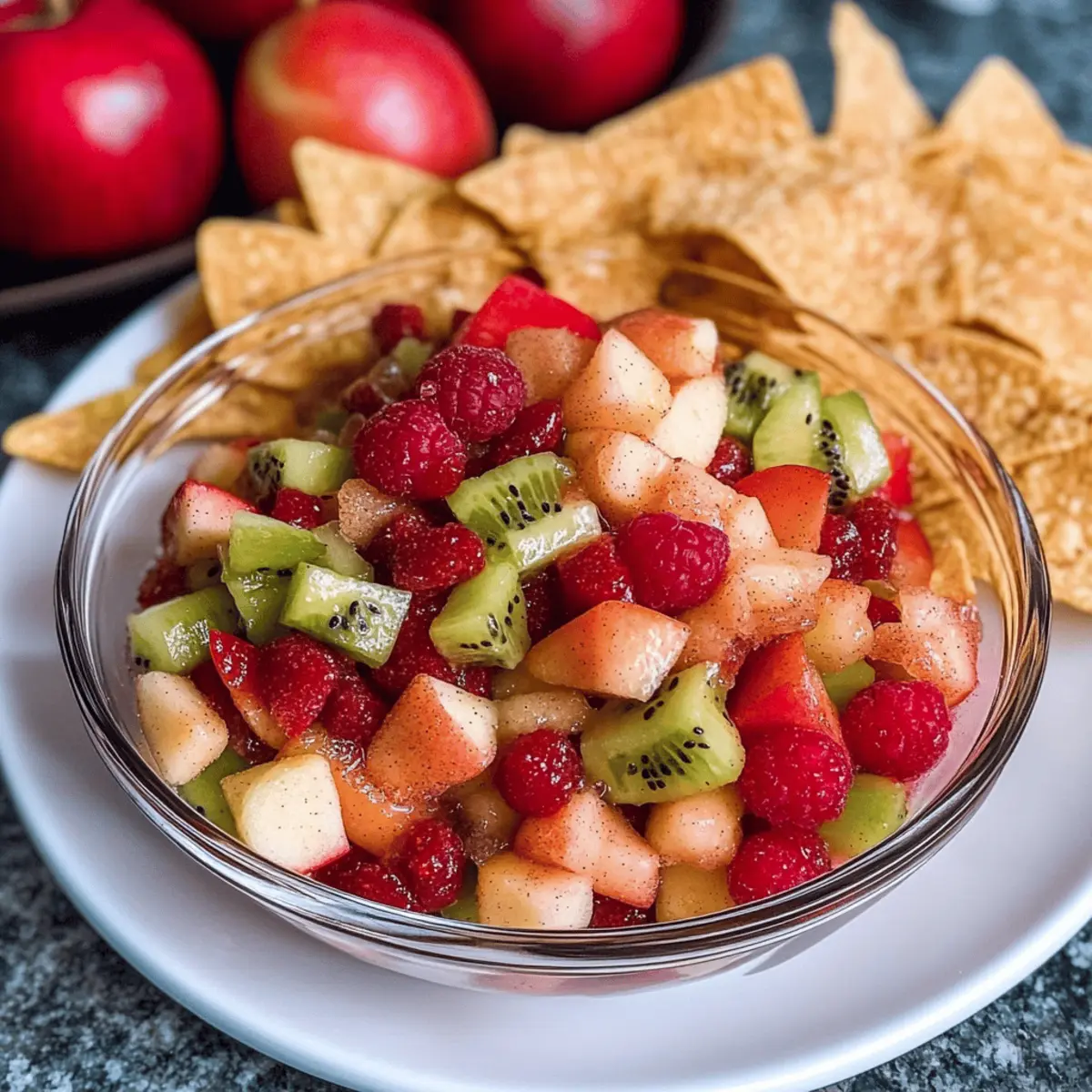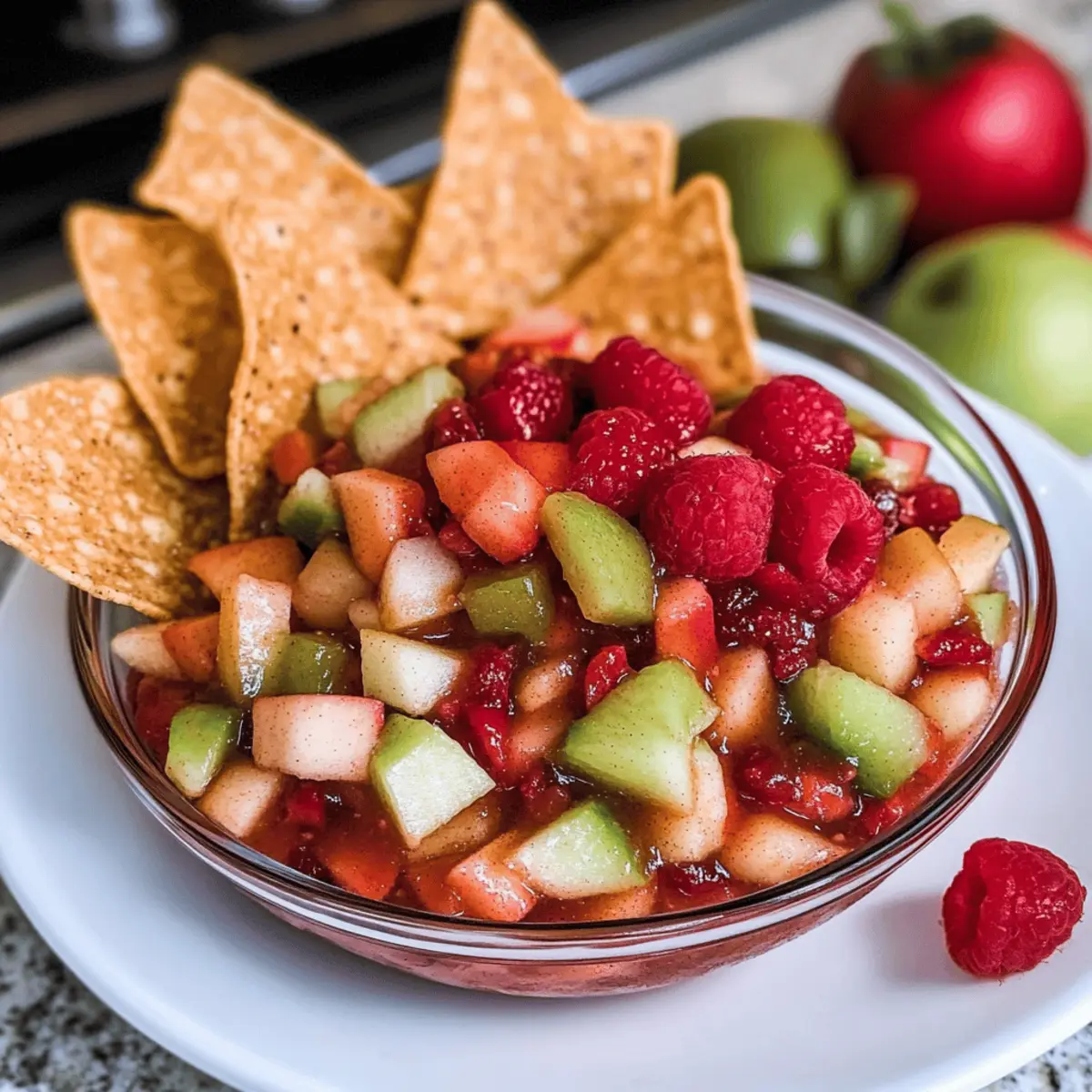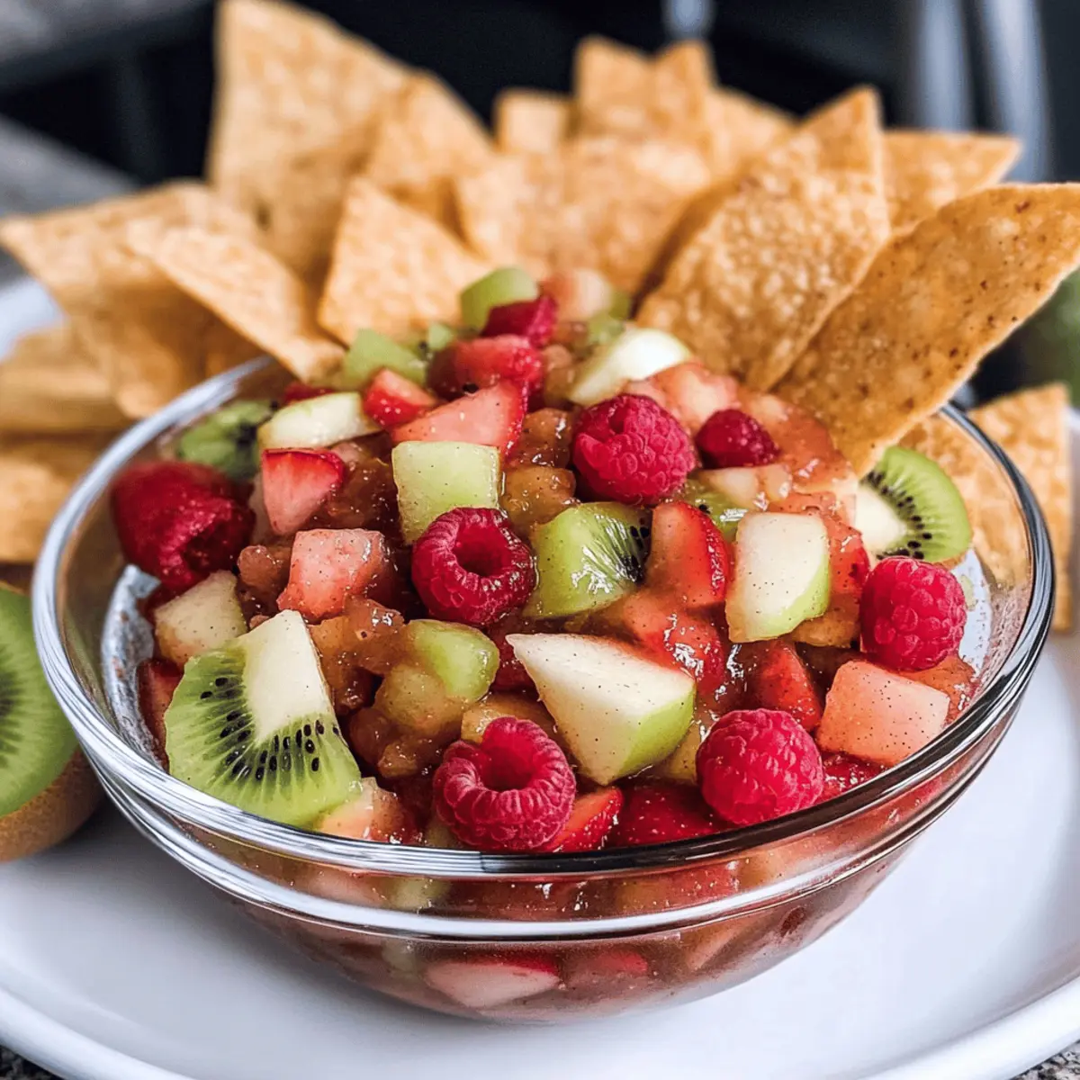 Als ich neulich in der Küche stand und den süßen Duft von Zimt in der Luft wahrnahm, hatte ich einen dieser magischen Momente, die das Kochen so besonders machen. Heute teile ich mit euch mein Rezept für eine köstliche Obst Salsa mit Zimt Zucker Tortilla Chips, die sich perfekt als gesunder Snack oder als leichtes Dessert eignet. Diese bunte Salsa, bestehend aus saftigen Äpfeln, Kiwi, Erdbeeren und Himbeeren, bringt Frische und Geschmack auf jeden Tisch und lässt sich in kürzester Zeit zubereiten – ideal für all jene, die schnelle und gesunde Alternativen zu Fertigprodukten suchen. Die knusprigen Zimt-Zucker Tortilla Chips sind der perfekte Begleiter und machen jede Portion zu einem festlichen Erlebnis. Bereit, euer Wochenende mit diesem fruchtigen Vergnügen zu bereichern? Lass uns gleich loslegen! Warum werden Sie dieses Rezept lieben? Einfachheit: Die Zubereitung dieser Obst Salsa erfordert nur wenige Schritte und grundlegende Kochkenntnisse. Ideal für alle, die in der Küche Zeit einsparen möchten! Frische Aromen: Die Kombination aus saftigen Früchten und dem warmen Zimtgeschmack der Tortilla Chips schafft ein unwiderstehliches Geschmackserlebnis. Vielseitigkeit: Variieren Sie die Zutaten nach Saison – vielleicht Erdbeeren im Sommer oder Äpfel im Herbst? Gesunder Genuss: Diese Rezeptur ist nicht nur lecker, sondern auch vollgepackt mit Vitaminen und Ballaststoffen, sodass Sie sich gut fühlen können, während Sie naschen. Klassiker neu interpretiert: Kombinieren Sie diese Obst Salsa mit einem Klecks Joghurt für eine noch cremigere Textur oder probieren Sie eine Prise frischer Minze für einen erfrischenden Twist. Möchten Sie mehr darüber erfahren, wie Sie selbst eine köstliche und gesunde Mahlzeit zaubern können? Werfen Sie einen Blick auf unsere weiteren gesunden Snackideen! Obst Salsa Zutaten Für die Tortilla Chips • Mehltortillas – Die Hauptbasis für die Chips; für eine glutenfreie Option können Sie Maistortillas verwenden. • Antihaft-Kochspray – Verhindert das Ankleben beim Backen der Chips; Sie können auch Olivenöl als Alternative verwenden. • Zucker – Süßt die Tortilla Chips; alternativ können Sie Kokos- oder braunen Zucker verwenden. • Zimt – Fügt Wärme und Geschmack zu den Chips hinzu; passen Sie die Menge nach Ihrem Geschmack an. Für die Obst Salsa • Granny Smith Äpfel – Bieten Säure und Textur; jede feste Apfelsorte ist auch geeignet. • Zitrone – Verhindert das Braunwerden der Äpfel und fügt Frische hinzu; – Limettensaft ist eine leckere Alternative. • Kiwis – Bringen Süße und einen tropischen Geschmack; Sie können auch Pfirsiche oder Mangos verwenden. • Erdbeeren – Süß und saftig; bei Bedarf können Sie gefrorene Erdbeeren verwenden. • Himbeeren – Eine optionale Zutat für zusätzlichen Geschmack; Blaubeeren sind ein möglicher Ersatz. • Brauner Zucker – Verstärkt die Süße der Salsa; für eine gesündere Variante kann dieser weggelassen werden. • Fruchtaufstrich (Erdbeer oder Himbeer) – Fügt Süße hinzu und hilft, die Salsa zu binden; verwenden Sie Honig oder Agavensirup als natürlichen Süßstoff. Mit diesen Zutaten können Sie eine köstliche Obst Salsa mit Zimt Zucker Tortilla Chips zubereiten, die sowohl frisch als auch gesund ist – ein echter Genuss für die ganze Familie! Schritt-für-Schritt-Anleitung für Obst Salsa mit Zimt Zucker Tortilla Chips Step 1: Ofen vorheizen Heizen Sie den Ofen auf 175 °C vor, während Sie die Tortilla Chips vorbereiten. Eine vorgeheizte Umgebung sorgt dafür, dass die Chips schön knusprig werden. Diese Temperatur ist ideal, um die Chips gleichmäßig zu backen und sie goldbraun zu machen. Step 2: Zimt-Zucker-Mischung herstellen In einer kleinen Schüssel mischen Sie den Zucker mit dem Zimt, bis die Zutaten gut kombiniert sind. Diese Mischung wird den Tortilla Chips das leckere, süße Aroma verleihen. Stellen Sie sicher, dass die Mischung gleichmäßig verteilt ist, damit jede Chips eine gleichmäßige Süße erhält. Step 3: Tortillas vorbereiten Sprayen Sie die Mehltortillas leicht mit dem Antihaft-Kochspray ein oder träufeln Sie etwas Olivenöl darauf, um ein Ankleben zu vermeiden. Anschließend bestreuen Sie die Tortillas großzügig mit der Zimt-Zucker-Mischung. Diese Süßspeisenalternative bereitet den Geschmack perfekt vor, bevor die Chips in den Ofen kommen. Step 4: Tortillas schneiden und backen Stapeln Sie die gewürzten Tortillas und schneiden Sie sie mit einem Pizzaschneider in 12 Keile. Legen Sie die Keile auf ein Backblech und schieben Sie sie für 11-12 Minuten in den Ofen. Behalten Sie die Chips im Auge, bis sie goldbraun und knusprig sind, damit sie perfekt zum Dippen in die Obst Salsa geeignet sind. Step 5: Obst vorbereiten Während die Chips im Ofen sind, schälen und würfeln Sie die Granny Smith Äpfel in kleine Stücke. Geben Sie die Apfelstücke in eine große Schüssel und beträufeln Sie sie mit dem frisch gepressten Zitronensaft. Dies verhindert, dass die Äpfel braun werden, und sorgt gleichzeitig für eine erfrischende Note in Ihrer Obst Salsa. Step 6: Weitere Früchte hinzufügen Würfeln Sie die Kiwis und Erdbeeren in kleine Stücke und fügen Sie sie zu den Äpfeln in der Schüssel hinzu. Wenn Sie das möchten, können Sie auch Himbeeren oder gefrorene Erdbeeren ergänzen. Diese zusätzlichen Früchte bringen nicht nur mehr Farbe, sondern auch mehr Geschmack und Textur in die Obst Salsa. Step 7: Salsa abrunden Mischen Sie den braunen Zucker und den Fruchtaufstrich vorsichtig unter die Fruchtmischung. Achten Sie darauf, dass alles gut kombiniert wird, um eine harmonische Süße zu erreichen. Diese Komposition sorgt dafür, dass die Obst Salsa schön bindet und eine köstliche, fruchtige Consistenz hat. Step 8: Servieren oder Kühlen Servieren Sie die Obst Salsa sofort mit den knusprigen Zimt Zucker Tortilla Chips. Alternativ können Sie die Salsa auch für etwa 30 Minuten in den Kühlschrank stellen, um die