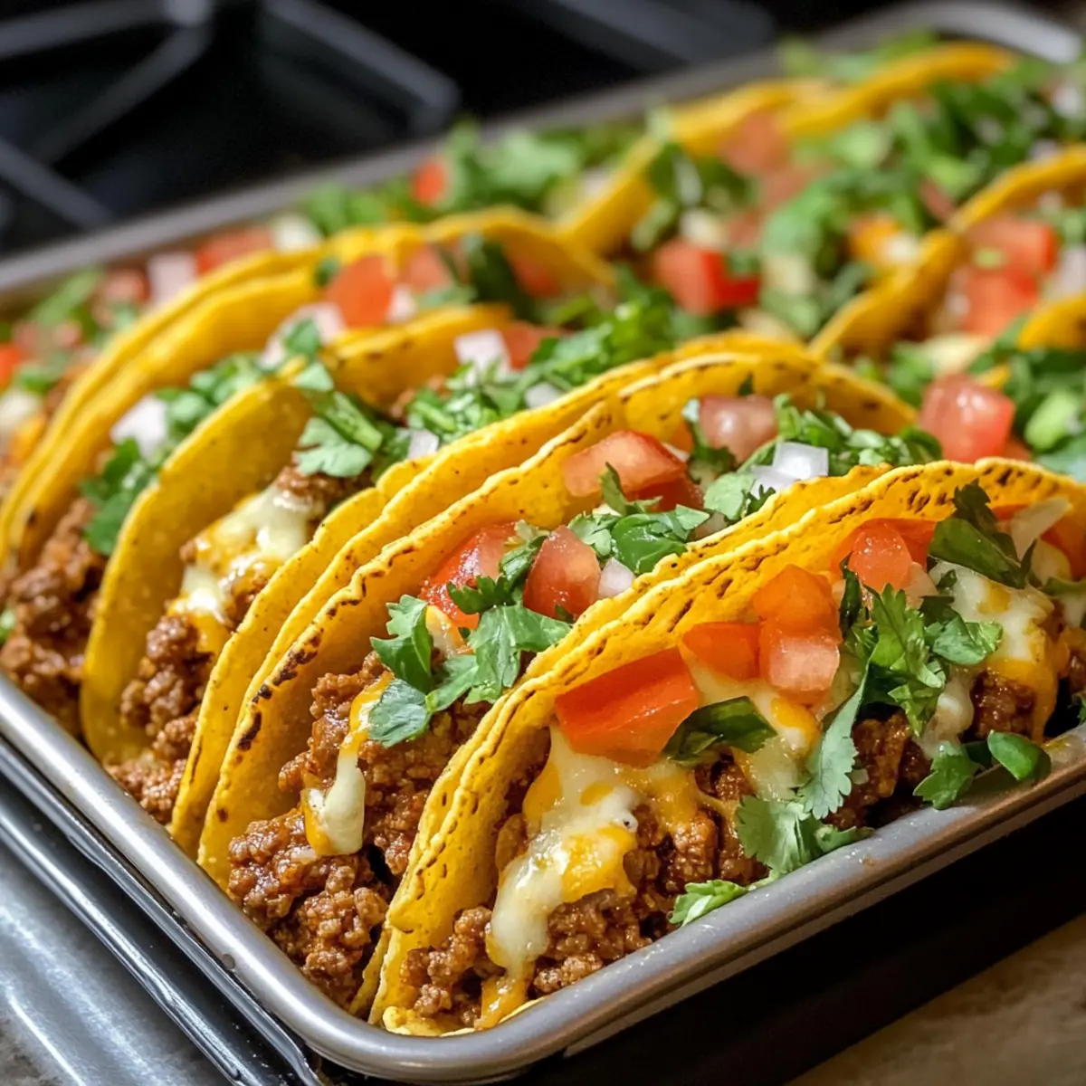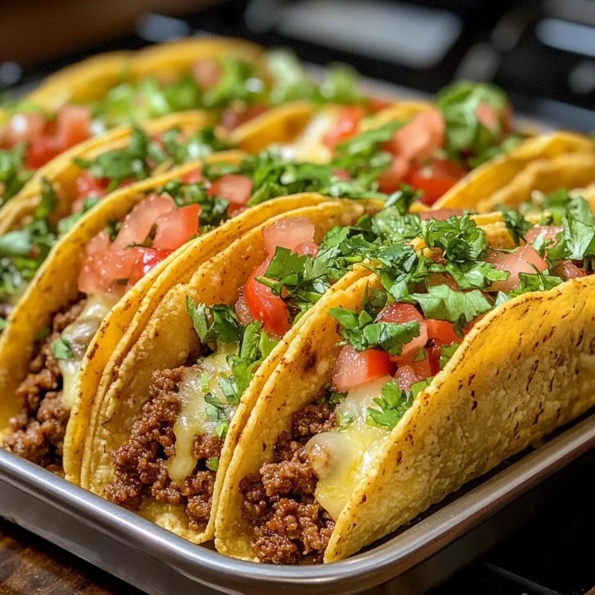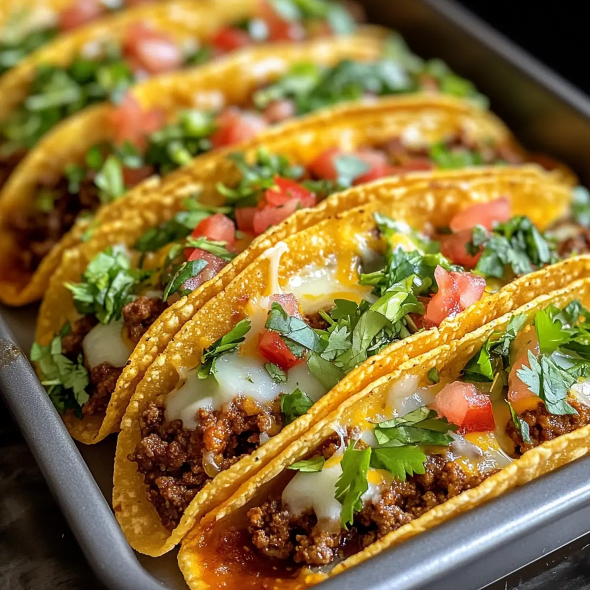 Kaum etwas zaubert mir so ein zufriedenes Lächeln ins Gesicht wie die Vorstellung von frischen Ofen-gebackenen käsigen Tacos! Diese rasch zubereitete Köstlichkeit vereint knusprige Schalen und geschmackvoll gewürztes Fleisch, das mit geschmolzenem Käse überragt wird. Perfekt für hektische Wochentage, sind diese Tacos nicht nur blitzschnell gemacht, sondern auch unglaublich vielseitig – jeder kann sie nach seinem Geschmack befüllen! Von frischen Toppings bis hin zu kreativen Variationen ist hier für jeden etwas dabei. Bereit, deine Liebe zu selbstgemachtem Essen neu zu entfachen? Lass uns gemeinsam in die Welt der Ofen-gebackenen käsigen Tacos eintauchen! Warum wirst du diese Tacos lieben? Einfachheit: Die Zubereitung ist kinderleicht und benötigt nur grundlegende Kochfähigkeiten. Schneller Genuss: In weniger als 30 Minuten kannst du diese köstlichen Tacos servieren – perfekt für geschäftige Abende! Vielseitigkeit: Du kannst sie nach Belieben mit verschiedenen Zutaten anpassen, sei es durch unser Rezept für Caesar Huehnchen Tacos oder durch kreative Variationen mit Gemüse und Gewürzen. Herzhafter Geschmack: Die Kombination aus gewürztem Fleisch und geschmolzenem Käse sorgt für ein Geschmackserlebnis, das niemand widerstehen kann. Familienfreundlich: Kinder und Erwachsene gleichermaßen werden diese Tacos lieben – ein ideales Gericht für die ganze Familie! Rettung fürs Mittagessen: Perfekt zum Vorbereiten und Aufbewahren – mache eine große Menge und genieß sie auch nach dem Kochen! Ofen-gebackene käsige Tacos Zutaten • Hinweis: Erfahre hier, welche Zutaten du benötigst, um diese köstlichen ofen-gebackenen käsigen Tacos zuzubereiten! Für die Füllung Rinderhackfleisch – sorgt für eine herzhafte Proteinbasis; du kannst auch Pute, Hähnchen oder eine pflanzliche Option wie Linsen oder schwarze Bohnen verwenden. Zwiebel – verleiht der Füllung Süße und Tiefe; gelbe oder weiße Zwiebeln sind ideal, aber auch Schalotten sind eine gute Wahl. Knoblauch – intensiviert den Geschmack der Füllung; frischer Knoblauch ist am besten, während Knoblauchpulver sparsamer verwendet werden kann. Taco-Gewürz – verbindet verschiedene Gewürze für die perfekte Würze; ein hausgemachter Mix sorgt für einen frischeren Geschmack. Tomatensauce oder Salsa – bringt Feuchtigkeit und einen Hauch von Säure; du kannst auch gewürfelte Tomaten verwenden, um eine stückigere Textur zu erhalten. Für die Schalen Taco-Schalen – die knusprige Hülle, die die Füllung hält; harte Taco-Schalen bieten einen tollen Crunch, während weiche Tortillas eine unterschiedliche Textur haben, wenn sie gebacken werden. Für den Belag Geriebener Käse – sorgt für eine cremige Textur und Reichtum; Cheddar ist der Klassiker, aber Monterey Jack oder eine mexikanische Käsemischung sind ebenso köstlich. Frische Toppings (Salat, Tomaten, Zwiebeln, Koriander) – bringen Farbe und Frische auf die Tacos; passe sie nach Belieben mit Jalapeños, Sauerrahm oder Guacamole an. Schritt-für-Schritt-Anleitung für Ofen-gebackene käsige Tacos Step 1: Ofen vorheizen Heize deinen Ofen auf 200°C (400°F) vor, um eine gleichmäßige Hitze beim Backen zu gewährleisten. Dies ist ein wichtiger Schritt, damit die Taco-Schalen knusprig und der Käse schön schmelzend wird. Nutze ein Backblech oder eine Auflaufform, um die Taco-Schalen während des Backens stabil zu halten. Step 2: Taco-Schalen arrangieren Stelle die harten Taco-Schalen aufrecht in dein Backblech oder die Auflaufform. Achte darauf, dass sie sicher stehen und nichts umfallen kann, da dies zu ungleichmäßigem Backen führen kann. Sei kreativ und platziere sie so, dass alle Platz finden, ohne dass sie sich überlappen. Step 3: Fleisch und Zwiebel anbraten Erhitze eine Pfanne bei mittlerer Hitze und füge das Rinderhackfleisch und die gewürfelte Zwiebel hinzu. Brate beides etwa 5-7 Minuten lang an, bis das Fleisch durchgegart und die Zwiebel weich und glasig ist. Achte darauf, das überschüssige Fett abzugießen, um die Taco-Füllung nicht zu fettig zu machen. Step 4: Knoblauch und Gewürze hinzufügen Füge den fein gehackten Knoblauch und das Taco-Gewürz zu der Pfanne hinzu und brate es für etwa 1 Minute mit. Rühre gut um, damit sich die Aromen entfalten können. Die Mischung sollte aromatisch sein und der Knoblauch leicht angebräunt, aber nicht verbrannt. Step 5: Tomatensauce einrühren Gib die Tomatensauce oder Salsa in die Pfanne und lasse alles bei niedriger Hitze für etwa 5 Minuten köcheln. Die Mischung sollte leicht sprudeln, damit die Aromen sich gut vermischen. Diese Feuchtigkeit sorgt dafür, dass die Füllung saftig bleibt und die Tacos beim Essen nicht austrocknen. Step 6: Taco-Schalen füllen Nehme die Pfanne vom Herd und fülle jede Taco-Schale großzügig mit der Fleischmischung. Achte darauf, dass jede Schale gut gefüllt ist, aber nicht überquillt, damit sie beim Backen stabil bleiben. Dies sorgt für den perfekten Biss der Ofen-gebackenen käsigen Tacos. Step 7: Käse darüber streuen Streue großzügig geriebenen Käse über die gefüllten Taco-Schalen, sodass jede Taco reichhaltig und köstlich belegt ist. Der Käse wird während des Backens schmelzen und eine goldene, blubbernde Schicht bilden, die für das ultimative Geschmackserlebnis sorgt. Step 8: Tacos backen Schiebe das Backblech in den vorgeheizten Ofen und lasse die Tacos für 10-15 Minuten backen. Du erkennst, dass sie fertig sind, wenn der Käse geschmolzen und die Taco-Schalen goldbraun und knusprig sind. Halte ein Auge darauf, um eine Überbacken zu vermeiden. Step 9: Mit frischen Toppings belegen Nehme die Tacos aus dem Ofen und belege sie sofort mit frischem Salat, gewürfelten Tomaten, roten Zwiebeln und Koriander. Ein Hauch von frischen Toppings bringt Farbe und Frische, die perfekt zu den herzhaften Tacos passt. Serviere sie warm mit Beilagen wie Sauerrahm oder Guacamole für das volle Geschmackserlebnis. Was passt zu Ofen-gebackenen käs