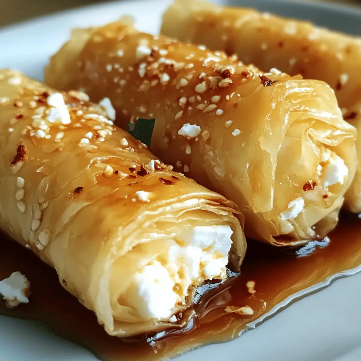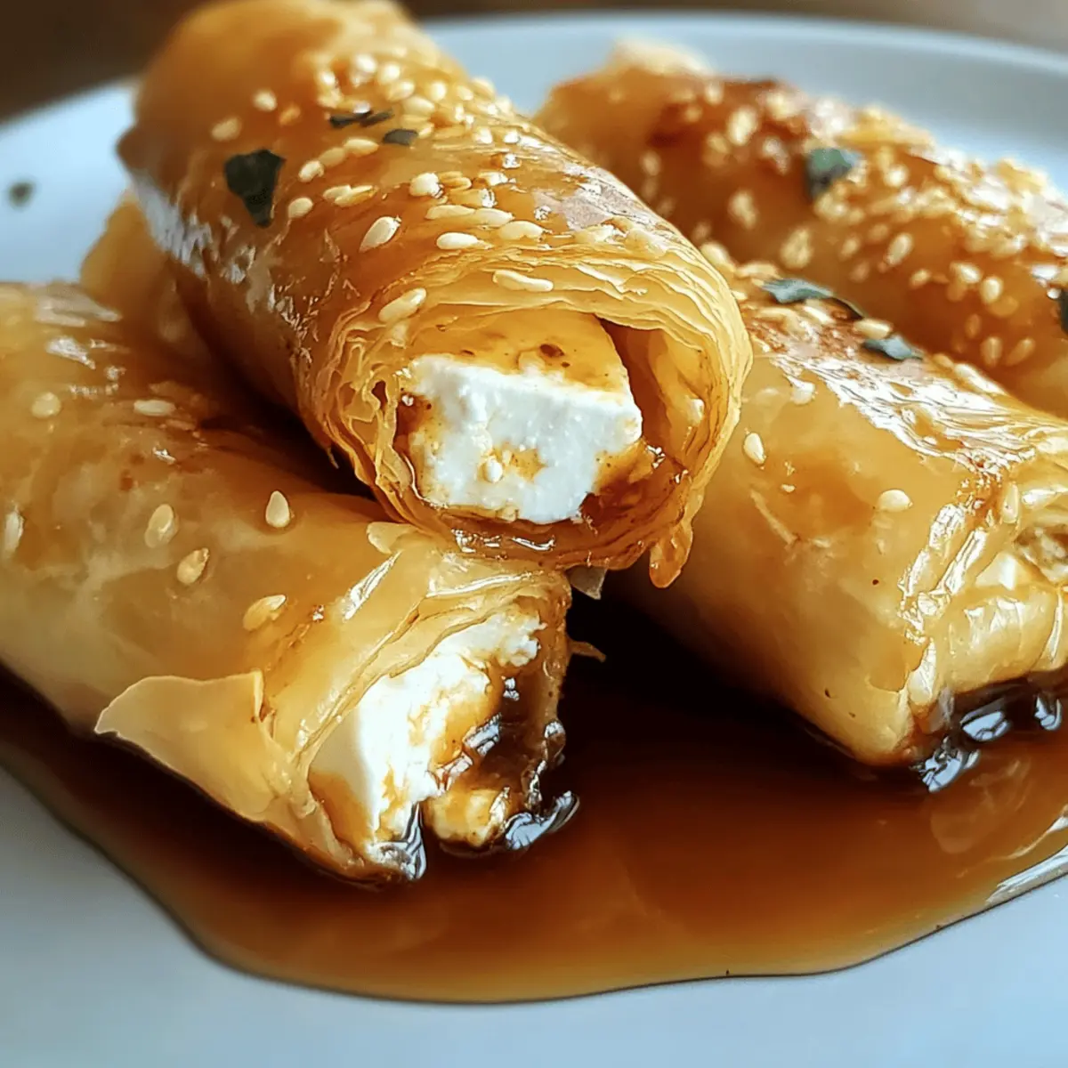 Ein kleines Erlebnis aus meiner Küche: Während ich einen Abend mit Freunden plante, fiel mein Blick auf einen Block Feta – und sofort hatte ich die geniale Idee, Ofen gebratene Feta-Röllchen mit Chili-Honig zu zaubern! Diese Röllchen sind nicht nur unglaublich einfach zuzubereiten, sondern bringen auch eine perfekte Kombination aus knuspriger Textur und cremigem, warmem Feta in die Runde. Und der süß-würzige Chili-Honig? Er verleiht jedem Biss einen aufregenden Kick! Ideal für jede Gelegenheit, sei es bei einem lockeren Dinner oder als beeindruckende Vorspeise bei einer Feier – diese Rezept wird garantiert zum Publikumsfavoriten. Wer kann da schon widerstehen? Lass uns gemeinsam diese köstlichen Feta-Röllchen entdecken! Warum sind Feta-Röllchen so unwiderstehlich? Einfachheit, die begeistert: Diese Ofen gebratenen Feta-Röllchen sind kinderleicht zuzubereiten und benötigen keine speziellen Kochfähigkeiten. Aromen, die verzaubern: Die Kombination aus warmem, cremigem Feta und dem süß-würzigen Chili-Honig sorgt für ein Geschmackserlebnis, das deine Gäste lieben werden. Perfekte Option für Geselligkeit: Egal, ob als Snack oder beim Dinner – sie sind stets ein Hit und lassen sich hervorragend vorbereiten. Vielfältige Variationsmöglichkeiten: Füge Spinat oder rote Paprika hinzu, um deine Röllchen individuell anzupassen. Du kannst auch mit verschiedenen Kräutern experimentieren! Wenn du mehr über diese Variationen erfahren möchtest, schau dir unbedingt unseren Variationen-Abschnitt an! Schnell, aber beeindruckend: In nur 30 Minuten aus dem Ofen auf den Tisch – ideal, wenn es schnell gehen muss, ohne auf Geschmack zu verzichten. Ofen gebratene Feta-Röllchen Zutaten • Für alle Liebhaber von Ofen gebratenen Feta-Röllchen – hier sind die benötigten Zutaten, um deine Gäste zu beeindrucken! Für die Röllchen Feta-Käse – sorgt für einen cremigen und würzigen Geschmack; alternativ kann Ziegenkäse oder Ricotta verwendet werden. Filoteig – bringt eine knusprige und leicht zu beheben Textur; Puffteig kann eine flauschigere Option sein. Olivenöl – sorgt für eine goldene, knusprige Oberfläche; kann durch geschmolzene Butter ersetzt werden, um zusätzlichen Geschmack zu bieten. Für den Chili-Honig Honig – süßt die Chili-Soße und balanciert die Schärfe aus; könntest auch Ahornsirup oder Agavendicksaft nutzen. Chiliflocken – bringen die gewünschte Schärfe; passe die Menge je nach Vorliebe an und lasse sie weg, wenn du es milder magst. Zitronensaft – bringt Frische und hebt die Aromen des Chili-Honigs hervor. Viel Spaß beim Zubereiten dieser köstlichen Ofen gebratenen Feta-Röllchen mit Chili-Honig! Schritt-für-Schritt-Anleitung für Ofen gebratene Feta-Röllchen mit Chili-Honig Step 1: Feta-Mischung vorbereiten Zerbrich den Feta in eine Schüssel und mische ihn mit optionalen Kräutern und etwas Knoblauchpulver, bis die Mischung krümelig ist. Diese Kombination sorgt für zusätzlichen Geschmack und einen harmonischen Auftritt. Die Feta-Mischung ist der Herzstück deiner Ofen gebratenen Feta-Röllchen. Step 2: Röllchen zusammenstellen Lass den Filoteig auf einer sauberen Oberfläche ausbreiten und bestreiche ihn großzügig mit Olivenöl. Setze am Rand einen Esslöffel der Feta-Mischung und rolle den Teig fest auf, wobei du die Seiten an den Enden einklappst, um die Füllung zu sichern. Achte darauf, dass die Röllchen gut verschlossen sind für perfekte Ergebnisse. Step 3: Backofen vorheizen Heize deinen Ofen auf 190 °C (375 °F) vor, damit die Ofen gebratenen Feta-Röllchen gleichmäßig und knusprig gebacken werden. Ein gut vorgeheizter Ofen sorgt dafür, dass deine Röllchen eine goldbraune Farbe und eine knusprige Textur annehmen. Step 4: Röllchen backen Lege die Röllchen auf ein mit Backpapier ausgelegtes Backblech und bestreiche die Oberseite mit Olivenöl, um die Knusprigkeit zu erhöhen. Backe die Röllchen für 15-20 Minuten, bis sie goldbraun und knusprig sind. Halte ein Auge auf deine Kreationen, um sicherzustellen, dass sie nicht zu dunkel werden. Step 5: Chili-Honig-Soße zubereiten Erhitze in einem kleinen Topf den Honig und die Chiliflocken bei mittlerer Hitze, bis alles leicht erwärmt ist. Rühre zum Schluss den Zitronensaft ein, um den Geschmack zu intensivieren. Diese süß-würzige Chili-Honig-Soße ist das Tüpfelchen auf dem i für deine Ofen gebratenen Feta-Röllchen. Step 6: Servieren Nehme die Röllchen aus dem Ofen und lasse sie kurz abkühlen, bevor du sie auf einem Servierteller anrichtest. Träufle den warmen Chili-Honig großzügig über die Röllchen und serviere sie sofort. Diese Kombination von warmem Feta und süßem Chili-Honig wird deine Gäste sicherlich begeistern! Aufbewahrung und Einfrieren der Ofen gebratenen Feta-Röllchen mit Chili-Honig Kühlschrank: Bewahre übrig gebliebene Ofen gebratene Feta-Röllchen in einem luftdichten Behälter für bis zu 2 Tage auf, um ihre Knusprigkeit zu erhalten. Einfrieren: Friere die ungebackenen Röllchen in einem luftdichten Behälter oder einem Gefrierbeutel für bis zu 2 Monate ein. Backe sie direkt aus dem Gefrierfach, indem du die Backzeit um 5-10 Minuten verlängerst. Wiedererwärmen: Um die Knusprigkeit nach dem Kühlen oder Einfrieren zurückzubringen, erwärme die Röllchen im vorgeheizten Ofen bei 180 °C (350 °F) für etwa 10-15 Minuten. Vorbereitung: Du kannst die Röllchen im Voraus zubereiten und im Kühlschrank aufbewahren, um sie kurz vor dem Servieren zu backen. So bleiben sie frisch und heiß! Was passt zu Ofen gebratenen Feta-Röllchen mit Chili-Honig? Ein voller Genuss braucht perfekte Begleiter, die das Geschmackserlebnis abrunden und die Sinne erfreuen. Cremiger Joghurt-Dip: Serviere die Röllchen mit einem erfrischenden Joghurt-Dip, der die Würze des Chili-Honigs ausbalanciert und für eine cremige Ergänzung sorgt. Zitronen-Rucola-Salat: Die Frische von Rucola und der Spritzigkeit von Zitrone bieten einen kontrastierenden Biss, de