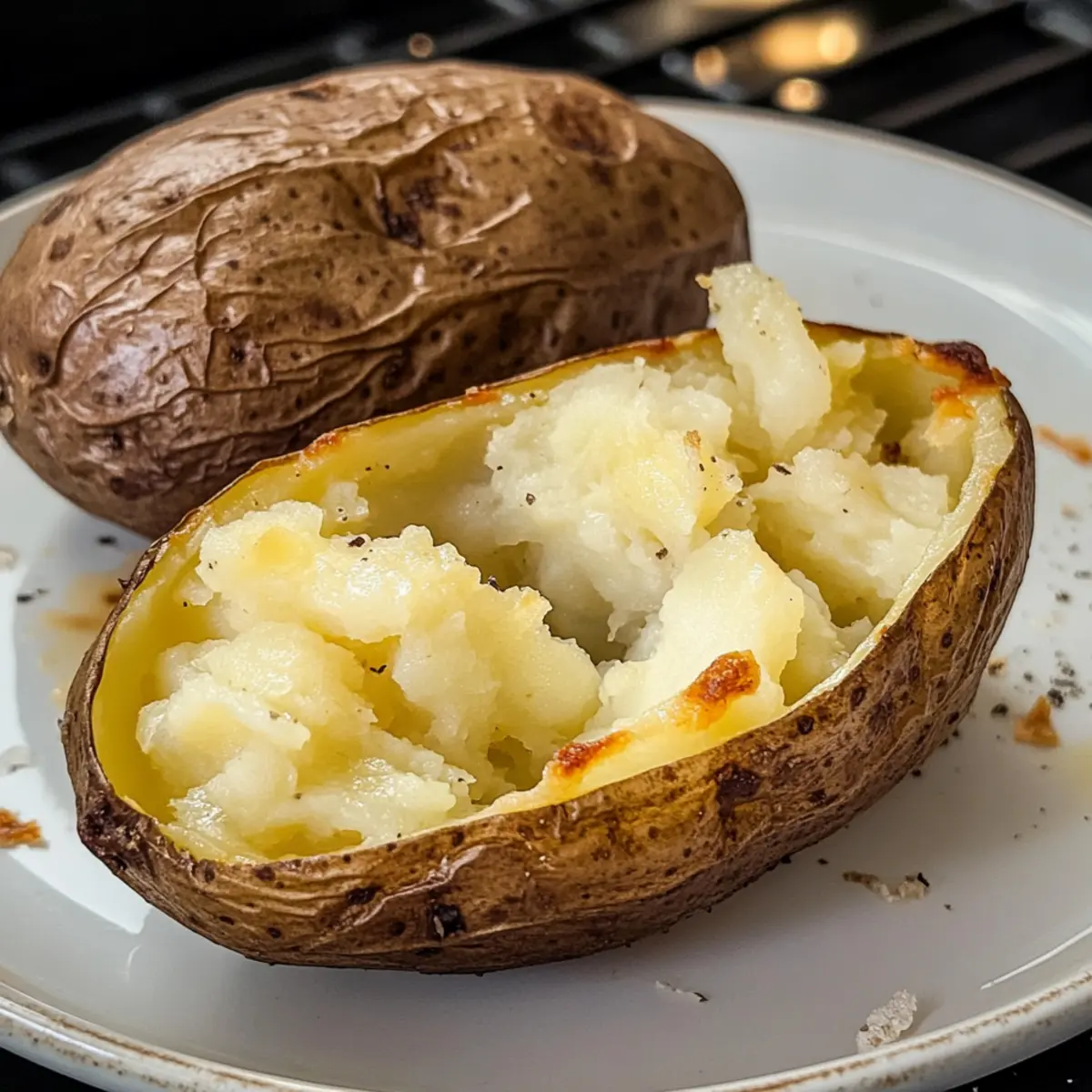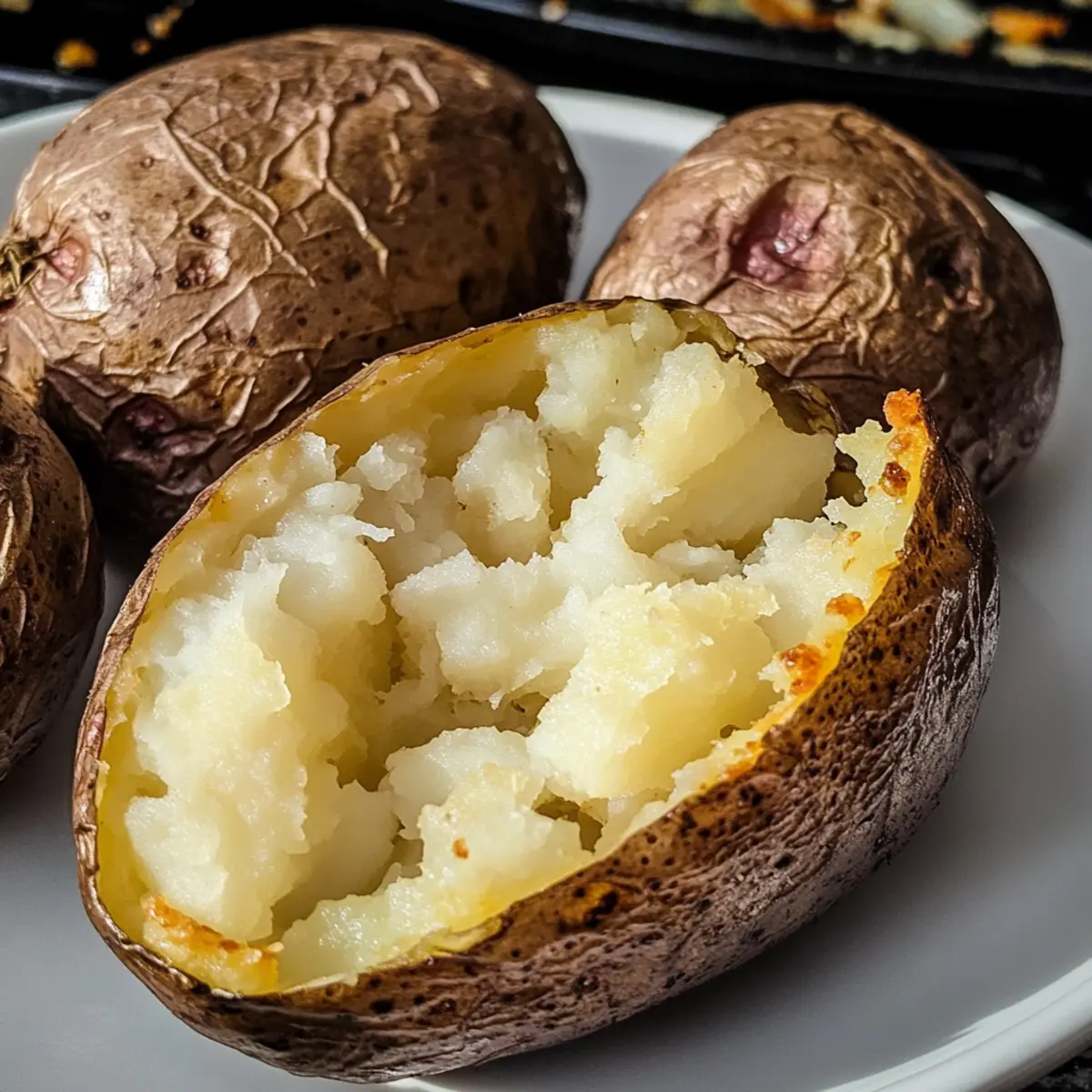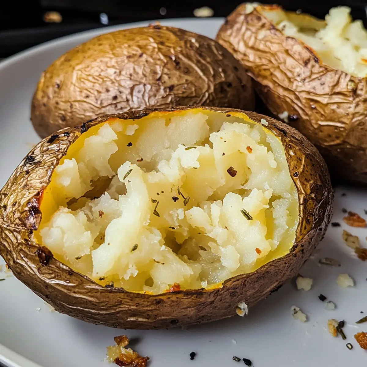 Haben Sie je von der schlichten, aber unvergleichlichen Freude einer perfekt gebackenen Ofenkartoffel gehört? Diese knusprige und fluffige Köstlichkeit ist nicht nur ein klassisches Gericht, sondern auch einfach zuzubereiten, besonders mit der Air Fryer. In meinem Rezept für Crispy Air Fryer Jacket Potatoes in 30 Minuten präsentiere ich Ihnen gleich zwei Methoden, um schnell und unkompliziert zum Ziel zu kommen. Die Zubereitung geht nicht nur fix, sondern Sie erhalten auch ein Gericht, das sowohl als Beilage als auch Hauptgericht begeistert. Stellen Sie sich vor, wie der goldene, knusprige Mantel bei jedem Bissen bricht – ein Genuss, dessen Charme kaum zu widerstehen ist! Welche Toppings werden Sie für Ihre perfekten Ofenkartoffeln wählen? Warum schmeckt Ofenkartoffel so himmlisch? Einfachheit pur: Diese Ofenkartoffel ist im Handumdrehen zubereitet, ohne dass Sie ein Profi in der Küche sein müssen. Wunderbare Textur: Außen knusprig und innen fluffig – Sie werden jeden Bissen genießen. Variationsvielfalt: Kombinieren Sie sie mit einer Vielzahl von Toppings, von veganen Optionen bis hin zu klassischem Käse. Schneller Genuss: In nur 30 Minuten haben Sie eine köstliche Mahlzeit oder Beilage, die alle begeistert. Gesunde Wahl: Mit weniger Öl zubereitet, ist diese Rezeptur eine leichtere, schmackhafte Alternative zu traditionellen Backkartoffeln. Ideal, wenn Sie schnell etwas Leckeres möchten! Ofenkartoffel Zutaten • Für die Ofenkartoffel Jacket Potato – Verwenden Sie große Backkartoffeln mit ca. 290g für die beste Textur. Stärkereiche Sorten wie King Edwards oder Maris Piper sind ideal. Öl (2 Teelöffel) – Hilft dabei, die Kartoffelschale während des Frittierens knusprig zu machen. Alternativ können Sie auch Sprühöl oder Olivenöl verwenden. Salz – Verstärkt den Geschmack. Fügen Sie bei Bedarf mehr Gewürze wie geräuchertes Paprikapulver für zusätzlichen Geschmack hinzu. • Für die Toppings Butter oder vegane Alternative – Verleihen Sie der Ofenkartoffel mehr Geschmack und Cremigkeit. Ideal für eine vegane Option. Käse oder pflanzlicher Käse – Perfekt, um die Kartoffel noch leckerer zu machen und gut zu schmelzen. Sauerrahm oder pflanzlicher Joghurt – Für eine cremige Note und frischen Geschmack. Genießen Sie die Zubereitung dieser köstlichen Ofenkartoffel und lassen Sie Ihrer Kreativität beim Belegen freien Lauf! Schritt-für-Schritt-Anleitung für die Perfekte Ofenkartoffel aus der Heißluftfritteuse Schritt 1: Kartoffeln vorbereiten Stechen Sie jede Ofenkartoffel mit einer Gabel viermal ein, um Dampf entweichen zu lassen. Dies verhindert, dass die Kartoffeln beim Kochen aufplatzen. Waschen Sie die Kartoffeln gründlich und tupfen Sie sie mit einem Küchentuch trocken, um die Schale für das Frittieren optimal vorzubereiten. Schritt 2: Mikrowellenmethode (schnellste) Legen Sie die vorbereiteten Kartoffeln auf einen mikrowellengeeigneten Teller. Stellen Sie die Mikrowelle auf hohe Leistung ein und garen Sie 1 Kartoffel für 8 Minuten, 2 Kartoffeln für 10 Minuten und so weiter. Überprüfen Sie nach der angegebenen Zeit die Weichheit und kochen Sie bei Bedarf in 1-Minuten-Intervallen weiter, bis die Kartoffeln weich sind. Schritt 3: Heißluftfrittieren Verteilen Sie 2 Teelöffel Öl gleichmäßig auf den Kartoffelschalen und streuen Sie etwas Salz darüber. Legen Sie die Ofenkartoffeln in den Korb der Heißluftfritteuse und stellen Sie die Temperatur auf 200°C ein. Frittieren Sie die Kartoffeln für 8–10 Minuten, bis die Schale goldbraun und knusprig ist. Kontrollieren Sie nach 8 Minuten, ob die gewünschte Knusprigkeit erreicht ist. Schritt 4: Nur Heißluftfrittieren (für knusprige Schale) Falls Sie die Mikrowelle überspringen möchten, legen Sie die Kartoffeln direkt in die Heißluftfritteuse. Frittieren Sie bei 200°C für 40–50 Minuten. Wenden Sie die Kartoffeln nach der Hälfte der Zeit, um eine gleichmäßige Bräunung und Knusprigkeit zu gewährleisten. Testen Sie die Garheit mit einem Messer – es sollte leicht hineingleiten. Schritt 5: Servieren Wenn die Ofenkartoffeln perfekt gegart und knusprig sind, nehmen Sie sie aus der Heißluftfritteuse. Lassen Sie sie etwas abkühlen, bevor Sie Ihre Lieblingsbeläge hinzufügen, wie z.B. Butter, Käse oder Sauerrahm. Genießen Sie die köstliche Ofenkartoffel als Hauptgericht oder Beilage! Variationen der Ofenkartoffel Lassen Sie Ihrer Kreativität freien Lauf und entdecken Sie spannende Alternativen für Ihre Ofenkartoffel – jeder Bissen kann anders sein! Vegan: Ersetzen Sie Butter durch eine pflanzliche Alternative, um die Kartoffeln vegan zu genießen. So bleibt der Geschmack fein und cremig! Käseliebhaber: Fügen Sie nach dem Frittieren eine großzügige Portion Käse hinzu, damit er schmilzt und die Kartoffel sättigt. Cheddar oder geräucherter Käse sorgen für ein erstklassiges Geschmackserlebnis. Würzige Note: Bestreuen Sie die Kartoffeln vor dem Frittieren mit Paprikapulver oder Chili-Flocken für ein wenig zusätzliche Schärfe. Das wird Ihre Geschmacksknospen erfreuen! Frische Kräuter: Garnieren Sie die Ofenkartoffeln mit gehacktem Schnittlauch oder Petersilie nach dem Servieren. Das bringt frische Aromen und Farben auf den Teller. Säuerliche Eleganz: Servieren Sie einen Klecks Sour Cream oder pflanzlichem Joghurt auf der heißen Kartoffel. Der Kontrast zwischen der Wärme der Kartoffel und der frischen, kühlen Creme ist einfach himmlisch! Bohnenpower: Fügen Sie einige schwarze Bohnen oder Kichererbsen als Topping hinzu, um die Nährstoffe zu steigern und eine herzhaftere Option zu schaffen. Das macht die Kartoffel zu einer vollständigen Mahlzeit. Gemüse-Gemisch: Rösten Sie etwas Gemüse wie Paprika oder Zucchini und geben Sie es über Ihre Ofenkartoffel. Das bringt zusätzlichen Geschmack und Textur, perfekt für eine ausgewogene Beilage. Italian Style: Toppen Sie Ihre Kartoffel mit Pesto und gerösteten Pinienkernen für eine italienische Note. Diese Komb