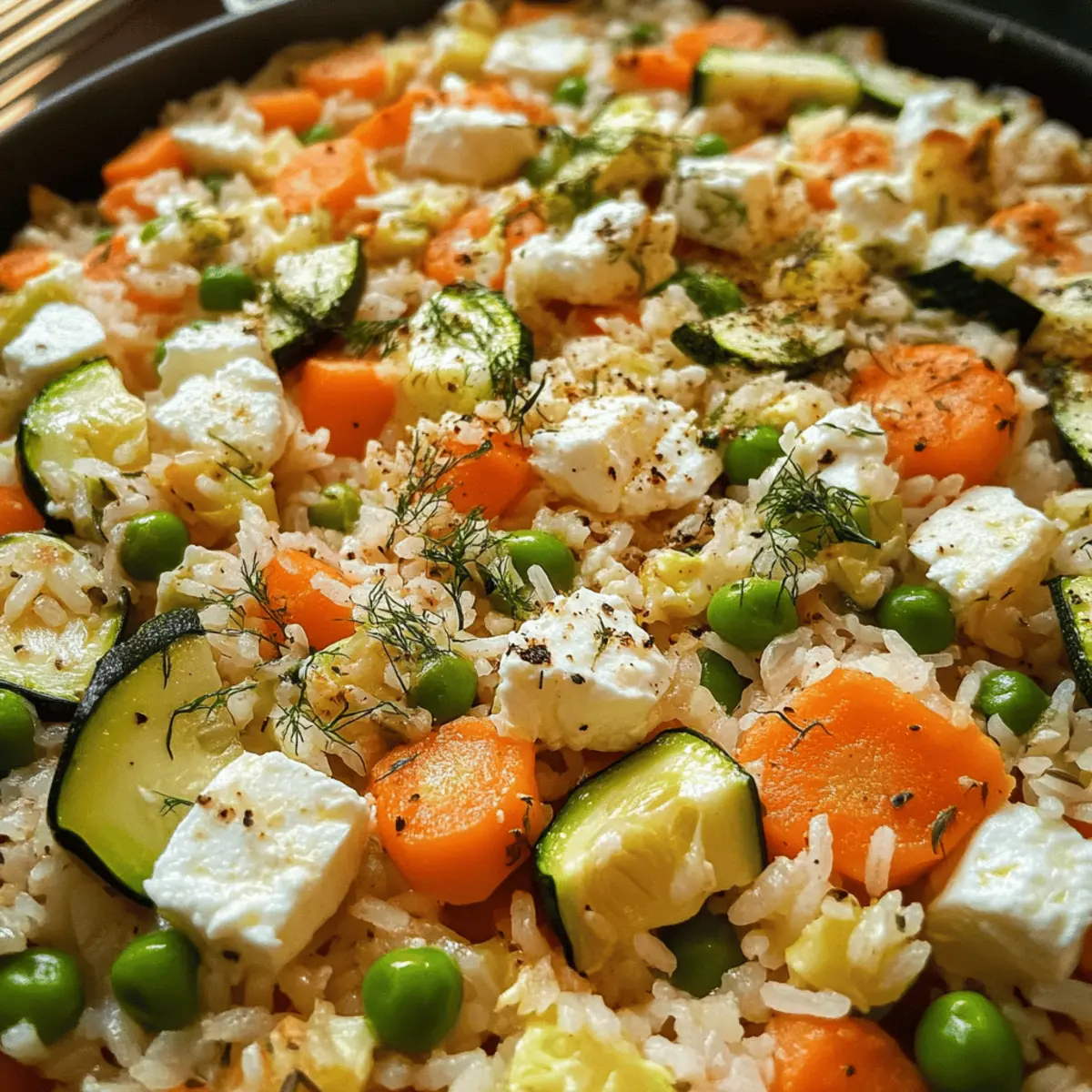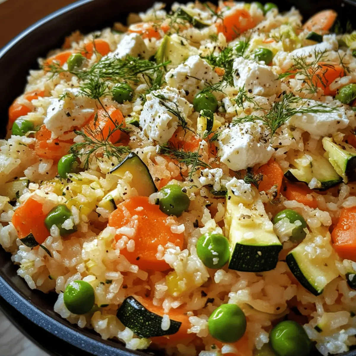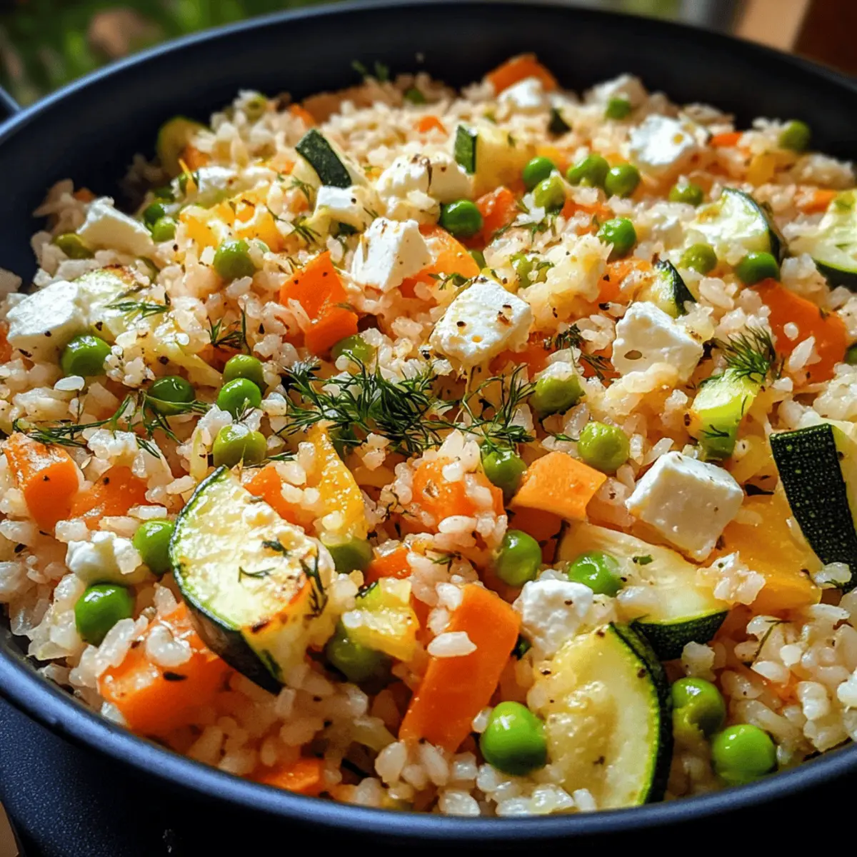 Wenn ich an die perfekte Kombination aus Einfachheit und Geschmack denke, fällt mir sofort der Ofenreis mit Feta und Gemüse ein. Dieses Gericht ist nicht nur ein schnelles und gesundes One-Pot-Mahl, sondern auch eine wunderbare Möglichkeit, frisches Gemüse in einem gemütlichen, mediterranen Stil zu genießen. In nur einer Stunde verwandelt sich eine Mischung aus zarten Zucchini, süßen Karotten und cremigem Feta in ein herzhaftes, sättigendes Abendessen, das die ganze Familie lieben wird. Ein weiterer großer Vorteil? Du musst dir keine Gedanken über das Aufräumen machen, denn alles wird in einer einzigen Form zubereitet! Neugierig, wie du diese köstliche Mahlzeit zubereiten kannst? Lass uns loslegen! Warum ist Ofenreis so beliebt? Schnelligkeit: Dieser köstliche Ofenreis mit Feta und Gemüse ist in weniger als einer Stunde fertig, ideal für vielbeschäftigte Leute. Einfache Zubereitung: Mit nur einer Backform bleibt das Aufräumen nahezu mühelos – mehr Zeit für Genuss! Gesunde Zutaten: Frisches Gemüse und cremiger Feta sorgen für eine ausgewogene und nährstoffreiche Mahlzeit. Vielseitigkeit: Du kannst das Rezept leicht anpassen, indem du saisonale Zutaten wie Kürbis oder Spinat einfügst. Familienfreundlich: Dieses Gericht erfreut sowohl Kinder als auch Erwachsene – absolute Zufriedenheit am Esstisch garantiert! Mediterranes Flair: Erlebe die Aromen des Mittelmeers in deinem eigenen Zuhause mit jedem Bissen. Ofenreis mit Feta und Gemüse Zutaten • Für alle, die ein schnelles und leichtes Gericht suchen! Für den Reis • Reis – Die Basis des Gerichts; sorgt für Struktur und Sättigung. • Gemüsebrühe – Fügt Tiefe hinzu und dient als Kochflüssigkeit für den Reis. Für das Gemüse • Zucchini – Sorgt für Feuchtigkeit und eine zarte Textur. • Karotte – Bringt Süße und eine schöne Farbpracht ins Gericht. • Erbsen (gefroren) – Bieten Süße und eine Extra-Portion Protein. • Zwiebel – Aromatische Grundlage, die den Geschmack verstärkt. • Knoblauch – Fügt ein herzhaftes Aroma und Tiefe hinzu. Für den Geschmack • Feta-Käse – Der cremige Teil, der das Gericht bereichert; für eine vegane Version kann man zerbröckelten veganen Feta nutzen. • Salz – Essentielle Würze, um die Aromen zu intensivieren. • Paprikapulver – Gibt Wärme und rauchige Noten. • Pfeffer – Für eine milde Schärfe. • Chiliflocken oder Chilipulver – Verleiht dem Gericht einen kleinen Kick; Menge nach Vorliebe anpassen. Erlebe mit diesem Ofenreis mit Feta und Gemüse, wie leicht gesundes Essen sein kann! Schritt-für-Schritt-Anleitung für Ofenreis mit Feta und Gemüse Step 1: Ofen vorheizen Heize den Ofen auf 200 °C (392 °F) mit Ober-/Unterhitze vor. Diese Temperatur sorgt dafür, dass dein Ofenreis mit Feta und Gemüse gleichmäßig gart und die Aromen sich gut entfalten können, während du mit der Vorbereitung fortfährst. Step 2: Gemüse vorbereiten Wasche die Zucchini und die Karotte gründlich und schneide sie in mundgerechte Stücke. Zwiebel und Knoblauch fein hacken, um eine gleichmäßige Garzeit und ein intensives Aroma in deinem Gericht zu gewährleisten. Halte das Gemüse bereit für die nächste Phase. Step 3: Reis und Brühe zusammenfügen Gib den ungekochten Reis in eine große Auflaufform und übergieße ihn mit kochender Gemüsebrühe. Diese Flüssigkeit ist essenziell, damit der Reis die Aromen aufnehmen kann, während er im Ofen gart. Achte darauf, dass der Reis gleichmäßig verteilt ist. Step 4: Gemüse hinzufügen Füge die vorbereiteten Stücke von Zucchini, Karotte, Erbsen, Zwiebel und Knoblauch zum Reis in der Auflaufform hinzu. Rühre alles sorgfältig um, sodass das Gemüse gleichmäßig im Reis verteilt ist und genug Flüssigkeit zum Garen hat. Step 5: Gewürze einstreuen Würze die Mischung mit Salz, Paprikapulver, Pfeffer und Chiliflocken oder Chilipulver gemäß deinem Geschmack. Diese Gewürze verleihen deinem Ofenreis mit Feta und Gemüse eine angenehme Tiefe und Schärfe, die das gesamte Gericht lebendiger macht. Step 6: Feta hinzufügen Bröckele den Feta-Käse gleichmäßig über die Gemüsemischung. Der Feta wird beim Backen schmelzen und sich mit den anderen Aromen verbinden, wodurch er deinem Gericht eine cremige und herzhaft-würzige Note verleiht. Step 7: Backzeit Schiebe die Auflaufform in den vorgeheizten Ofen und backe das Gericht etwa 30 Minuten lang. Achte darauf, dass der Reis weich ist und die Flüssigkeit vollständig absorbiert wurde. Eine leichte Kruste auf der Oberfläche zeigt dir, dass es perfekt ist. Step 8: Servieren und Genießen Nehme die Form vorsichtig aus dem Ofen und mische alles sanft um, um die Aromen gut zu vermischen. Serviere deinen Ofenreis mit Feta und Gemüse heiß, damit du die köstlichen Aromen voll genießen kannst. Expertentipps für Ofenreis mit Feta und Gemüse Gleichmäßiges Verteilen: Achte darauf, den Reis gleichmäßig in der Form zu verteilen, damit er gleichmäßig gart und keine Teile zu trocken bleiben. Durchgaren prüfen: Überprüfe den Garzustand des Reises nach etwa 25 Minuten; füge bei Bedarf etwas mehr Brühe hinzu, um Trockenheit zu vermeiden. Gemüse variieren: Experimentiere mit verschiedenen Gemüsesorten. Du kannst auch saisonales Gemüse wie Kürbis oder Spinat einsetzen, um Abwechslung zu schaffen. Feta-Wahl: Verwende für eine cremigere Textur frischen Feta oder probiere einen veganen Feta für eine pflanzliche Option, die ebenso köstlich ist. Abschmecken: Nutze die Gewürze weise und passe die Mengen nach deinem persönlichen Geschmack an – das macht deinen Ofenreis mit Feta und Gemüse noch einzigartiger! Ofenreis mit Feta und Gemüse: Vorbereitungen für Stressfreies Kochen Dieser Ofenreis mit Feta und Gemüse ist perfekt für die Vorkochen, sodass du Zeit an hektischen Abenden sparen kannst! Du kannst das Gemüse (Zucchini, Karotten, Zwiebel und Knoblauch) bis 24 Stunden im Voraus vorbereiten, indem du es schnittfertig in luftdichten Be