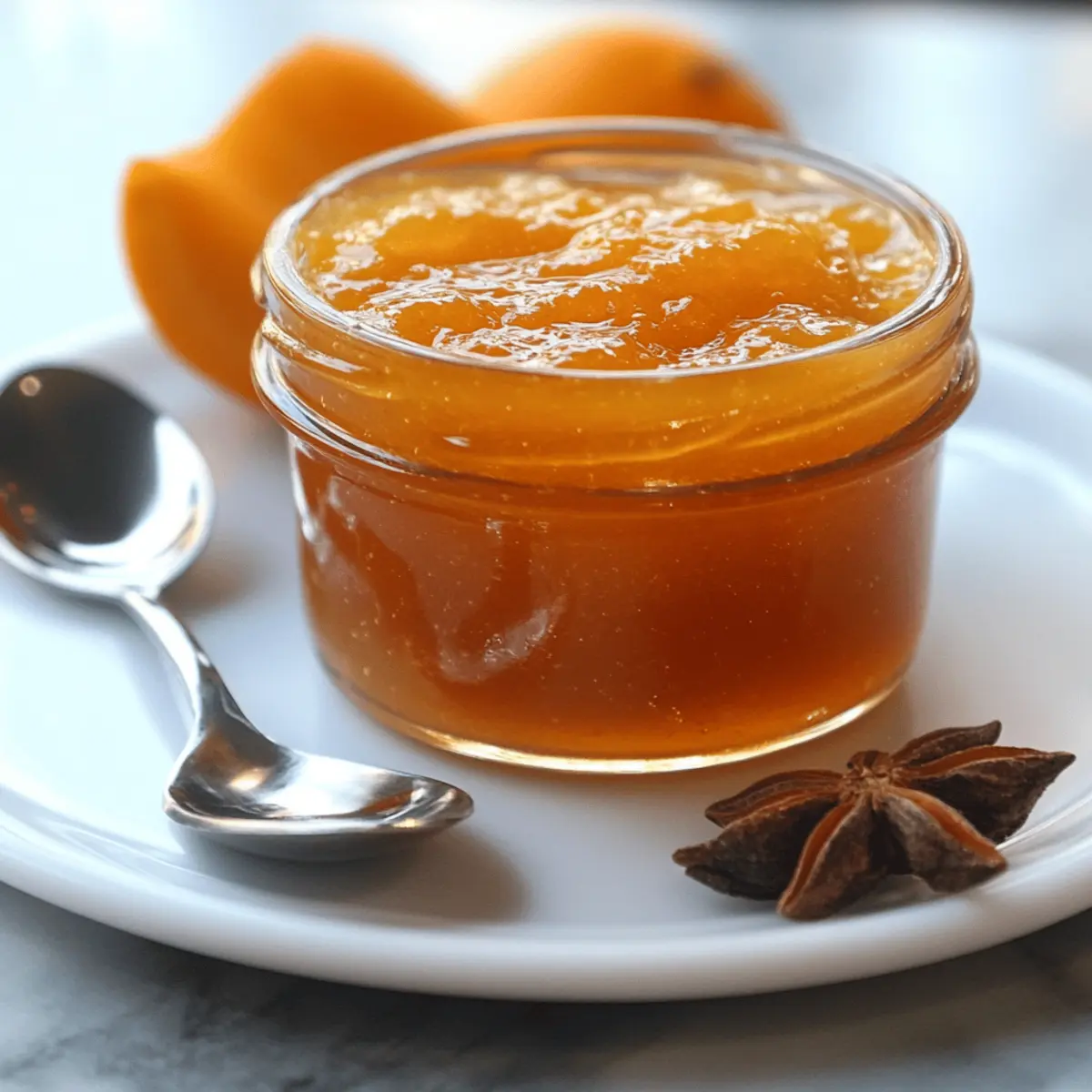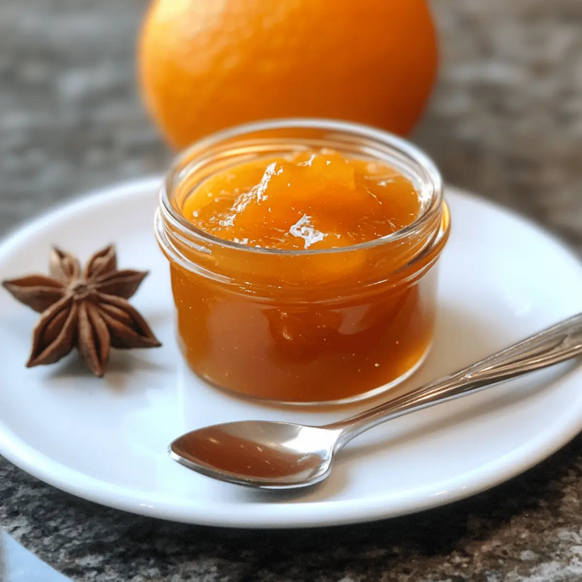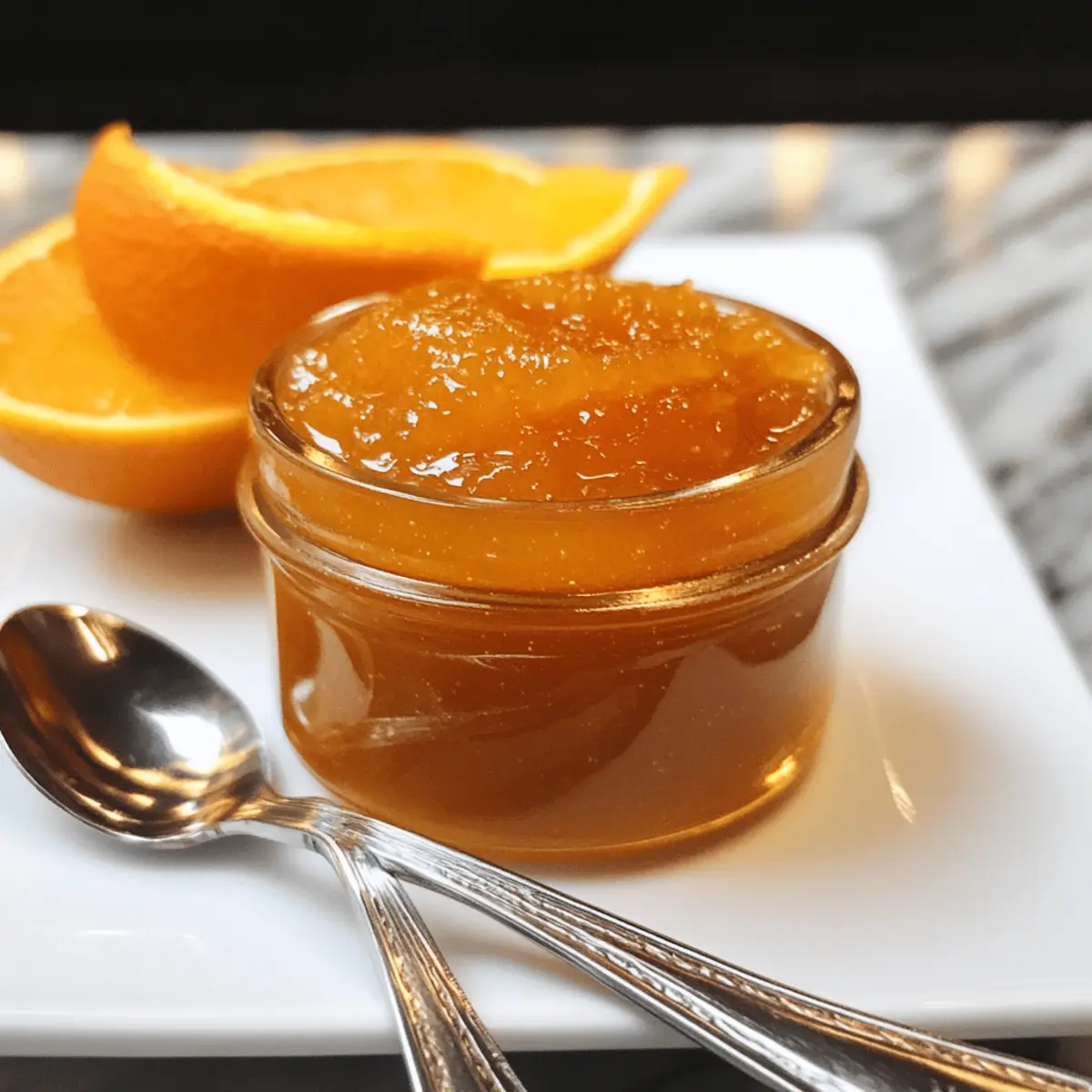 Als ich neulich in meiner Küche stand und frische Orangen schälte, wurde ich von dem süßen, zitrusartigen Duft verzaubert. Diese aromatische Erfahrung brachte mich dazu, meine perfekte Orangenmarmelade mit warmen Gewürzen zuzubereiten – ein Rezept, das nicht nur einfach ist, sondern auch hervorragend zu meinem Ziel passt, köstliche, selbstgemachte Zutaten zu genießen. Mit nur wenigen Zutaten fängt diese Marmelade die Essenz des Winters ein und verleiht jedem Frühstück eine besondere Note. Egal, ob auf frischem Brot oder als eleganter Topping für Desserts, diese Orangenmarmelade ist ein wahrer Genuss und bietet die Möglichkeit, verschiedene Zitrusfrüchte und Gewürze nach Ihrem Geschmack zu kombinieren. Sind Sie bereit, Ihrer Küche einen Hauch von Sonne einzuhauchen? Warum wird diese Marmelade Ihr Favorit? Einfachheit: Die Zubereitung der Orangenmarmelade ist unkompliziert und erfordert nur grundlegende Kochkünste. Vielfalt: Mit verschiedenen Zitrusfrüchten und Gewürzen können Sie Ihren eigenen Geschmack kreieren. Saisonale Leckerei: Diese Marmelade fängt die Frische von Winterorangen ein und bringt Wärme in dunkle Tage. Crowd Appeal: Perfekt für Frühstücksbrunches oder als Geschenk für Freunde und Familie. Probieren Sie auch unsere Cremige Gnocchi mit Spinat und Parmesan – sie passen hervorragend zu Ihrer Marmelade! Orangenmarmelade Zutaten • Entdecken Sie die Grundlagen für Ihre köstliche Orangenmarmelade mit warmen Gewürzen. Für die Marmelade Orangen – Die Basiszutat, die Süße und Geschmack liefert; verwenden Sie beliebige Sorten, aber süßere Orangen benötigen weniger Zucker. Zucker – Balanciert die Süße der Orangen und trägt zur Konservierung bei; passen Sie die Menge an, je nach Süße der Früchte. Zimtstangen (optional) – Fügt Wärme und ein aromatisches Gefühl hinzu; ersetzen Sie sie durch ½ Teelöffel gemahlenen Zimt, wenn gewünscht. Sternanis (optional) – Gibt einen Hauch von Lakritzgeschmack, der die Komplexität der Marmelade erhöht. Nelken (optional) – Sorgen für eine tiefe, würzige Note; verwenden Sie nur ein oder zwei, da sie stark sein können. Zitronensaft (optional) – Kann die Säure erhöhen und so die Süße ausbalancieren, auch wenn er nicht unbedingt erforderlich ist. Viel Spaß beim Kochen Ihrer Orangenmarmelade mit warmen Gewürzen – lassen Sie den Duft und den Geschmack Ihres Zuhauses lebendig werden! Step-by-Step Instructions für Orangenmarmelade mit warmen Gewürzen Step 1: Orangen vorbereiten Schälen Sie die Orangen und entfernen Sie dabei möglichst viel von der weißen Haut, da diese bitter schmecken kann. Verwenden Sie ein scharfes Messer, um die Schale präzise abzutrennen. Achten Sie darauf, die Schalenreste gründlich zu entfernen, da sie die Konsistenz der Marmelade beeinflussen könnten. Step 2: Orangen pürieren Geben Sie die geschälten Orangen in einen Standmixer oder verwenden Sie einen Stabmixer, um ein glattes Püree zu erhalten. Achten Sie darauf, alle Membranen gut zu zerkleinern, damit eine gleichmäßige Konsistenz entsteht. Dies sollte nur wenige Minuten dauern, und Sie sollten ein schönes, leuchtendes Orangenpüree erhalten. Step 3: Zutaten mischen Füllen Sie das Orangenpüree in einen großen Topf und fügen Sie den Zucker sowie die gewählten Gewürze hinzu. Wenn Sie Zimtstangen, Sternanis oder Nelken verwenden, sollten diese gleich mit dem Püree vermischt werden. Mischen Sie alles gut durch, sodass der Zucker gleichmäßig verteilt ist und die Gewürze ihre Aromen entfalten können. Step 4: Mischung kochen Erhitzen Sie die Mischung bei mittlerer Hitze und bringen Sie sie zum Kochen. Lassen Sie die Marmelade für 20 bis 30 Minuten köcheln und rühren Sie gelegentlich um. Sie wissen, dass die Marmelade fertig ist, wenn sie dicker wird und die Oberfläche dickliche Blasen bildet. Um die Konsistenz zu überprüfen, können Sie einen kleinen Löffel auf einen kalten Teller setzen und die Marmelade darauf auskühlen lassen. Step 5: Abfüllen Sobald die Marmelade die gewünschte Konsistenz erreicht hat, bereiten Sie sterile Einmachgläser vor. Füllen Sie die Gläser mit der heißen Marmelade und lassen Sie dabei einen Abstand von etwa 6 Millimetern zum Rand. Dies ist wichtig für die Haltbarkeit der Orangenmarmelade mit warmen Gewürzen. Step 6: Einkochen Prozessieren Sie die Gläser in einem Wasserbad für 10 Minuten, um sicherzustellen, dass sie langfristig haltbar sind. Achten Sie darauf, dass das Wasser die Gläser vollständig bedeckt, und bringen Sie das Wasser zum Kochen. Lassen Sie die Gläser danach abkühlen und prüfen Sie, ob die Deckel richtig verschlossen sind. Step 7: Lagerung und Verwendung Lagern Sie die fertiggestellten Gläser an einem kühlen, dunklen Ort für eine längere Haltbarkeit. Geöffnete Gläser sollten im Kühlschrank aufbewahrt und innerhalb von mehreren Wochen verbraucht werden. Genießen Sie Ihre selbstgemachte Orangenmarmelade mit warmen Gewürzen auf Toast, in Desserts oder als besonderes Geschenk! Orangenmarmelade Variationen und Alternativen Erleben Sie die Freude, Ihre selbstgemachte Orangenmarmelade ganz nach Ihrem Geschmack zu gestalten, indem Sie mit verschiedenen Zutaten experimentieren! Anderes Obst: Probieren Sie andere Zitrusfrüchte wie Mandarinen oder Grapefruits aus, um neue Geschmacksrichtungen zu entdecken. Die Variationen sind endlos, und jede Zitrusfrucht bringt ihre eigene Note in die Marmelade. Kräuter hinzufügen: Fügen Sie frische Minze oder Basilikum hinzu, um der Marmelade eine überraschend frische Note zu verleihen. Diese Kräuter harmonieren wunderbar mit dem süßen Aroma der Orangen und bringen ein Stück Sommervielfalt in die kalte Jahreszeit. Zitronenschale: Experimentieren Sie mit etwas Zitronenzesten, um die Zitrusaromen noch weiter zu intensivieren. Dies verstärkt die Frische und bringt eine besondere Spritzigkeit in die Marmelade. Marmeladen-Style: Um eine Orangenmarmelade zu kreieren, können Sie eine kl