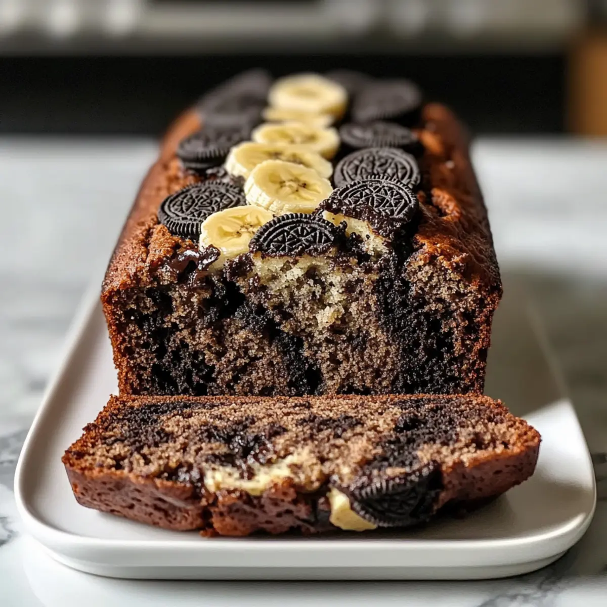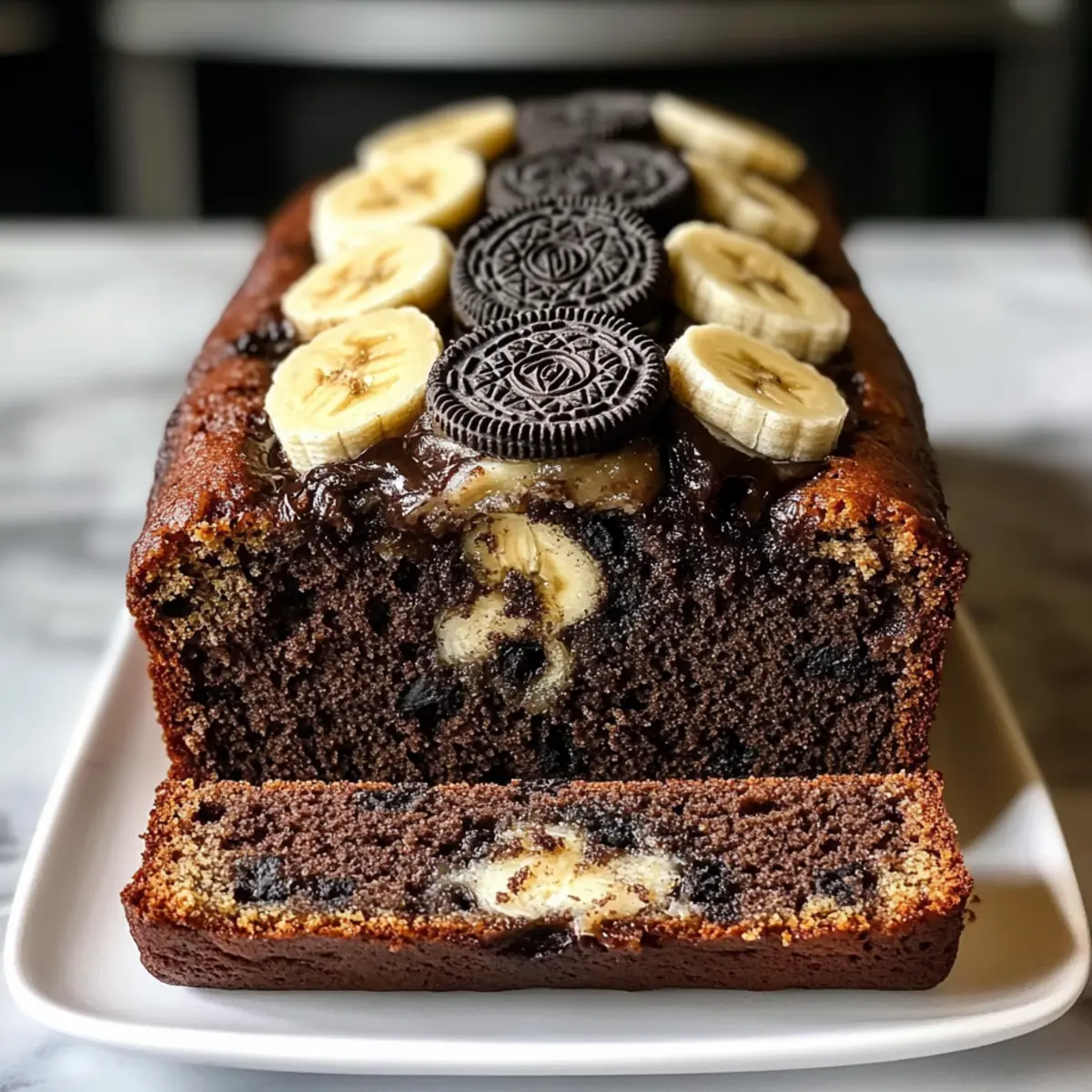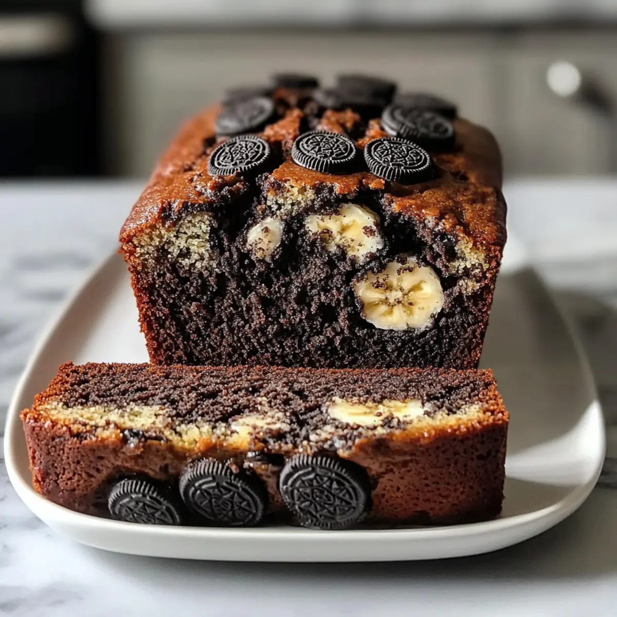 Stell dir vor, du betrittst eine Küche, in der der verführerische Duft von reifen Bananen und schmelzender Schokolade in der Luft schwebt. Genau das erwartet dich mit meinem Rezept für Oreo Bananenbrot! Diese köstliche Kombination aus weichen, süßen Bananen und dem knackigen Biss von Oreo-Keksen ist nicht nur ein Blickfang, sondern auch ein echter Publikumsliebling. Schnell zubereitet und kinderfreundlich, wird dieses Brot zum perfekten Begleiter für gemütliche Frühstücke oder nachmittägliche Snacks. Lass dich von der Einfachheit und dem Genuss verführen und entdecke, wie viel Freude das gemeinsame Backen mit den Kleinen bereiten kann! Bist du bereit, deine Familie mit einem unwiderstehlichen Leckerbissen zu überraschen? Warum solltest du Oreo Bananenbrot lieben? Schnelle Zubereitung: Dieses Rezept ist super einfach und benötigt keine besonderen Backkünste – perfekt für unerfahrene Köche und stressige Tage. Köstliche Kombination: Die süße Banane harmoniert perfekt mit der knusprigen Oreo-Textur, was jedes Stück zu einem kleinen Genuss macht. Familienfreundlich: Kinder werden es lieben, mit dir zusammen zu backen und die leckeren Kekse einzufügen – ein Spaß für die ganze Familie! Vielseitigkeit: Dieses Brot lässt sich sowohl warm servieren, vielleicht mit etwas Butter oder einer Kugel Eis, als auch in luftdichten Behältern aufbewahren – ideal für unterwegs! Crowd-Pleaser: Sei bereit, Komplimente zu erhalten! Egal, ob bei einem Familienfrühstück oder einer Kaffeepause mit Freunden, das Oreo Bananenbrot kommt überall gut an! Oreo Bananenbrot Zutaten Für den Teig Reife Bananen – Sie sorgen für Feuchtigkeit und Süße; verwende sehr reife Bananen mit vielen braunen Stellen für den besten Geschmack. Geschmolzene Butter – Fügt eine reichhaltige Note hinzu; kann durch Kokosöl für eine milchfreie Option ersetzt werden. Zucker – Für die nötige Süße; ziehe Kokoszucker als gesündere Alternative in Betracht. Großes Ei – Beigetragen zur Struktur und Feuchtigkeit; kann mit einem Leinsamen-Ei (1 EL gemahlener Leinsamen + 2,5 EL Wasser) für eine vegane Option ersetzt werden. Vanilleextrakt – Verstärkt den Geschmack; wähle bestenfalls reinen Vanilleextrakt. Backsoda – Als Lockerungsmittel; stelle sicher, dass es frisch ist, um optimale Ergebnisse zu erzielen. Salz – Balanciert die Süße und hebt die Aromen hervor. Allzweckmehl – Gibt Struktur; die Hälfte kann durch Vollkornmehl für mehr Ballaststoffe ersetzt werden. Oreo-Kekse (14 Kekse) – Sie sorgen für den Schokoladengeschmack und den typischen Crunch. Serviervorschläge Warm servieren – Ein Stück warm mit Butter oder einer Kugel Eis ist unwiderstehlich! Topping-Ideen – Dekoriere das Brot mit zusätzlichen zerbröselten Oreos für extra Crunch und Attraktivität. Mit diesen Zutaten bist du bereit, ein köstliches Oreo Bananenbrot zu zaubern, das garantiert ein Hit bei der ganzen Familie wird! Schritt-für-Schritt-Anleitung für Oreo Bananenbrot Schritt 1: Backofen vorheizen Heize deinen Backofen auf 175 °C vor und fette eine 9×5-Zoll-Kastenform ein. Das Fetten sorgt dafür, dass dein Oreo Bananenbrot später leicht aus der Form gleitet. Achte darauf, die Form gleichmäßig zu fetten, damit keine Stellen kleben bleiben. Schritt 2: Bananen pürieren Nimm zwei bis drei sehr reife Bananen und püriere sie in einer großen Schüssel, bis sie glatt sind. Verwende eine Gabel oder einen Kartoffelstampfer, um die Bananen optimal zu zerdrücken. Die Püree-Konsistenz sollte streichfähig sein, da sie die Basis für den Teig bildet. Schritt 3: Butter hinzufügen Gieße die geschmolzene Butter zu den pürierten Bananen und vermische alles gründlich. Eine Holzlöffel oder ein Handmixer eignet sich hierfür gut. Sorge dafür, dass die Butter gut integriert ist, damit dein Oreo Bananenbrot die nötige Feuchtigkeit und den köstlichen Geschmack erhält. Schritt 4: Zucker und Ei hinzufügen Füge den Zucker, das geschlagene Ei und den Vanilleextrakt zu der Bananen-Butter-Mischung hinzu. Rühre die Zutaten, bis sie gleichmäßig vermengt sind, und achte darauf, dass keine Stückchen zurückbleiben. Diese Kombination sorgt für die perfekte Süße und einen herrlichen Duft, während das Brot backt. Schritt 5: Trockene Zutaten einmischen Streue das Backpulver und das Salz in die Mischung und rühre es sanft unter. Es ist wichtig, diese Zutaten gut zu integrieren, um sicherzustellen, dass dein Oreo Bananenbrot gleichmäßig aufgeht. Verwende hierfür eine Gabel oder einen Löffel; es können ein paar kleine Klumpen bleiben. Schritt 6: Mehl hinzufügen Gib das Allzweckmehl dazu und hebe es vorsichtig unter, bis ein dickflüssiger Teig entsteht. Übermische den Teig nicht, da dies zu einem dichten Brot führen kann. Du solltest noch kleine Mehlnester erkennen können, die beim Backen verschwinden. Schritt 7: Oreo-Kekse einarbeiten Zerkleinere die Oreo-Kekse und falte sie sanft unter den Teig. Achte darauf, nicht zu fest zu rühren, damit die Kekse intakt bleiben und das Brot die perfekte Crunch-Textur behält. Du kannst einen Teil der Kekse auch für das Topping aufbewahren. Schritt 8: Teig in die Form füllen Gieße den fertigen Teig in die vorbereitete Kastenform und streiche die Oberfläche mit einem Spatel glatt. Dies hilft, eine gleichmäßige Backfläche zu erhalten. Achte darauf, die Form nicht zu überfüllen, damit das Brot beim Backen genug Platz hat, um aufzugehen. Schritt 9: Mit Oreos dekorieren Streue die restlichen zerkleinerten Oreos gleichmäßig über den Teig, bevor du ihn in den Ofen schiebst. Diese zusätzlichen Kekse sorgen für einen noch knusprigeren Belag und eine verführerische Optik. Schritt 10: Backen Backe das Oreo Bananenbrot für 50-60 Minuten, bis ein Zahnstocher in der Mitte sauber herauskommt. Achte darauf, den Fortschritt regelmäßig zu überprüfen, da die Backzeit variieren kann. Der Brot sollte goldbraun und durchgebacken sein. Schritt 11: Abkühlen lassen L