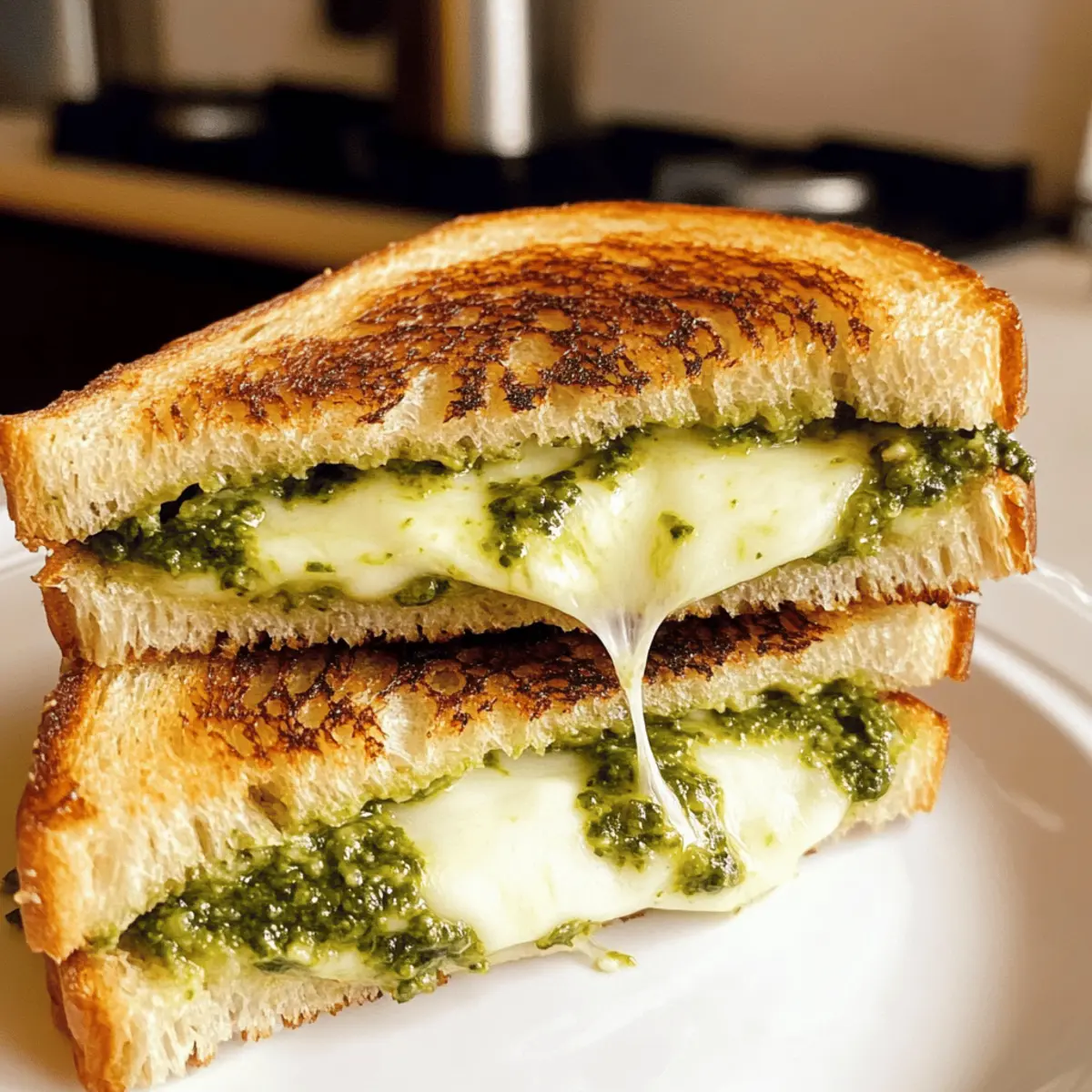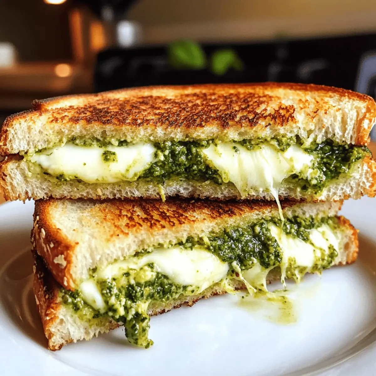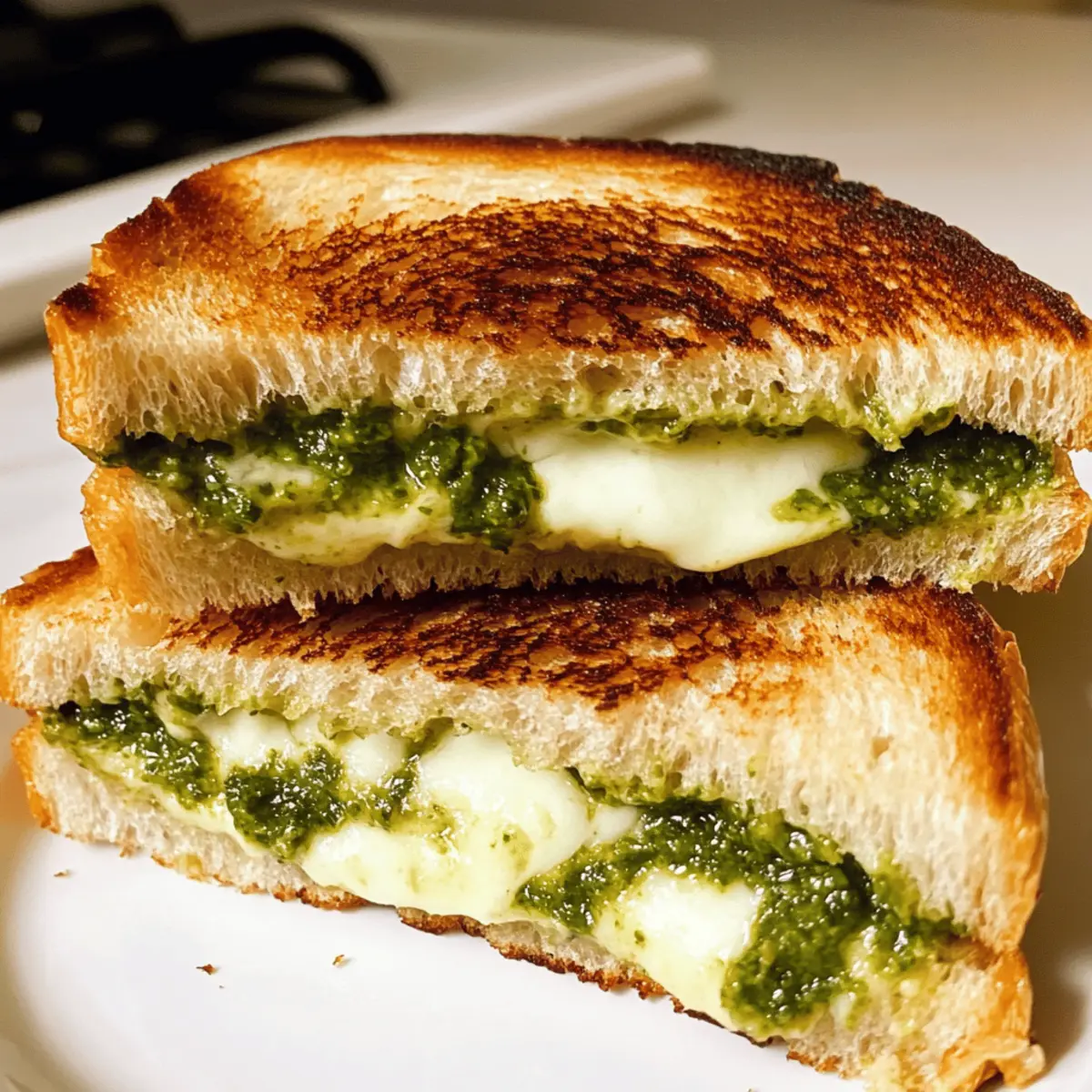 Wusstet ihr, dass ein einfaches gegrilltes Käsebrot mit ein paar raffinierten Zutaten zum Star eurer nächsten Mahlzeit werden kann? Mein Pesto Mozzarella Gegrilltes Käsebrot vereint die verführerischen Aromen von frisch geschmolzenem Käse und aromatischem Basilikumpesto zu einem gemütlichen Genuss. Diese einfache und schnelle Lösung für hektische Abende ist nicht nur ein wahrer Publikumsliebling, sondern passt auch perfekt zu besonderen Anlässen wie einer Filmnacht. Mit seiner knusprigen Kruste und der cremigen Füllung bietet dieses Sandwich das Beste aus der Welt des Komfortessens. Seid ihr bereit, eure Geschmacksknospen zu verwöhnen und eine neue Lieblingsmahlzeit zu entdecken? Warum dieses Rezept unwiderstehlich ist? Einfachheit, die begeistert: Mit nur wenigen Zutaten und einfachen Schritten beeindruckt dieses Rezept sowohl Anfänger als auch erfahrene Köche. Reiche Aromen: Das Zusammenspiel von cremigem Mozzarella und würzigem Basilikumpesto sorgt für ein Geschmackserlebnis, das Erinnerungen weckt. Vielseitigkeit: Du kannst das Rezept nach Belieben anpassen – probiere verschiedene Käsesorten oder Brote aus, um dein perfektes Sandwich zu kreieren! Schnell zubereitet: Ideal für hektische Tage, erfordert es nur 10 Minuten Vorbereitungszeit und wenig Kochaufwand. Perfekt für Anlässe: Ob bei einer entspannten Woche oder einem gemütlichen Abend mit Freunden, dieses Gericht begeistert jeden. Du kannst auch lecker frischen Salat als Beilage genießen, um das Geschmackserlebnis zu perfektionieren! Pesto Mozzarella Gegrilltes Käsebrot Zutaten • Ob du es für dich selbst oder für Gäste zubereitest, diese Zutaten sind die Grundlage für ein köstliches, einfaches Gericht. Für das Brot Sauerteigbrot – sorgt für eine knusprige Kruste und eine chewy Textur; wähle eine hochwertige Brotsorte für bessere Ergebnisse. Für die Füllung Basilikumpesto – fügt eine herzhafte und aromatische Note hinzu; frisch zubereitet ist am besten, aber hochwertiges fertiges Pesto funktioniert auch gut. Frischer Mozzarella – bringt einen reichen Geschmack; kann anstelle von geriebenem Käse in Scheiben verwendet werden. Low-Moisture Milchmozzarella – sorgt für die perfekte Schmelzfähigkeit; eine gute Alternative, wenn frischer Mozzarella nicht verfügbar ist. Für das Braten Olivenöl – statt Butter verwendet, um den Pesto-Geschmack zu bewahren; leicht auf das Brot streichen, bevor man es brät. Koscheres oder Meersalz – hebt den Geschmack hervor; vor dem Braten auf das Brot streuen. Mit diesen Zutaten bereitest du ein köstliches Pesto Mozzarella Gegrilltes Käsebrot zu, das deine Geschmacksknospen verwöhnen wird! Schritt-für-Schritt-Anleitung für Pesto Mozzarella Gegrilltes Käsebrot Step 1: Brot vorbereiten Lege die beiden Scheiben Sauerteigbrot auf einen sauberen Arbeitstisch. Verteile etwa ½ Esslöffel Basilikumpesto gleichmäßig auf jede Brotscheibe. Achte darauf, dass das Pesto bis zu den Rändern reicht, um bei jeder Bissen den vollen Geschmack zu genießen. Step 2: Käse schichten Lege auf zwei der Pesto-bestrichenen Brotscheiben gleichmäßig die frischen und die low-moisture Mozzarella-Scheiben. Achte darauf, den Käse gut abzudecken, um sicherzustellen, dass er beim Braten schön schmelzen kann. Decke die Sandwiches mit den anderen Pesto-bestrichenen Brotscheiben ab. Step 3: Sandwich vorbereiten Bestreiche die äußeren Seiten der Sandwiches leicht mit Olivenöl. Dies sorgt für eine knusprige Kruste und verstärkt den Geschmack. Streue eine Prise koscheres oder Meersalz auf die ölige Oberfläche, um das Aroma des Pesto Mozzarella Gegrilltes Käsebrot zu verstärken. Step 4: Braten in der Pfanne Erhitze eine große Pfanne bei mittlerer bis niedriger Temperatur. Sobald die Pfanne heiß ist, lege die Sandwiches vorsichtig mit der geölten Seite nach unten hinein. Brate die Sandwiches für etwa 3-4 Minuten, bis sie eine goldbraune und knusprige Kruste haben. Step 5: Wenden und finalisieren Sobald die untere Seite schön goldbraun ist, wende die Sandwiches vorsichtig mit einem Spatel. Brate die andere Seite für weitere 3 Minuten, bis sie ebenfalls goldbraun und der Käse geschmolzen ist. Achte darauf, dass die Hitze nicht zu hoch ist, damit das Brot nicht anbrennt. Step 6: Servieren Nehme die Sandwiches aus der Pfanne und lasse sie kurz auf einem Schneidebrett ausdampfen. Schneide sie diagonal in zwei Hälften und serviere sie heiß, während der Käse noch schön klebrig ist. Genieße dein Pesto Mozzarella Gegrilltes Käsebrot am besten direkt nach dem Zubereiten! Pesto Mozzarella Gegrilltes Käsebrot einfach im Voraus zubereiten Die Zubereitung des Pesto Mozzarella Gegrillten Käsebrots ist ideal für geschäftige Wochen! Du kannst die Brotscheiben mit Pesto bis zu 24 Stunden im Voraus bestreichen und in einem luftdichten Behälter im Kühlschrank aufbewahren. Auch die Käsescheiben lassen sich vorbereiten – einfach in einem separaten Behälter im Kühlschrank lagern. Wenn du bereit bist zu genießen, musst du nur die Sandwiches mit Olivenöl bestreichen, das Salz hinzufügen und sie in der Pfanne braten, bis sie goldbraun sind, was nur 6-8 Minuten dauert. Achte darauf, die Hitze niedrig zu halten, damit das Brot nicht anbrennt, und genieße diese köstliche Unterkunft zu Hause, die dir so viel Zeit spart! Pesto Mozzarella Gegrilltes Käsebrot Variationen Du kannst dieses Rezept ganz nach deinem Geschmack anpassen und dabei neue Geschmackskombinationen entdecken! Sonnengetrocknete Tomaten: Tausche das Pesto gegen eine Paste aus sonnengetrockneten Tomaten aus. Die süß-sauren Aromen verleihen deinem Sandwich eine besondere Note. Cheddar oder Gouda: Verwende statt Mozzarella einen kräftigen Cheddar oder cremigen Gouda. Diese Käsesorten sorgen für eine neue, herzhafte Geschmackstiefe. Avocado: Füge frische Avocadoscheiben in dein Sandwich ein. Sie bringen eine butterartige Textur und einen zusätzlichen Nährstoffkick mit sich. Rote Paprika: Ein paar Sch