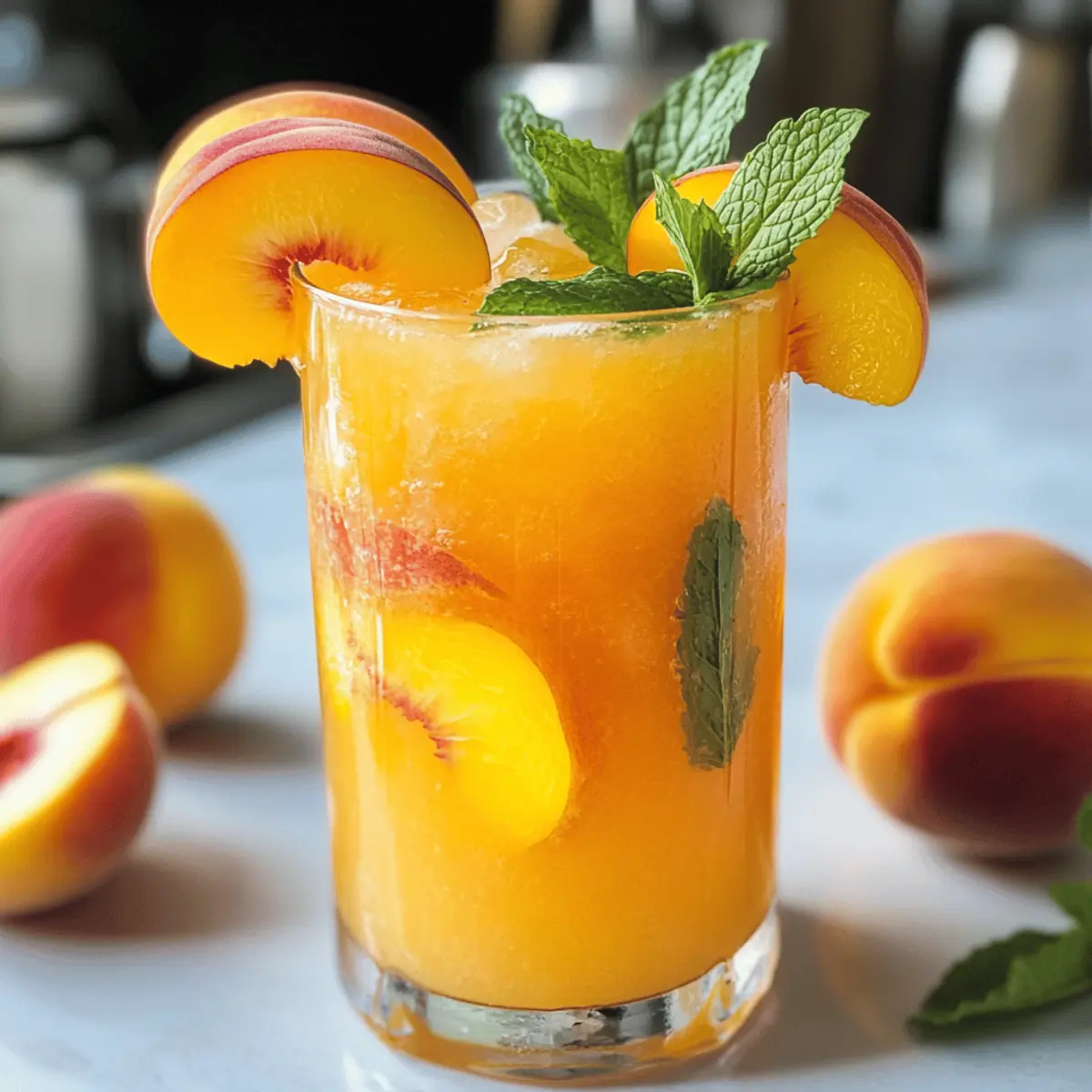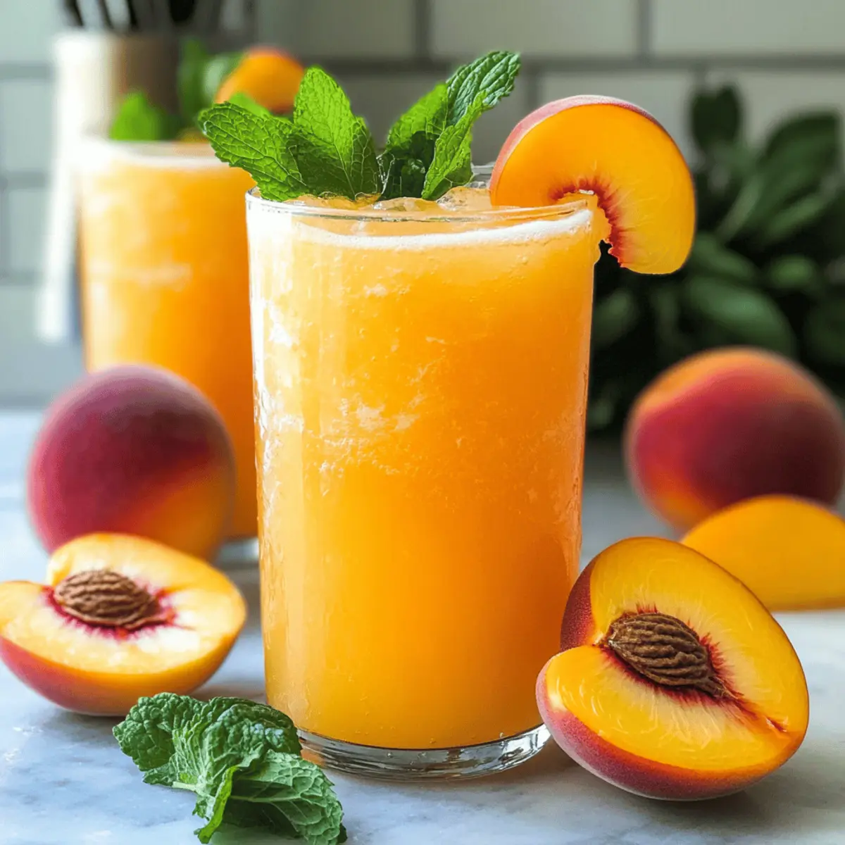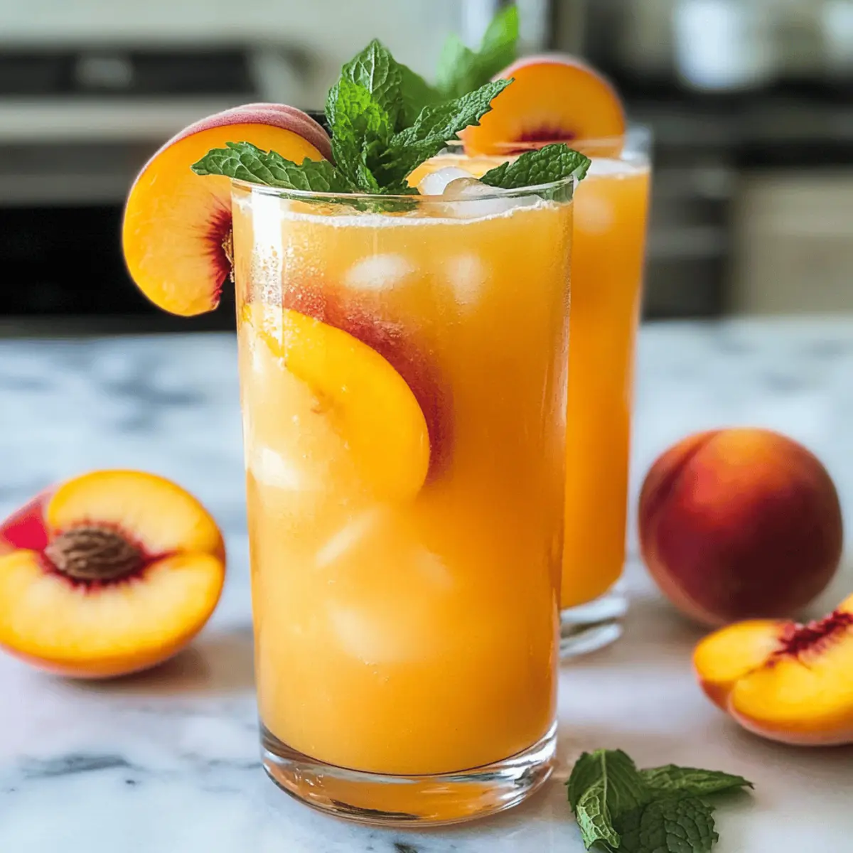 Bevor ich mein Glas Pfirsich-Limonade fülle, kann ich den süßen Duft der frischen Pfirsiche förmlich in der Luft spüren. Diese erfrischende Mischung ist nicht nur ein Genuss für die Sinne, sondern auch extrem einfach zuzubereiten – perfekt für einen heißen Sommertag! Mit nur wenigen Zutaten zaubern wir eine leckere Limonade, die in gerade einmal 15 Minuten fertig ist. Egal, ob du sie pur für die Familie oder mit einem Spritzer Vodka für die Erwachsenen servierst, sie ist garantiert ein Hit bei jeder Zusammenkunft. Lass uns gemeinsam entdecken, wie du mit dieser Rezeptur nicht nur deine Gäste beeindrucken kannst, sondern auch in der Küche einen neuen Lieblingsdrink kreierst. Bist du bereit, den Sommer in dein Glas zu bringen? Warum ist diese Pfirsich-Limonade besonders? Einfachheit: Die Zubereitung ist supereinfach und benötigt keine komplizierten Geräte – ideal für jeden, der frische Hausmannskost liebt. Fruchtige Frische: Die natürliche Süße der Pfirsiche, kombiniert mit dem spritzigen Zitronensaft, sorgt für einen unvergleichlichen Geschmack, der an Sommer beliebte Getränke erinnert. Vielseitigkeit: Diese Limonade kann leicht angepasst werden – verfeinere sie mit frischen Minze oder probiere verschiedene Früchte wie Erdbeeren für eine bunte Mischung! Schnell zubereitet: In nur 15 Minuten hast du ein erfrischendes Getränk, das perfekt für deine nächsten Grillpartys ist – ein echter Menschenmagnet! Erwachsenentwist: Verpass dem Getränk mit einem Spritzer Vodka eine besondere Note, um es in eine köstliche Cocktail-Option für Erwachsene zu verwandeln. Entdecke weitere kreative Möglichkeiten, um deine Pfirsich-Limonade zu variieren und deine Gäste zu begeistern! Pfirsich-Limonade Zutaten Für die Limonade • Frische Pfirsiche – Sie sorgen für natürliche Süße und ein köstliches Aroma; greife zu reifen „Fallen“-Pfirsichen für mehr Geschmack. • Frisch gepresster Zitronensaft – Er bringt die nötige Säure und Frische; für den besten Geschmack immer frisch verwenden. • Wasser – Verdünnt die Mischung und balanciert die Süße; passe die Menge je nach gewünschter Stärke an. • Zucker – Süßt die Limonade; nach Geschmack anpassen und eventuell durch Honig oder Agavennektar ersetzen. • Frische Minze – Bringt ein tolles Aroma und Frische; ideal als Garnitur, um das Getränk noch ansprechender zu machen. Lass deine kreative Ader sprudeln und genieße die erfrischende Pfirsich-Limonade bei deinem nächsten Sommerevent! Step-by-Step Instructions für Pfirsich-Limonade Step 1: Limonade vorbereiten Bereite zunächst deine Limonade vor, indem du frisch gepressten Zitronensaft und Zucker in einem Krug vermischst. Gib nach Belieben Wasser hinzu, bis die gewünschte Stärke erreicht ist. Rühre gut um, bis sich der Zucker vollständig aufgelöst hat. Stelle die Limonade dann für etwa 30 Minuten in den Kühlschrank, damit sie gut durchkühlt. Step 2: Pfirsiche schneiden Während die Limonade kühlt, nimm vier reife Pfirsiche zur Hand. Halbiere die Pfirsiche, entferne die Kerne und schneide sie in kleine Stücke. Um die Garnitur vorzubereiten, reserviere ein Viertel eines Pfirsichs und schneide es in dünne Scheiben. Diese werden später in jedes Glas gelegt, um die Pfirsich-Limonade zu dekorieren. Step 3: Pfirsich-Püree zubereiten Gib die geschnittenen Pfirsiche in einen Mixer oder Standmixer. Füge eine Tasse der gekühlten Limonade und einen Esslöffel frische Minze hinzu. Mixe alles für etwa 30 Sekunden, bis eine glatte Masse entsteht, die in deinem Krug richtig angenehm duftet und eine schöne, glänzende Farbe hat. Step 4: Mischung abseihen Wenn du eine dünnere und klarere Limonade bevorzugst, seihe das Pfirsich-Püree durch ein feines Sieb oder ein Passiertuch in eine separate Schüssel. Dies entfernt die festen Stücke und gibt dir eine erfrischende Pfirsich-Limonade, die leicht und angenehm zu trinken ist. Lass die Flüssigkeit gut abtropfen, um den gesamten Saft zu extrahieren. Step 5: Pfirsich-Püree hinzufügen Gib das abgeseihte Pfirsich-Püree zurück in den Krug mit der restlichen Limonade. Rühre die Mischung gut um, bis sich die Zutaten vollständig vereinen und das Getränk eine schöne, homogene Farbe annimmt. Der Duft von frischen Pfirsichen wird dich begeistern und macht die Limonade noch verlockender. Step 6: Servieren und garnieren Fülle Gläser mit Eiswürfeln und gieße die Pfirsich-Limonade vorsichtig darüber. Garniere jedes Glas mit den reservierten Pfirsichscheiben und einem Zweig frischer Minze. Dies sorgt für einen tollen visuellen und geschmacklichen Eindruck, ideal, um deine Gäste zu beeindrucken und die Limonade zu genießen. Meal Prep für Pfirsich-Limonade: So einfach geht’s! Wenn du deine Pfirsich-Limonade im Voraus zubereiten möchtest, gibt es einige Schritte, die du bis zu 3 Tage im Voraus erledigen kannst. Zum Beispiel kannst du die Limonade selbst zubereiten, indem du frisch gepressten Zitronensaft und Zucker mit Wasser vermischst und sie im Kühlschrank aufbewahrst, damit sie gut durchkühlt. Die geschnittenen Pfirsiche lassen sich ebenfalls vorbereiten und in einem luftdichten Behälter bis zu 24 Stunden im Kühlschrank lagern, um ihre Frische zu bewahren. Am Tag des Servierens musst du nur noch das Pfirsich-Püree mit der gekühlten Limonade vermengen und mit Eis und frischer Minze garnieren – so sparst du Zeit und erhältst einen köstlichen Drink, der so frisch schmeckt wie selbst gemacht! Tipps für die beste Pfirsich-Limonade Die richtigen Pfirsiche wählen: Achte darauf, reife und saftige Pfirsiche zu verwenden. Diese sorgen für den besten Geschmack und die nötige Süße in deiner Pfirsich-Limonade. Frisch pressen: Verwende immer frisch gepressten Zitronensaft, um die lebendige Frische deiner Limonade zu garantieren. Fertigprodukte können den Geschmack trüben. Süße anpassen: Beginne mit der vorgeschlagenen Zuckermenge und taste dich langsam heran, bis du die perfekte Balance