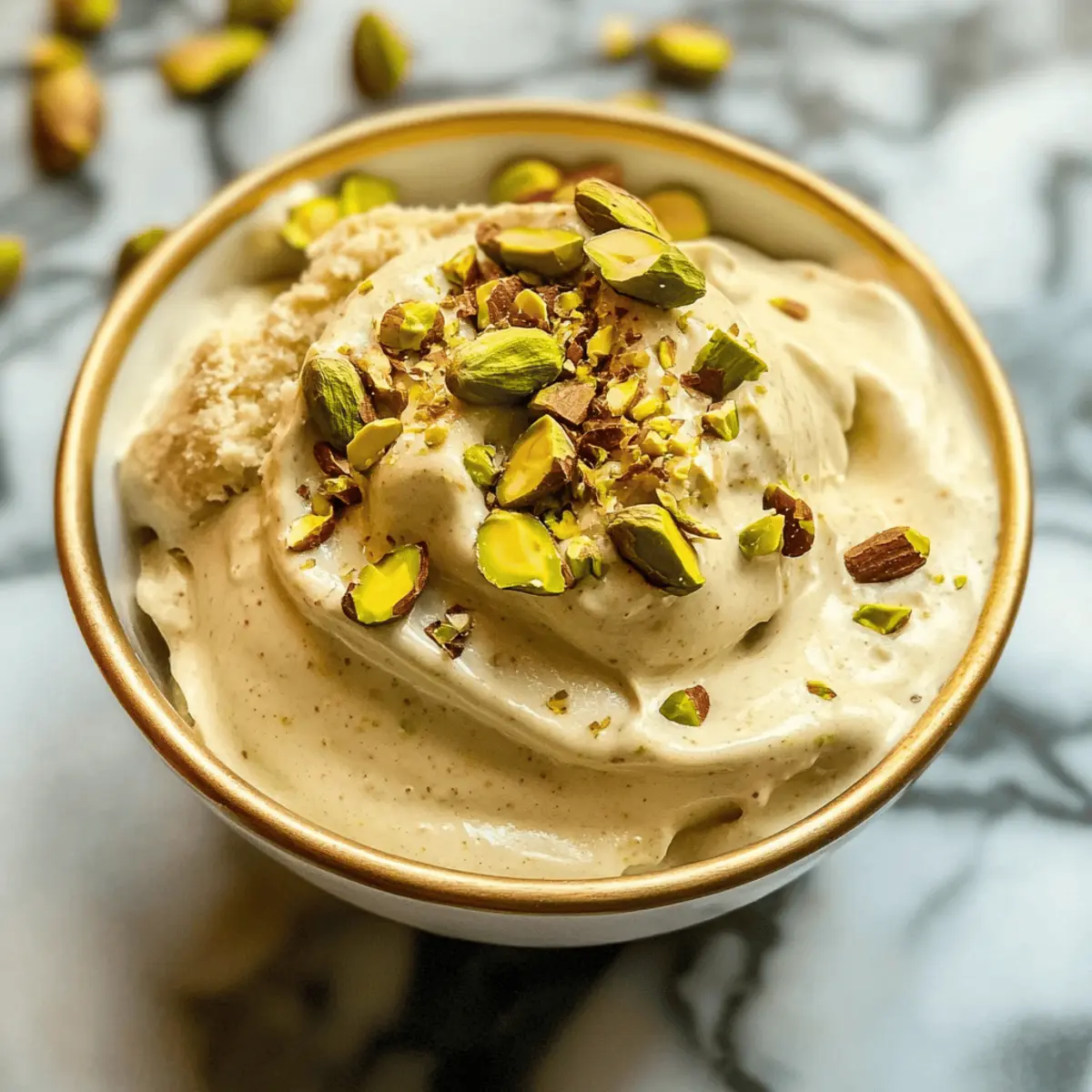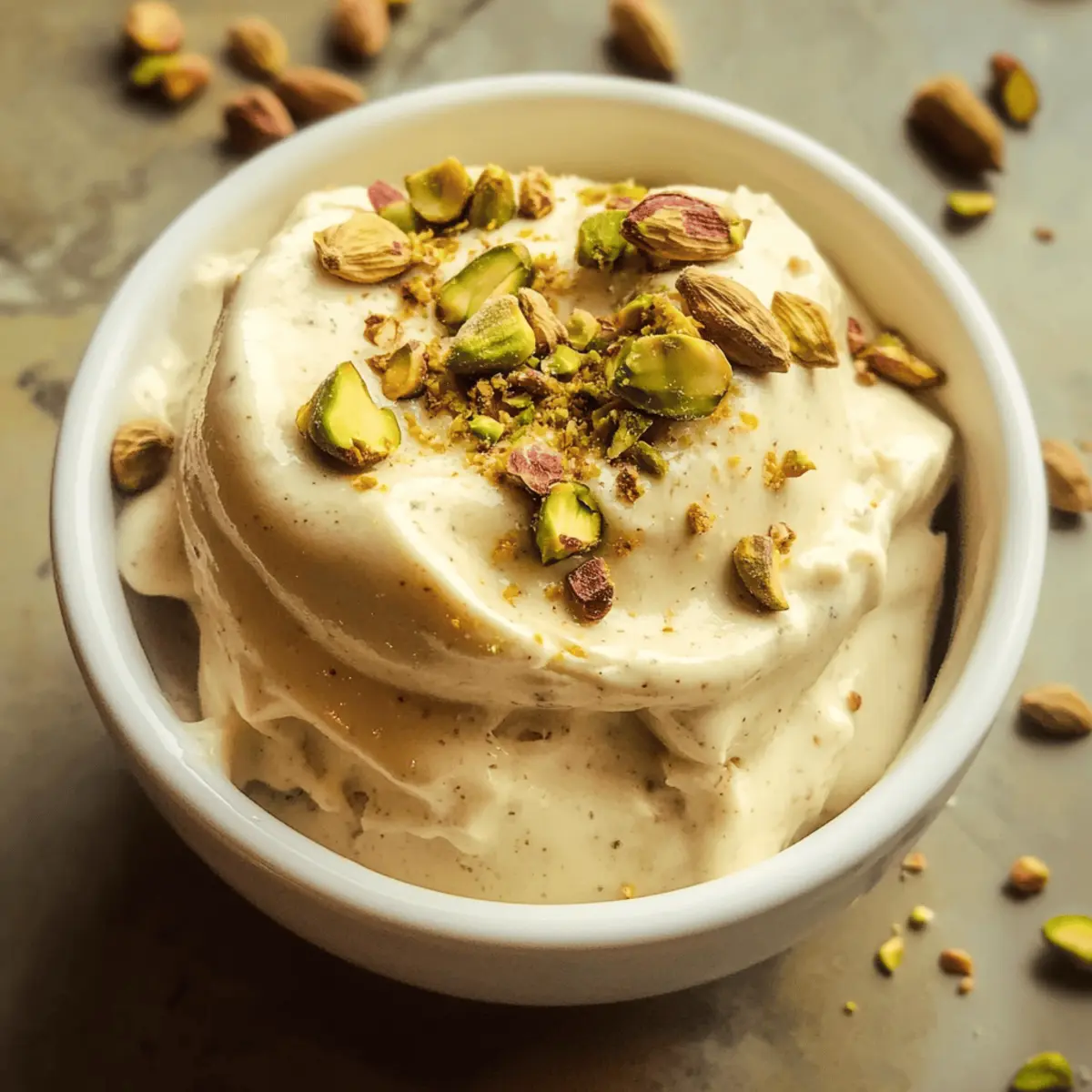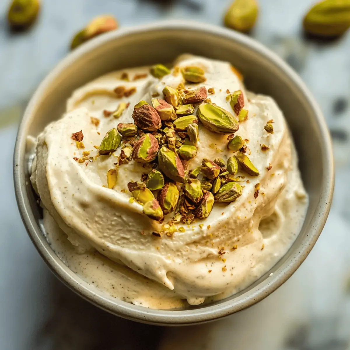 Die warmen Sonnenstrahlen auf meinem Gesicht und der Duft von frisch gemahlenem Kardamom in der Luft erinnern mich an die besten Momente des Sommers. Genau in solchen Augenblicken ist es an der Zeit, ein wenig Abkühlung zu genießen – und was wäre da besser als ein cremiges Pistazien-Kardamom-Eisjoghurt? Dieses Rezept vereint die nussigen Aromen von Pistazien mit der zarten Würze von Kardamom und ist dabei ganz einfach zuzubereiten. Mit nur wenigen Zutaten und ohne Eismaschine gelingt dir diese gesunde Nascherei, die sich perfekt für warme Tage eignet. Eine echte Freude für Freunde und Familie! Bist du bereit, dich auf eine erfrischende Geschmacksexplosion einzulassen? Warum wirst du dieses Rezept lieben? Einfachheit: Die Zubereitung ist kinderleicht und benötigt keine speziellen Geräte wie eine Eismaschine. Cremiger Genuss: Mit einer perfekten Kombination aus griechischem Joghurt und Sahne entsteht ein himmlisch cremiges Erlebnis, das sowohl leicht als auch reichhaltig ist. Natürliche Süße: Geschmorter Honig sorgt für ein gesundes Dessert ohne Zuckerzusätze, das auch ohne schlechtes Gewissen genossen werden kann. Wärmende Gewürze: Der zarte Kardamom verleiht dem Pistazien-Kardamom-Eisjoghurt eine spezielle Note, die an sonnige Sommertage erinnert. Vielseitig: Variiere das Rezept ganz nach Belieben, zum Beispiel mit Kokosnussjoghurt für eine vegane Variante oder mit ein paar Schokoladenstückchen für eine süße Überraschung. Genieße das Rezept als erfrischendes Dessert zu Hause oder bei deiner nächsten Gartenparty! Pistazien-Kardamom-Eisjoghurt Zutaten • Zutaten für eine erfrischende Köstlichkeit! Für die Basis Griechischer Joghurt – Für die beste cremige Textur solltest du Vollfettjoghurt verwenden. Sahne – Sorgt für zusätzlichen Reichtum und Cremigkeit. Honig – Diese natürliche Süße verstärkt den Geschmack; du kannst ihn durch Ahornsirup für eine interessante Variante ersetzen. Gemahlener Kardamom – Dieses Gewürz fügt die warmen und einladenden Aromen hinzu, die das Rezept auszeichnen. Vanilleextrakt – Bringt tiefe aromatische Nuancen in die Mischung. Für den Crunch Gehackte ungesalzene Pistazien – Für den nussigen Biss; fein hacken, damit sie gleichmäßig verteilt werden. Lass dich von diesem Rezept inspirieren und genieße jeden Löffel des köstlichen Pistazien-Kardamom-Eisjoghurts! Schritt-für-Schritt-Anleitung für Pistazien-Kardamom-Eisjoghurt Step 1: Zutaten mixen Gib in einen Mixer griechischen Joghurt, Sahne, Honig, gemahlenen Kardamom und Vanilleextrakt. Mixe die Zutaten auf hoher Stufe für etwa 2–3 Minuten, bis die Mischung schön cremig und glatt ist. Achte darauf, dass keine Klumpen übrig bleiben, da dies die Konsistenz deines Pistazien-Kardamom-Eisjoghurts beeinträchtigen könnte. Step 2: Pistazien hinzufügen Nach dem Mischen gieße die cremige Basis in eine große Rührschüssel. Füge die fein gehackten Pistazien hinzu und falte sie vorsichtig mit einem Spatel unter. Sei sanft, um die Luftigkeit der Mischung zu bewahren, während du sicherstellst, dass die Pistazien gleichmäßig verteilt sind. Der Crunch der Pistazien wird deinem Eisjoghurt eine herrliche Textur verleihen. Step 3: Einfrieren Lege eine Kastenform mit Backpapier aus oder verwende einen gefrierfesten Behälter. Gieße die Pistazien-Kardamom-Eisjoghurt-Mischung hinein und glätte die Oberfläche mit einem Spatel. Decke die Form gut ab und stelle sie für mindestens 4 Stunden ins Gefrierfach, bis der Eisjoghurt fest geworden ist. Die Kälte macht ihn perfekt für heißes Wetter! Step 4: Servieren Nehme die Form 5 Minuten vor dem Servieren aus dem Gefrierfach, damit der Pistazien-Kardamom-Eisjoghurt leicht antauen kann. Dies erleichtert das Portionieren und sorgt für eine cremige Konsistenz. Verwende einen Eisportionierer, um schöne Kugeln zu formen, und serviere den Eisjoghurt in Schalen, garniert mit zusätzlichen gehackten Pistazien und einem großzügigen Honigüberzug für das perfekte Aroma. Lagerungstipps für Pistazien-Kardamom-Eisjoghurt Kühlschrank: Bewahre übrig gebliebenen Pistazien-Kardamom-Eisjoghurt in einem luftdichten Behälter für bis zu 3 Tage auf, um die Frische zu erhalten. Gefrierfach: Dieser cremige Eisjoghurt kann bis zu 2 Wochen im Gefrierfach gelagert werden. Achte darauf, ihn gut abzudecken, um Gefrierbrand zu vermeiden. Vor dem Servieren: Lass das Eisjoghurt etwa 5 Minuten bei Raumtemperatur stehen, um es leichter portionieren zu können und die Cremigkeit wiederherzustellen. Auffrischen: Solltest du feststellen, dass der Eisjoghurt zu hart gefroren ist, kannst du ihn sanft in der Mikrowelle für 10–15 Sekunden erwärmen, aber pass auf, dass er nicht schmilzt! Was passt zu Pistazien-Kardamom-Eisjoghurt? Ein cremiger Genuss wie dieser verlangt nach den richtigen Begleitern, die das Geschmackserlebnis noch verstärken! Frische Beeren: Die saftige Süße von Erdbeeren oder Himbeeren bietet einen wunderbaren Kontrast zur Cremigkeit des Eisjoghurts. Ein fruchtiger Genuss, der Erinnerungen an den Sommer weckt. Knusprige Waffeln: Serviere das Eisjoghurt in knusprigen Waffeln für einen köstlichen Crunch. Diese Kombination sorgt nicht nur für Textur, sondern auch für ein tolles Aroma. Minze: Einige frische Minzblätter bringen eine erfrischende Note und balancieren die Süße perfekt. Die Kombination von Minze und Pistazien ist einfach himmlisch! Kuskus-Salat: Ein leichter, fruchtiger Kuskus-Salat mit Zitronensaft und Granatapfelkernen bildet eine interessante und frische Ergänzung. Die Aromen harmonieren wunderbar mit dem Pistazien-Kardamom-Eisjoghurt. Rosmarin-Limonade: Ein spritziges Getränk, das die erdigen Noten des Kardamoms hervorhebt und die Süße des Desserts wunderbar ausgleicht. Ein Genuss, der das Essen abrundet. Chai-Tee: Serviere eine Tasse vollmundigen Chai-Tee, um die Aromen der Gewürze zu intensivieren. Die warme Note unterstreicht die sanften Nuancen des Eisjoghurts und schafft ein unvergessliches E