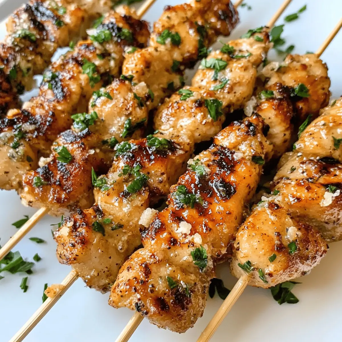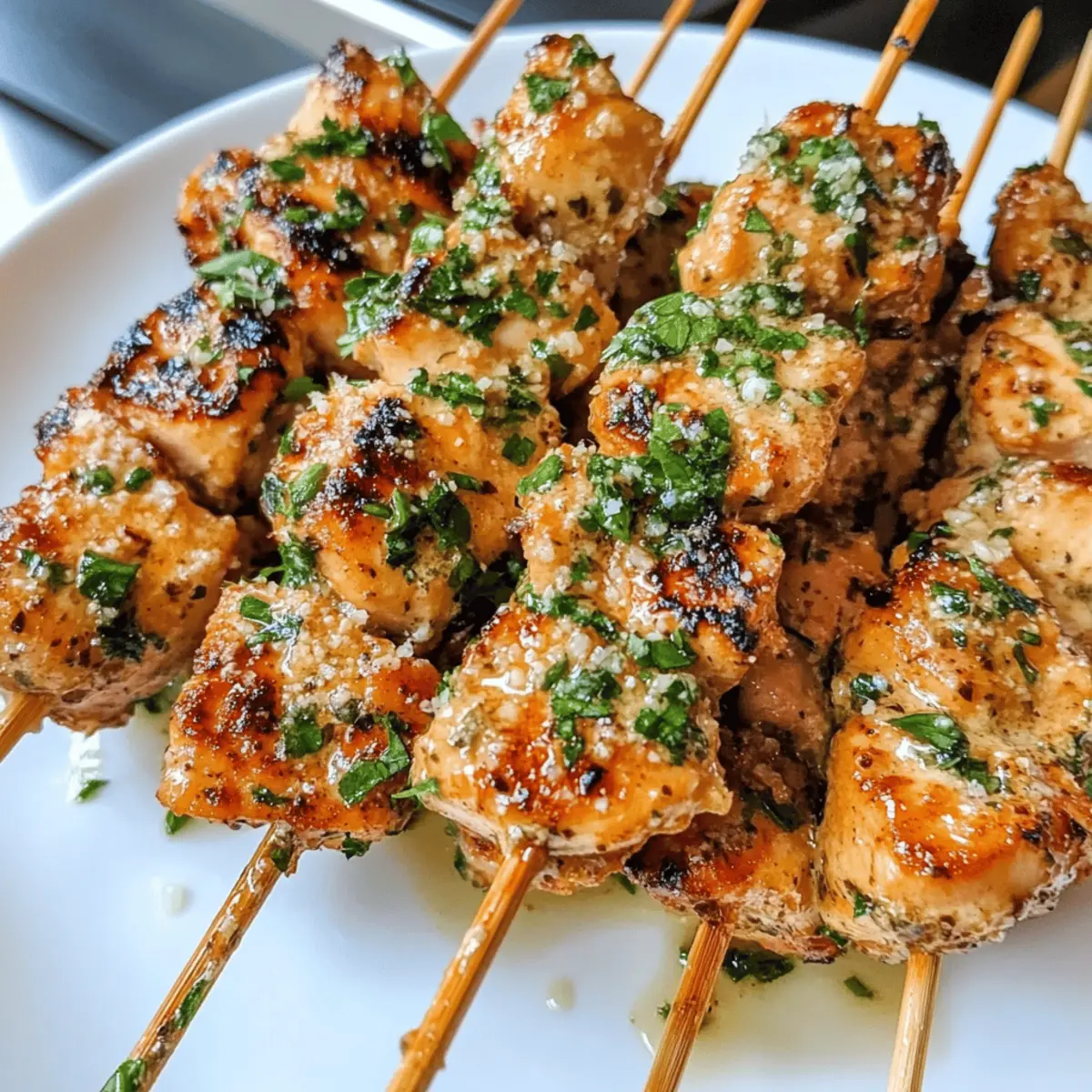 Wenn der Grillabend naht, stelle ich oft fest, dass es an der Zeit ist, etwas ganz Besonderes auf den Tisch zu bringen. Diese Ranch Knoblauch Parmesan Hähnchenspieße sind die perfekte Lösung – sie sind nicht nur kinderfreundlich, sondern auch die ideale Wahl für Meal Prep. Jeder Biss davon ist eine Geschmacksexplosion, die aus zartem Hähnchen in einer cremigen, würzigen Knoblauch-Parmesan-Sauce besteht. Egal, ob du sie im Air Fryer, im Ofen oder auf dem Grill zubereitest, diese Spieße sind schnell gemacht und sorgen für Begeisterung bei deiner Familie oder deinen Freunden. Bist du bereit, dass dein nächstes Essen zur Geschmacksüberraschung wird? Lass uns gleich loslegen! Warum sind diese Spieße etwas Besonderes? Vielseitig, egal ob im Grill, Ofen oder Air Fryer – du kannst sie ganz einfach nach deinen Vorlieben zubereiten. Kinderfreundlich und perfekt für die ganze Familie, diese Spieße werden garantiert allen schmecken. Meal Prep-freundlich, sie lassen sich gut vorbereiten und für die Woche aufbewahren. Schnell und einfach, du brauchst nur wenige Zutaten und bekommst in kürzester Zeit ein köstliches Gericht. Würziges Aroma, die Kombination aus herzhafter Knoblauch-Parmesan-Sauce und saftigem Hähnchen sorgt für einen unvergesslichen Geschmack, der alle begeistert! Ranch Knoblauch Parmesan Hähnchenspieße Zutaten Diese Zutatenliste enthält alles, was du für die Zubereitung der köstlichen Ranch Knoblauch Parmesan Hähnchenspieße benötigst und hilft dir dabei, das Gericht schnell und einfach zu meistern. Für das Hähnchen Hähnchenbrust/-filets/-schenkel – Diese liefern die Proteine und die Hauptstruktur für das Gericht. Wähle den Schnitt, der dir am besten gefällt. Olivenöl – Sorgt für Feuchtigkeit und hilft, die Gewürze haften zu lassen. Du kannst stattdessen auch Avocadoöl verwenden. Für die Gewürzmischung Trocken-Ranch-Gewürz – Liefert den charakteristischen würzigen Geschmack. Du kannst es fertig kaufen oder selbst herstellen. Dill, Paprika, Knoblauchpulver, Zwiebelpulver, Salz, schwarzer Pfeffer – Diese Gewürze erweitern das Geschmacksprofil. Justiere die Mengen nach deinem persönlichen Geschmack. Für die Sauce Ungesalzene Butter – Die Basis für die cremige Knoblauch-Parmesan-Sauce. Verwende eine leichte Variante für weniger Fett. Knoblauch – Der Schlüsselgeschmack; frisch ist am besten, aber du kannst auch Knoblauchpulver verwenden, wenn es schnell gehen muss. Geriebener Parmesan – Fügt Reichtum und Umami hinzu. Als milchfreie Option kannst du Nährhefe verwenden. Für den Kick Hot Sauce & rote Pfefferflocken – Diese sorgen für eine würzige Note; du kannst sie nach Belieben weglassen oder anpassen. Frische Petersilie – Zum Garnieren und für einen frischen Geschmack; kann durch andere Kräuter wie Schnittlauch oder Basilikum ersetzt werden. Für das Grillen Holzspieße – Zum Grillen; diese sollten vorher in Wasser eingeweicht werden, damit sie nicht verbrennen. Mach dich bereit, mit dieser Zutatenliste im Handumdrehen köstliche Ranch Knoblauch Parmesan Hähnchenspieße zuzubereiten! Step-by-Step Instructions for Ranch Knoblauch Parmesan Hähnchenspieße Step 1: Hähnchen vorbereiten In einer großen Schüssel das Hähnchen mit Olivenöl und der Trocken-Ranch-Gewürzmischung gut vermengen, sodass jedes Stück gut beschichtet ist. Die eingeweichten Holzspieße bereitstellen und das Hähnchen fest aufstecken, dabei darauf achten, dass die Stücke eng zusammenliegen. Dies hilft, eine gleichmäßige Garung zu erzielen. Step 2: Knoblauch-Parmesan-Sauce zubereiten In einer kleinen Pfanne die ungesalzene Butter bei mittlerer Hitze schmelzen. Sobald die Butter geschmolzen ist, den gehackten Knoblauch hinzufügen und 1-2 Minuten braten, bis er aromatisch ist. Anschließend den geriebenen Parmesan, die Hot Sauce, die roten Pfefferflocken und die frische Petersilie einrühren. Etwa zwei Drittel der Sauce beiseite stellen, um später die Hähnchenspieße zu bestreichen. Step 3: Garprozesse einleiten Den Air Fryer auf 200°C (400°F) vorheizen. Die Hähnchenspieße, die mit dem Hähnchen belegt sind, in den Korb legen, darauf achten, dass sie nicht berühren. Etwa 5 Minuten garen, um sie leicht vorzukochen. Nach dieser Zeit umdrehen und mit der beiseite gestellten Sauce bestreichen. Weitere 7-8 Minuten garen, bis das Hähnchen eine Innentemperatur von 75°C (165°F) erreicht hat. Step 4: Ofenvariante umsetzen Den Ofen auf 230°C (450°F) vorheizen. Die Hähnchenspieße auf ein mit Backpapier ausgelegtes Blech legen und für etwa 14 Minuten backen. Nach der Hälfte der Zeit die Spieße wenden und mit der Knoblauch-Parmesan-Sauce bestreichen. Um eine goldene Bräunung zu erreichen, die Spieße für die letzten 2 Minuten unter den Grill setzen, bis sie schön knusprig sind. Step 5: Grillzubereitung Den Grill auf mittlere bis hohe Hitze vorheizen. Die Hähnchenspieße auf den Grill legen und 5-6 Minuten pro Seite grillen. Während des Grillens gelegentlich mit der restlichen Knoblauch-Parmesan-Sauce bestreichen, um sicherzustellen, dass das Hähnchen saftig bleibt und die Aromen intensiviert werden. Grillen, bis das Hähnchen vollständig durchgegart ist und eine schöne Grillmarkierung hat. Step 6: Servieren und genießen Die Ranch Knoblauch Parmesan Hähnchenspieße vom Grill, aus dem Ofen oder Air Fryer nehmen und kurz ruhen lassen. Auf einer Servierplatte anrichten, mit frischer Petersilie garnieren und eventuell mit extra Sauce servieren. Diese köstlichen Spieße sind perfekt für ein geselliges Abendessen oder als Snack, der garantiert jedem Schmeckt! Expertentipps für Ranch Knoblauch Parmesan Hähnchenspieße Richtige Marinierzeit: Lass das marinierte Hähnchen mindestens 30 Minuten oder bis zu 24 Stunden im Kühlschrank ruhen. So entfaltet sich der Geschmack der Ranch Knoblauch Parmesan Hähnchenspieße optimal. Einheitliche Stücke: Sorge dafür, dass die Hähnchenstücke gleichmäßig groß sind, um eine einheitliche Ga