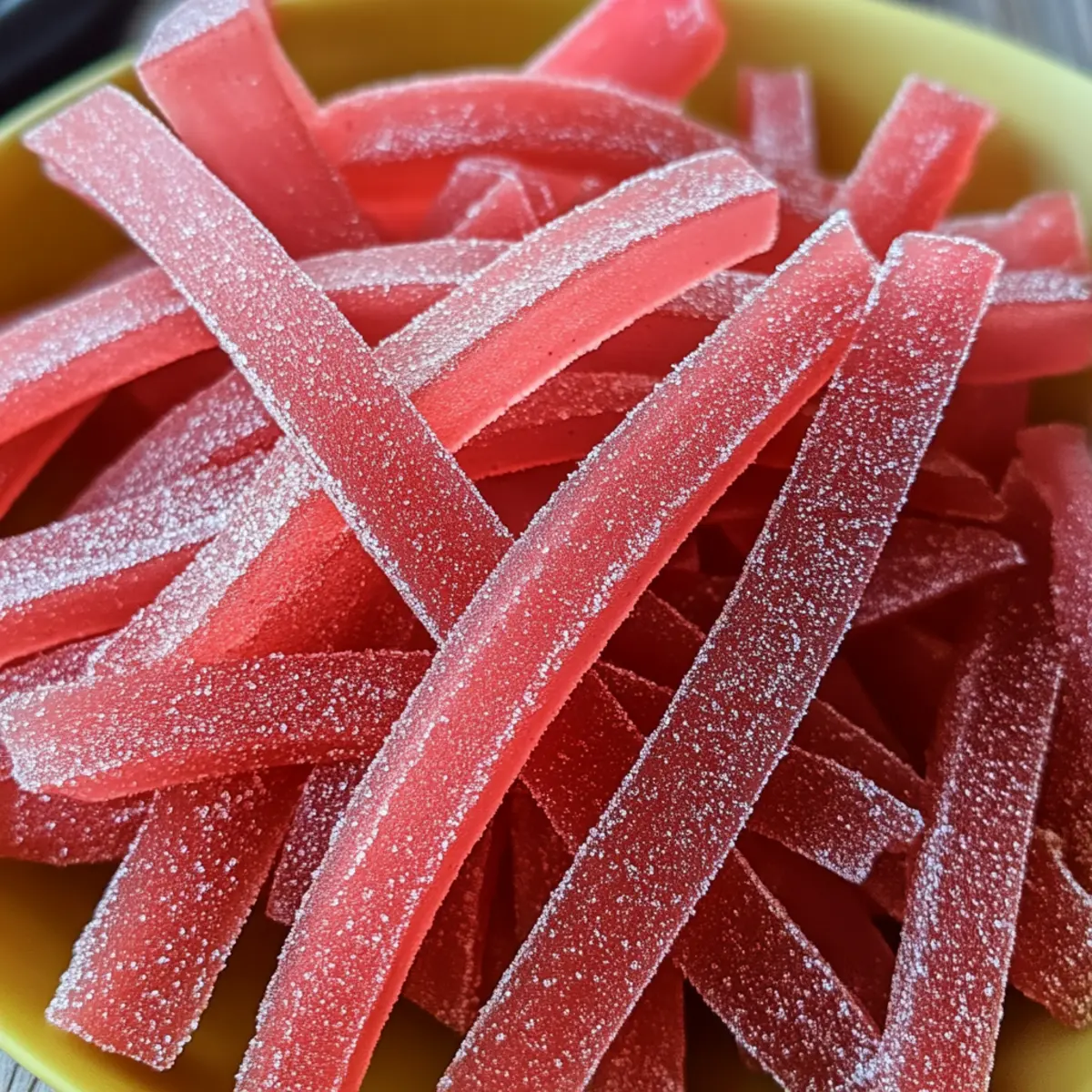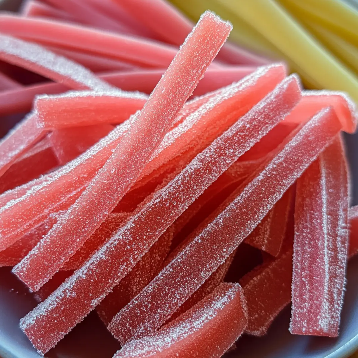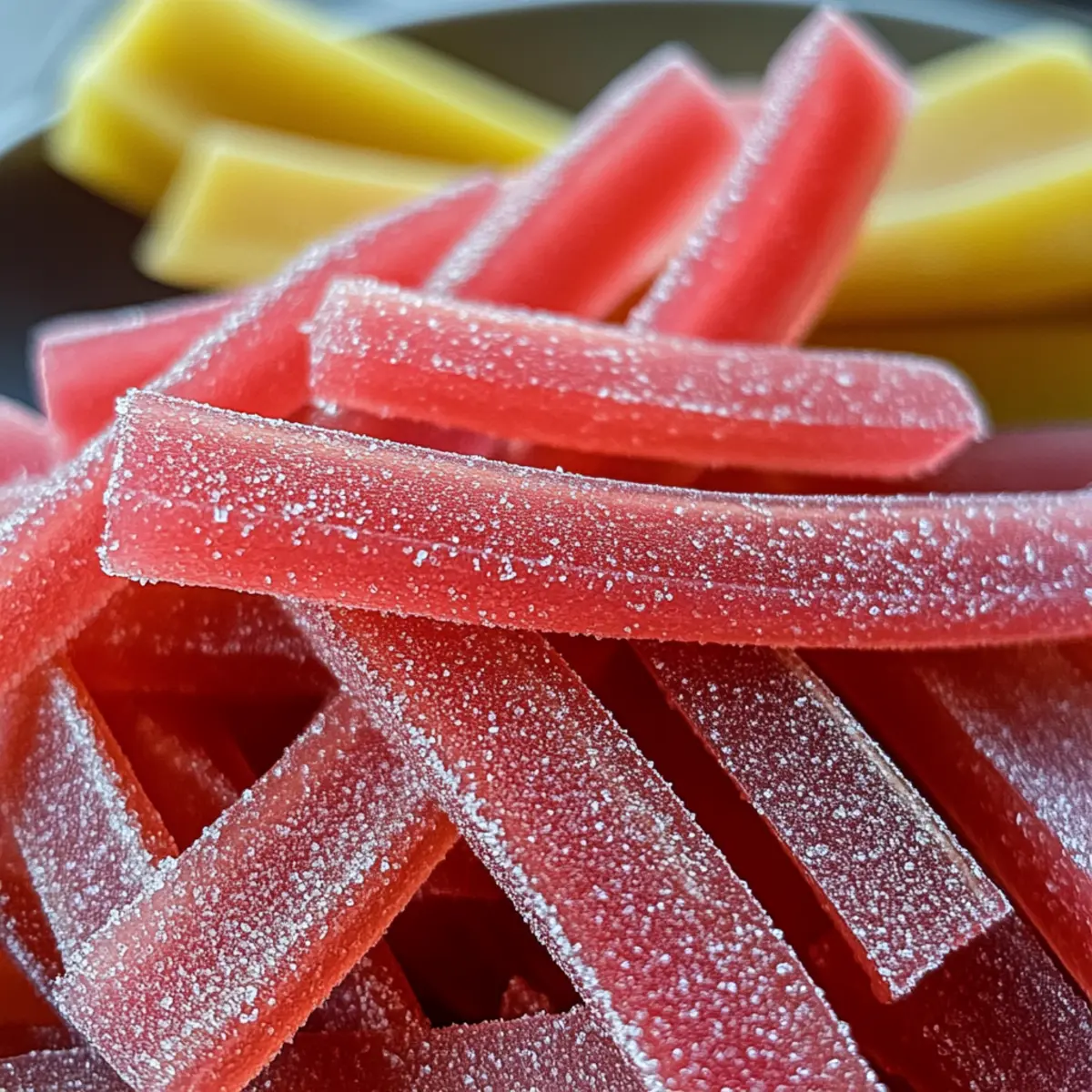 „Hast du schon einmal darüber nachgedacht, wie ein einzelnes Stück Rhabarber die Essenz des Frühlings einfangen kann?“ Bei meiner jüngsten Küchenabenteuer-Reise beschloss ich, selbstgemachte Rhabarber Sauerbänder auszuprobieren. Diese fruchtige Leckerei bringt nicht nur nostalgische Erinnerungen an süß-sauren Genuss zurück, sondern bietet auch eine köstliche, vegane Snack-Option ohne künstliche Aromen. Mit der idealen Kombination aus frischer Säure und süßer Natürlichkeit, sind diese Rhabarber Sauerbänder nicht nur schnell zubereitet, sondern auch perfekt für Kinder und Erwachsene zugleich. Sie eignen sich hervorragend für Lunchboxen, Picknicks oder einfach als süßer Genuss beim Filmabend. Bereit, dir einen gesunden Süßigkeiten-Hit zu gönnen? Lass uns gemeinsam in dieses Rezept eintauchen! Warum sind Rhabarber Sauerbänder so besonders? Einzigartiger Geschmack: Die Kombination aus frischem Rhabarber und Zitrone schafft eine köstliche Säure, die absolut einzigartig ist. Gesundheitsbewusst genießen: Diese Rhabarber Sauerbänder sind vegan und enthalten keine künstlichen Aromen, was sie zu einer großartigen Alternative zu herkömmlichen Süßigkeiten macht. Einfach und schnell: Mit nur wenigen frischen Zutaten und einem unkomplizierten Prozess zauberst du im Handumdrehen eine leckere Süßigkeit. Vielseitig im Genuss: Ob als Snack für unterwegs, im Picknickkorb oder bei einem gemütlichen Filmabend – sie kommen immer gut an. Probiere sie jetzt auch für deine Lunchbox vielleicht zusammen mit anderen veganen Snacks! Rhabarber Sauerband Zutaten • Für den Rhabarber Rhabarber – sorgt für die charakteristische, fruchtige Säure; frisch verwenden, gefrorenen Rhabarber gut abtropfen. Wasser – hilft, den Rhabarber während des Kochens zu erweichen. • Für die Süßung Kristallzucker – süßt die Mischung; nach Geschmack anpassen. Hinweis: Kokoszucker kann eine gesunde Alternative sein. Zitronensaft – verstärkt den saueren Geschmack; unerlässlich für das gewünschte Ergebnis. Honig oder Ahornsirup (optional) – verleiht Tiefe; kann Zucker für natürliche Süße ersetzen. • Für die Konsistenz Maisstärke (optional) – sorgt für eine dickere Textur; verwenden, wenn gewünscht. • Für die Beschichtung Feiner Zucker + Zitronensäure (zum Wälzen) – verstärkt den sauren Geschmack und sorgt für eine süße Außenschicht. Mit diesen einfachen Zutaten bereitest du im Handumdrehen köstliche Rhabarber Sauerbänder zu, die perfekt für jeden Anlass sind! Schritt-für-Schritt-Anleitung für Rhabarber Sauerband Step 1: Rhabarber kochen In einem mittelgroßen Topf die gehackten Rhabarberstängel mit Wasser vermengen und bei mittlerer Hitze 10-12 Minuten köcheln lassen, bis der Rhabarber weich ist. Achte darauf, regelmäßig umzurühren, damit nichts anbrennt. Wenn die Rhabarbereinheit auf einen schönen sanften Brei reduziert ist, kannst du mit dem nächsten Schritt fortfahren. Step 2: Pürieren des Rhabarbers Nehme den Topf vom Herd und lasse die Mischung etwas abkühlen. Danach pürierst du die Rhabarbermischung mit einem Standmixer oder Pürierstab, bis sie glatt und cremig ist. Dies sorgt für die perfekte Konsistenz deiner Rhabarber Sauerbänder. Achte darauf, keinen Luftraum zu erzeugen und mische gründlich. Step 3: Püree abseihen Wenn du eine besonders glatte Textur wünschst, seihe das Püree durch ein feines Sieb oder eine Musselin-Schnur, um eventuelle Fasern und Klumpen zu entfernen. Das ist besonders wichtig, wenn du ein perfektes Mundgefühl für deine Rhabarber Sauerbänder erreichen möchtest. Step 4: Süßen und eindicken Gib das abgeseihte Püree zurück in den Topf und füge Kristallzucker, Zitronensaft und optional Honig hinzu. Lasse die Mischung bei niedriger Hitze für etwa 10 Minuten köcheln, während du regelmäßig umrührst, bis sie eine dickere Konsistenz erreicht. Die Mischung sollte zu blubbern beginnen und leicht eindicken. Step 5: (Optional) Konsistenz anpassen Falls du eine noch dickere Mischung für deine Rhabarber Sauerbänder möchtest, bereite einen Maisstärke-Sud vor und füge ihn der Mischung hinzu. Koche weiter, bis sie die gewünschte Dicke erreicht, und achte dabei darauf, nicht zu stark zu erhitzen, um ein Anbrennen zu vermeiden. Step 6: Backblech vorbereiten Lege ein Backblech mit Backpapier aus und gieße das Rhabarber-Püree darauf, sodass es etwa 1/8 Zoll dick verteilt ist. Verwende einen Spatel, um das Püree gleichmäßig zu verteilen und schön glatt zu streichen. Dies sorgt dafür, dass die Rhabarber Sauerbänder gleichmäßig trocknen. Step 7: Trocknen im Ofen Trockne die Mischung im Ofen bei der niedrigsten Temperatur (ca. 60 °C) für 6-8 Stunden. Überprüfe regelmäßig, ob die Mischung trocken, aber noch biegsam ist. Halte die Ofentür leicht geöffnet, um die Feuchtigkeit entweichen zu lassen – Geduld ist der Schlüssel! Step 8: Abkühlen und schneiden Lasse die Rhabarber Sauerbänder vollständig abkühlen, bevor du sie in Streifen schneidest. Verwende Küschenscheren oder einen Pizzaschneider für saubere, gleichmäßige Schnitte. Achte darauf, die Streifen gleichmäßig zu schneiden, damit sie alle die gleiche Konsistenz erhalten. Step 9: (Optional) Wälzen für zusätzlichen Geschmack Falls gewünscht, wälze die geschnittenen Streifen in einer Mischung aus feinem Zucker und Zitronensäure, um den sauren Kick zu verstärken. Dies sorgt für eine knusprige, süße Außenschicht, die perfekt mit dem Geschmack des Rhabarber Sauerbands harmoniert. Step 10: Aufbewahrung Bewahre deine Rhabarber Sauerbänder in einem luftdichten Behälter an einem kühlen Ort auf. Sie sind bis zu einer Woche haltbar und somit der ideale Snack für unterwegs oder als süße Leckerei bei besonderen Anlässen! Expertentipps für Rhabarber Sauerband Frische Zutaten wählen: Achte darauf, frischen Rhabarber zu verwenden, um das beste Aroma und die richtige Textur für deine Rhabarber Sauerbänder zu erzielen. G