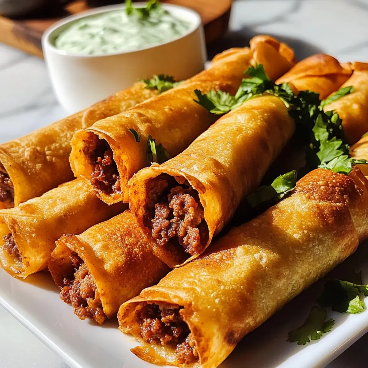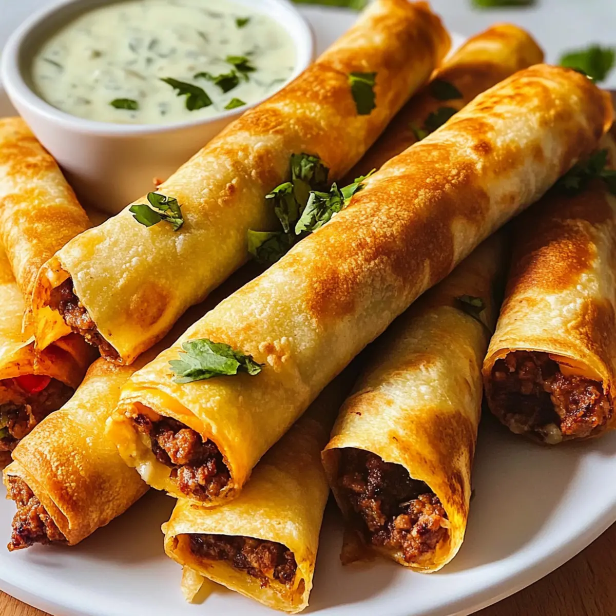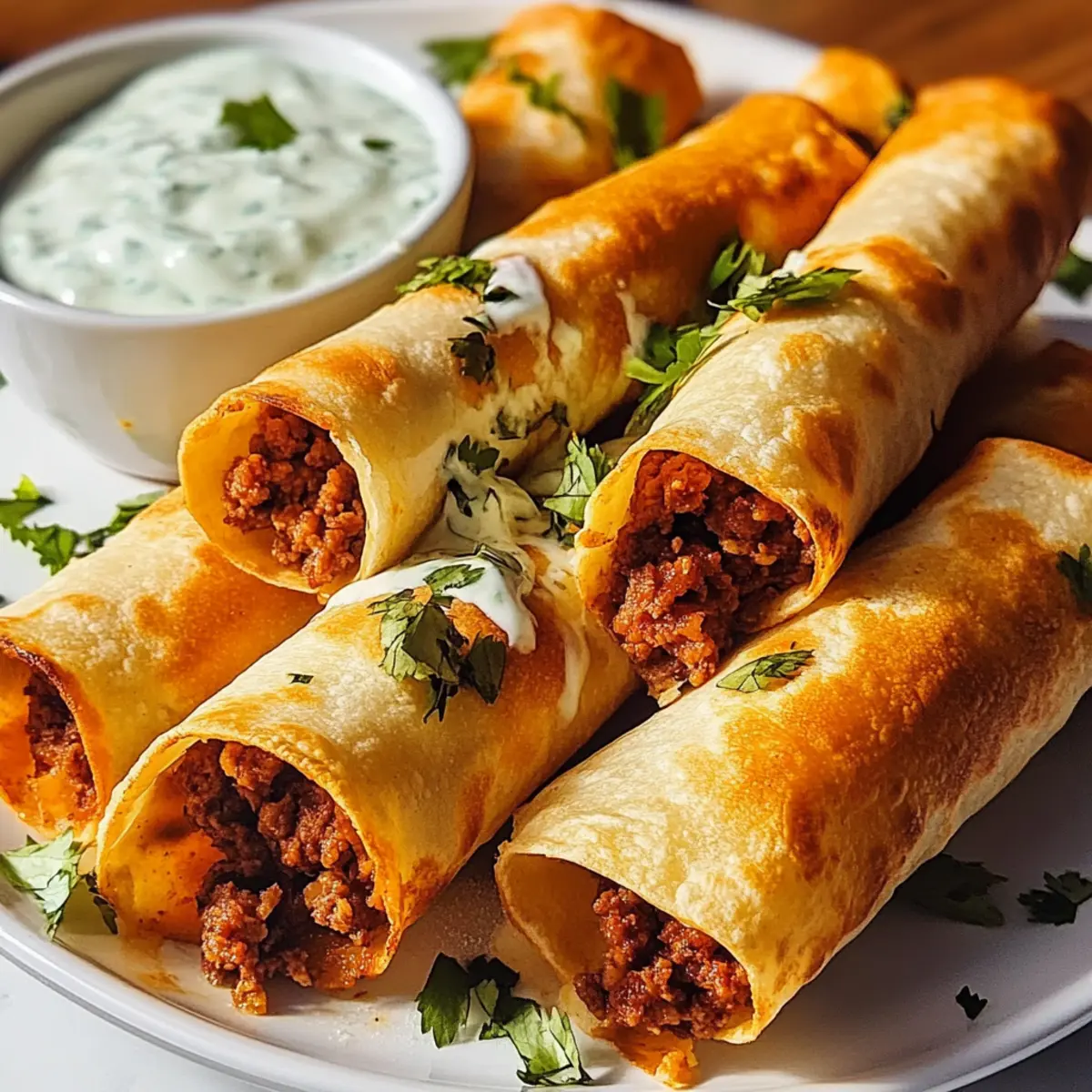 Nimm die Rinder-Taquitos aus dem Öl oder dem Ofen und lasse sie kurz auf einem Küchenpapier abtropfen. Garniere sie mit frischem Koriander und serviere sie warm mit der zesty Lime-Crema, Guacamole oder Pico de Gallo. Diese Kombination macht sie zu einem unwiderstehlichen Snack oder Hauptgericht!