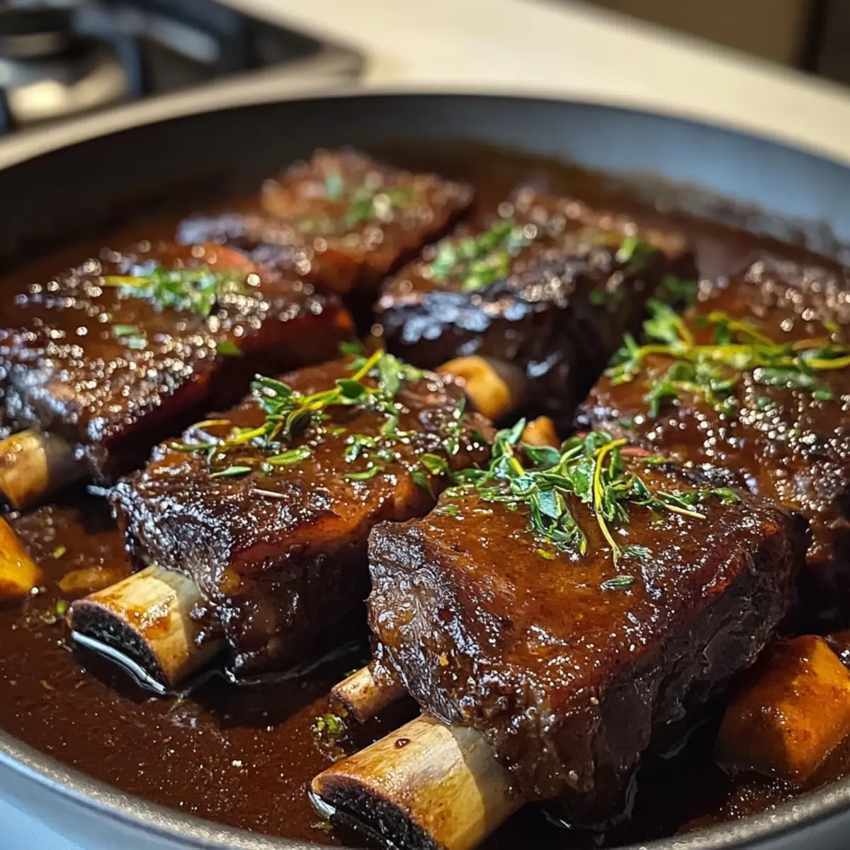 Ein köstlicher Duft erfüllt meine Küche, während ich die Rinderrippchen mit Rioja zubereite – ein Gericht, das nicht nur meinen Gaumen verzaubert, sondern auch Erinnerungen an festliche Familienessen weckt. Diese Rinderrippchen werden langsam in einem aromatischen Wein-Rioja-Fond gegart, wodurch sie extrem zart und geschmackvoll werden. Ideal für besondere Anlässe, ist dieses Rezept nicht nur ein wahrer Publikumsliebling, sondern lässt sich auch wunderbar im Voraus zubereiten. Ein weiterer Vorteil ist, dass es glutenfrei und milchfrei ist, wodurch es vielen Diätpräferenzen gerecht wird. Möchten Sie herausfinden, wie Sie dieses traditionelle spanische Gericht mit Leichtigkeit auf den Tisch bringen können? Lassen Sie uns gemeinsam in die Zubereitung eintauchen! Warum werden Sie dieses Rezept lieben? Einfachheit, die begeistert: Die Zubereitung der Rinderrippchen mit Rioja ist klar und bedarf nur grundlegender Kochfertigkeiten. Reiche Aromen: Die Kombination aus tiefem Wein und frischen Kräutern sorgt für einen robusten Geschmack, der alle begeistert. Vielseitigkeit: Ob als Hauptgericht zu festlichen Anlässen oder als herzhaftes Familienessen, dieses Gericht passt immer. Zeitersparnis: Ideal zum Vorausplanen, da die Aromen über Nacht noch intensiver werden. Kochen Sie am Vortag, und erfreuen Sie sich am nächsten Tag an noch schmackhafteren Rippchen! Kreative Serviervorschläge: Servieren Sie die Rinderrippchen über cremigem Kartoffelpüree oder zu knusprigem Brot Baguettscheiben mit Tomaten. So runden Sie das Geschmackserlebnis perfekt ab! Rinderrippchen mit Rioja Zutaten Für die Rippchen Rinderrippchen – Wählen Sie Rippchen mit Knochen für mehr Geschmack und eine zarte Textur. Salz und schwarzer Pfeffer – Diese Gewürze sind unerlässlich, um das natürliche Aroma der Rinderrippchen zu betonen. Olivenöl – Perfekt zum Anbraten der Rippchen, damit sie schön goldbraun werden. Zwiebel – Eine aromatische Basis, die Süße und Tiefe in das Gericht bringt. Karotte – Fügt nicht nur Farbe hinzu, sondern bringt auch eine natürliche Süße in die Sauce. Sellerie – Verleiht der Mischung eine frische, knackige Note. Knoblauch – Unverzichtbar für einen intensiven Geschmack; sorgt für ein geschmackliches Fundament. Tomatenmark – Fügt Umami und Dicke zur Sauce hinzu und verstärkt den Geschmack. Rotwein Rioja – sorgt für eine tiefe Geschmacksbasis; für eine alkoholfreie Variante können Sie ihn durch Brühe ersetzen. Rinderbrühe – Die Flüssigkeitsbasis, die den Rippchen Geschmack verleiht und die Textur verbessert. Lorbeerblätter – Fügen Sie beim Kochen einen zusätzlichen aromatischen Kick hinzu. Frischer Rosmarin – Diese Kräuter ergänzen das Fleisch hervorragend mit ihrem intensiven Aroma. Frischer Thymian – Sein erdiger und rustikaler Geschmack harmoniert perfekt mit den Rippchen. Schritt-für-Schritt-Anleitung für Rinderrippchen mit Rioja Schritt 1: Ofen vorheizen Heizen Sie Ihren Ofen auf 150 °C (300 °F) vor. Dies ist wichtig, um die Rinderrippchen mit Rioja gleichmäßig zu garen. Ein vorgeheizter Ofen sorgt dafür, dass die Rippchen von Anfang an optimal gegart werden und ihre zarte Konsistenz erreichen. Schritt 2: Rippchen vorbereiten Trocknen Sie die Rinderrippchen mit Küchenpapier ab und würzen Sie sie großzügig mit Salz und frisch gemahlenem schwarzem Pfeffer. Diese Würze hebt den natürlichen Geschmack der Rippchen hervor. Lassen Sie sie für einige Minuten ruhen, damit die Gewürze gut einziehen. Schritt 3: Rippchen anbraten Erhitzen Sie in einem großen, schweren Topf etwas Olivenöl bei mittlerer Hitze. Braten Sie die Rinderrippchen 5-7 Minuten lang von allen Seiten an, bis sie eine schöne goldbraune Farbe haben. Nehmen Sie die Rippchen aus dem Topf und legen Sie sie beiseite. Diese Technik sorgt dafür, dass die Rippchen saftig bleiben und das Aroma intensiviert wird. Schritt 4: Gemüse anbraten Im verbliebenen Fett im Topf die grob gehackte Zwiebel, Karotte und Sellerie 5-8 Minuten lang anbraten, bis sie weich und leicht karamellisiert sind. Rühren Sie häufig um, um ein Anbrennen zu vermeiden. Diese aromatische Mischung bildet die Grundlage für die köstliche Sauce der Rinderrippchen mit Rioja. Schritt 5: Knoblauch hinzufügen Fügen Sie den gehackten Knoblauch hinzu und braten Sie ihn für 1 Minute mit, bis er duftet. Achten Sie darauf, den Knoblauch nicht zu verbrennen, da dies den Geschmack der Sauce beeinträchtigen könnte. Er wird den Aromen eine zusätzliche Tiefe verleihen, die perfekt zu den Rippchen passt. Schritt 6: Tomatenmark und Wein hinzufügen Geben Sie das Tomatenmark in den Topf und lassen Sie es 2 Minuten lang kochen. Dies intensiviert den Geschmack. Ablöschen Sie dann mit dem Rioja-Wein und lassen Sie die Mischung 5 Minuten lang köcheln, um die Aromen zu verbinden und die Flüssigkeit etwas zu reduzieren. Der Wein bringt die reichen Aromen der Rinderrippchen mit Rioja perfekt zur Geltung. Schritt 7: Brühe und Kräuter hinzufügen Legen Sie die Rinderrippchen zurück in den Topf und gießen Sie die Rinderbrühe dazu. Fügen Sie Lorbeerblätter, frischen Rosmarin und Thymian hinzu. Bringen Sie die Mischung zum Kochen und rühren Sie gut um. Diese Kräuter harmonieren wunderbar mit den Rippchen und verleihen dem Gericht eine köstliche Note. Schritt 8: Rinderrippchen garen Decken Sie den Topf ab und transferieren Sie ihn in den vorgeheizten Ofen. Lassen Sie die Rinderrippchen 2,5 bis 3 Stunden garen, bis das Fleisch zart ist und leicht vom Knochen fällt. Die langsame Garzeit sorgt dafür, dass die Rippchen perfekt durchziehen und geschmackvoll werden. Schritt 9: Sauce verfeinern Nehmen Sie die Rinderrippchen nach dem Garen aus dem Topf und lassen Sie sie auf einem Teller ruhen. Filtern Sie die Sauce bei Bedarf durch ein feines Sieb, um die festen Bestandteile zu entfernen. Wenn die Sauce zu dünn ist, reduzieren Sie sie bei schwacher Hitze auf dem Herd, bis sie eingedickt ist. So erhalten Sie e