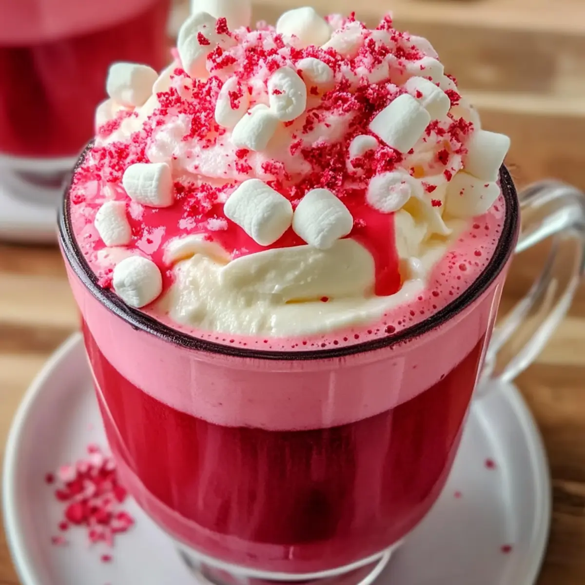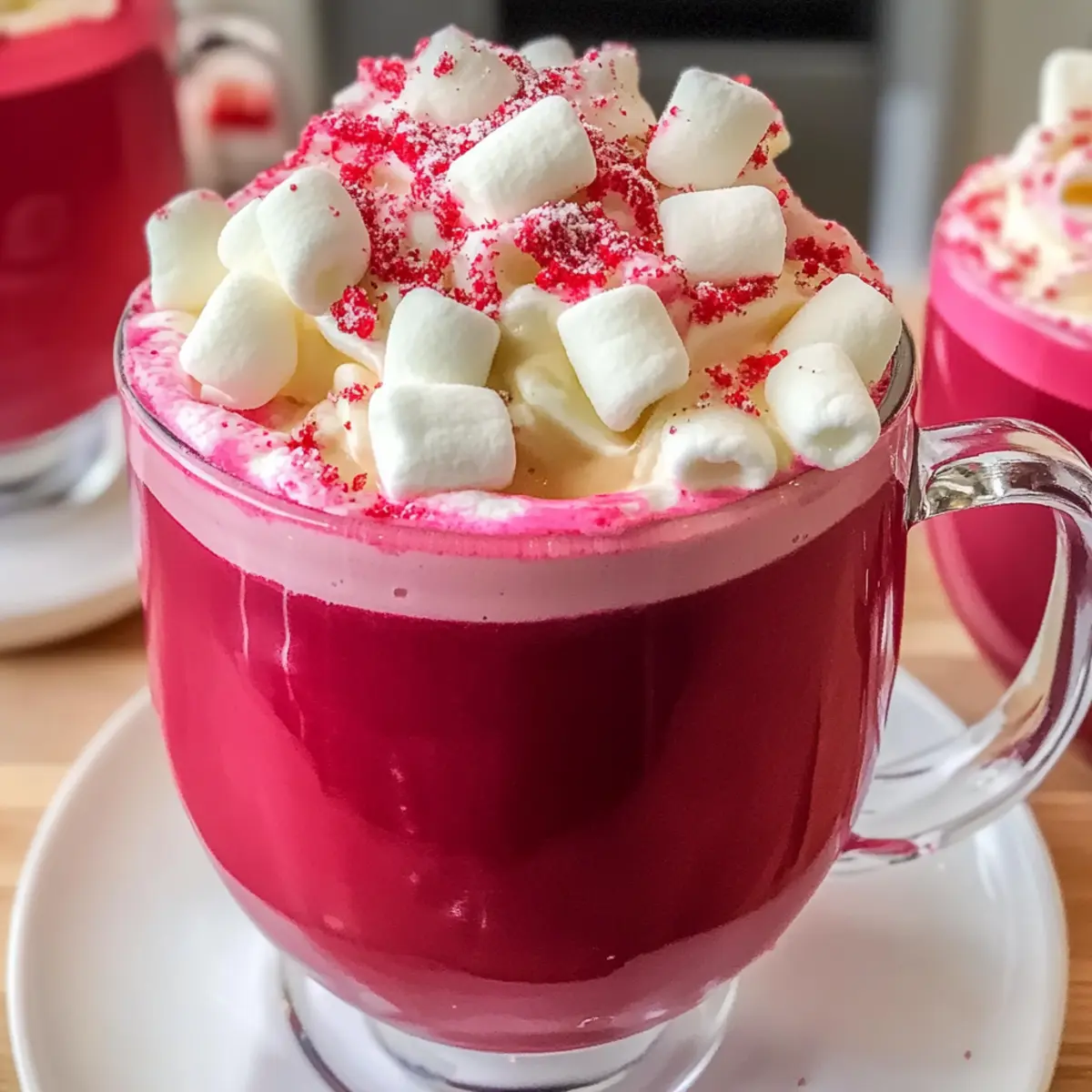 Die kalte Jahreszeit bringt ganz besondere Glücksmomente mit sich, die ich in einer Tasse Rote Samt heiße Schokolade einfangen möchte. Diese noch nie dagewesene Kombination aus dem köstlichen Geschmack von rotem Samt-Kuchen und cremiger Schokolade verwandelt kühle Abende in luxuriöse Genussmomente. Neben ihrem festlichen Aussehen bietet diese heiße Schokolade nicht nur eine einfache Zubereitung, die jede gesellige Runde bereichert, sondern auch eine wunderbare Möglichkeit, sich an kalten Tagen zu wärmen. Ob bei einem gemütlichen Filmabend oder als besonderes Getränk für eure Gäste – diese Treat wird eure Herzen im Sturm erobern! Seid ihr bereit, das Geheimnis dieser köstlichen Kreation zu entdecken? Warum ist Rote Samt heiße Schokolade besonders? Festliche Leichtigkeit: Die Zubereitung dieser Rote Samt heiße Schokolade ist kinderleicht und benötigt nur wenige Schritte. Cremiger Genuss: Mit der Kombination aus schmelzender weißer Schokolade und cremiger Milch ist jeder Schluck ein wahrer Genuss. Einfach anpassbar: Wollt ihr etwas andere Geschmäcker ausprobieren? Fügt Zimt oder Schokoladenstückchen hinzu! Optischer Hingucker: Der leuchtend rote Farbton sorgt für Wow-Momente bei euren Gästen. Genießt diese köstliche warme Schokolade bei einem gemütlichen Filmabend und schaut euch auch meine Kaffeekekse mit Schokoladenstückchen an – die perfekte Begleitung zu eurer heißen Tasse! Zutaten für Rote Samt heiße Schokolade • Für die ultimative Genuss-Versuchung! Für die Basis Milch – bildet die cremige Grundlage des Getränks; für eine milchfreie Option könnt ihr Mandelmilch verwenden. Schlagsahne – sorgt für zusätzliche Reichhaltigkeit; könnt ihr auch mit Kokoscreme ersetzen, um sie vegan zu machen. Zucker – süßt das Getränk; verwendet braunen Zucker für einen intensiveren Geschmack. Für den Geschmack Weiße Schokoladenstückchen – liefern sanfte Süße und Geschmeidigkeit; wählt hochwertige Schokolade für den besten Genuss. Vanilleextrakt – hebt das Geschmacksprofil hervor; ich empfehle reinen Vanilleextrakt für mehr Tiefe. Rote Lebensmittelfarbe – verleiht der heißen Schokolade ihren charakteristischen, leuchtenden Farbton; passt die Menge nach Wunsch an. Für die Garnitur (optional) Schlagsahne – sorgt für eine extra cremige Schicht oben drauf; kann in einer veganen Variante zubereitet werden. Marshmallows – klassisches Highlight für eine verspielte Präsentation. Zerkleinerte Pfefferminzstücke – bringen crunchige Frische und festlichen Pep. Diese Rote Samt heiße Schokolade ist nicht nur eine Augenweide, sondern auch ein köstlicher Weg, um euch an kalten Abenden zu wärmen! Schritt-für-Schritt-Anleitung für Rote Samt heiße Schokolade Step 1: Milch und Sahne erhitzen Bringt in einem mittelgroßen Topf die Milch und die Schlagsahne bei mittelhoher Hitze zum Kochen. Rührt gelegentlich um, um ein Anbrennen zu verhindern. Ihr wisst, dass die Mischung bereit ist, wenn sie zu kochen beginnt und kleine Blasen an den Rändern sichtbar werden. Dies dauert etwa 5 Minuten. Step 2: Zucker und Schokolade hinzufügen Reduziert die Hitze auf mittlere bis niedrige Stufe und gebt den Zucker sowie die weißen Schokoladenstückchen in die heiße Mischung. Rührt kräftig mit einem Schneebesen, bis die Schokolade vollständig geschmolzen und alles gut vermischt ist. Dies kann ungefähr 3-5 Minuten in Anspruch nehmen, bis die Mischung cremig und homogene ist. Step 3: Vanille und Lebensmittelfarbe einrühren Nehmt den Topf vom Herd und fügt den Vanilleextrakt und die rote Lebensmittelfarbe hinzu. Rührt gründlich um, bis die Farbe gleichmäßig verteilt ist und die Rote Samt heiße Schokolade einen schönen, leuchtenden Farbton hat. Der Farbton sollte intensiv sein, also passt die Menge der Lebensmittelfarbe nach Wunsch an — etwa 1-2 Teelöffel. Step 4: Servieren und Garnieren Ladet die heiße Schokolade vorsichtig in Teegläser oder Becher und guckt, wie die tiefrote Farbe den Behälter ausfüllt. Wenn ihr möchtet, könnt ihr die Rote Samt heiße Schokolade mit Schlagsahne, Marshmallows und zerkleinerten Pfefferminzstückchen toppen, um sie noch festlicher zu gestalten. Serviert sie sofort, solange sie schön warm und köstlich cremig ist. Was passt gut zur roten Samt heißen Schokolade? Die perfekte Begleitung zu einer verführerischen Tasse Rote Samt heiße Schokolade kann den ganzen Abend in einen Genussmoment verwandeln. Cremige Sahne: Die sanfte Textur der Schlagsahne harmoniert wunderbar mit der süßen Schokolade und sorgt für extra Cremigkeit. Schokoladenkekse: Diese Klassiker ergänzen die heiße Schokolade perfekt. Die knusprigen Kekse bringen Textur ins Spiel und sind ein beliebtes Snack-Paar! Warmes Gebäck: Perfekt für einen festlichen Touch! Ein frisches Croissant oder Zimtschnecken passen hervorragend zu den süßen, schokoladigen Aromen. Pfefferminz-Tee: Der minzige Geschmack eines heißen Tees bringt eine erfrischende Note, die die Süße der heißen Schokolade wunderbar ausgleicht. Frische Beeren: Die Säure von Himbeeren oder Erdbeeren bietet einen köstlichen Kontrast zur süßen Schokolade. Fruchtig und frisch – ideal für einen besonderen Moment. Karamell-Dessert: Ein kleiner Karamell-Brownie bietet eine zusätzliche süße Schicht, die das dekadente Erlebnis dieser roten Samt heißen Schokolade perfekt abrundet. Genießt die verschiedenen Kombinationen und macht eure Abende umso köstlicher! Rote Samt heiße Schokolade Variationen Lass deiner Kreativität freien Lauf und passe dieses Rezept nach deinem Geschmack an! Milchfreie Option: Ersetze die Milch durch Mandelmilch oder Hafermilch für eine köstliche, pflanzliche Variante. Diese Varianten verleihen der heißen Schokolade einen leicht nussigen Geschmack. Dicker und reicher: Verwende weniger Milch und füge mehr Schlagsahne hinzu. So erhältst du eine extra cremige und reichhaltige Konsistenz, perfekt für besondere Anlässe. Intensiver Schokoladengenu