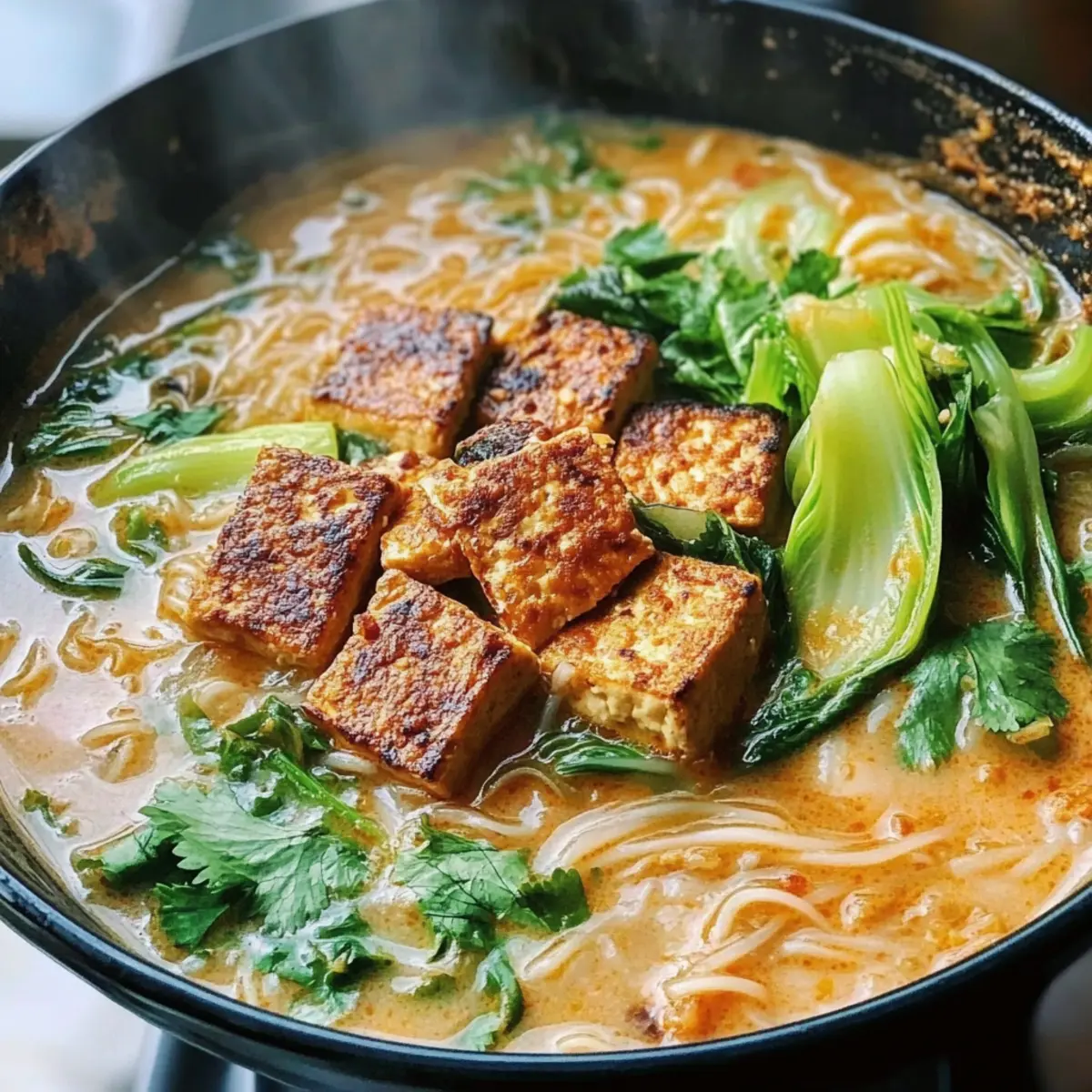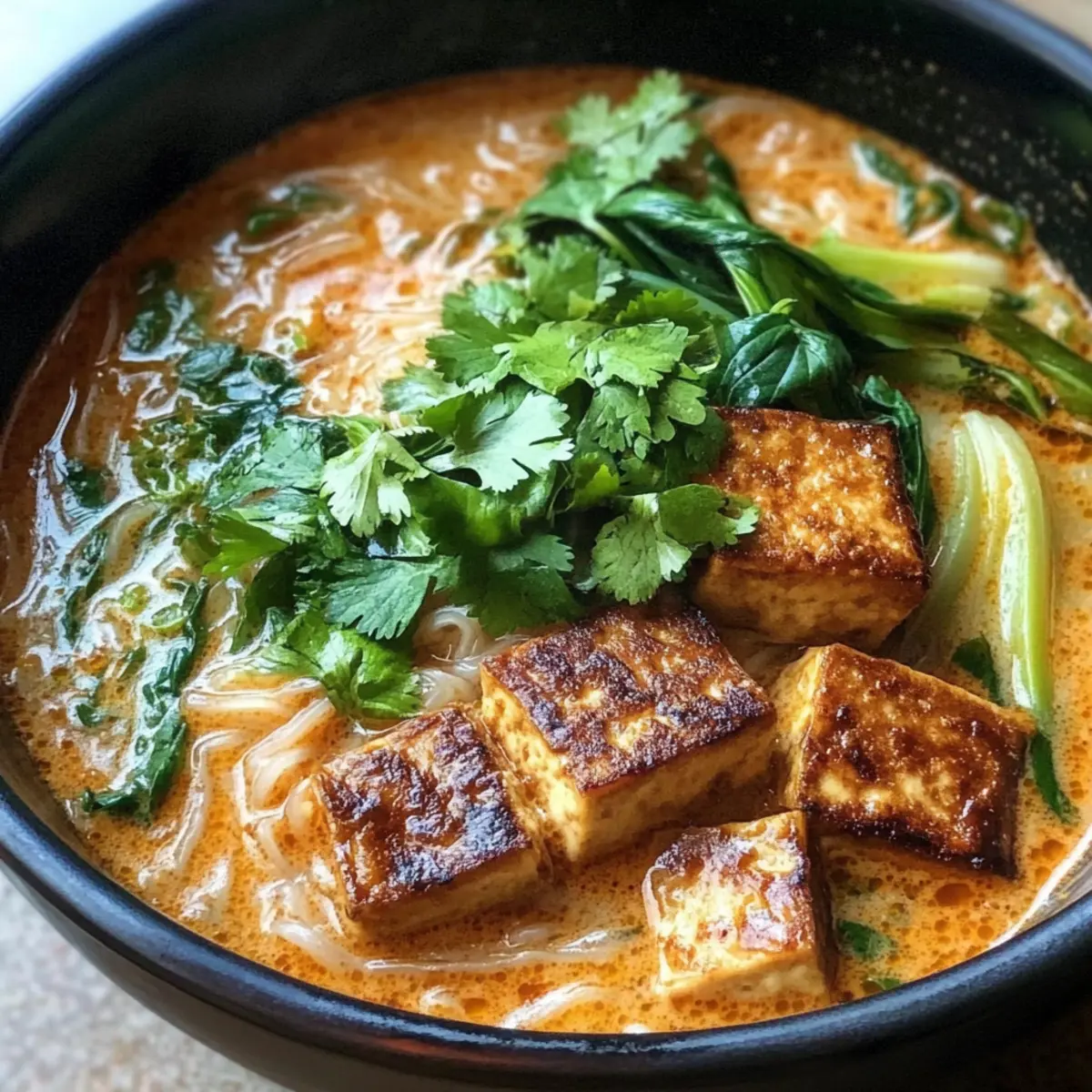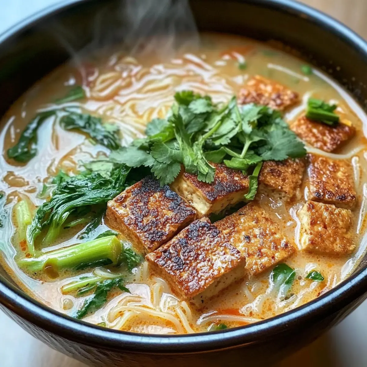 Die Aromen von frisch geschnittenem Zitronengras und knusprigem Tofu schwirrten durch meine Küche und ich konnte nicht anders, als mich auf eine köstliche Kreation zu freuen: die Scharfe Zitronengras-Kokosnuss-Nudelsuppe. Diese vegane Gemüsesuppe ist nicht nur schnell zubereitet, sondern auch der perfekte Komfort für kalte Abende, wenn die Seele nach etwas Wärmendem verlangt. Die Kombination aus cremiger Kokosmilch und würziger Brühe mit knackigem Gemüse und leckeren vermicelli Nudeln wird bestimmt zum neuen Lieblingsgericht in Ihrer Küche. Ich lade Sie ein, sich den Herausforderungen beim Kochen zu stellen: Wie viele Varianten können Sie kreieren, um diesen herzhaften Klassiker zu Ihrem eigenen zu machen? Warum ist diese Suppe so besonders? Wärmend und Aromatisch: Diese Scharfe Zitronengras-Kokosnuss-Nudelsuppe ist der Inbegriff von Komfort und Wärme, perfekt für kalte Abende. Vielseitig: Mit zahlreichen Variationen bei den Zutaten können Sie die Suppe nach Ihrem Geschmack anpassen – ob mit Spinat oder sogar Kichererbsen. Schnell und Einfach: In weniger als 30 Minuten bereiten Sie ein köstliches Gericht zu, das nicht an Geschmack spart! Vegan und Glutenfrei: Diese Suppe ist ideal für alle, die pflanzliche Kost lieben oder glutenfreie Optionen suchen. Genießen Sie auch unsere knusprige Tortilla Pizza für eine weitere leckere Abendessen-Option! Crowd-Pleaser: Diese Suppe wird sicherlich Ihre Familie und Freunde beeindrucken – perfekt für gesellige Abende. Zutaten für die Scharfe Zitronengras-Kokosnuss-Nudelsuppe • Entdecken Sie die geheimen Zutaten, die dieses Gericht zum Leben erwecken! Für die Brühe Kleine rote Zwiebel – sorgt für Süße und Aroma in der Brühe; kann durch Schalotten ersetzt werden. Frisches Zitronengras – verleiht einen zitrusartigen Geschmack; gefrorenes, gehacktes Zitronengras oder Paste sind praktische Alternativen. Neutrales Öl – ideal zum Sautieren; verwenden Sie Sesamöl für einen zusätzlichen Geschmackskick. Knoblauch (gehackt) – bringt Tiefe und Reichtum in die Brühe. Chili-Knoblauch-Sauce – fügt der Suppe Schärfe hinzu; probieren Sie Sambal für eine andere Geschmacksrichtung. Wasser – die Basis der Brühe, verwenden Sie Gemüsebrühe für mehr Geschmack. Gemüse-Bouillon-Würfel – intensiviert den Brüchengeschmack; Menge je nach Markenstärke anpassen. Vegane Fischsauce – sorgt für Umami; ersetzen Sie sie durch Sojasauce oder Tamari. Salz – verstärkt den Gesamteindruck; nach Geschmack anpassen. Brauner Zucker – balanciert die Aromen mit einem Hauch von Süße; kann durch Kokoszucker ersetzt werden. Kokosmilch – sorgt für Cremigkeit und Reichtum; verwenden Sie Vollfett für eine dickere Konsistenz. Für die Tofu-Zubereitung Extra fester Tofu – die Proteinbasis; fester oder seidiger Tofu sind je nach Textur gewünscht Alternativen. Sojasauce – würzt den Tofu; Tamari ist eine glutenfreie Alternative. Sake – fügt Tiefe hinzu; kann weggelassen oder durch einen Schuss Reisessig ersetzt werden. Zucker – hilft, den Tofu beim Braten zu karamelisieren; ersetzen Sie ihn durch Ahornsirup. Für die Nudeln und Gemüse Trockene Vermicelli-Nudeln – die Basis der Suppe; Reisnudeln sind eine geeignete Alternativen. Bok Choy (oder andere grüne Gemüsesorten) – bringt Nährstoffe und Farbe; auch Spinat oder Napa-Kohl sind möglich. Frischer Koriander – verleiht Frische und Geschmack beim Servieren. Frischer Limettensaft – hebt den Geschmack der Suppe. Frittierte Schalotten – sorgen für eine knusprige Textur; können selbst gemacht oder gekauft werden. Die Scharfe Zitronengras-Kokosnuss-Nudelsuppe wird sicherlich Ihr neues Lieblingsgericht! Schritt-für-Schritt-Anleitung für die Scharfe Zitronengras-Kokosnuss-Nudelsuppe Step 1: Brühe vorbereiten Erhitzen Sie einen großen Topf bei mittlerer Hitze und rösten Sie die klein geschnittene rote Zwiebel, bis sie braun und aromatisch ist (ca. 5 Minuten). Fügen Sie dann das neutrale Öl hinzu und sautieren Sie den gehackten Knoblauch sowie das frisch geschnittene Zitronengras, bis sie duften. Mischen Sie die Chili-Knoblauch-Sauce unter, um eine würzige Basis für die Scharfe Zitronengras-Kokosnuss-Nudelsuppe zu schaffen. Step 2: Brühe köcheln lassen Gießen Sie 1 Liter Wasser in den Topf und fügen Sie den Gemüse-Bouillonwürfel hinzu. Lassen Sie die Brühe 15 Minuten lang bei schwacher Hitze köcheln, damit sich die Aromen gut entfalten können. Schmecken Sie die Brühe mit der veganen Fischsauce, Salz und braunem Zucker ab. Rühren Sie die Kokosmilch ein und halten Sie die Brühe bei niedriger Hitze warm. Step 3: Tofu zubereiten Während die Brühe köchelt, pressen und schneiden Sie den extra festen Tofu in Würfel. Erhitzen Sie in einer Pfanne bei mittlerer Hitze etwas Öl und braten Sie den Tofu, bis er goldbraun und knusprig ist (ca. 6-8 Minuten). Fügen Sie die Sojasauce, Sake und Zucker hinzu und wenden Sie den Tofu, bis er gut karamellisiert ist. Stellen Sie den Tofu beiseite. Step 4: Nudeln vorbereiten Bringen Sie einen separaten Topf mit Wasser zum Kochen und geben Sie die trockenen Vermicelli-Nudeln hinein. Lassen Sie sie für etwa 5-7 Minuten einweichen oder bis sie weich und durchscheinend sind. Gießen Sie die Nudeln in ein Sieb, spülen Sie sie kurz ab, um sie vom Kleben zu befreien, und stellen Sie sie zur Seite für die Scharfe Zitronengras-Kokosnuss-Nudelsuppe. Step 5: Gemüse blanchieren Fügen Sie die Bok Choy-Blätter zur Brühe hinzu und lassen Sie sie 1-2 Minuten blanchieren, bis sie zart und dennoch knackig sind. Dies sorgt für eine schöne Textur und frische Farbe in Ihrer Suppe. Achten Sie darauf, die Hitze nicht zu erhöhen, damit die Brühe nicht überkocht. Step 6: Suppe anrichten Zum Servieren geben Sie eine Portion der vorbereiteten Vermicelli-Nudeln in eine Schüssel. Löffeln Sie die heiße Brühe zusammen mit dem blanchierten Bok Choy und dem knusprigen Tofu darüber. Garnieren Sie jede Portion mit frischem Korian